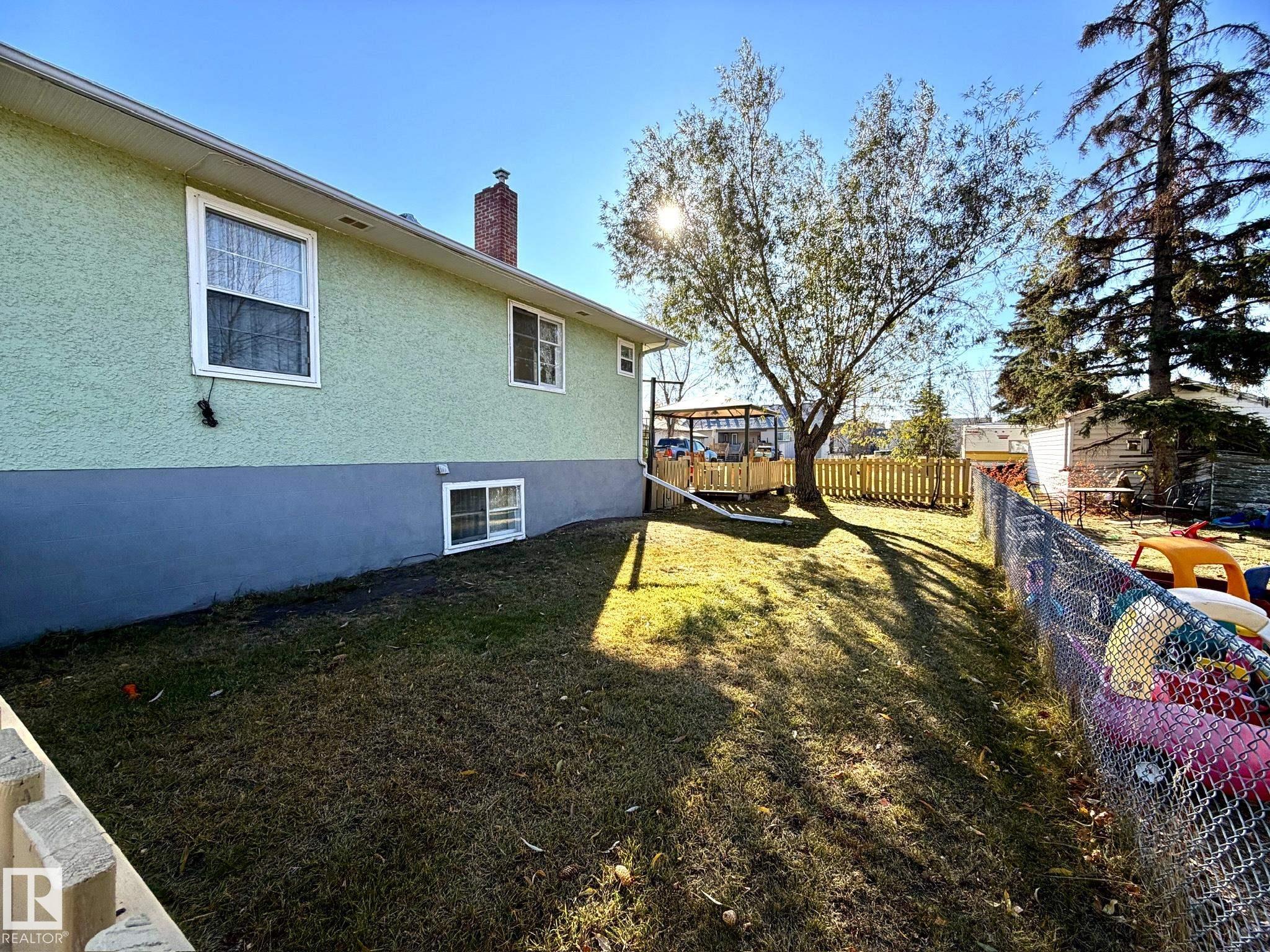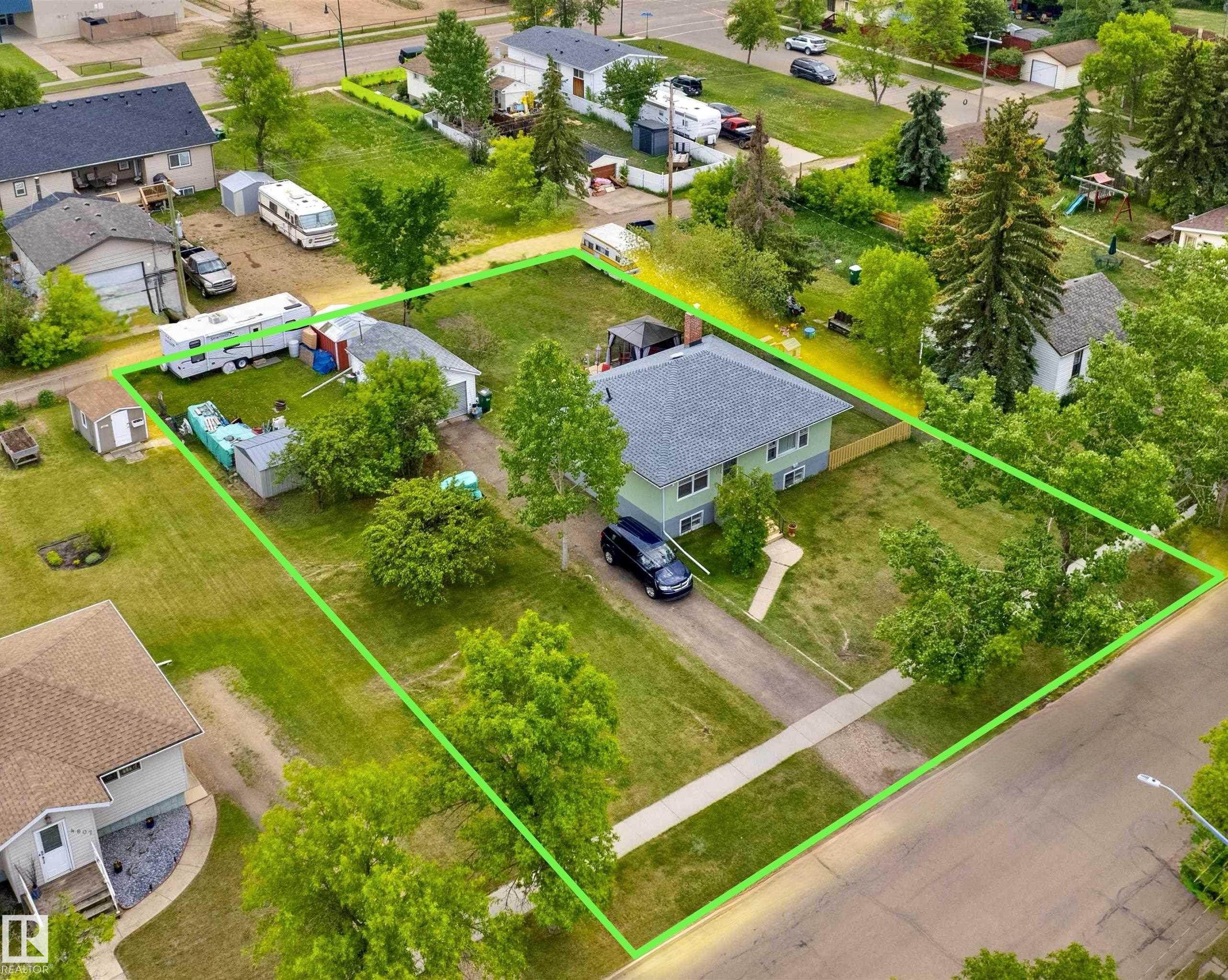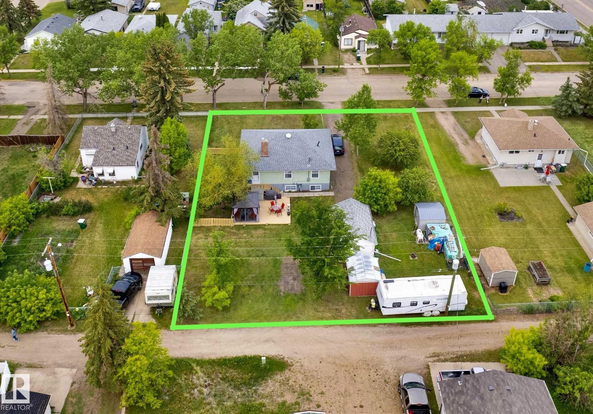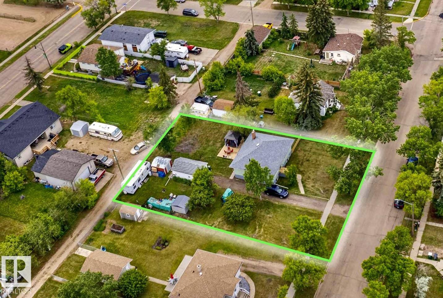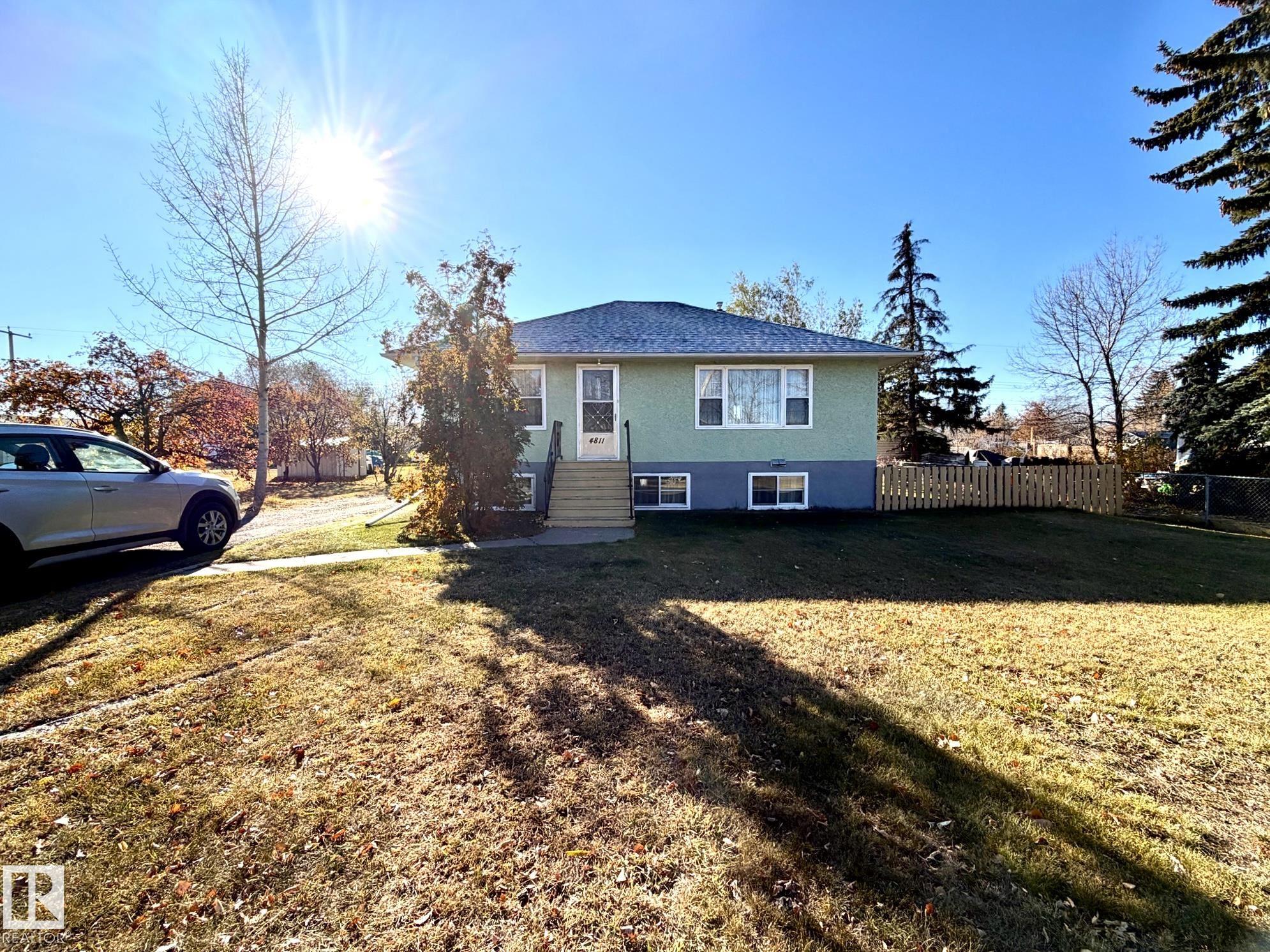 Welcome to this bright & character-filled raised bungalow in Lamont! Set on a MASSIVE TRIPLE LOT, this property offers incredible space & endless possibilities ? create your dream garden, expand the ultimate dog run, or unwind on the spacious back patio. A large driveway & convenient back lane access make parking & RV storage easy. Inside, you?ll find beautiful hardwood floors, an inviting eat-in kitchen, a generous dining area & a sun-filled living room that feels warm & welcoming. The main floor features 3 bedrooms, a 4pc bath, a large linen closet & plenty of storage. Enjoy peace of mind with updates including newer appliances, roof, hot water tank, deck & an upgraded electrical panel with potential for 200-amp service. The fully finished basement adds fantastic flexibility with a large rec room, 2 additional bedrooms & a 3-piece bath. Located just 15 minutes from Elk Island National Park & close to schools, parks, hospital & amenities, this home offers small-town charm with an easy city commute.