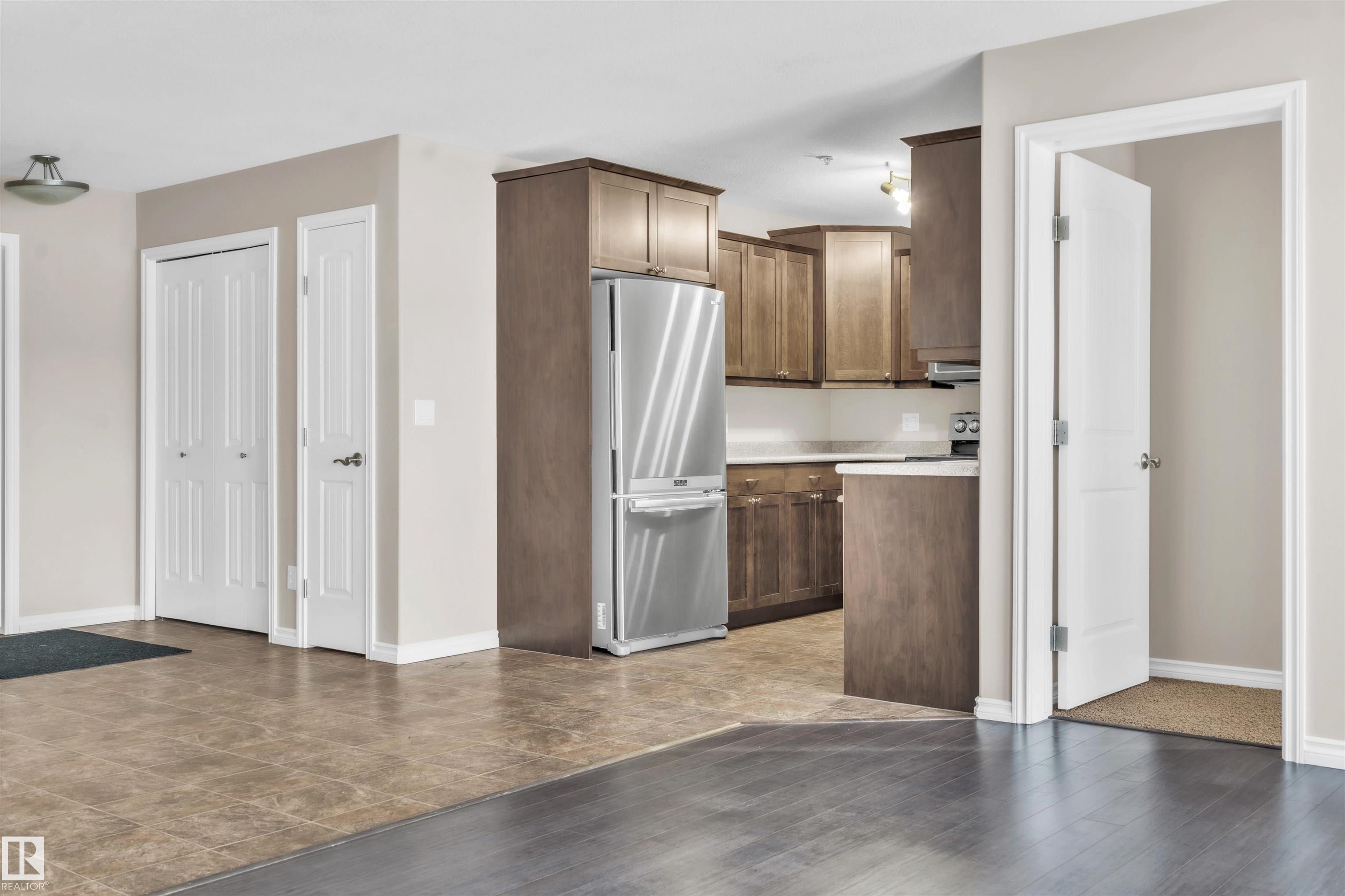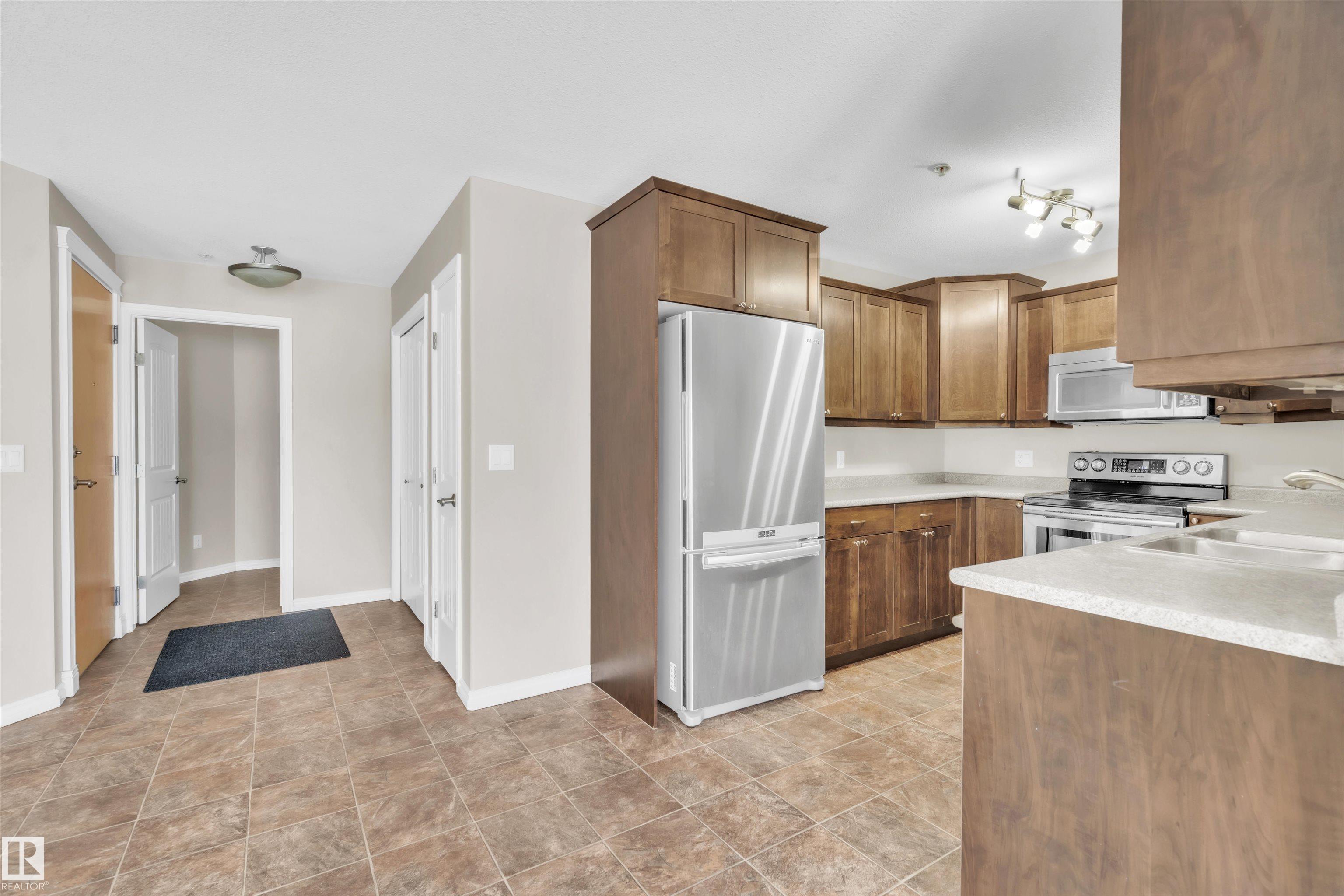 Well maintained 2-bedroom, 1-bathroom condo that includes two parking stalls?one titled heated underground and one assigned outdoor. The thoughtful open layout creates an easy flow throughout the main living areas. The kitchen features charming wood cabinetry, coordinated countertops, and stainless steel appliances, opening naturally to the dining and living space. Added conveniences include in-suite laundry, central air conditioning, and a private balcony for outdoor enjoyment. Residents benefit from assigned storage, an on-site fitness centre, and secure intercom entry. A well-managed building that makes a smart investment for future resale.