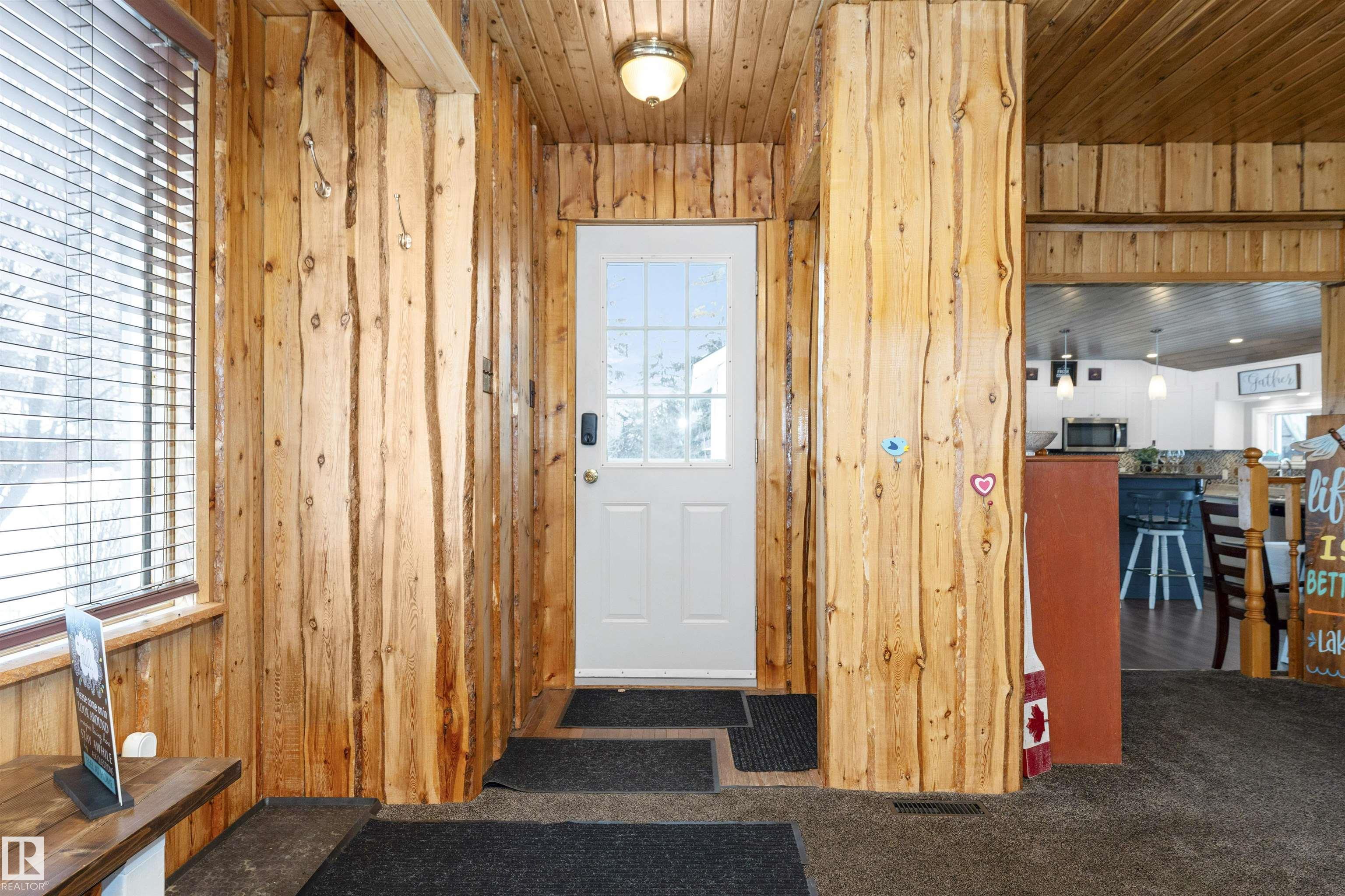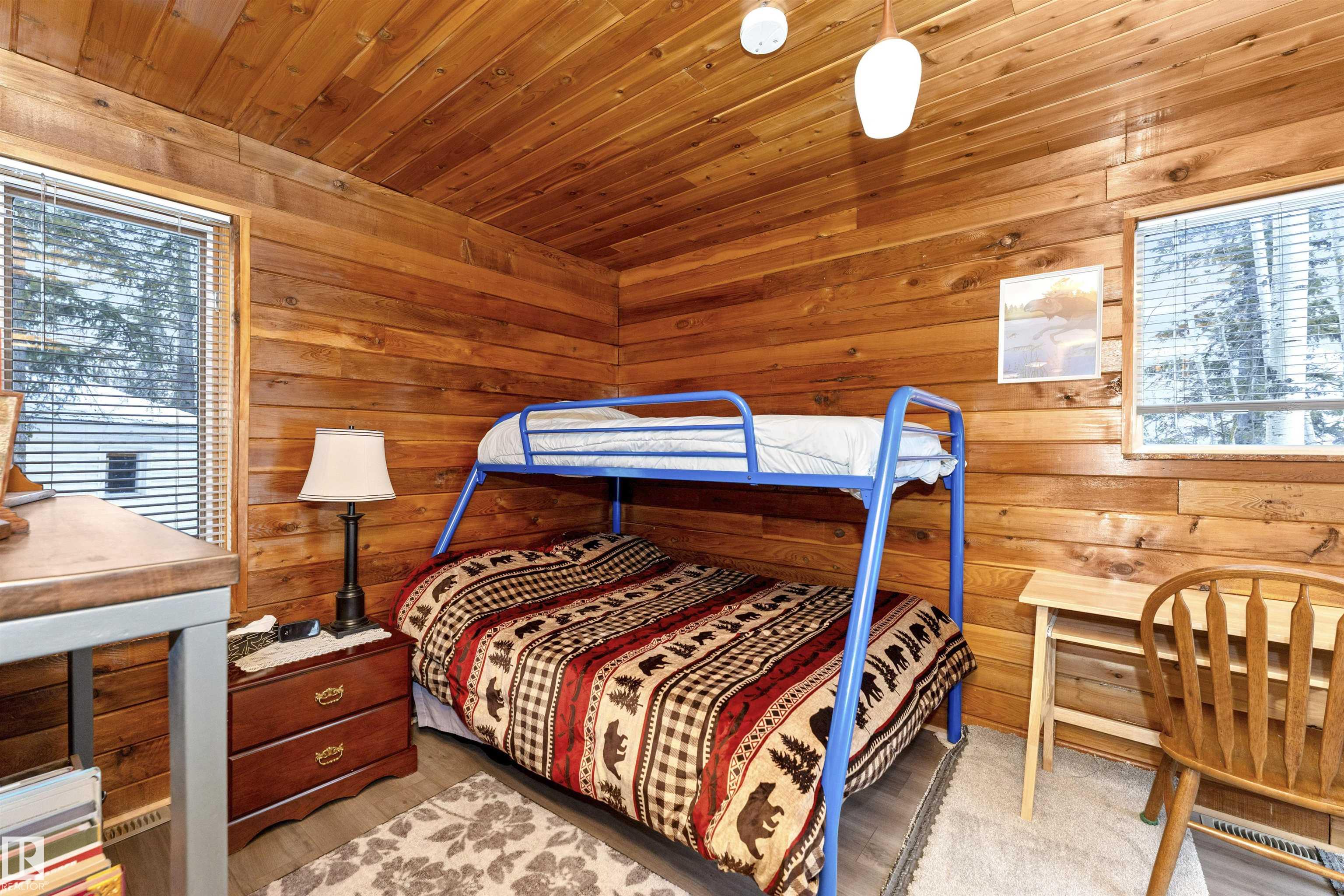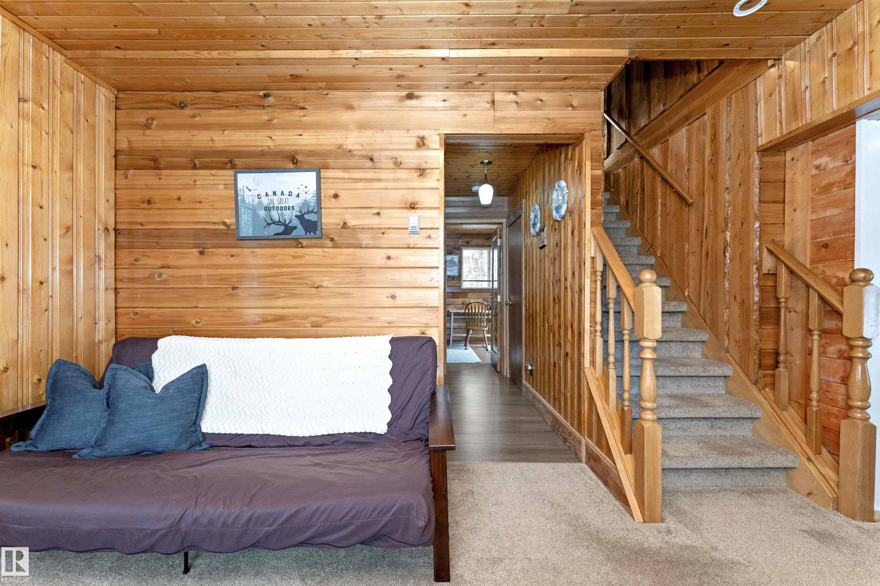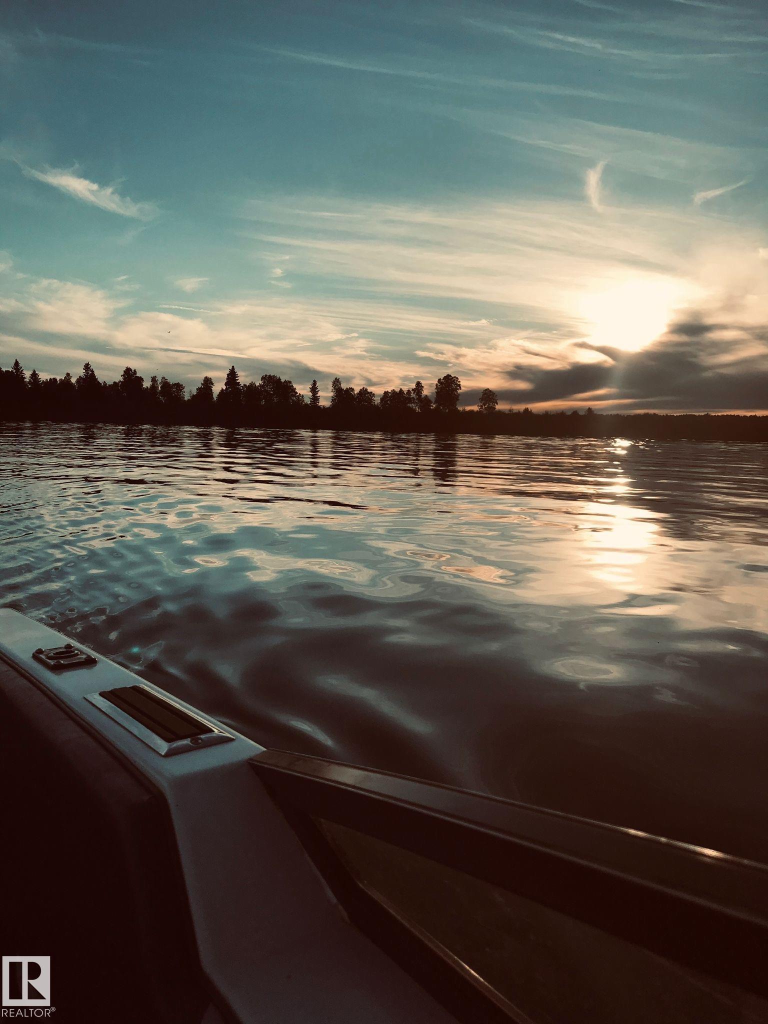 Find your year round home or relaxing get-away in your fully furnished lakeside abode. Warm inviting wood and plenty of sunshine through the numerous windows welcomes as you enter. The Living room is anchored by a stone gas fireplace that blends in with the woodsy feel. The kitchen has been redone with lots of counter space, white cupboards, S/S appliances & generous breakfast bar. Large dining area with plenty of room to entertain. One bedroom on the main level with sliding doors to the large deck. The primary bedroom has its own level with a large ensuite complete with deep tub. There is a separate den area with futon for further guests who come to visit. The home is fully emcompassed by greenery on all four sides. Tons of exterior storage & parking. This home is approx 100 meters to the lake with a dock, and boat launch! The property includes furniture, boat lift & docks. Located in the quiet community of West Cove, just 8 minutes to Darwell or 15 mins to Alberta Beach.