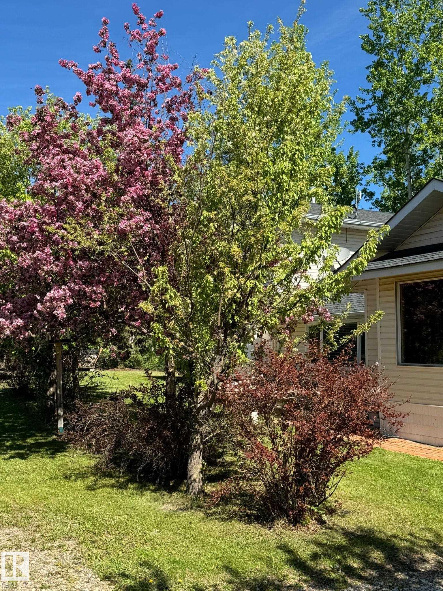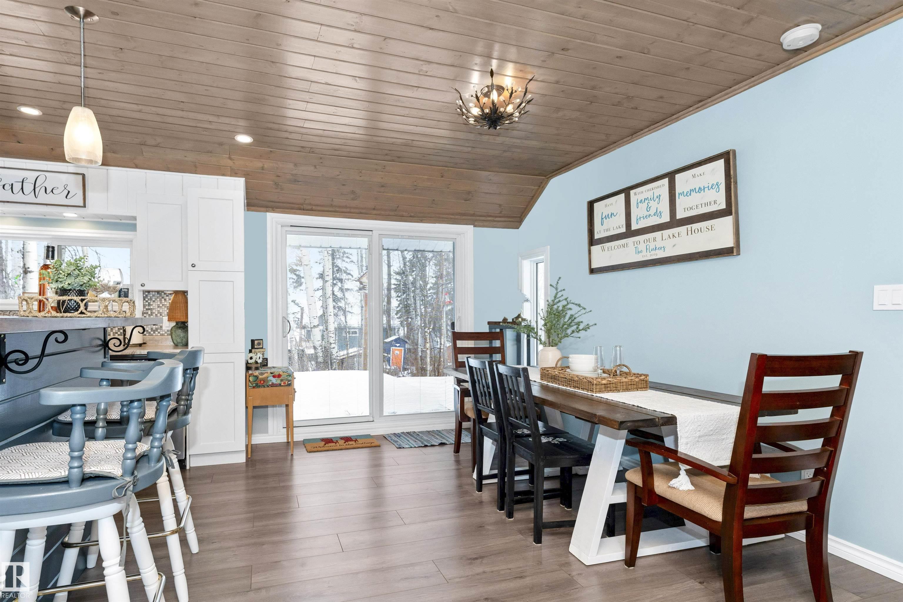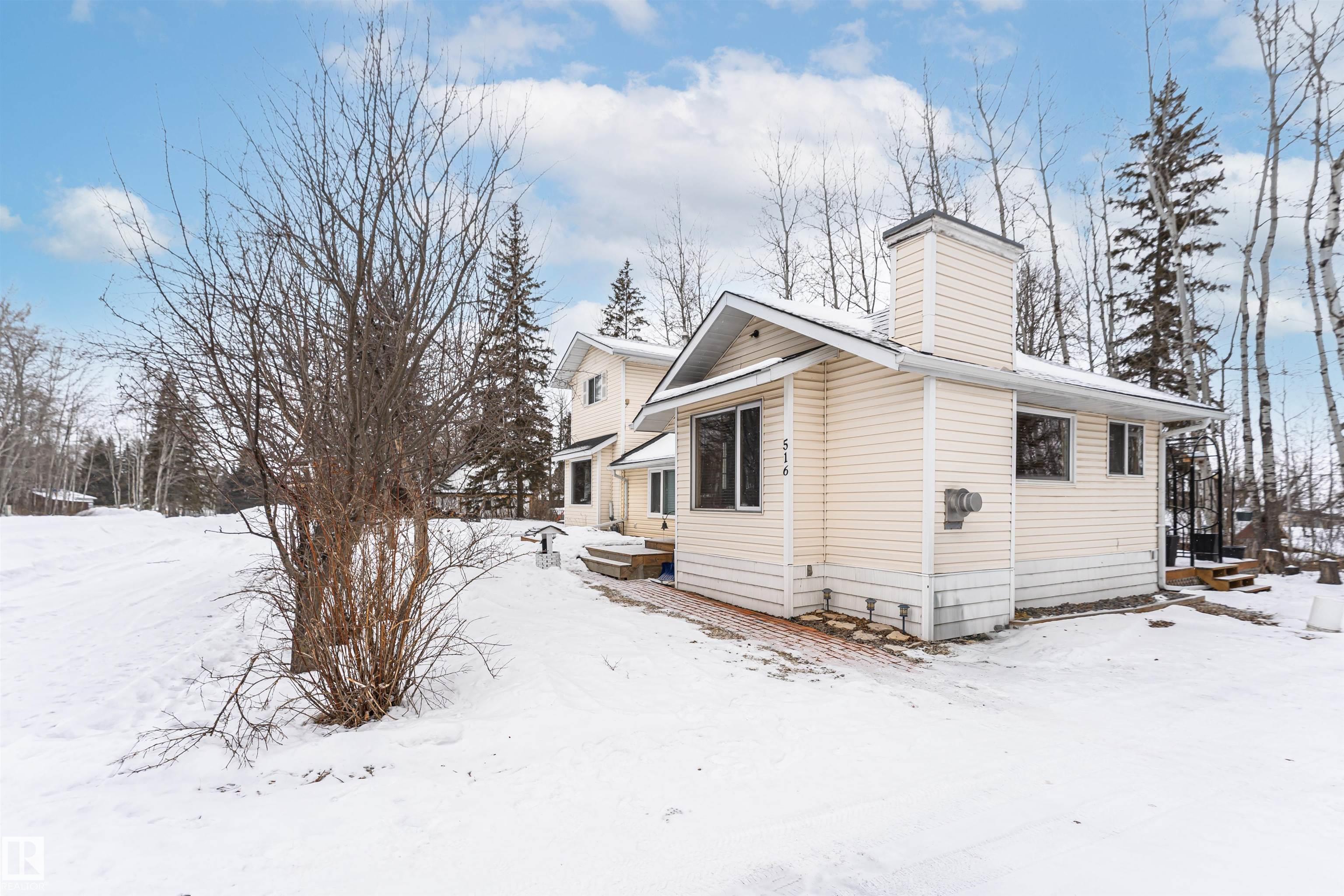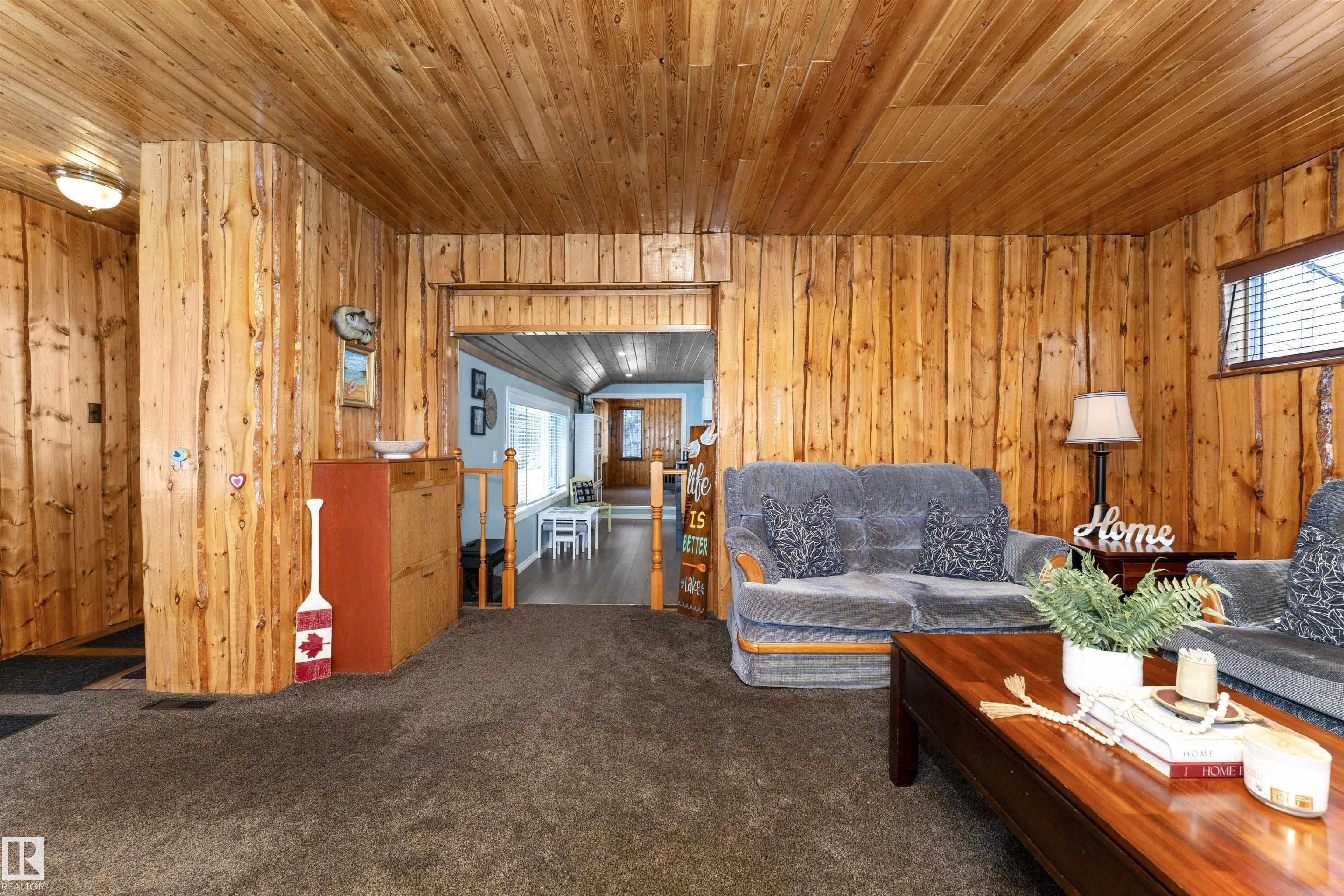 Find your year round home or relaxing get-away in your fully furnished lakeside abode. Warm inviting wood and plenty of sunshine through the numerous windows welcomes as you enter. The Living room is anchored by a stone gas fireplace that blends in with the woodsy feel. The kitchen has been redone with lots of counter space, white cupboards, S/S appliances & generous breakfast bar. Large dining area with plenty of room to entertain. One bedroom on the main level with sliding doors to the large deck. The primary bedroom has its own level with a large ensuite complete with deep tub. There is a separate den area with futon for further guests who come to visit. The home is fully emcompassed by greenery on all four sides. Tons of exterior storage & parking. This home is approx 100 meters to the lake with a dock, and boat launch! The property includes furniture, boat lift & docks. Located in the quiet community of West Cove, just 8 minutes to Darwell or 15 mins to Alberta Beach.