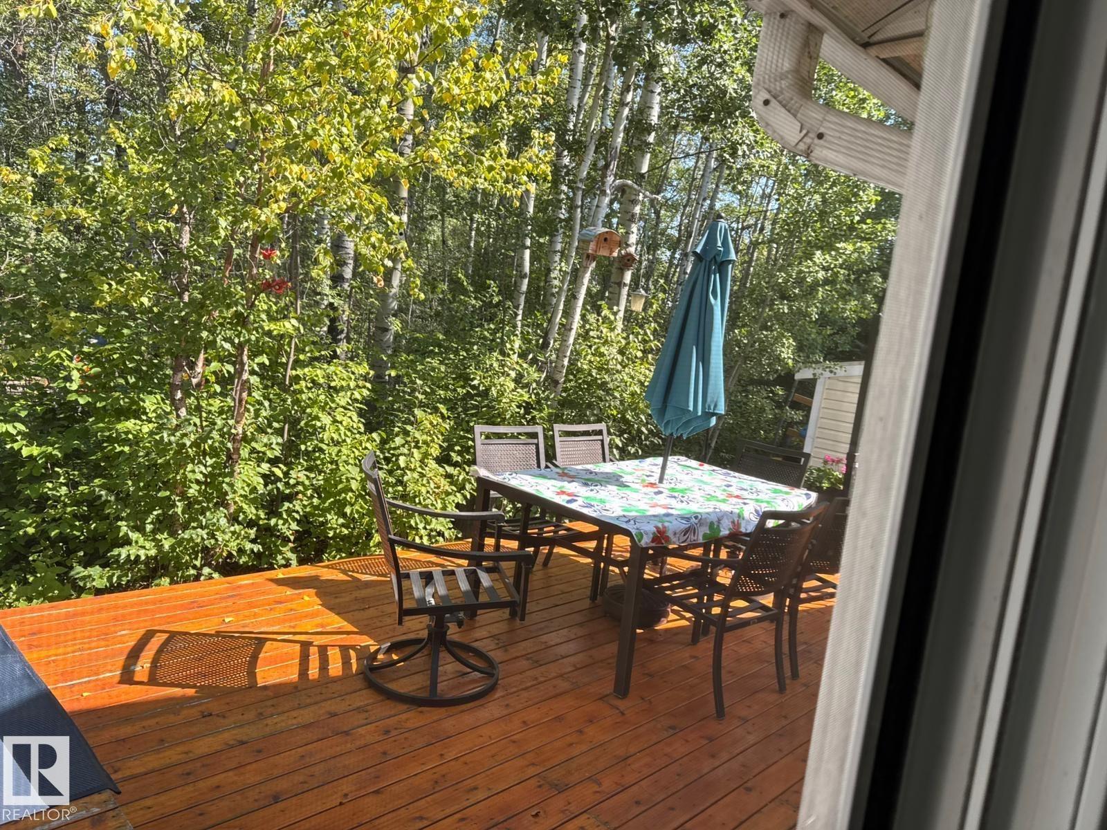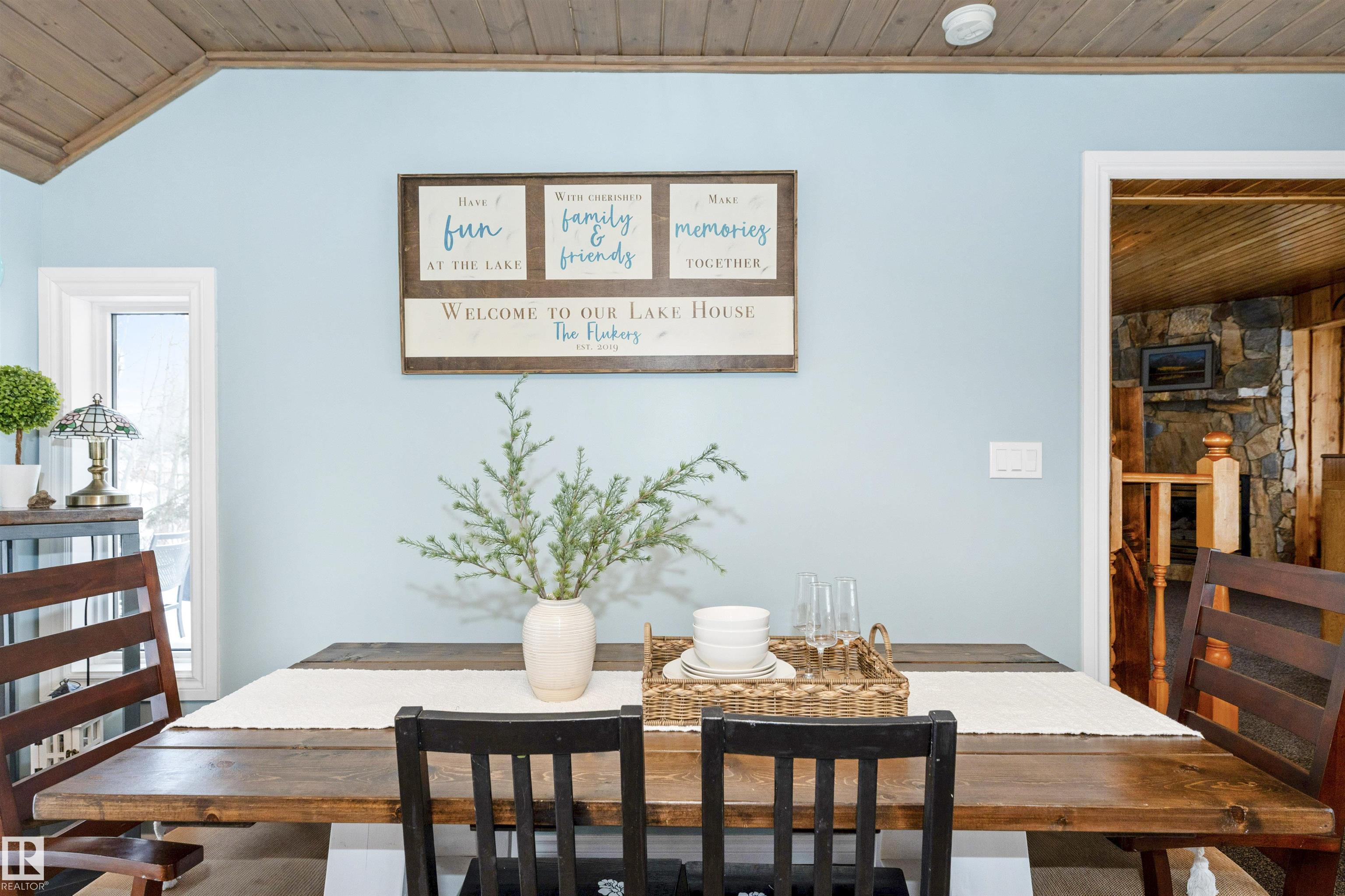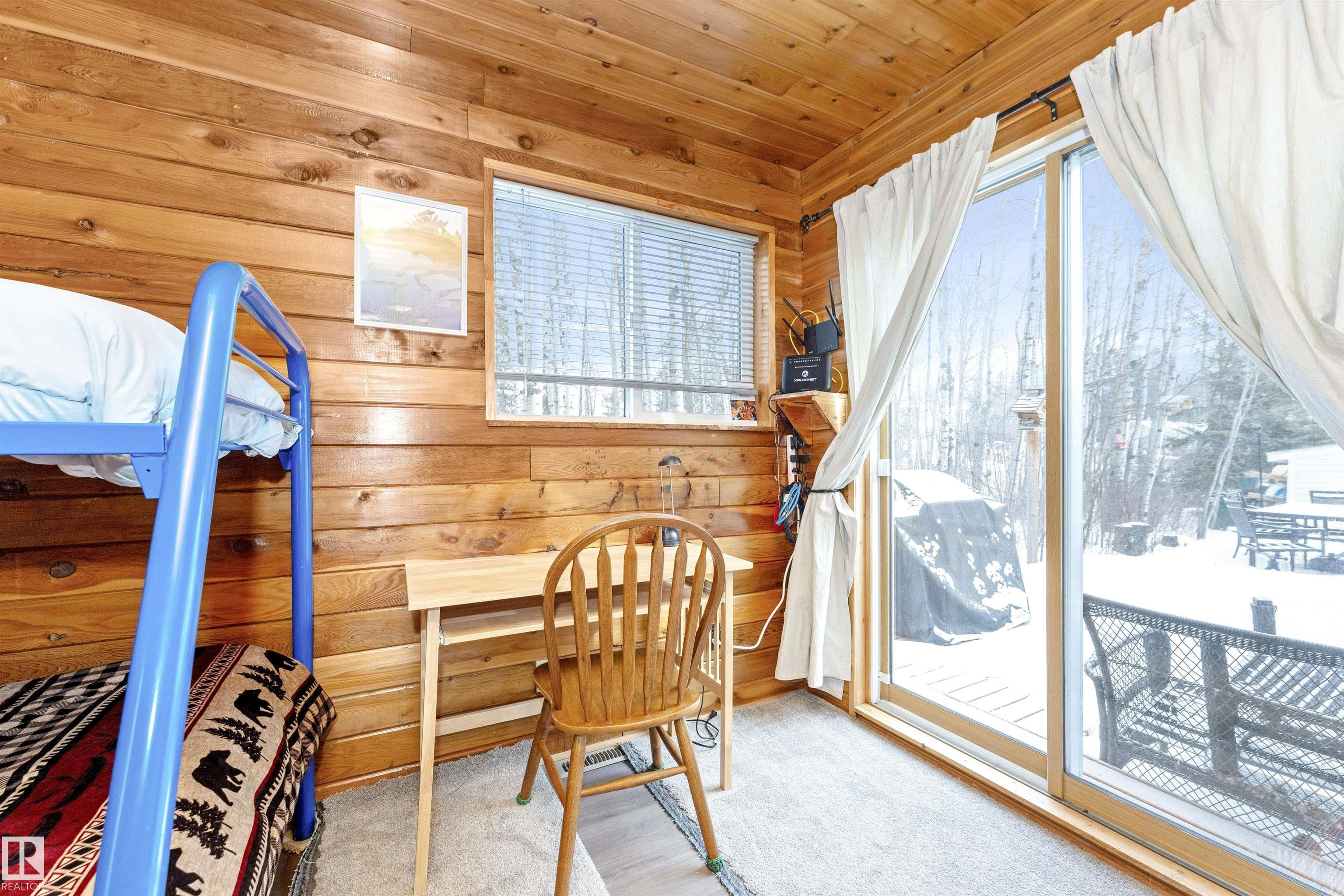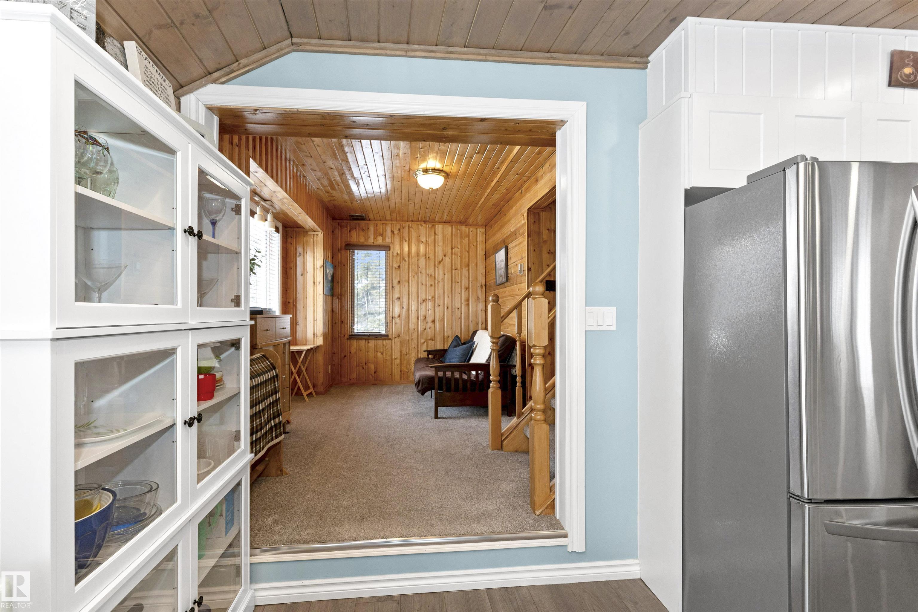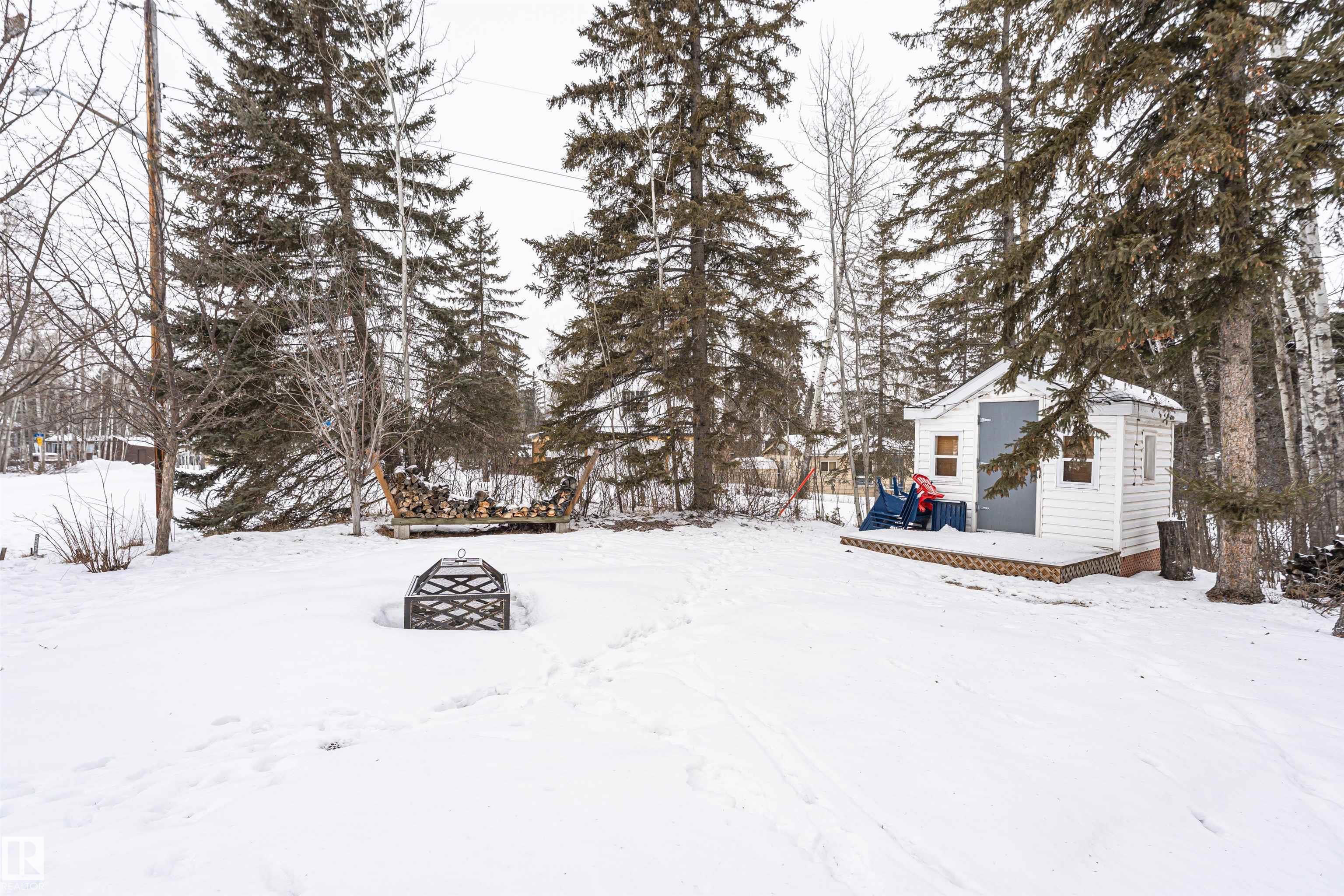 Find your year round home or relaxing get-away in your fully furnished lakeside abode. Warm inviting wood and plenty of sunshine through the numerous windows welcomes as you enter. The Living room is anchored by a stone gas fireplace that blends in with the woodsy feel. The kitchen has been redone with lots of counter space, white cupboards, S/S appliances & generous breakfast bar. Large dining area with plenty of room to entertain. One bedroom on the main level with sliding doors to the large deck. The primary bedroom has its own level with a large ensuite complete with deep tub. There is a separate den area with futon for further guests who come to visit. The home is fully emcompassed by greenery on all four sides. Tons of exterior storage & parking. This home is approx 100 meters to the lake with a dock, and boat launch! The property includes furniture, boat lift & docks. Located in the quiet community of West Cove, just 8 minutes to Darwell or 15 mins to Alberta Beach.