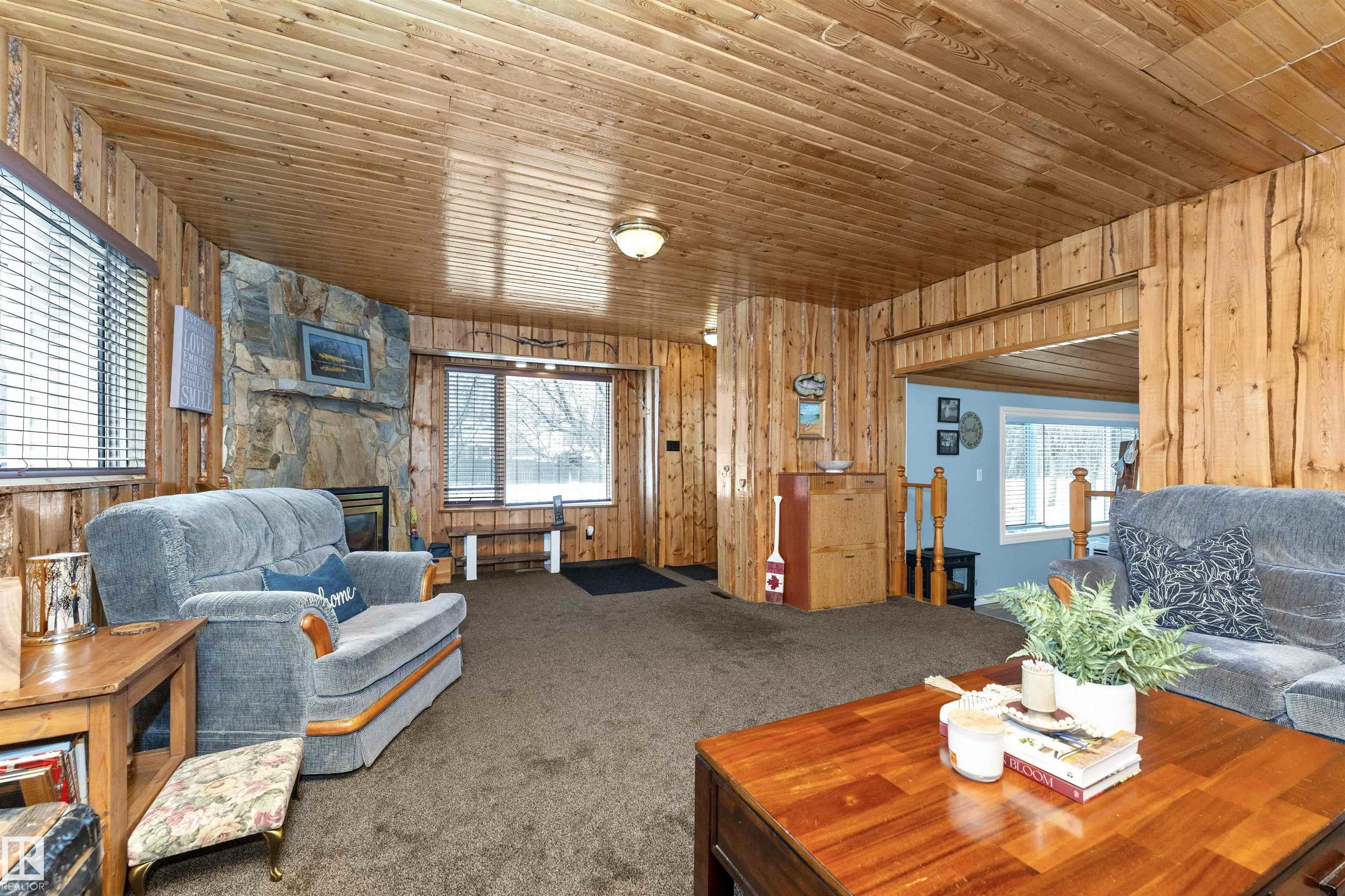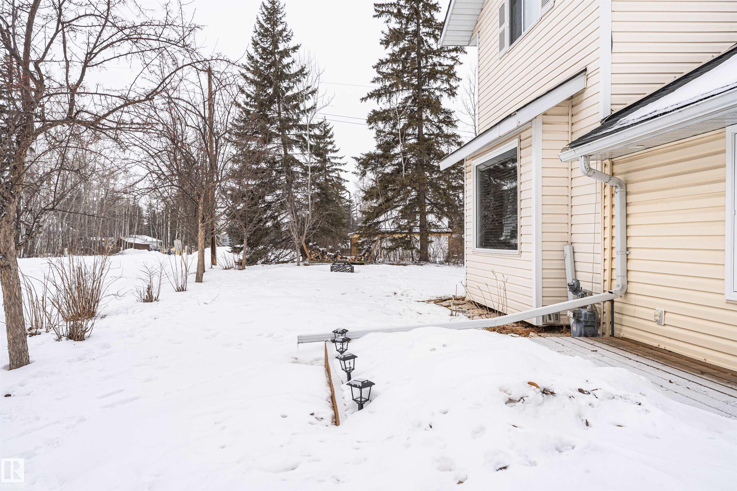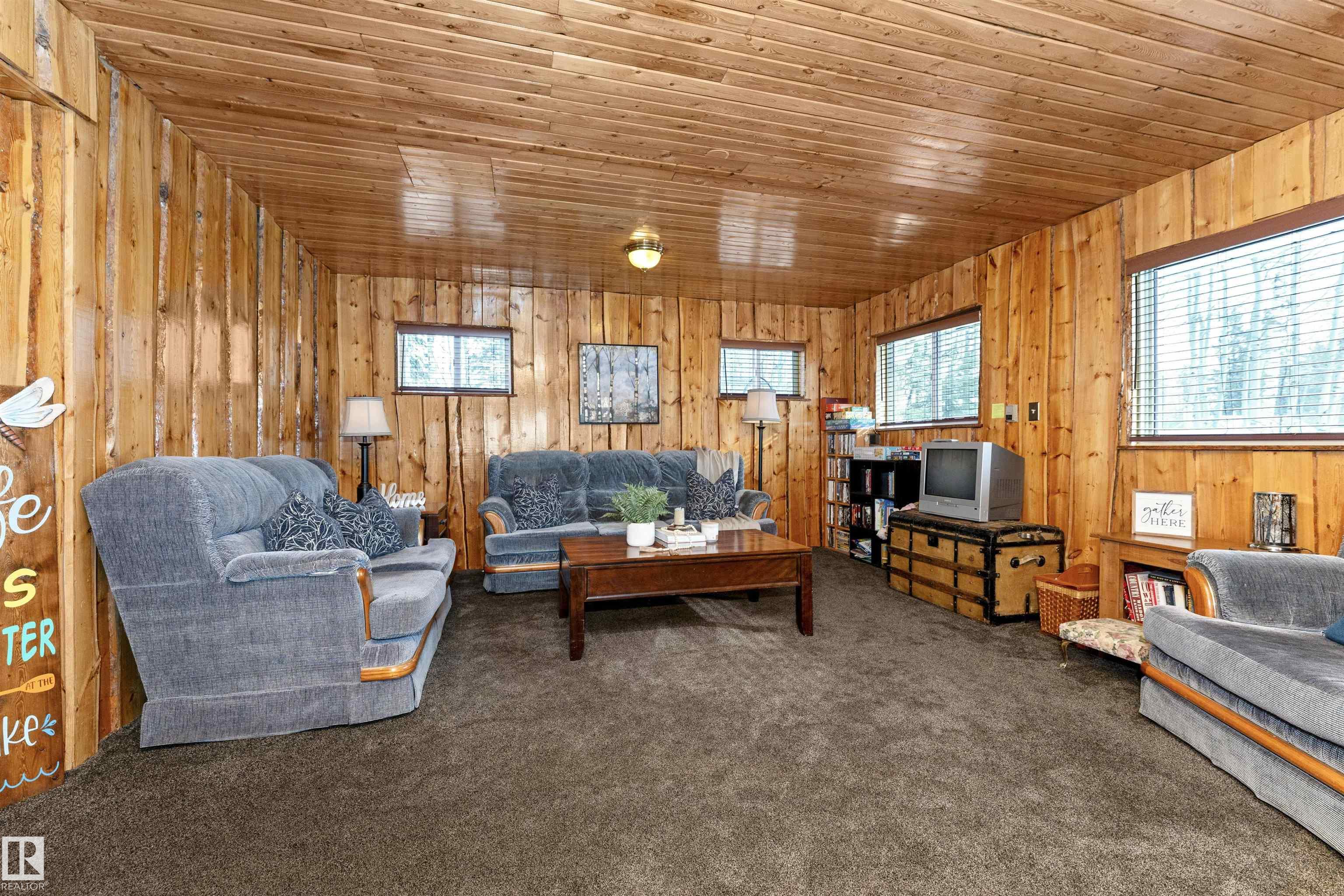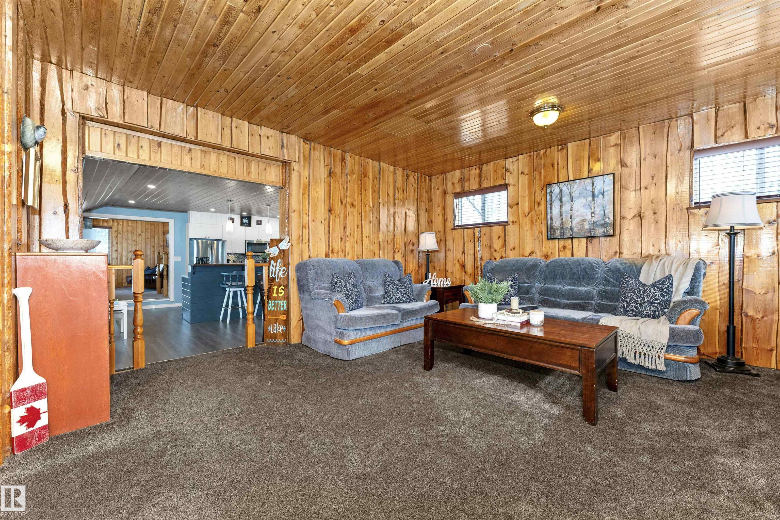 Find your year round home or relaxing get-away in your fully furnished lakeside abode. Warm inviting wood and plenty of sunshine through the numerous windows welcomes as you enter. The Living room is anchored by a stone gas fireplace that blends in with the woodsy feel. The kitchen has been redone with lots of counter space, white cupboards, S/S appliances & generous breakfast bar. Large dining area with plenty of room to entertain. One bedroom on the main level with sliding doors to the large deck. The primary bedroom has its own level with a large ensuite complete with deep tub. There is a separate den area with futon for further guests who come to visit. The home is fully emcompassed by greenery on all four sides. Tons of exterior storage & parking. This home is approx 100 meters to the lake with a dock, and boat launch! The property includes furniture, boat lift & docks. Located in the quiet community of West Cove, just 8 minutes to Darwell or 15 mins to Alberta Beach.