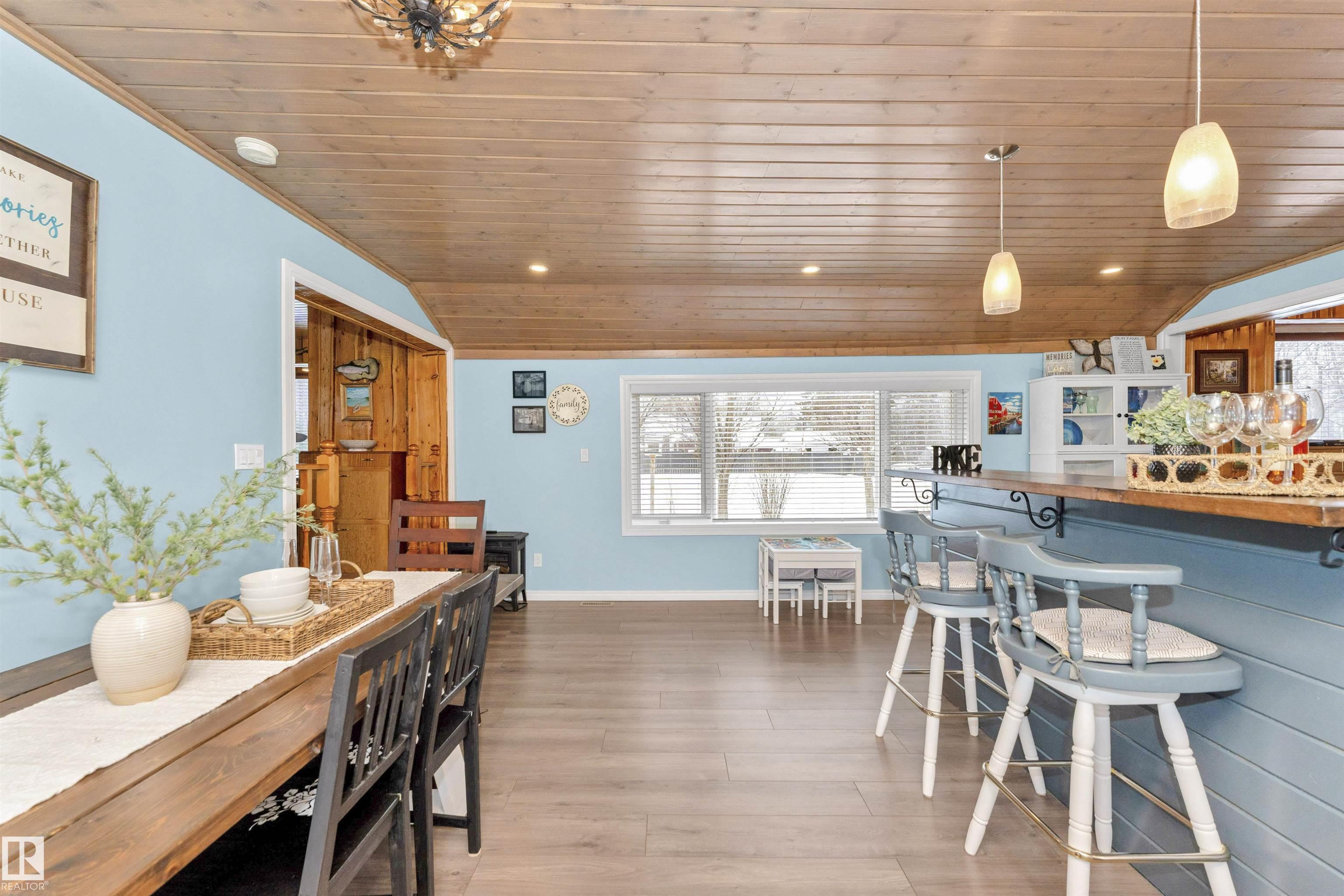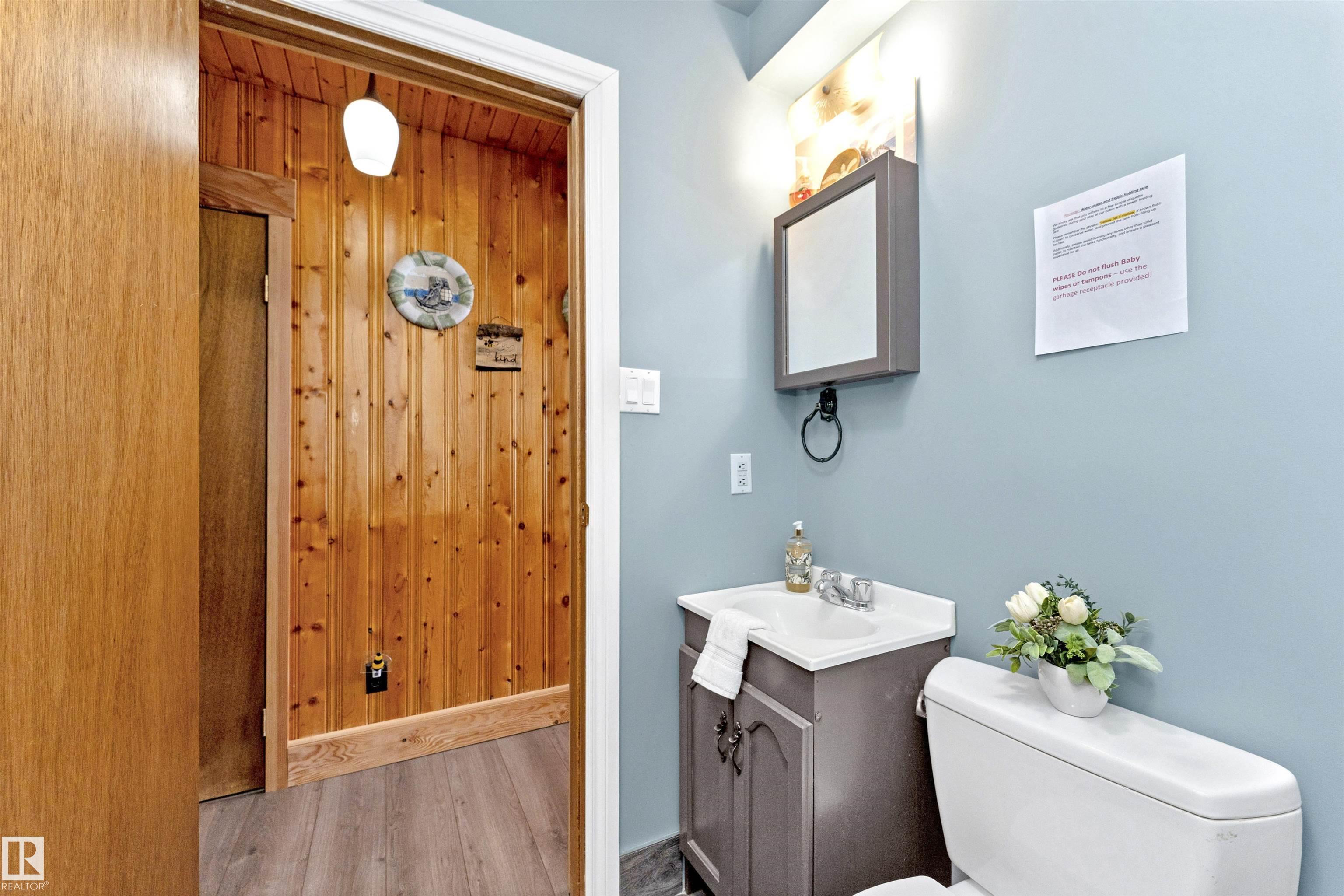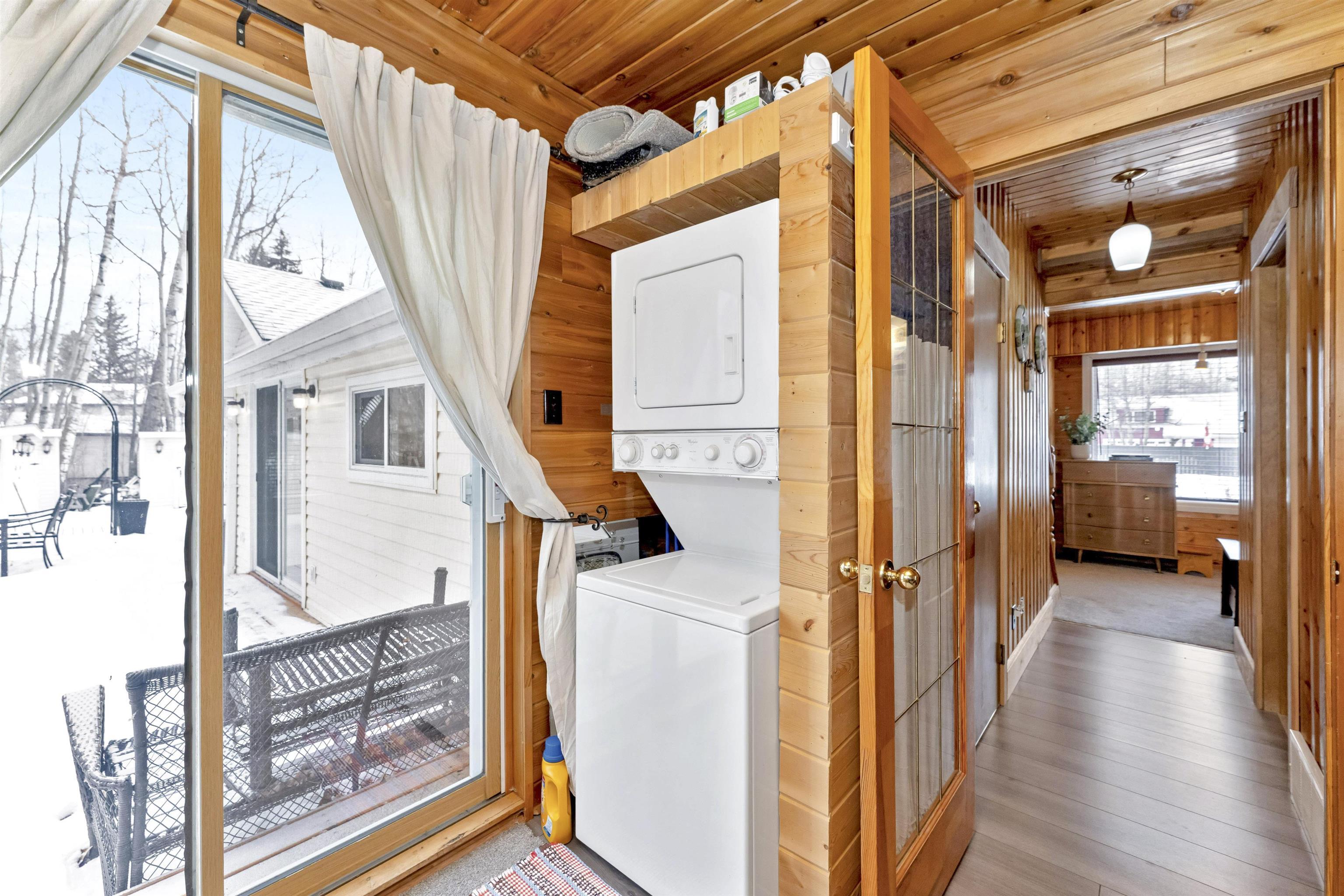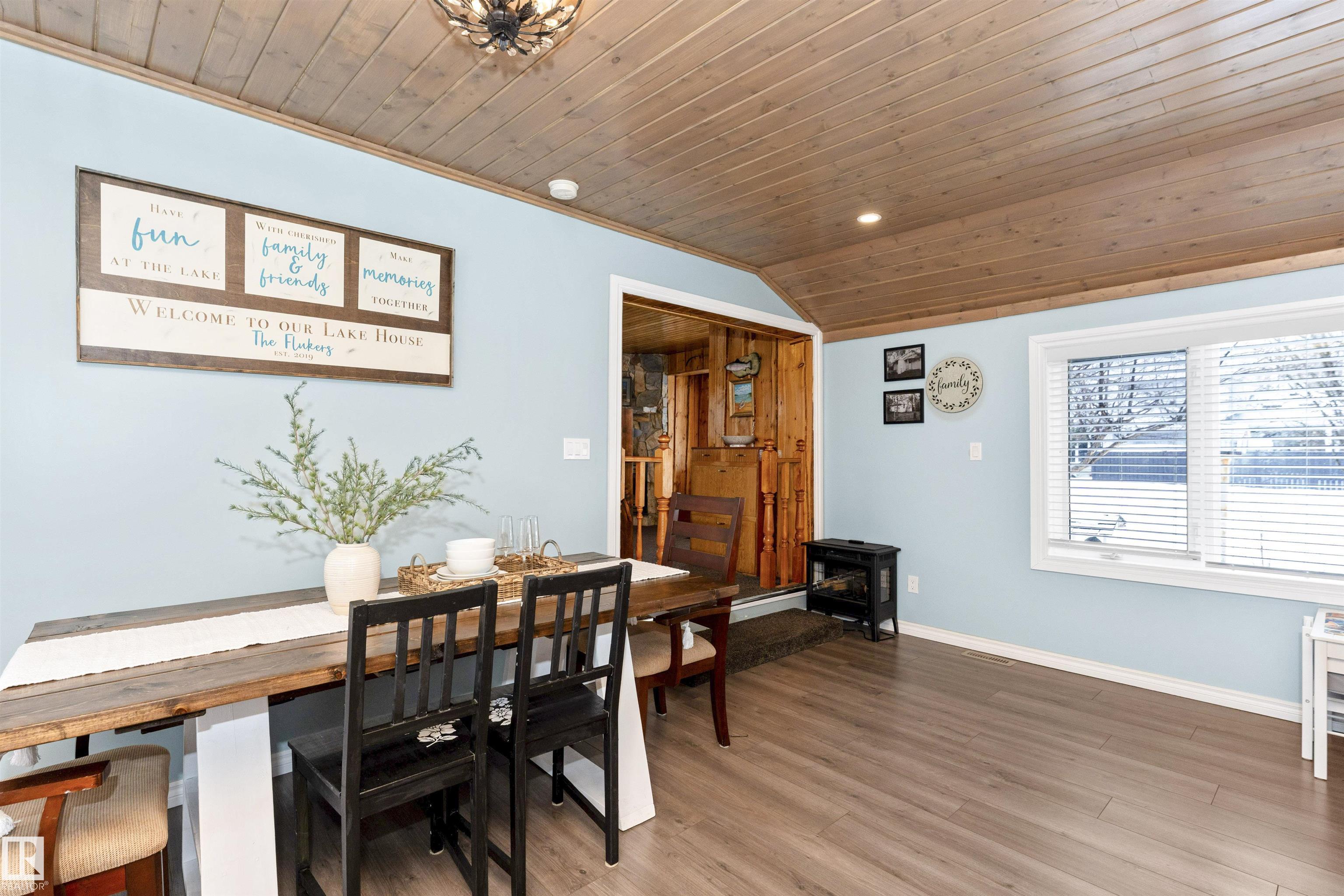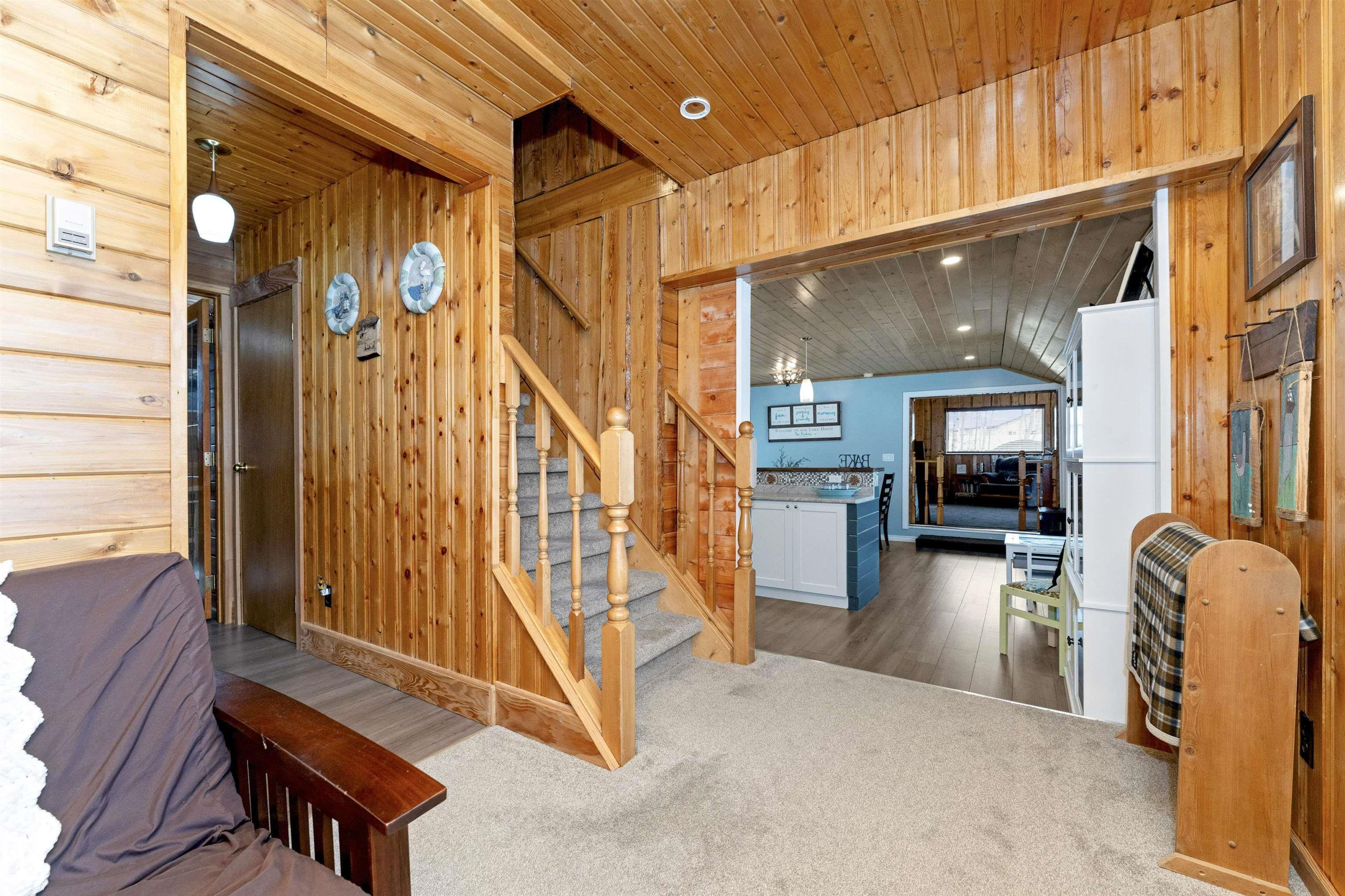 Find your year round home or relaxing get-away in your fully furnished lakeside abode. Warm inviting wood and plenty of sunshine through the numerous windows welcomes as you enter. The Living room is anchored by a stone gas fireplace that blends in with the woodsy feel. The kitchen has been redone with lots of counter space, white cupboards, S/S appliances & generous breakfast bar. Large dining area with plenty of room to entertain. One bedroom on the main level with sliding doors to the large deck. The primary bedroom has its own level with a large ensuite complete with deep tub. There is a separate den area with futon for further guests who come to visit. The home is fully emcompassed by greenery on all four sides. Tons of exterior storage & parking. This home is approx 100 meters to the lake with a dock, and boat launch! The property includes furniture, boat lift & docks. Located in the quiet community of West Cove, just 8 minutes to Darwell or 15 mins to Alberta Beach.