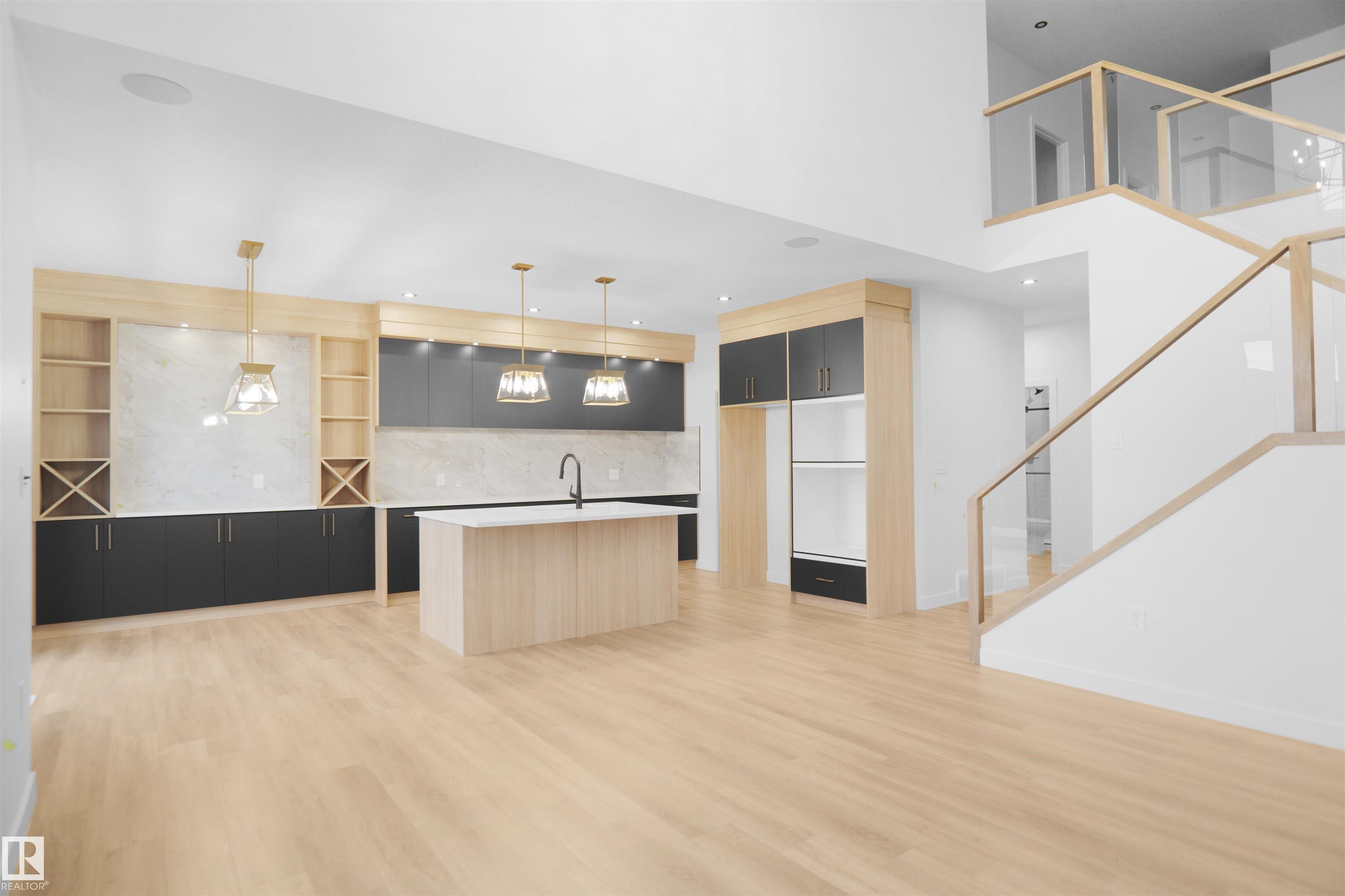 BIG Lot | Triple Car Garage | FULL PRIVATE PATIO DECK | Bonus Room + Office Space A fully custom and upgraded home in the community of McLaughlin sounds like a dream! This home COMES with 4 bedrooms, 3 full baths, bonus room & 9ft ceilings on all three levels. Main floor offers vinyl plank flooring, bedroom/den, family room with 18ft ceiling, fireplace. BIG Kitchen with modern high cabinetry, quartz countertops, island . Spacious dinning area with ample sunlight is perfect for get togethers. The 3 piece bath finishes the main level. Walk up stairs to master bedroom with 5 piece ensuite/spacious walk in closet, 2 bedrooms, 4 piece bath, laundry and bonus room. Public transit to Edmonton, & more than 40 km of trails your dream home home awaits. includes WIRELESS SPEAKERS/ TRIPLE PANE WINDOWS/DECK WITH GAS BBQ HOOKUP