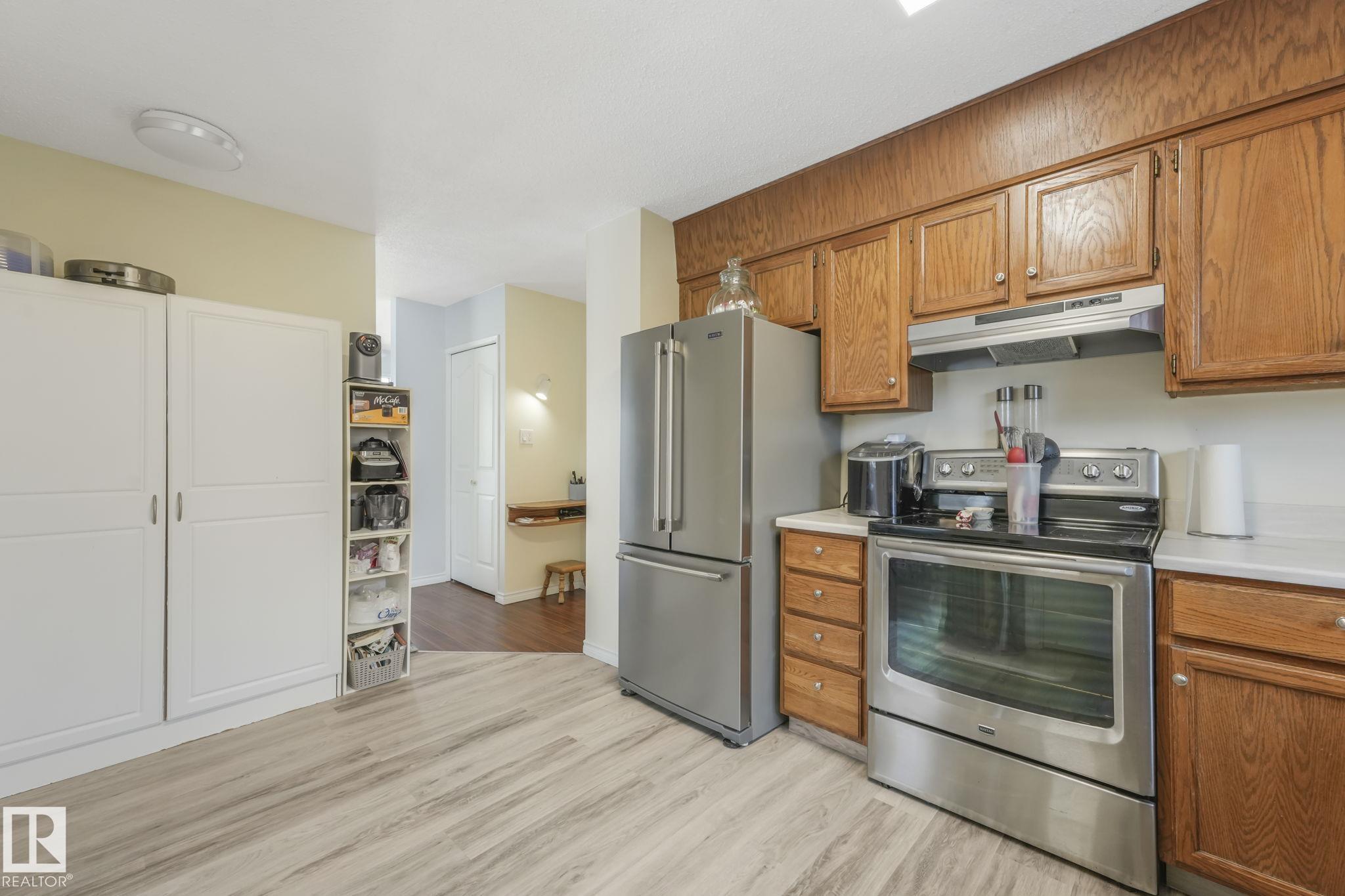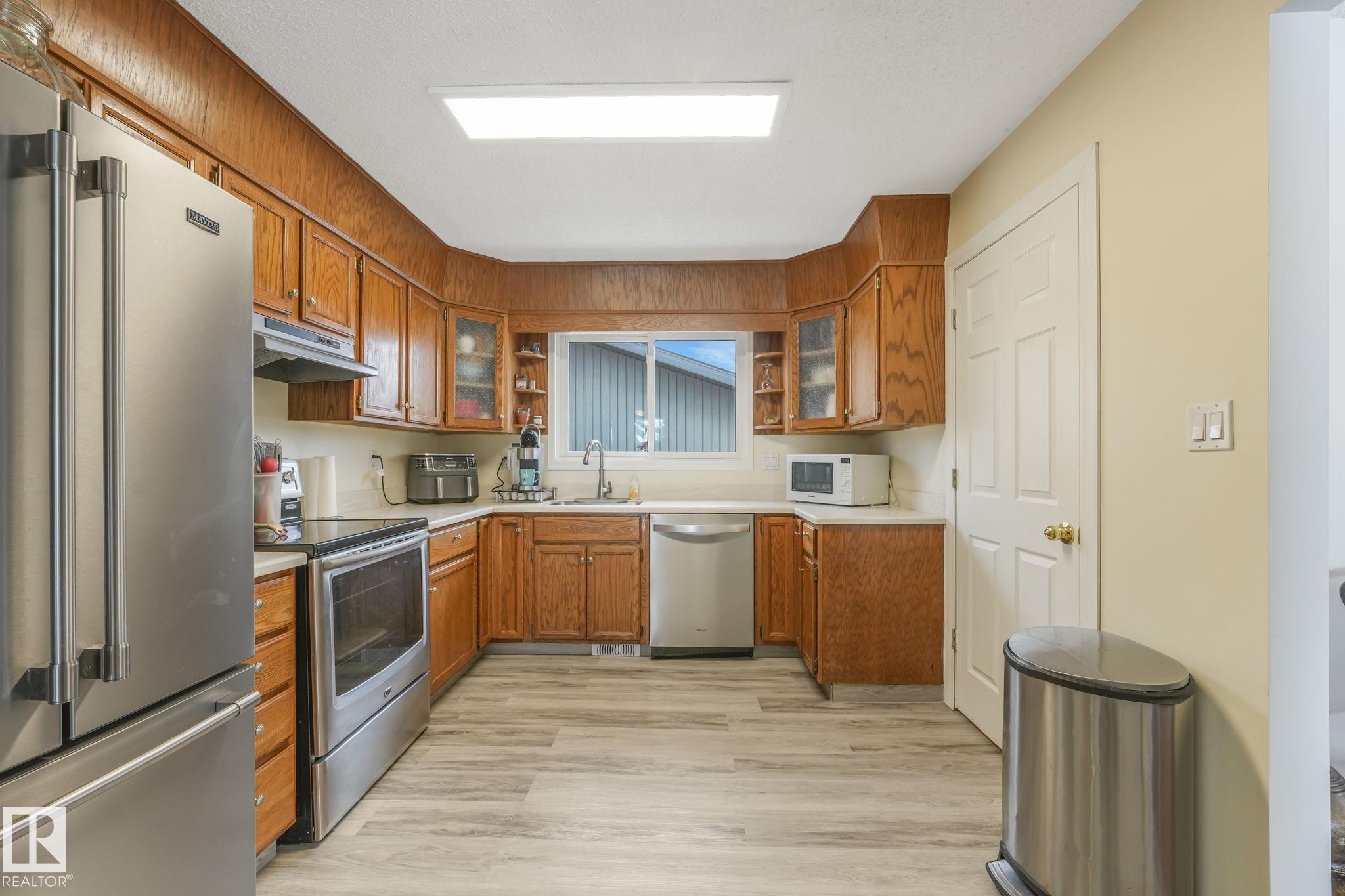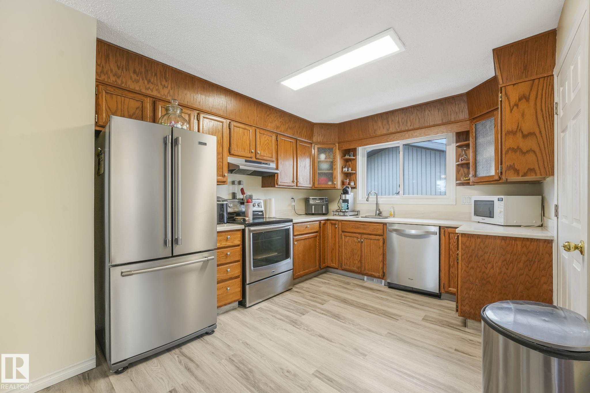 Outstanding Bi-level home on Parker Manor near parks, schools, and gorgeous walking trails. At 1319 sq ft, this home has everything you need from a good size kitchen with Corian countertop(2020) newer appliances, dishwasher(2023), fridge(2024), stove(2021),Microwave hood fan(2024). Neutral color scheme throughout the home that was freshly painted. The dining area opens into the large living room that holds a beautiful wood burning fireplace. The home has some new windows & newer light fixtures. The primary bedroom has a walk-in closet & 3-piece ensuite. The 2 other bedrooms are generous sizes. The 4 piece main bath has been updated. The lower level has a large living room including a gas fireplace & is attached to the 2nd kitchen & walk down the hall to find the 3 bedrooms & a 4 piece bath. The large windows allow a lot of natural light in this whole home. The backyard features a lg deck, backing onto a green space. The oversized heated garage has room for 3 vehicles but a double door.