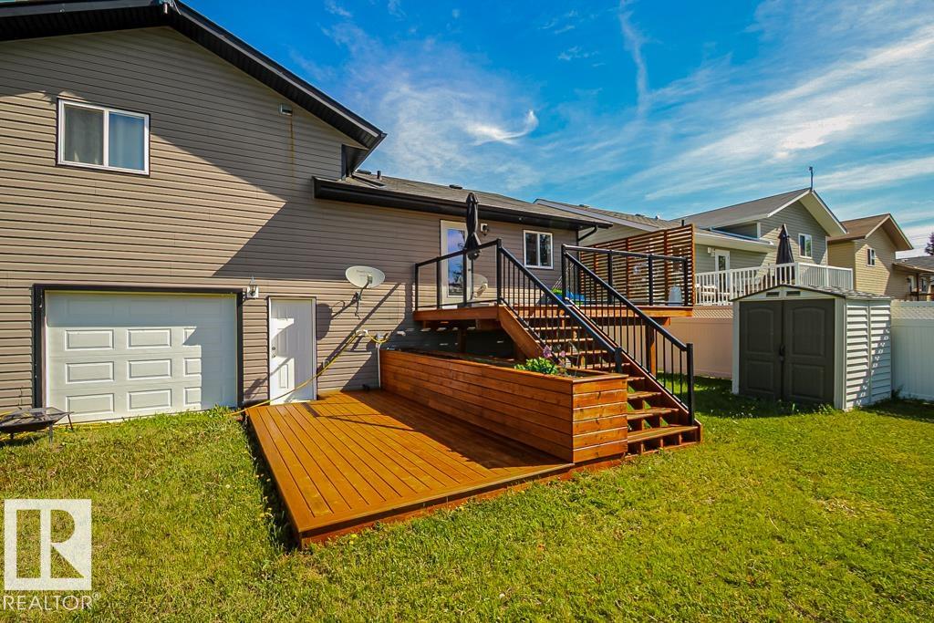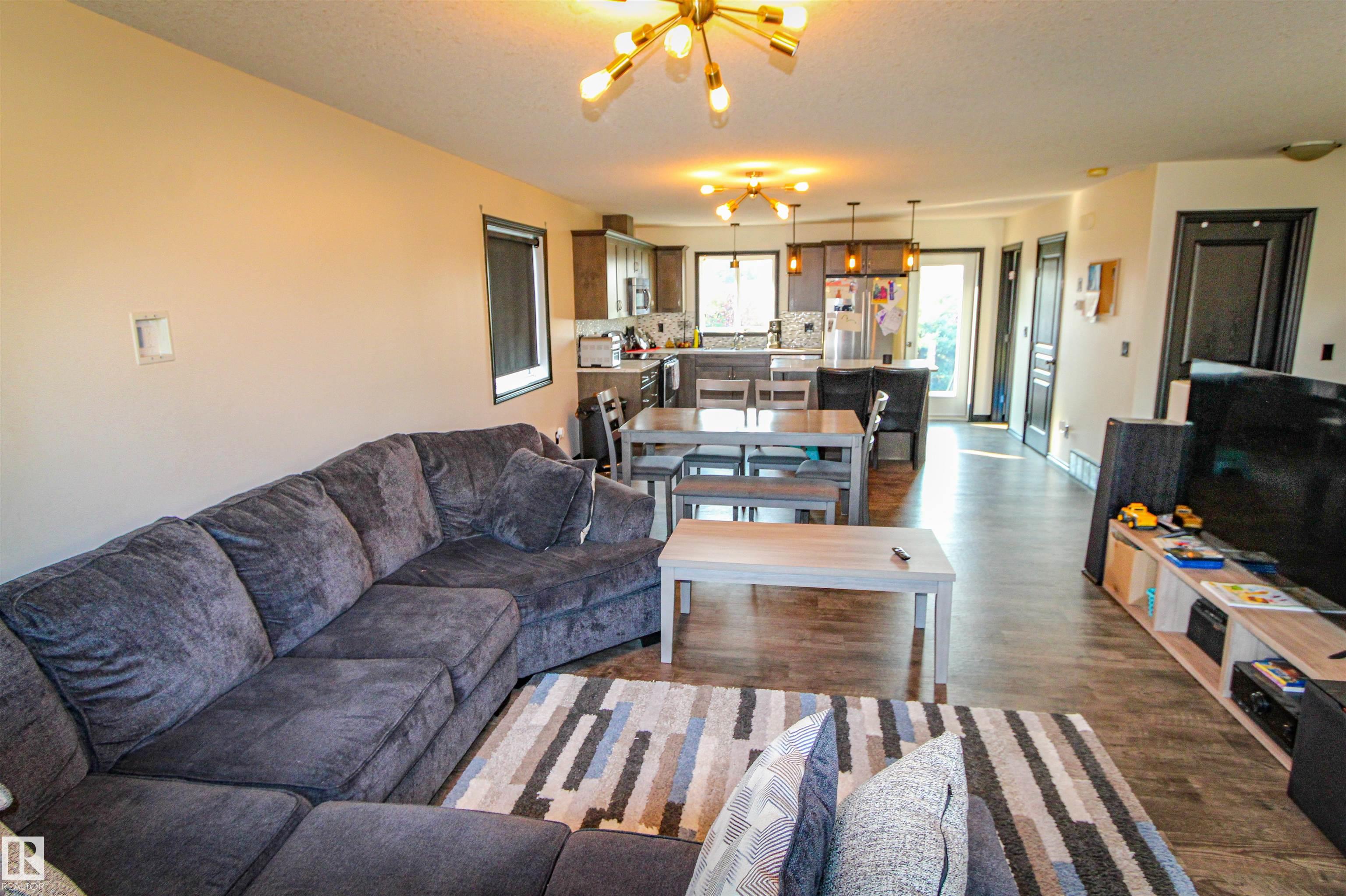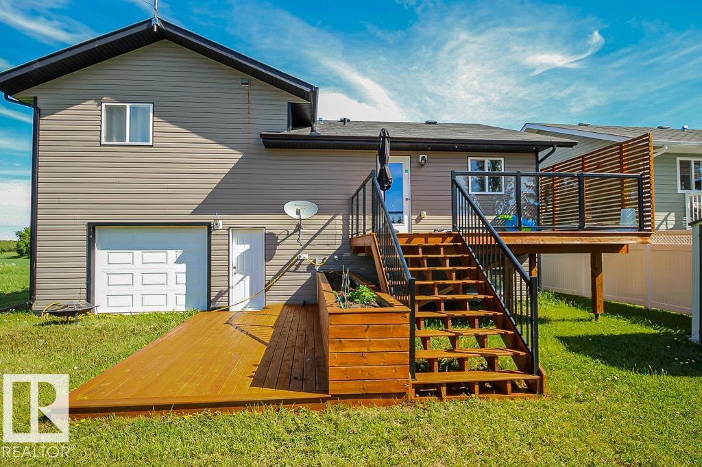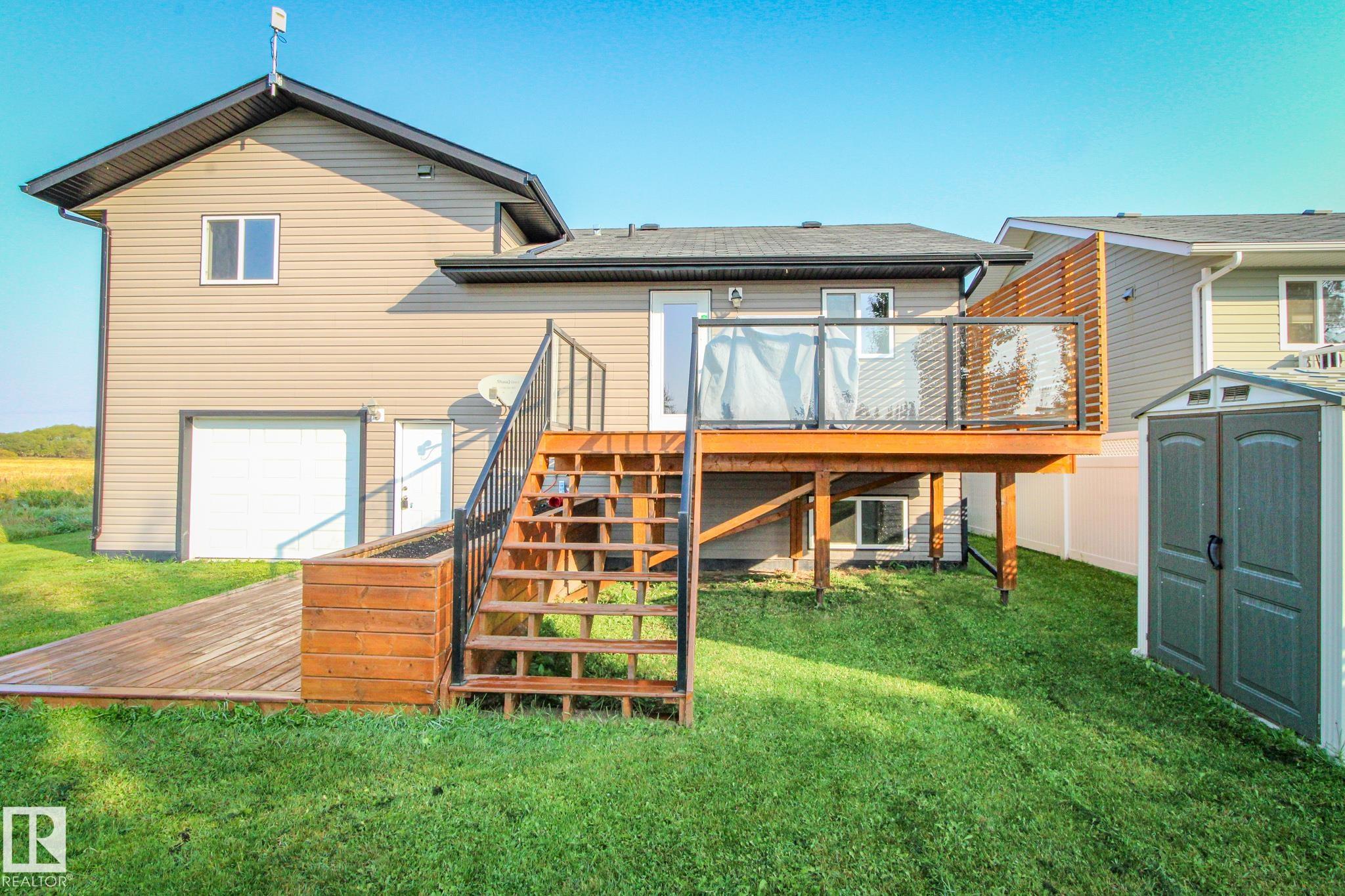 Modern and move-in ready, this 2014-built home has been thoughtfully refreshed throughout. The open-concept main floor is ideal for everyday living and entertaining, featuring a spacious kitchen with a large island and seamless access to a two-tier, South facing deck. Located at the end of a no-exit road and backing onto open farmland, the property offers added privacy and a quiet setting while still being within town limits and close to amenities. The primary bedroom includes a walk-in closet and a three-piece ensuite. Two additional bedrooms complete the upper level. The fully finished basement provides additional living space suitable for a family room, recreation area, or home office. Outside, the landscaped yard and large attached pull-through garage offer practical functionality and year-round convenience. A well-maintained home in a desirable edge-of-town location, offering space, comfort, and a peaceful setting.