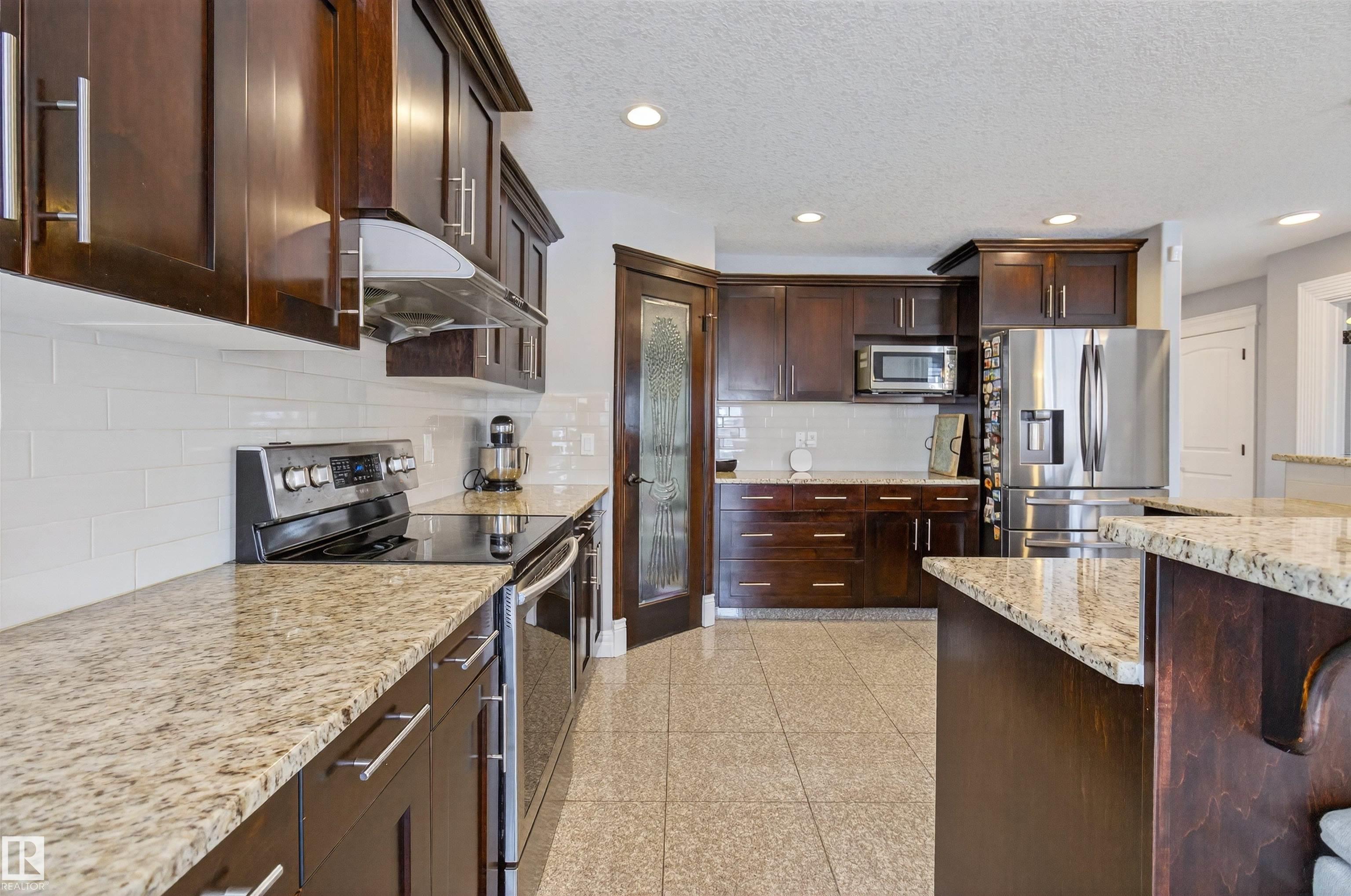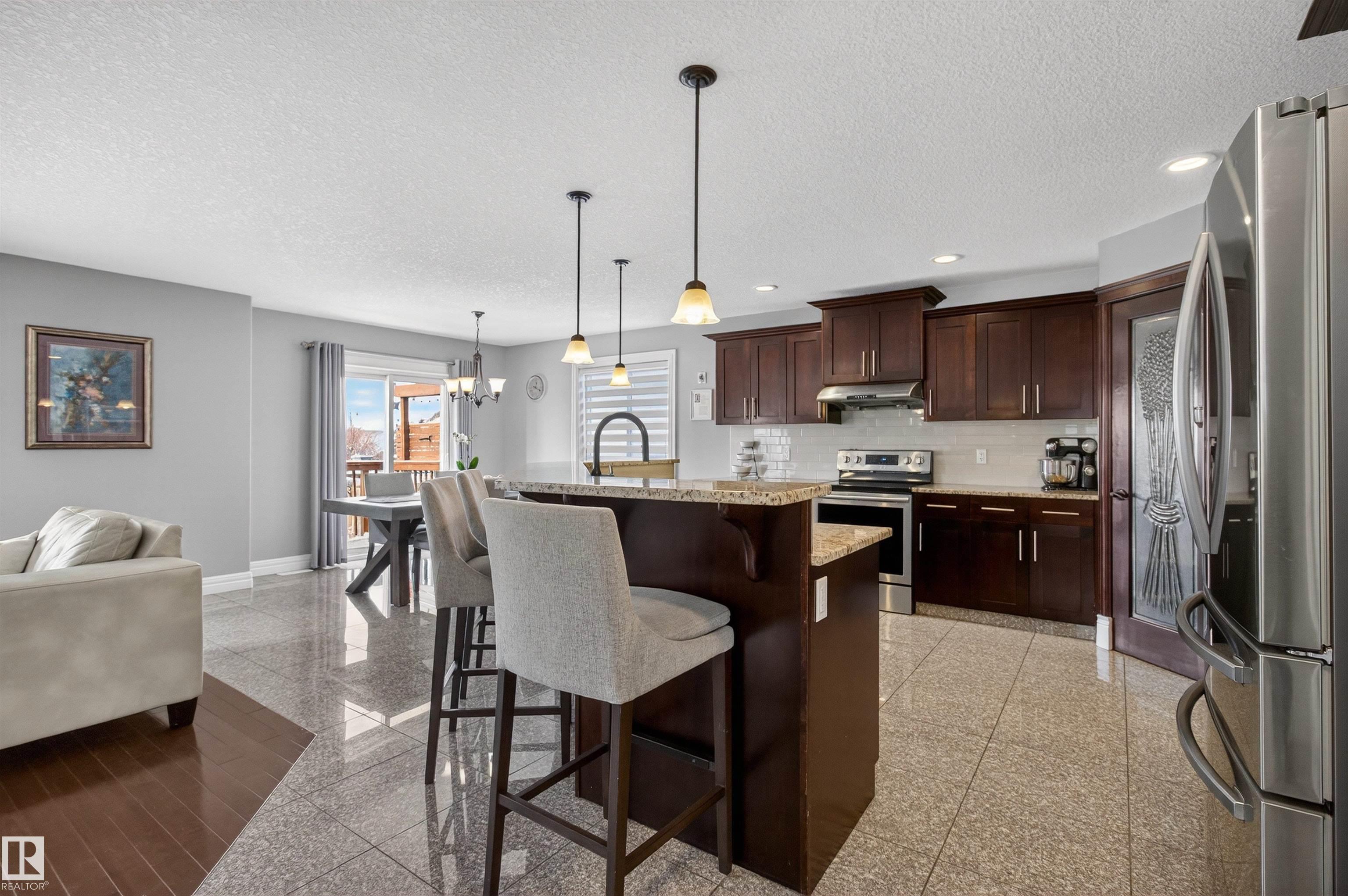 It's easy to fall in love with this one! Simply GORGEOUS from top to bottom! Featuring a huge entry way with granite floors and soaring ceilings. Nearly 2500 square feet plus a FULLY FINISHED basement. Beautiful kitchen with rich cabinetry, eating bar, pantry, stainless steel appliances and a large dining area. An open and spacious living room with attractive gas fireplace, main floor flex room/office, powder room and laundry area. Generous Bonus Room and 4 BEDROOMS UPSTAIRS! The 5th bedroom is in the basement plus a family room, bathroom and storage space. The Primary Bedroom features a luxurious ensuite and walk-in closet. Central A/C and NEWER HWT. Enjoy those beautiful sunsets from your private west-facing backyard! Lovely deck, fruit trees, underground sprinklers and an OVERSIZED & HEATED double attached garage. Fantastic location, just steps to the park and trails and within walking distance to schools. Close to shopping, transit and great amenities! Visit REALTORŪ website for more information.