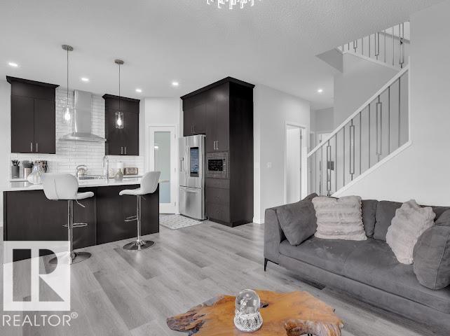 Built in 2023 by Morrison Homes, now part of the award-winning Cantiro Homes Group, this pristine single-family detached home with front-attached double garage shows like new. Featuring 9-ft ceilings and a bright open-concept layout, the main floor offers an elegant electric fireplace and wood staircase with iron spindles. The modern kitchen includes maple cabinetry, quartz countertops, stainless steel appliances, chimney hood fan, built-in microwave, and smart fridge. Blinds throughout. Total 4 bedrooms, including a main-floor bedroom with full bath. Upstairs offers 3 spacious bedrooms with walk-in closets and a large bonus room. Quartz and maple finishes in all baths. Fully landscaped with deck and fencing. Oversized driveway fits 4 SUVs plus double garage. Prime location near 50 Street, transit, schools, parks, and shopping. Furniture negotiable.