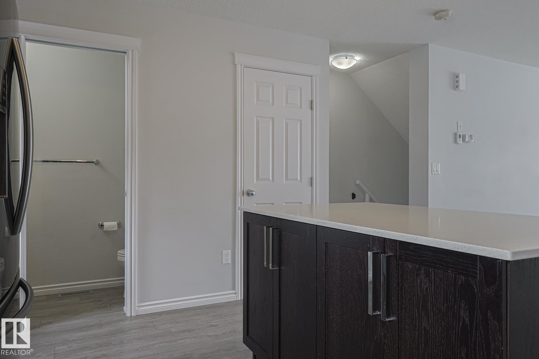 Young Professionals & Couples, this beautiful 3 Bedroom townhome with double attached garage in the highly desirable community of Aspen Trails offers stylish, low-maintenance living with all usable space above grade. Ideal main level flex room for home office, gym or additional living space, along with dedicated laundry space. The upper level showcases functional/social hub with kitchen centered around a functional quartz island with overhang, flowing seamlessly into the dining and living areas. Convenient 2 piece powder room located just off the kitchen. Step outside to the west facing balcony for evening BBQs & enjoying sunsets. Upper level is private zone with 3 spacious bedrooms & 4pce bath for family/guests. The primary suite features a private 4pce ensuite with walk in closet. Both baths with quartz counters. Complete with all appliances, AC & heat recovery ventilator. Located close to parks, scenic trails, shopping & everyday amenities with easy access to Highway 16 & Anthony Henday Drive.
