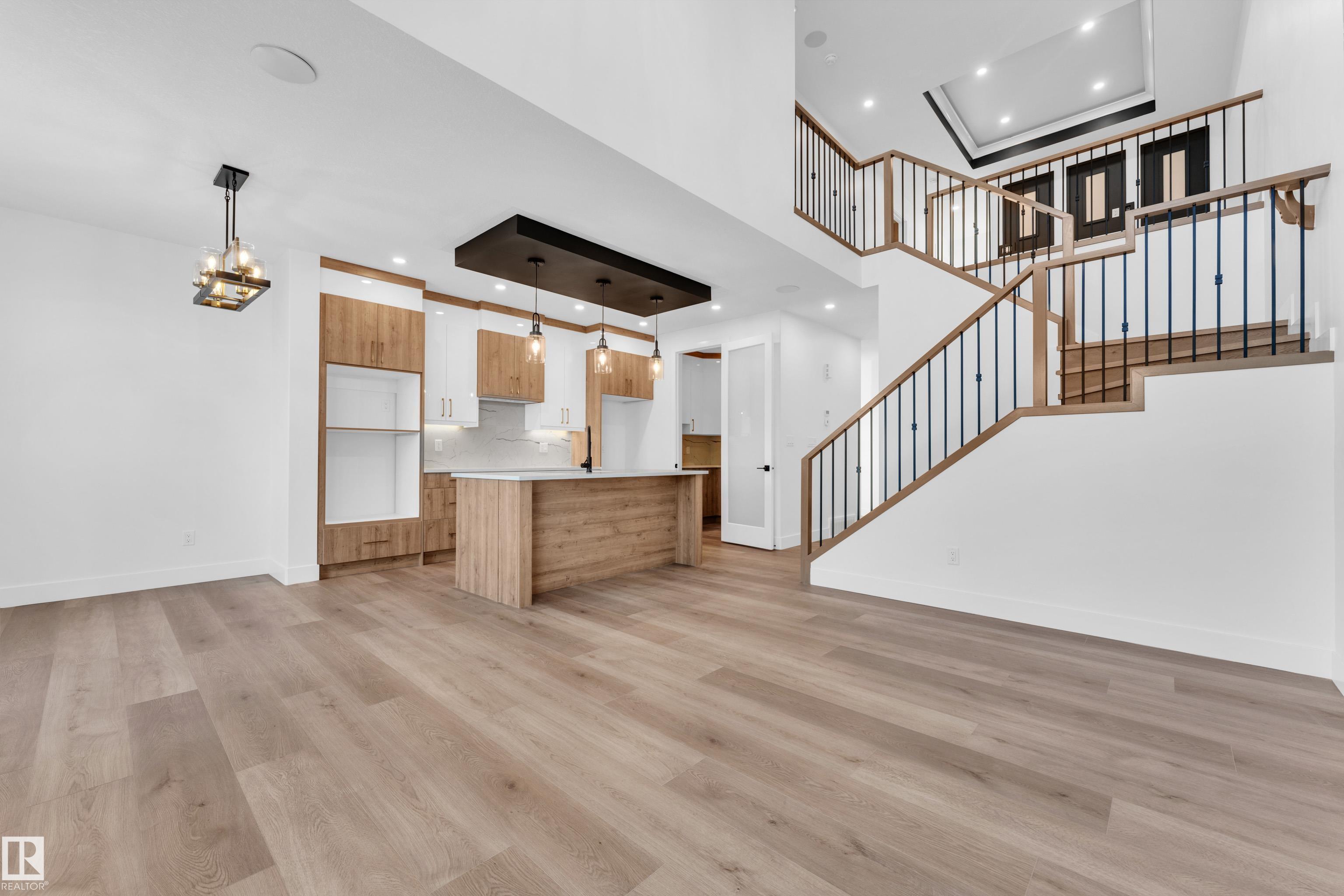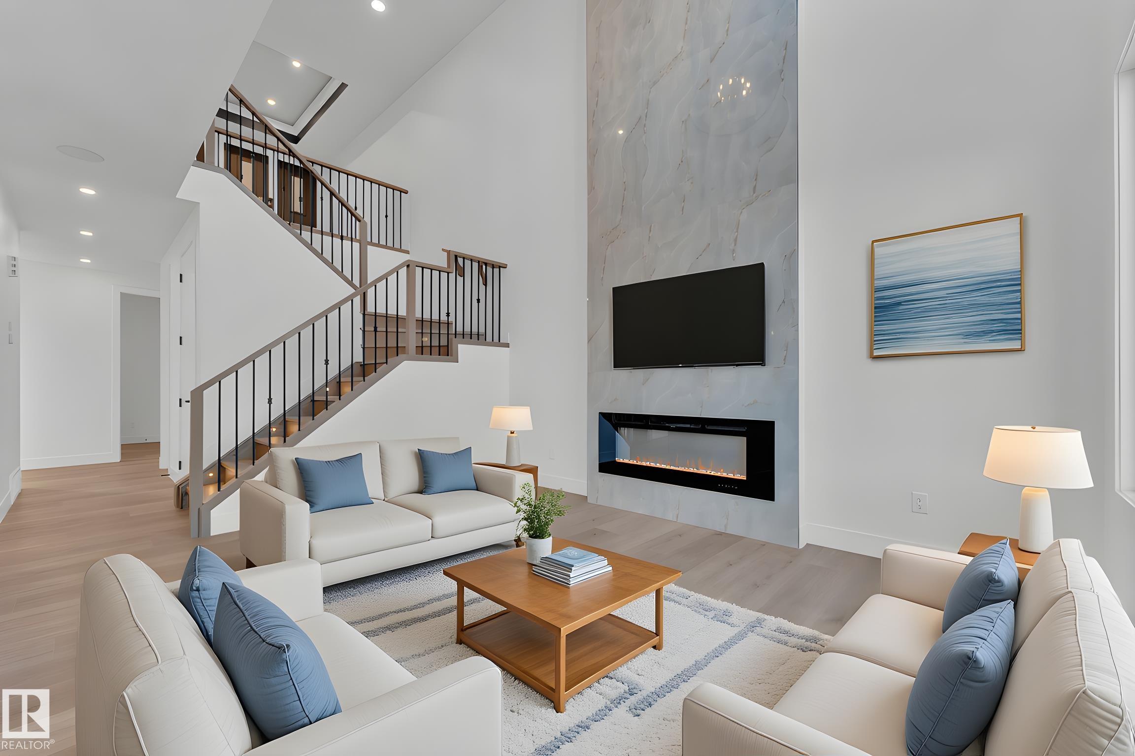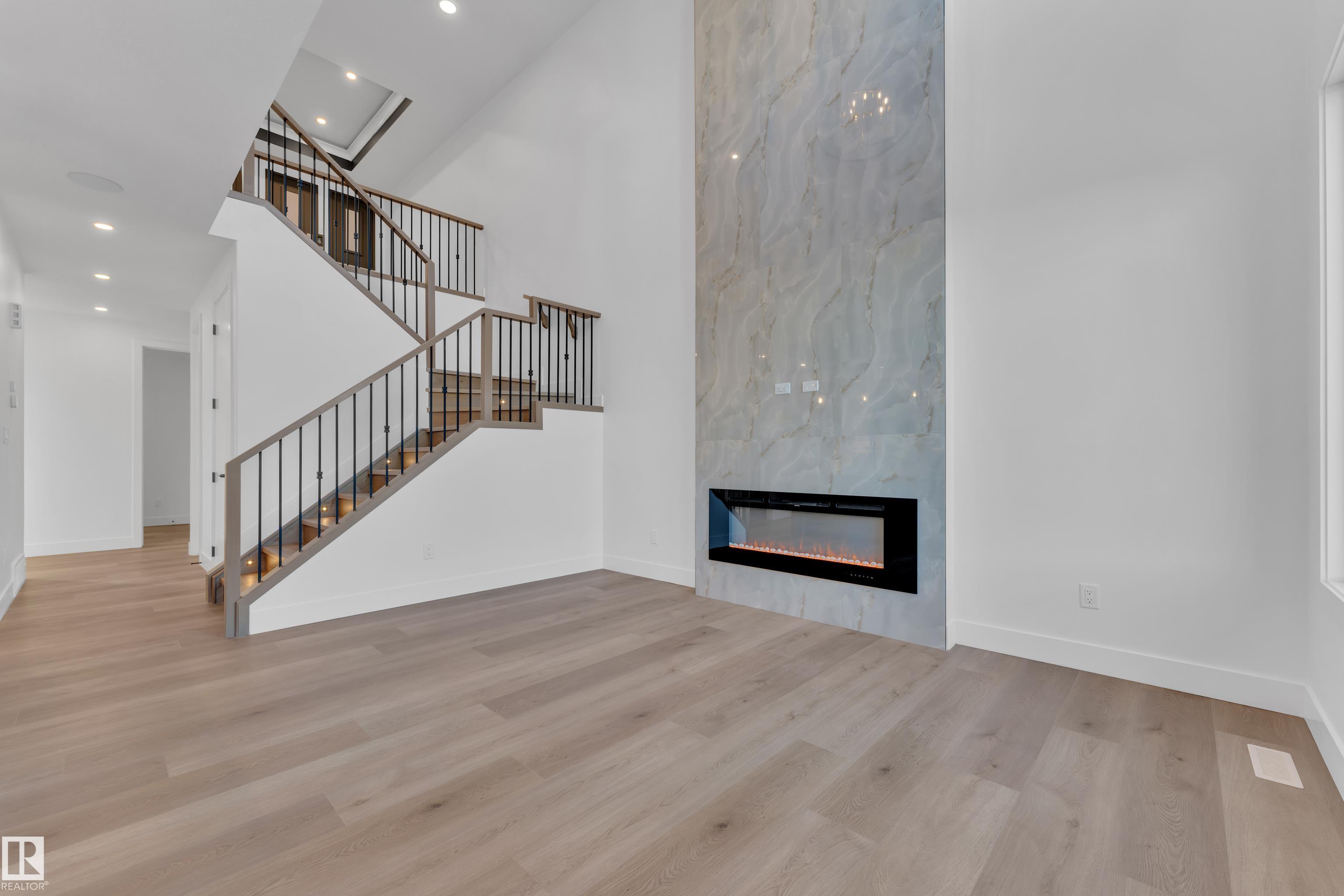 Welcome to this beautifully designed home located in a quiet cul-de-sac in the desirable community of Triomphe, Beaumont, featuring a rare lot with no neighbours at the back, offering exceptional privacy and open views. The home showcases a bright and impressive open-to-above living area that fills the space with natural light. The main floor includes a full bedroom and full bathroom, perfect for guests or extended family, along with a modern kitchen complemented by a spice kitchen for added convenience. Upstairs offers a spacious bonus room, additional well-sized bedrooms, and a luxurious primary suite with a 5-piece ensuite designed for comfort and relaxation. Beautiful feature walls in the living area, bonus room, and primary bedroom add a stylish and elegant touch throughout the home. Located in a family-friendly neighborhood close to parks, schools, and future amenities, this home offers the perfect combination of privacy, modern design, and functional living.