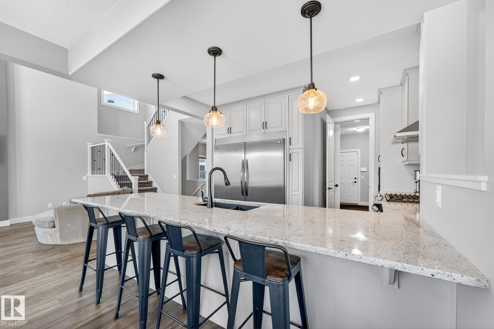 Exceptional quality meets an unmatched lifestyle in the sought-after community of Summerside. Stunning 5-bedroom, 3.5-bath home backs directly onto green space w/a walking path leading to the private clubhouse, exclusive lake access w/year-round amenities & a vibrant social scene. The open-to-above living room features oversized windows, a triple-slide patio door, flooding the home with natural light. The chef?s kitchen impresses with custom, ceiling-height cabinetry, quartz countertops, gas stove, commercial fridge/freezer combo, convenient walkthrough pantry & mudroom w/custom built-ins. Upstairs, the spacious primary retreat offers a walk-in closet & heated floor, spa-inspired ensuite, alongside three additional bedrooms, a full bath & laundry. The fully finished basement adds even more living space. Enjoy the landscaped yard with deck, hot tub, BBQ hookup & irrigation. Additional highlights include air conditioning, hot/cold bibs, heated triple garage with tandem parking & floor drain. Make your move!