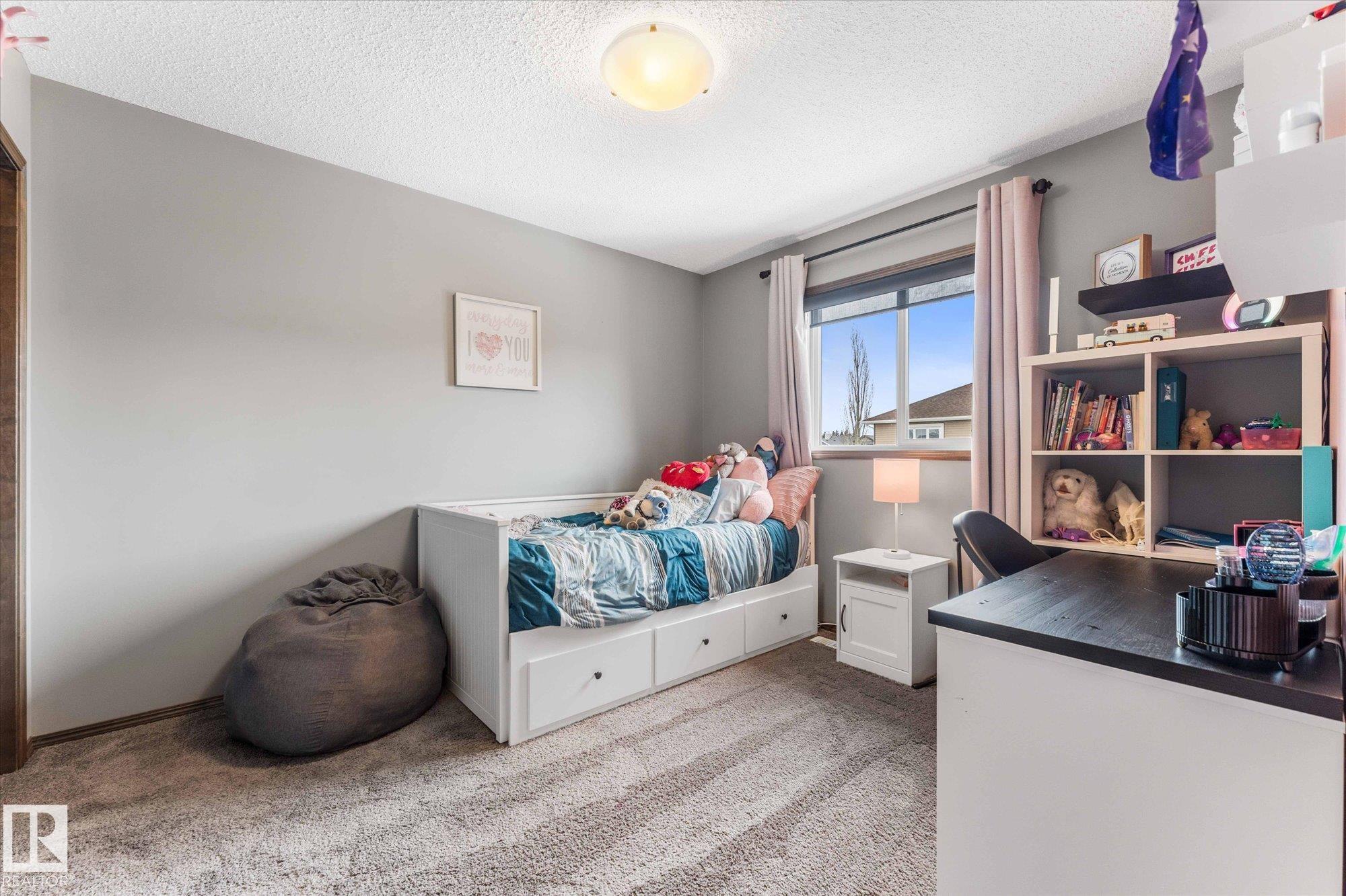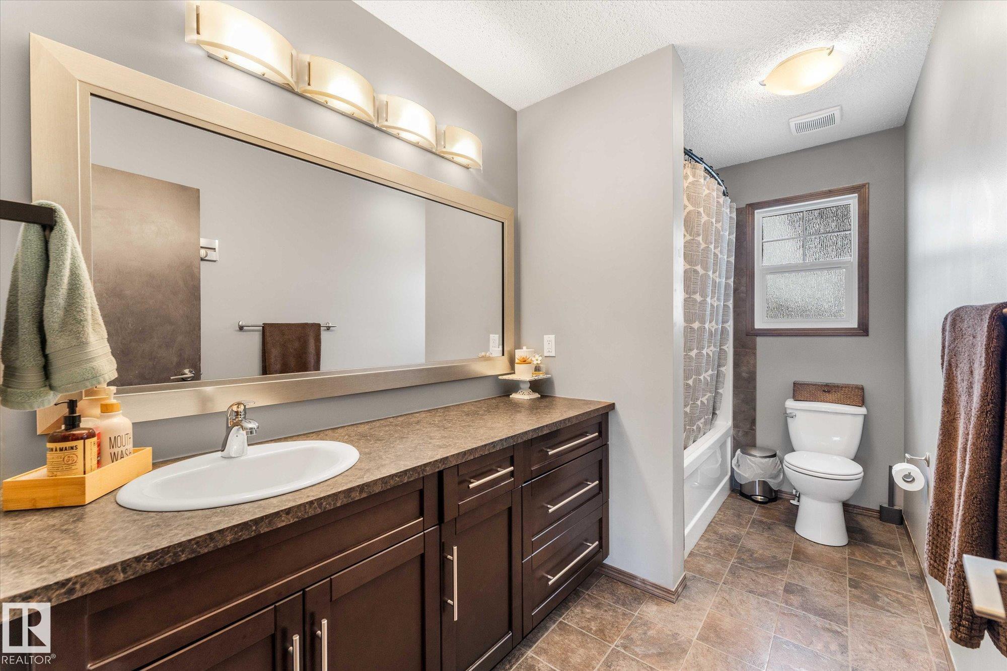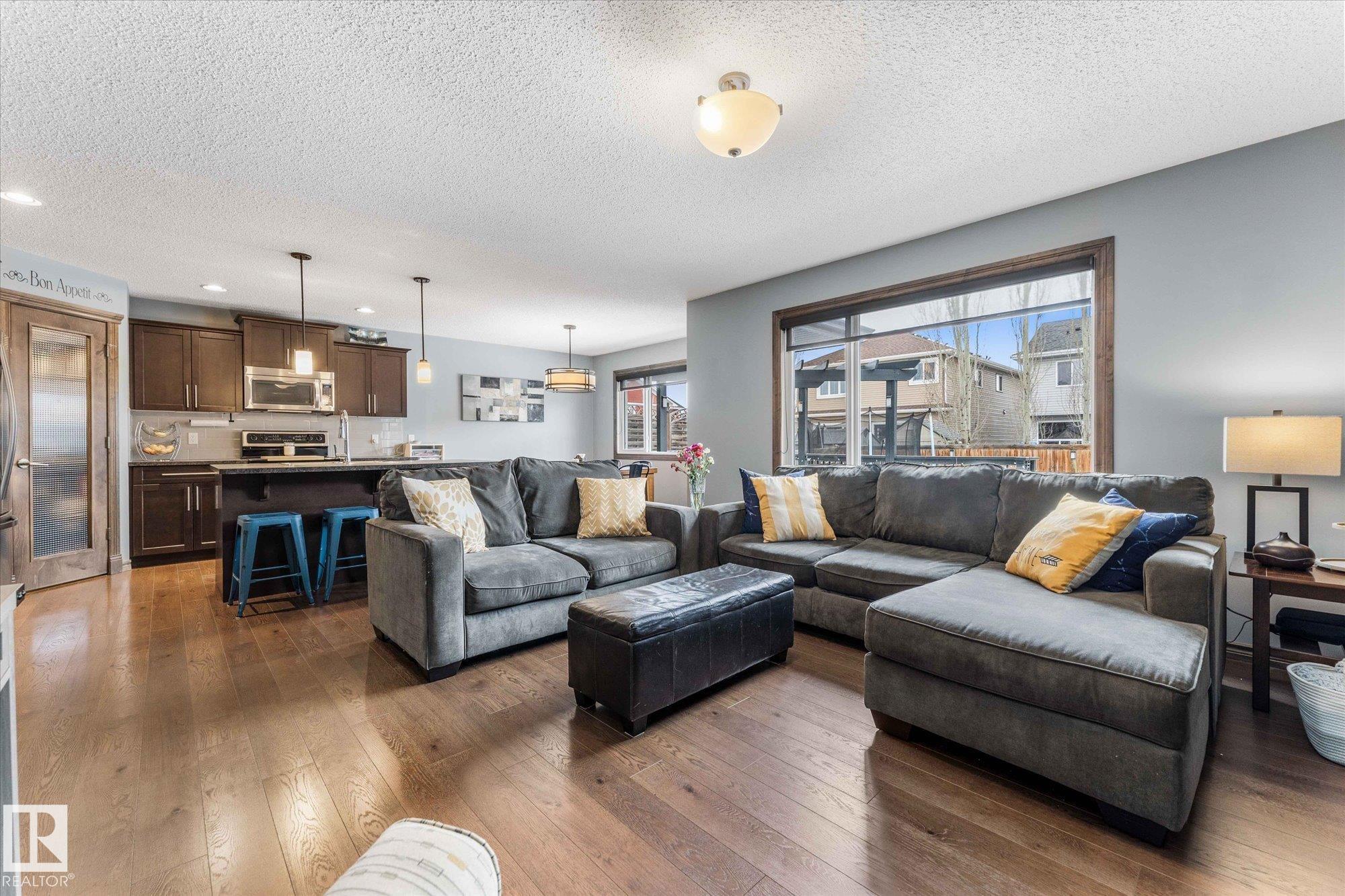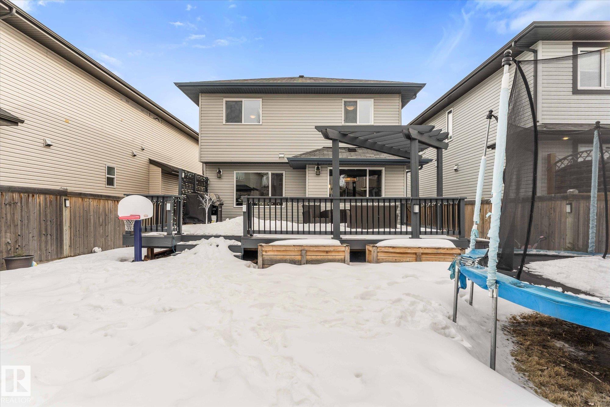 Welcome to 4 Hewitt Circle, located in the beautiful community of Harvest Ridge, on the west end of Spruce Grove. This well maintained 1819 sqft 2 storey is fully finished with 4 bedrooms, 3.5 bathrooms, a double attached garage and AC! On the main floor you will love the open concept floor plan with dark maple trim/doors and laminate flooring. The kitchen has dark cabinets, tile backsplash, SS appliance, a walk-through pantry, a large island & dining space large enough for a big table. The living room has large windows and an electric fireplace. Also on this level is a 2p bath and mudroom with access to the garage. Upstairs has a large bonus room, 3 bedrooms including the primary suite with walk-in closet and 4p ensuite. There is a main 4p bath and laundry on the upper floor as well. In the finished basement is the 4th bedroom, 3p bath with tiled shower, another family room with a wet bar. The north facing backyard is landscaped with a large deck and pergola.