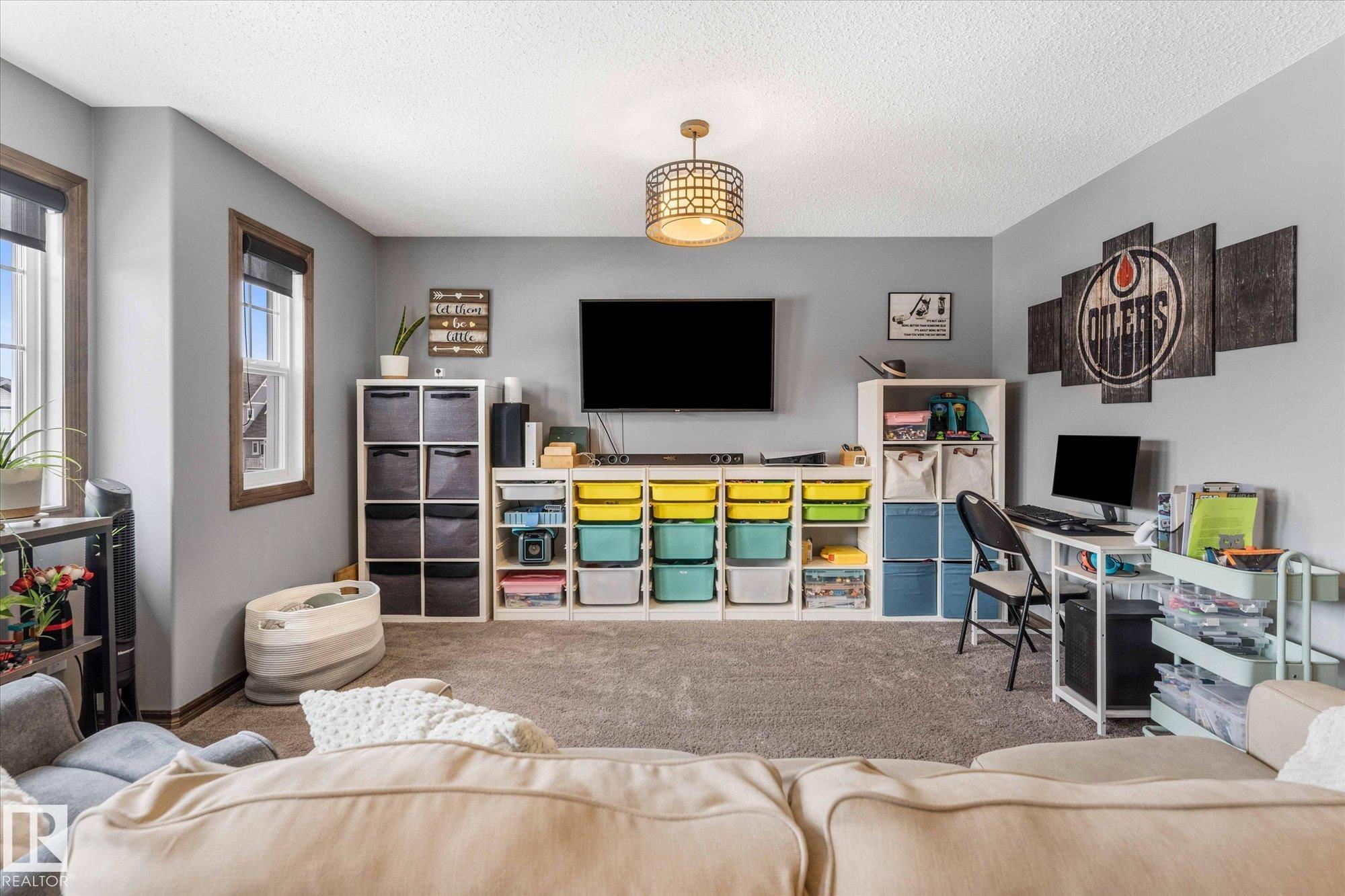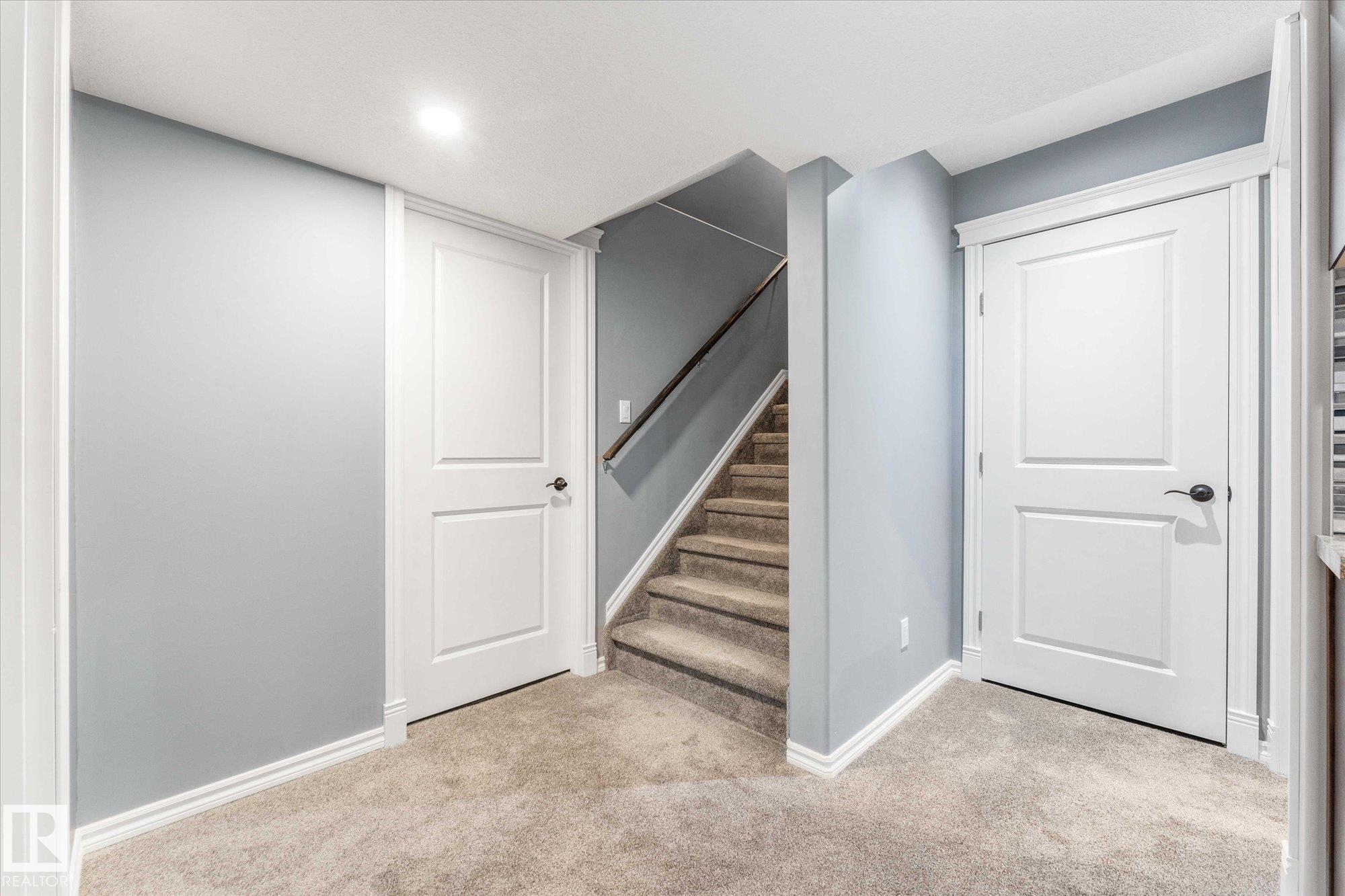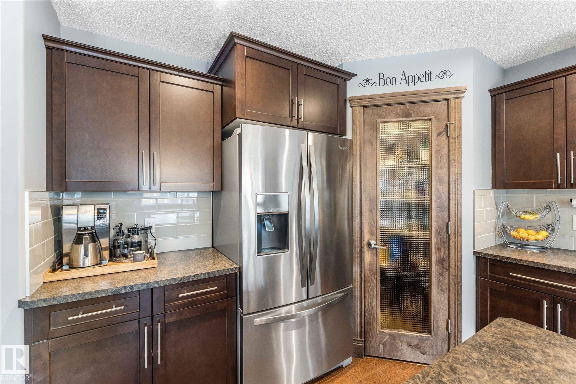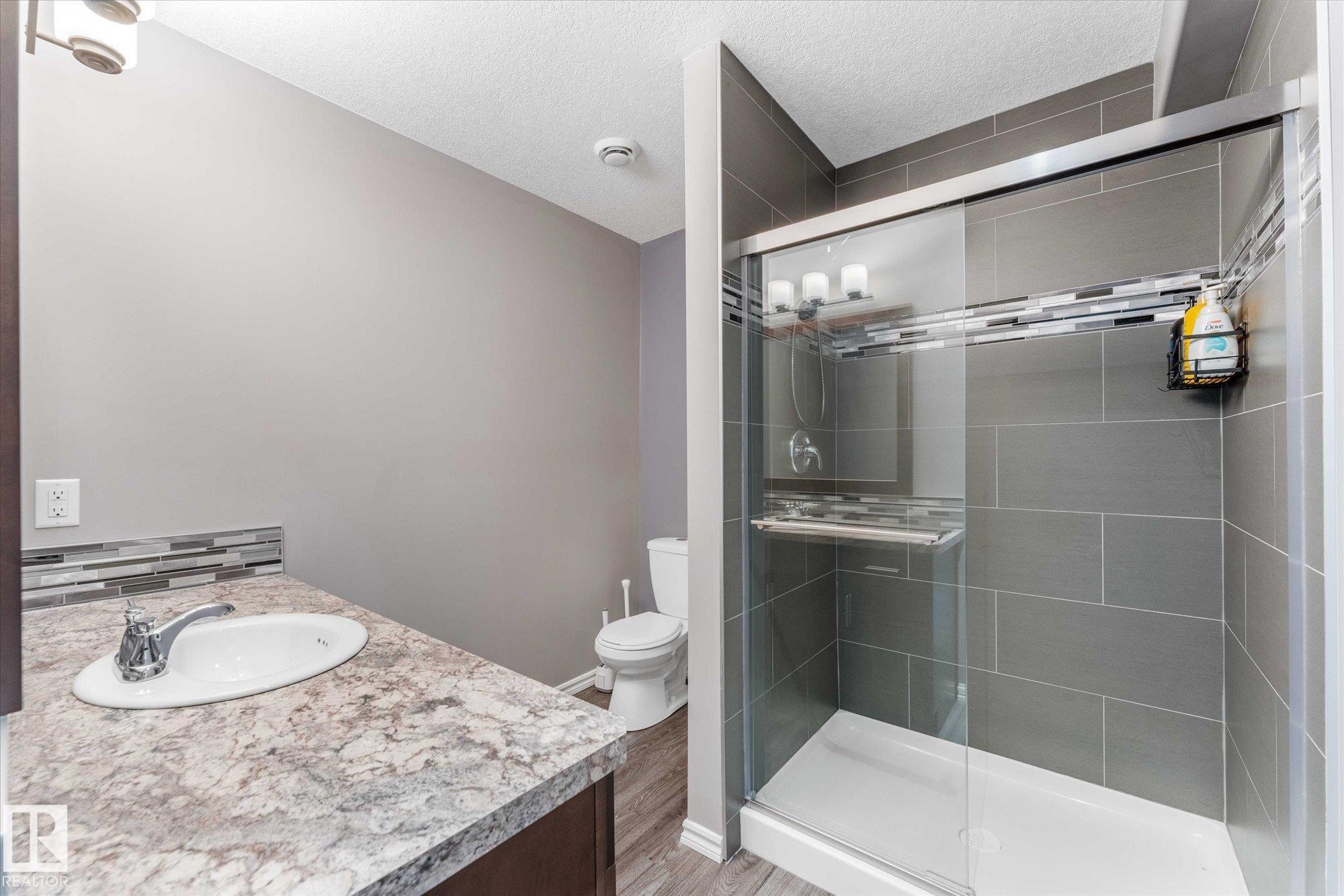 Welcome to 4 Hewitt Circle, located in the beautiful community of Harvest Ridge, on the west end of Spruce Grove. This well maintained 1819 sqft 2 storey is fully finished with 4 bedrooms, 3.5 bathrooms, a double attached garage and AC! On the main floor you will love the open concept floor plan with dark maple trim/doors and laminate flooring. The kitchen has dark cabinets, tile backsplash, SS appliance, a walk-through pantry, a large island & dining space large enough for a big table. The living room has large windows and an electric fireplace. Also on this level is a 2p bath and mudroom with access to the garage. Upstairs has a large bonus room, 3 bedrooms including the primary suite with walk-in closet and 4p ensuite. There is a main 4p bath and laundry on the upper floor as well. In the finished basement is the 4th bedroom, 3p bath with tiled shower, another family room with a wet bar. The north facing backyard is landscaped with a large deck and pergola.