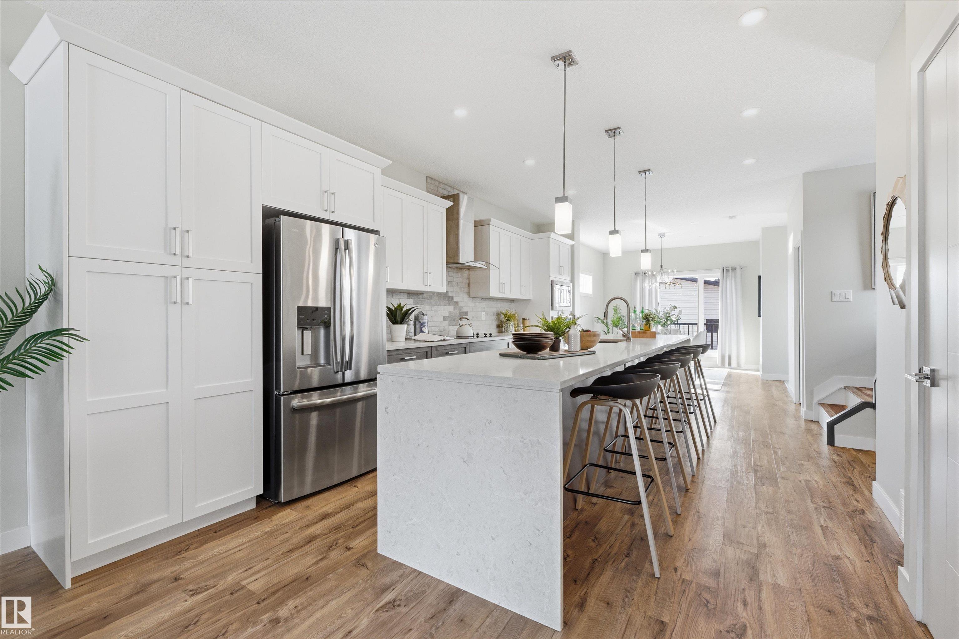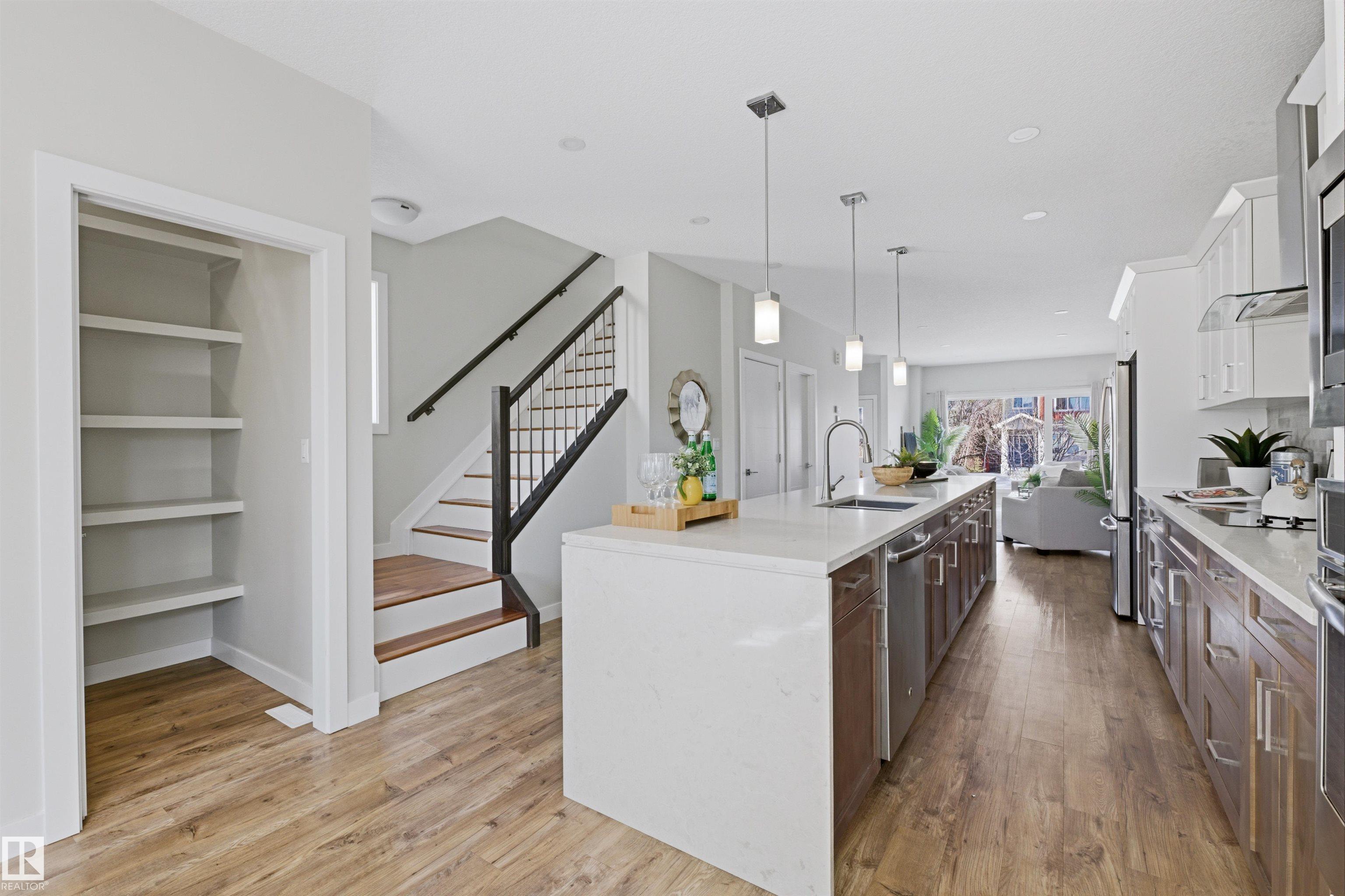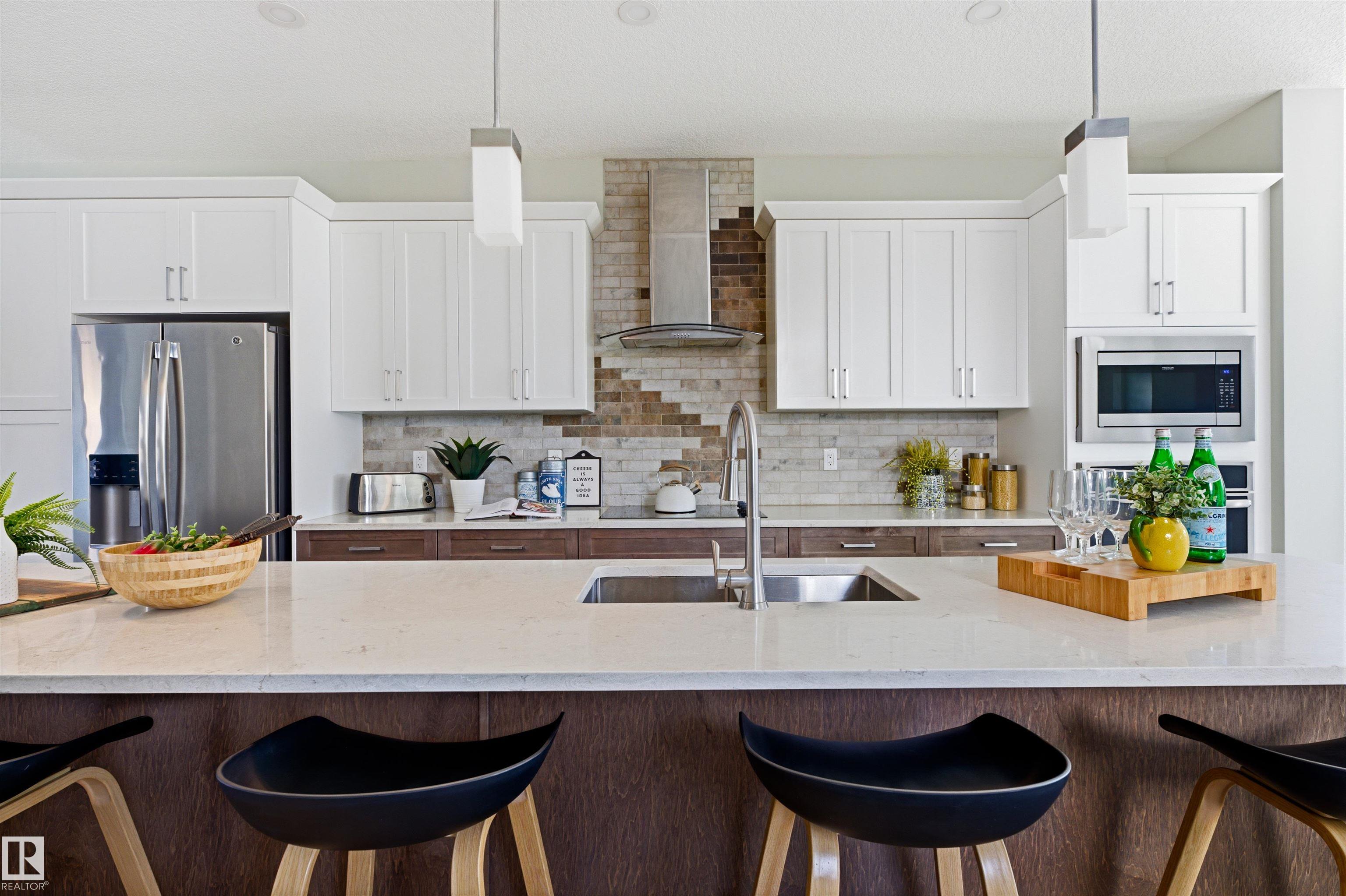 Exceptional value in this extremely well-loved 2-storey home in West Jasper Place, just steps to MacKinnon Ravine/Crestwood, new Valley Line LRT, minutes to Downtown. Open concept main floor is filled with loads of natural light and perfect for entertaining. GOURMET kitchen with GRANITE countertops, Massive island, STAINLESS steel appliances, twin oven/microwave built-in, and high-end dark/light cabinetry. Dining area opens to WEST back yard, massive deck, and double garage. Living area features gas fireplace. 3 generous bedrooms up, including spacious primary bedroom with a 5-piece (spa-inspired) ensuite and soaker tub. Upper floor laundry with sink. Half finished basement has suite potential (side entrance). Beautifully landscaped, stucco exterior. Private, fenced yard. This home is loaded with extras and drips with pride of ownership.