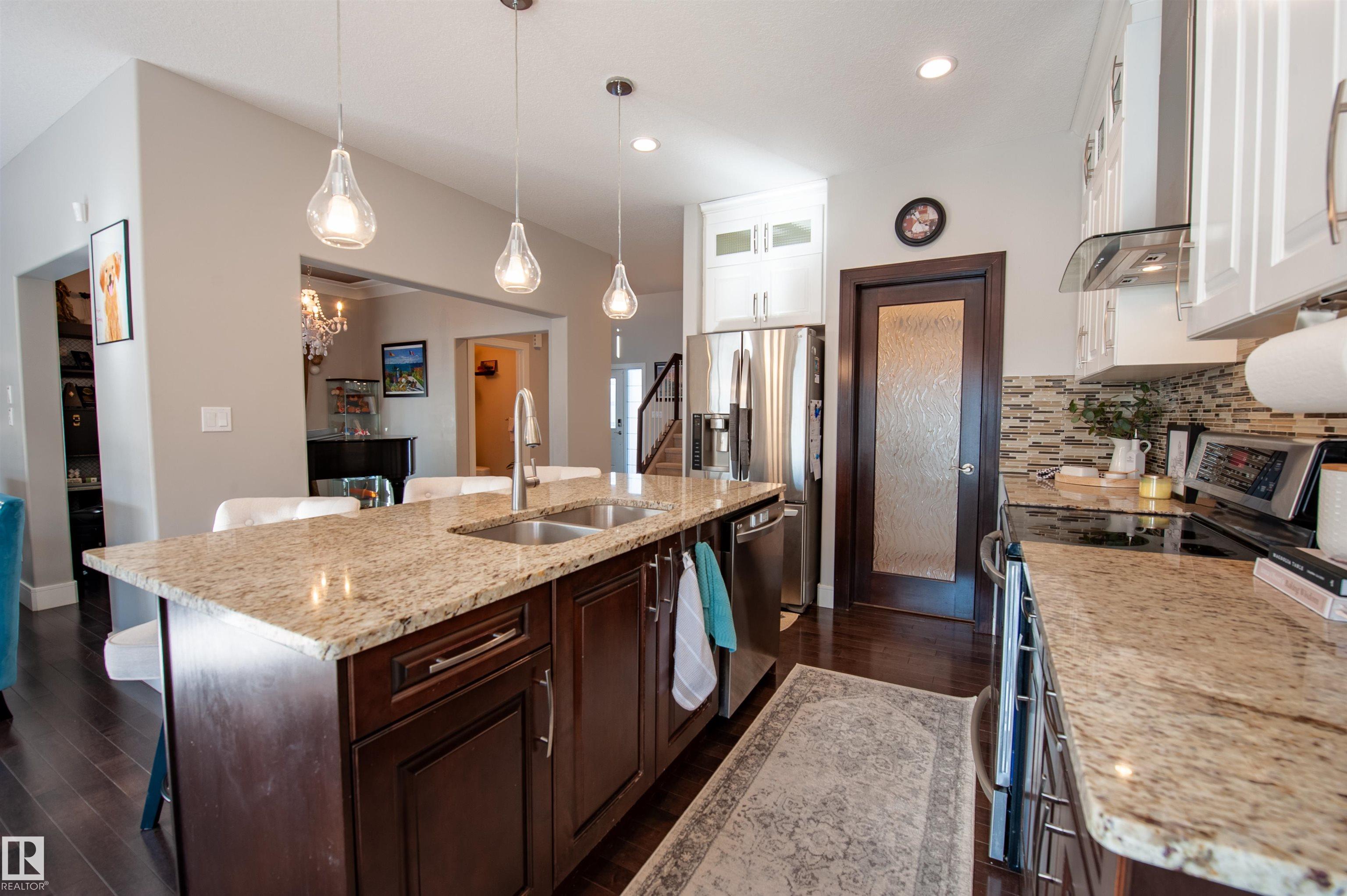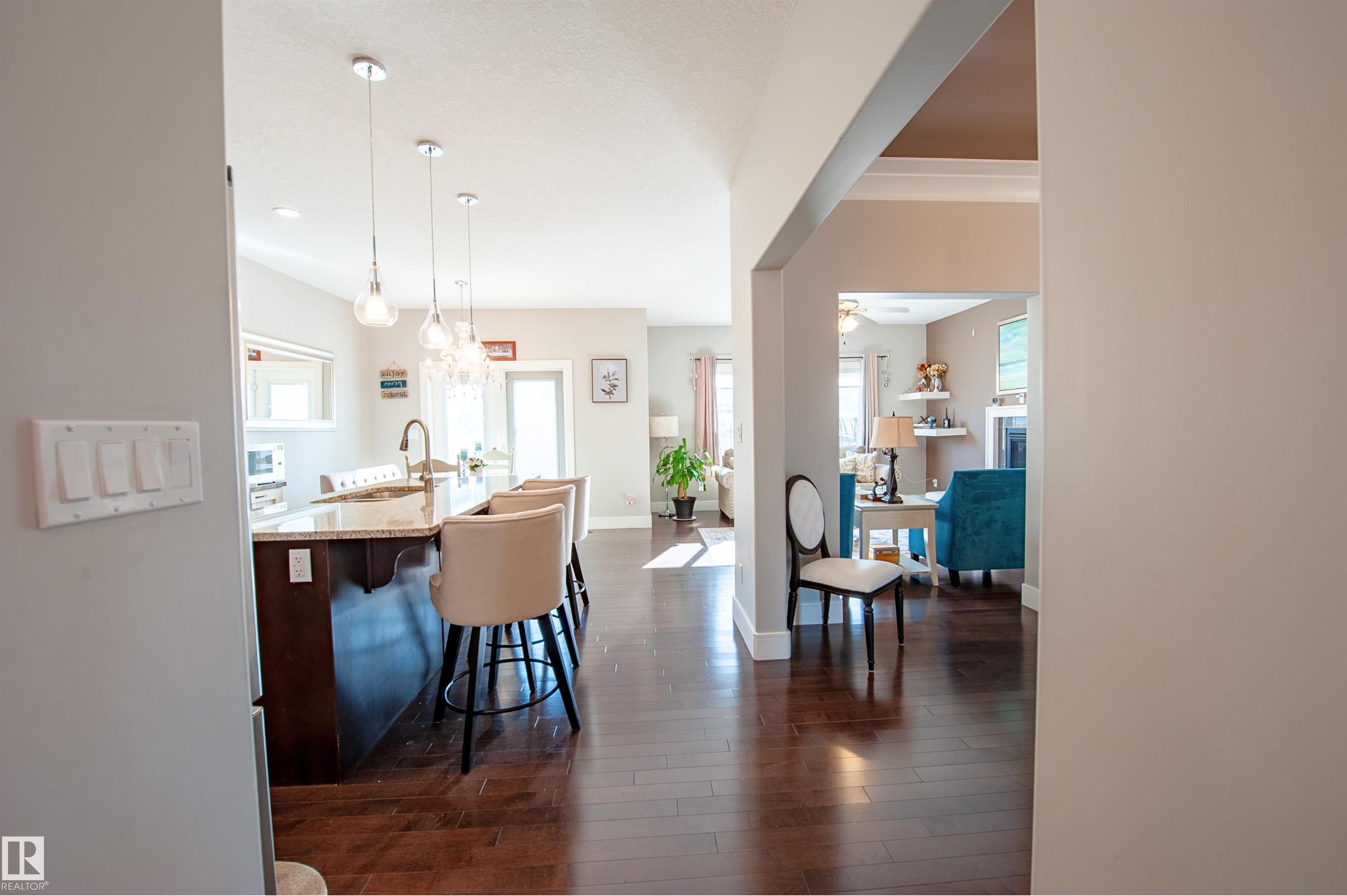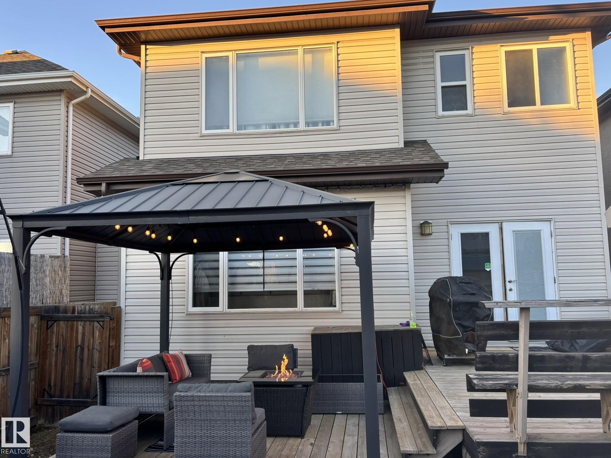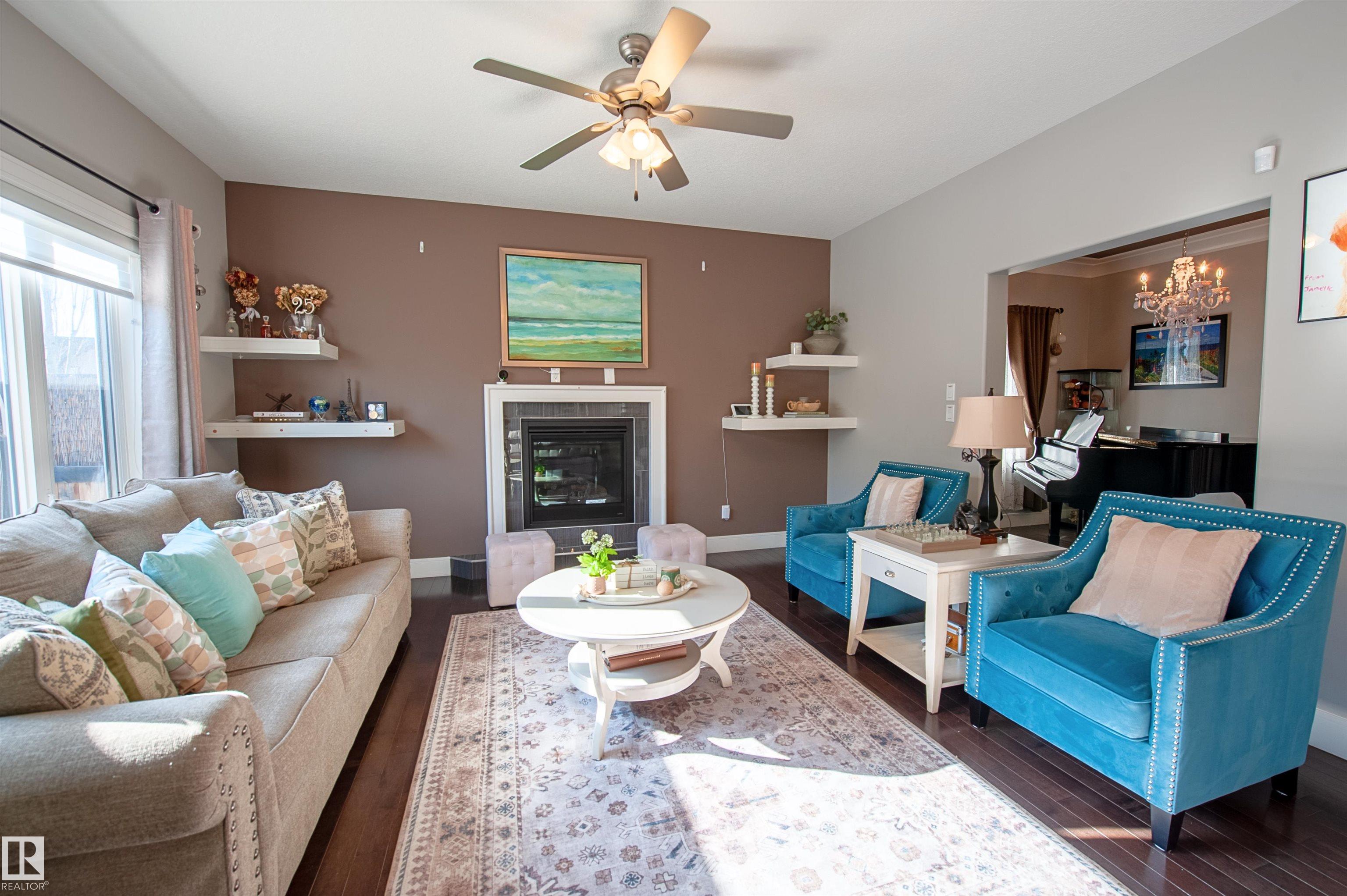 Live the Good Life in the family-friendly community of Summerwood in Sherwood Park. Close to parks, trails, schools, shopping, and easy access to Hwy 21, Hwy 16 & Anthony Henday. Step inside to a bright open-concept main floor with gleaming hardwood, perfect for entertaining! Featuring a flex room, kitchen with granite counters, ceiling-height cabinetry & a walkthrough pantry leading to an oversized garage. Central A/C will keep you cool as you enjoy the sunny south-facing living room with a cozy gas fireplace! Upstairs includes convenient laundry, a bonus room between the primary suite & 2 bedrooms, plus a smart 5-pc bath w/ dual sinks & separate tub/toilet. The primary suite boasts a spa-like ensuite w/ double shower, corner jet tub & walk-in closet. The fully finished bsmt includes a rec room, bar w/ quartz counters & built-in fridge, 2 bedrooms, 3pc bath & storage. Enjoy the two-tier deck w/ gazebo and Astoria permanent Christmas lights. Visit REALTORŪ website for more info.