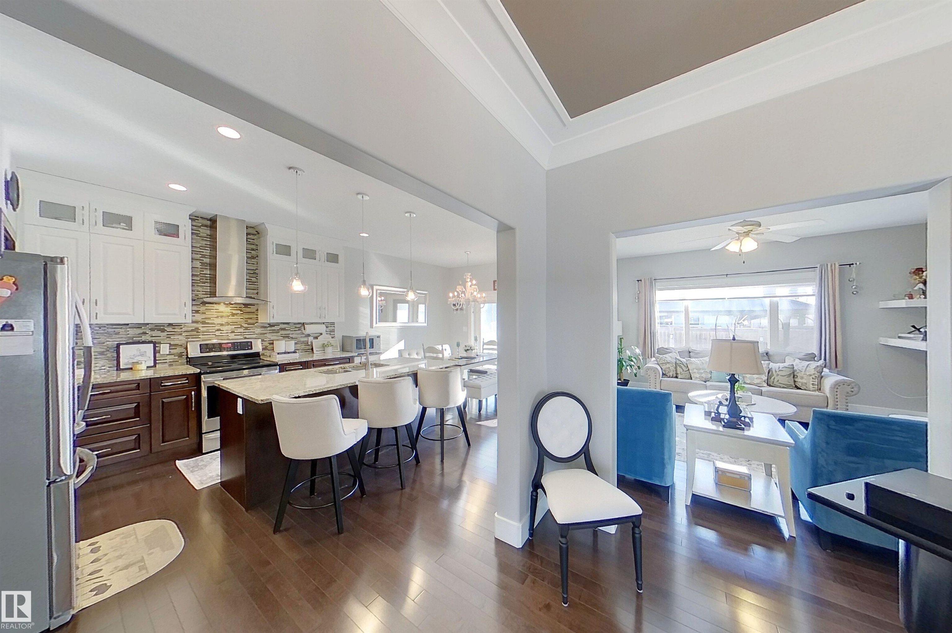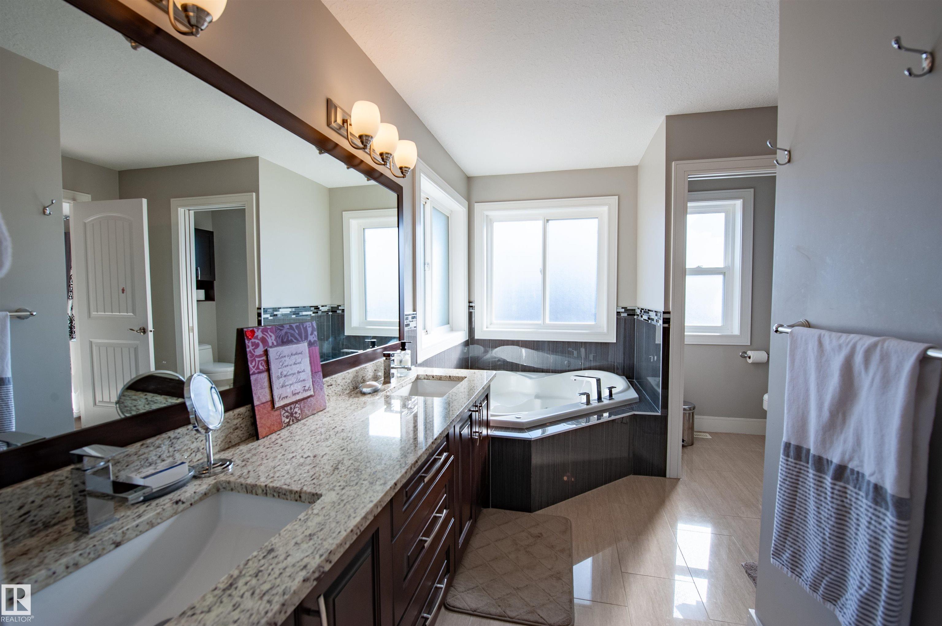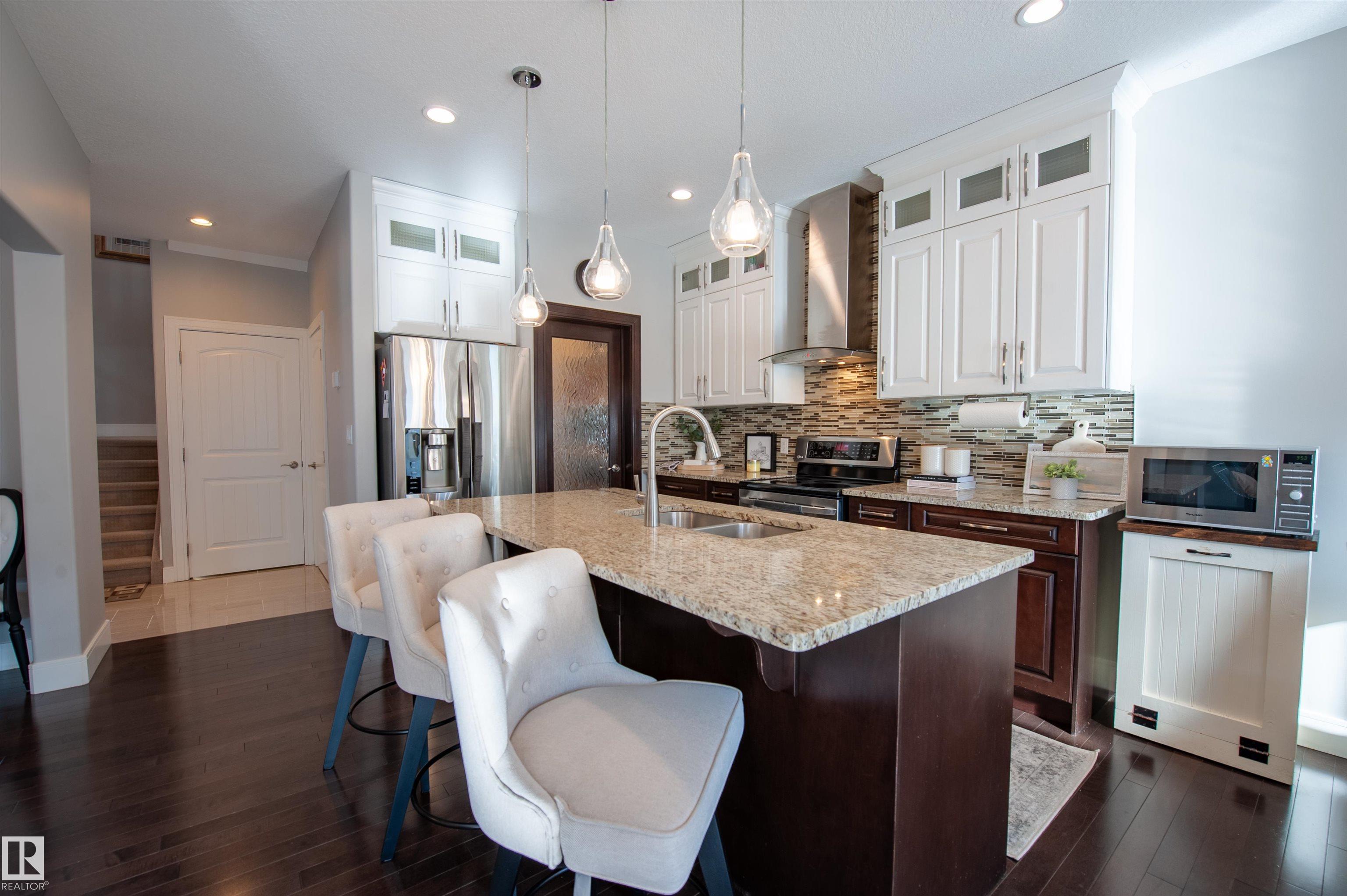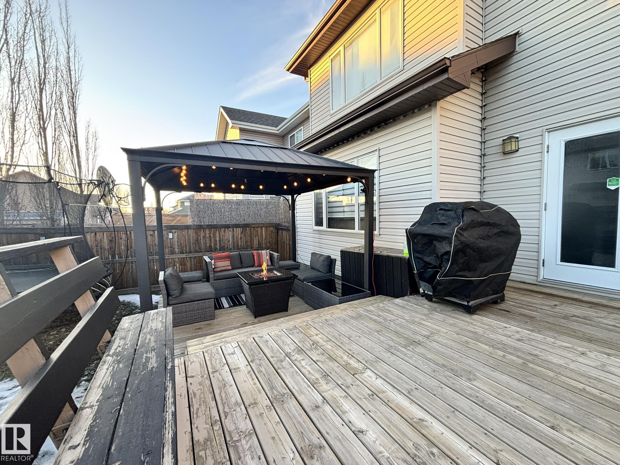 Live the Good Life in the family-friendly community of Summerwood in Sherwood Park. Close to parks, trails, schools, shopping, and easy access to Hwy 21, Hwy 16 & Anthony Henday. Step inside to a bright open-concept main floor with gleaming hardwood, perfect for entertaining! Featuring a flex room, kitchen with granite counters, ceiling-height cabinetry & a walkthrough pantry leading to an oversized garage. Central A/C will keep you cool as you enjoy the sunny south-facing living room with a cozy gas fireplace! Upstairs includes convenient laundry, a bonus room between the primary suite & 2 bedrooms, plus a smart 5-pc bath w/ dual sinks & separate tub/toilet. The primary suite boasts a spa-like ensuite w/ double shower, corner jet tub & walk-in closet. The fully finished bsmt includes a rec room, bar w/ quartz counters & built-in fridge, 2 bedrooms, 3pc bath & storage. Enjoy the two-tier deck w/ gazebo and Astoria permanent Christmas lights. Visit REALTORŪ website for more info.