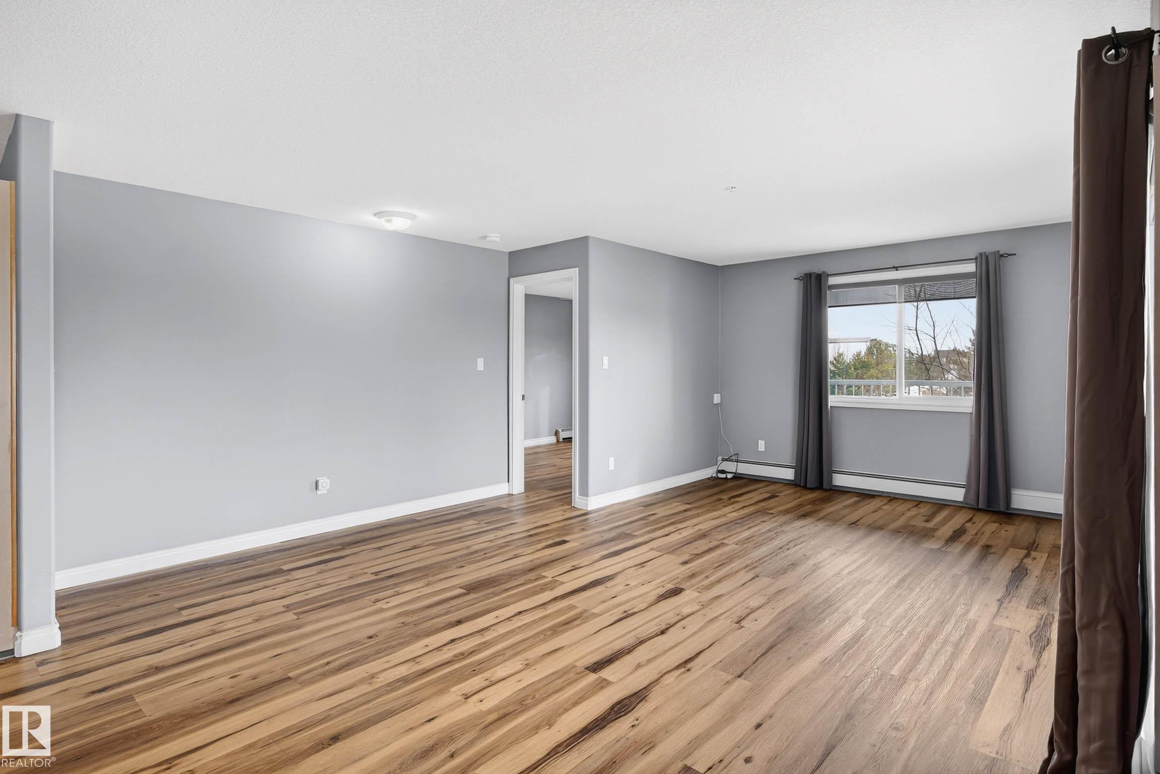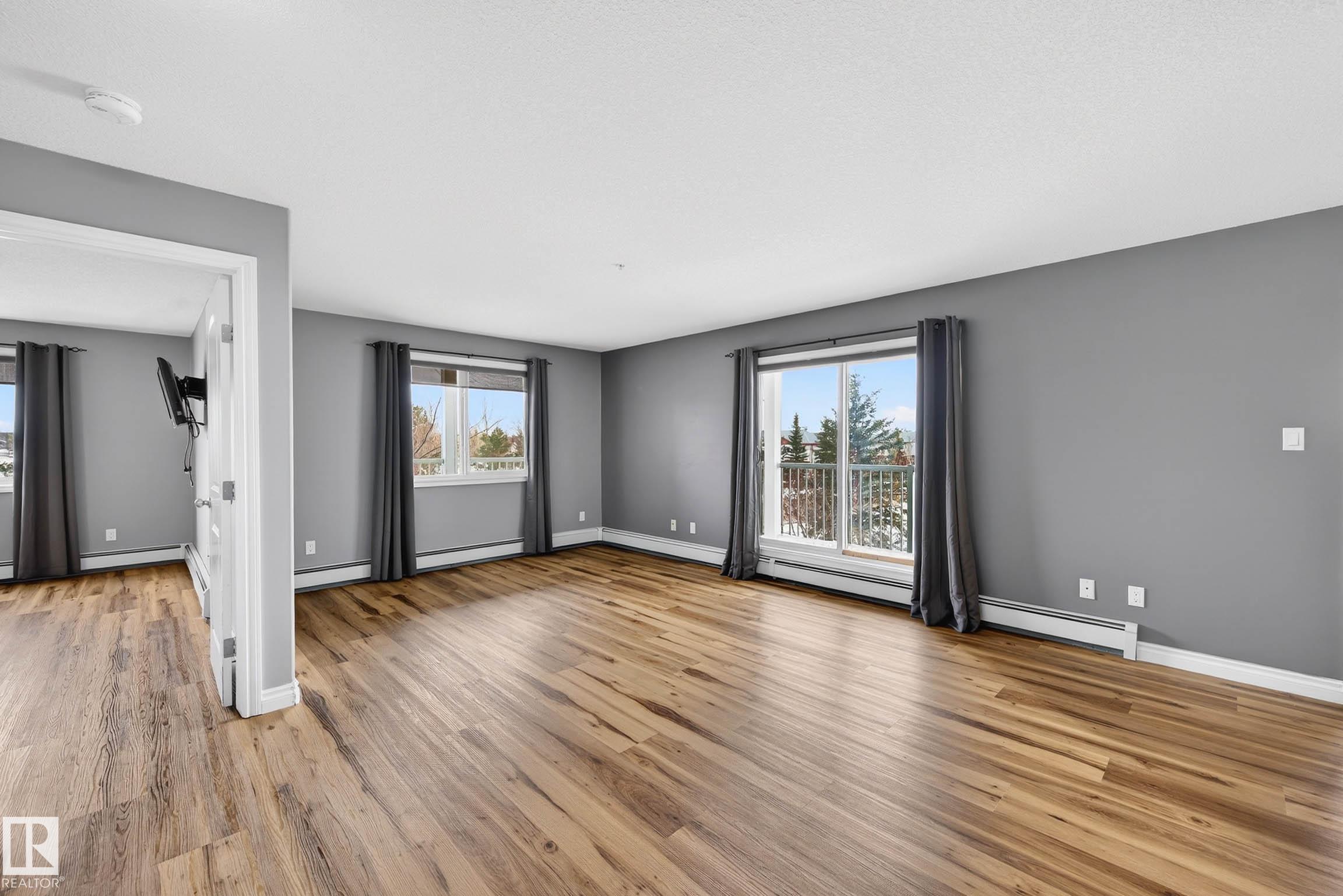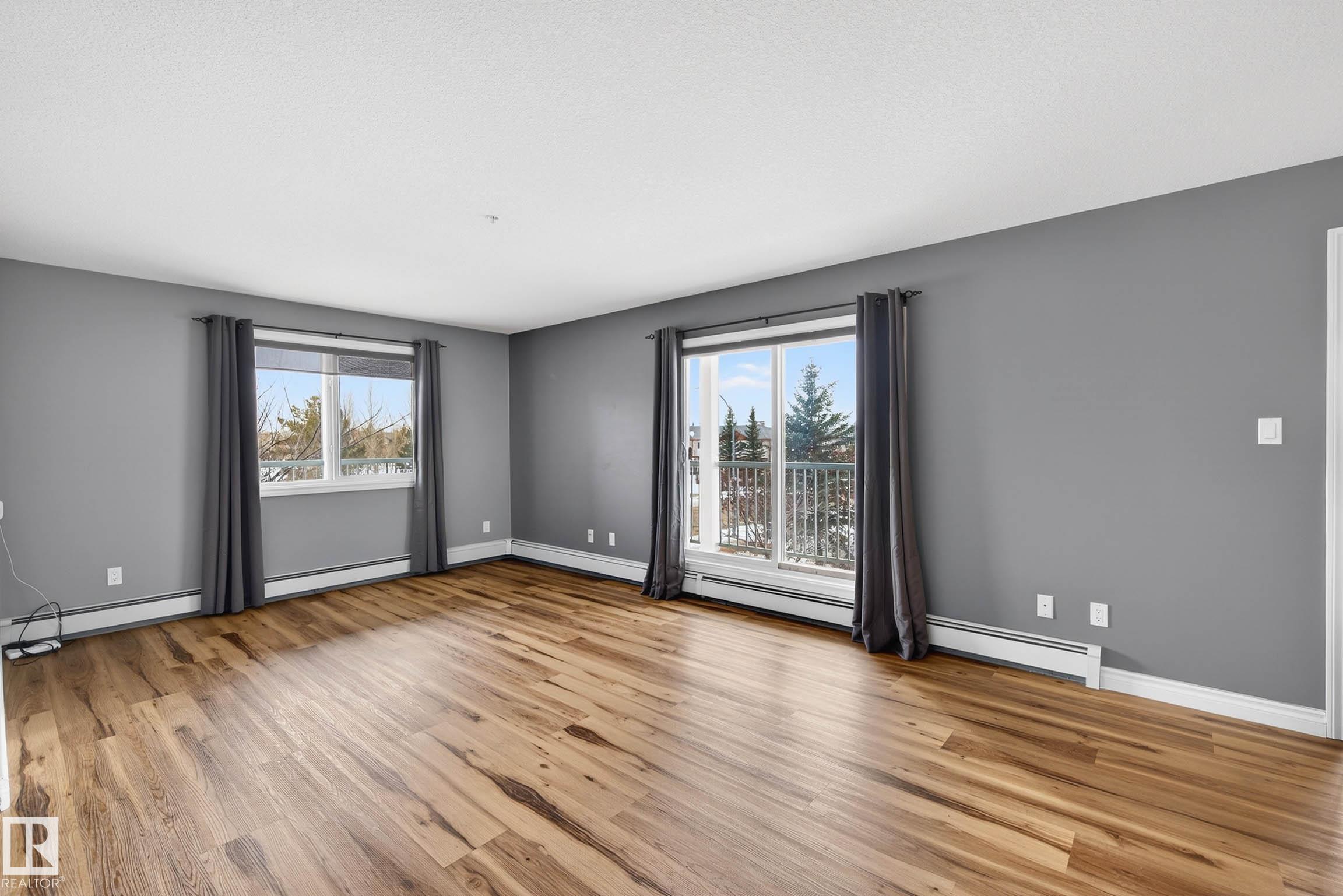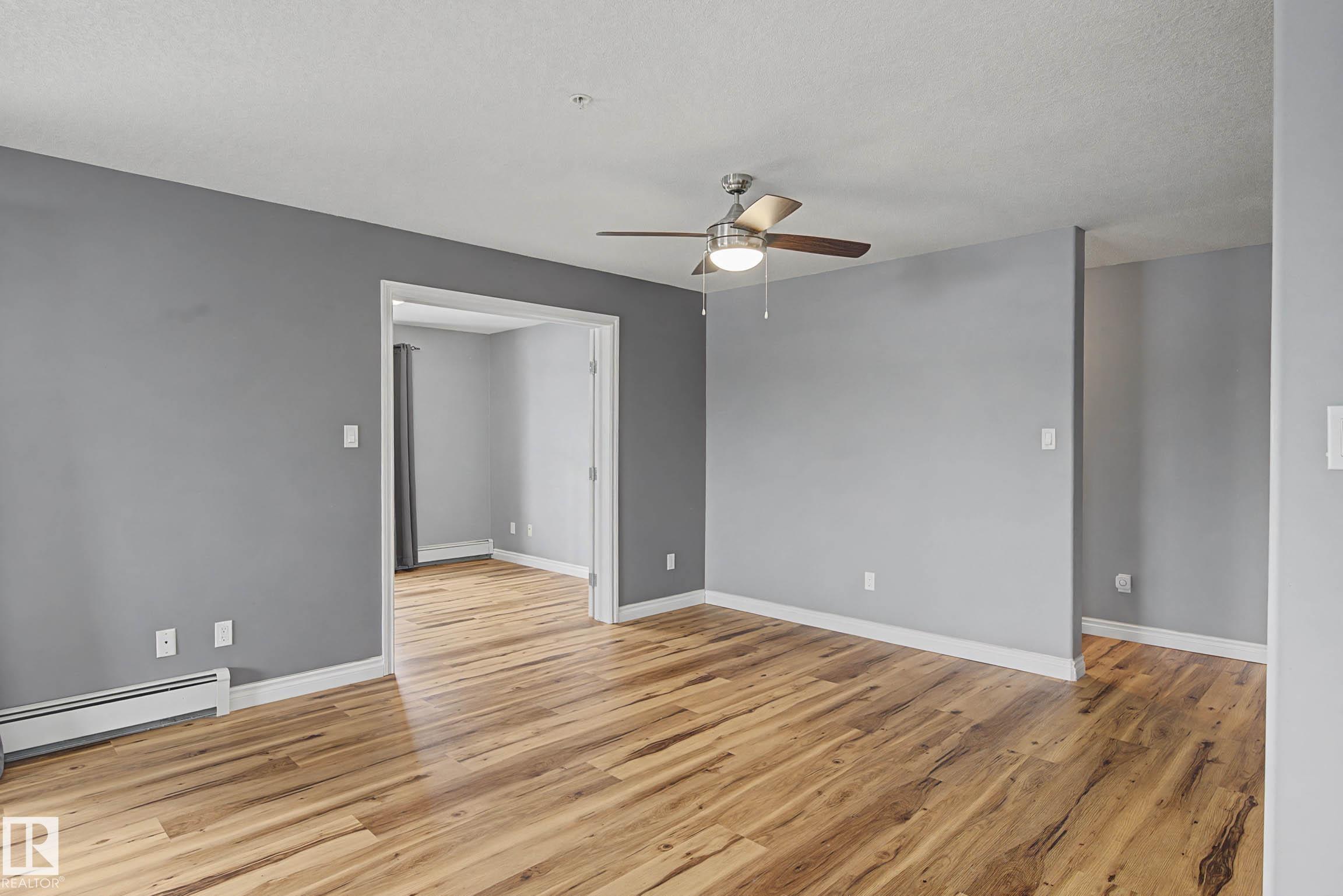 Spacious, bright & beautifully updated! This impressive 1232 sq ft condo offers 2 bedrooms, 2 bathrooms PLUS a den, providing a well designed layout & exceptional value. The den is perfect as an office, dining area or playroom. Enjoy the open concept living area filled with natural light & a sunny wrap around balcony, ideal for relaxing!. The kitchen features a moveable island, ample cabinetry & black appliances. Bedrooms are ideally positioned opposite from each other for maximum privacy. The large primary bedroom features a double closets & a 3pc ensuite. Updates: vinyl plank flooring (23), dishwasher (25), toilets (24), modern décor switches & tamper proof plugs. In suite laundry with HE front loading washer & storage add convenience. Includes underground heated parking, gym access & condo fees that cover heat & water. Walking distance to Freson Bros, restaurants & more. Includes: barstools, pantry, shelving & TV! A rare, generously sized unit you do not want to miss! Some photos virtually staged.