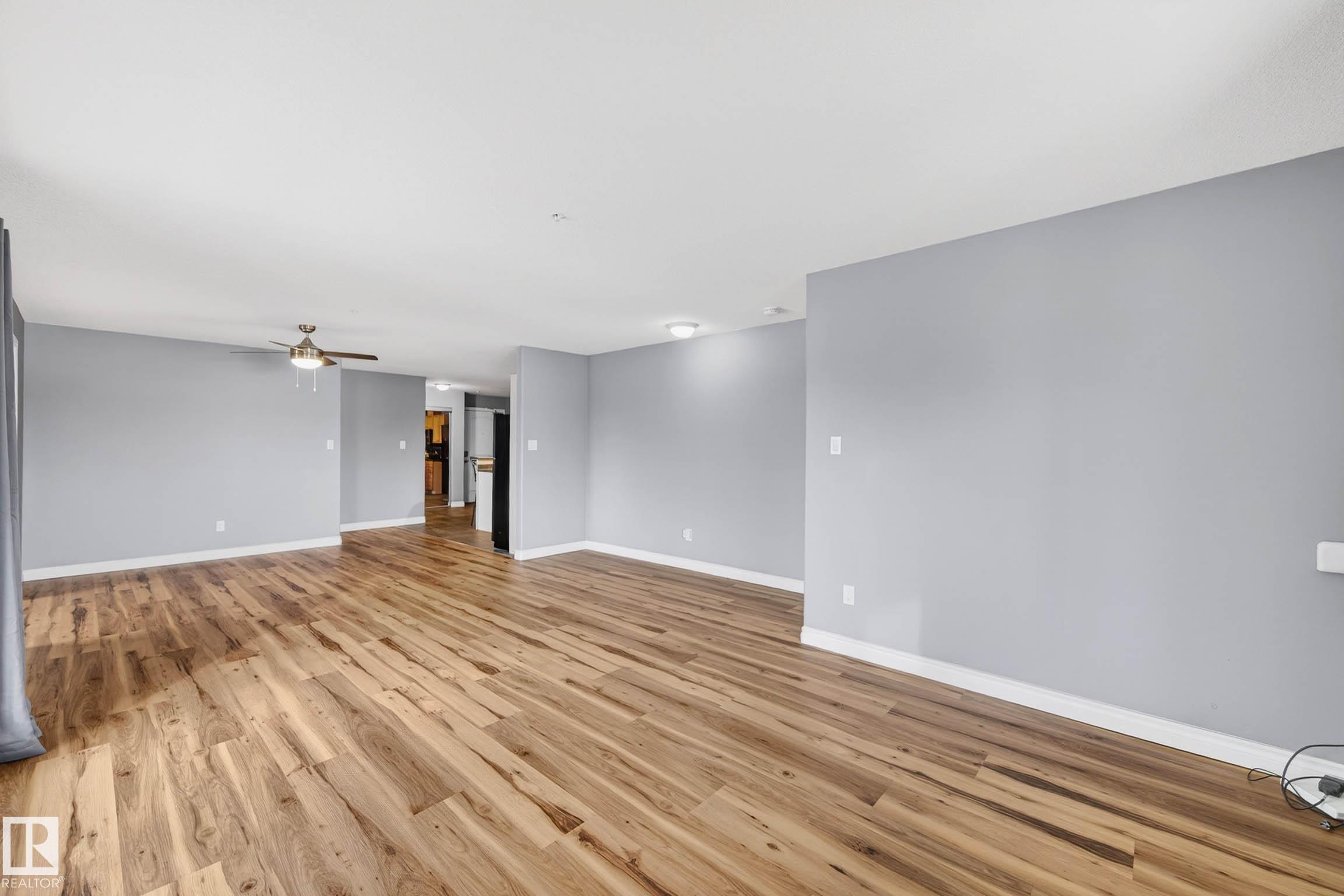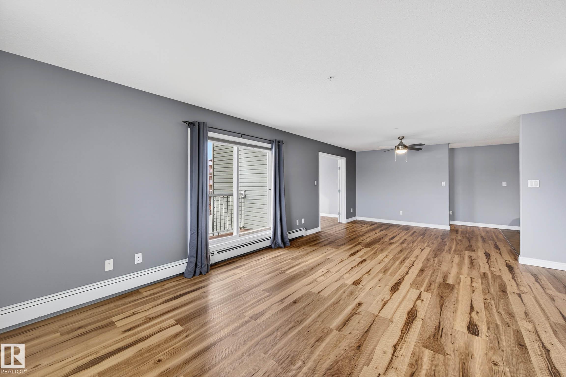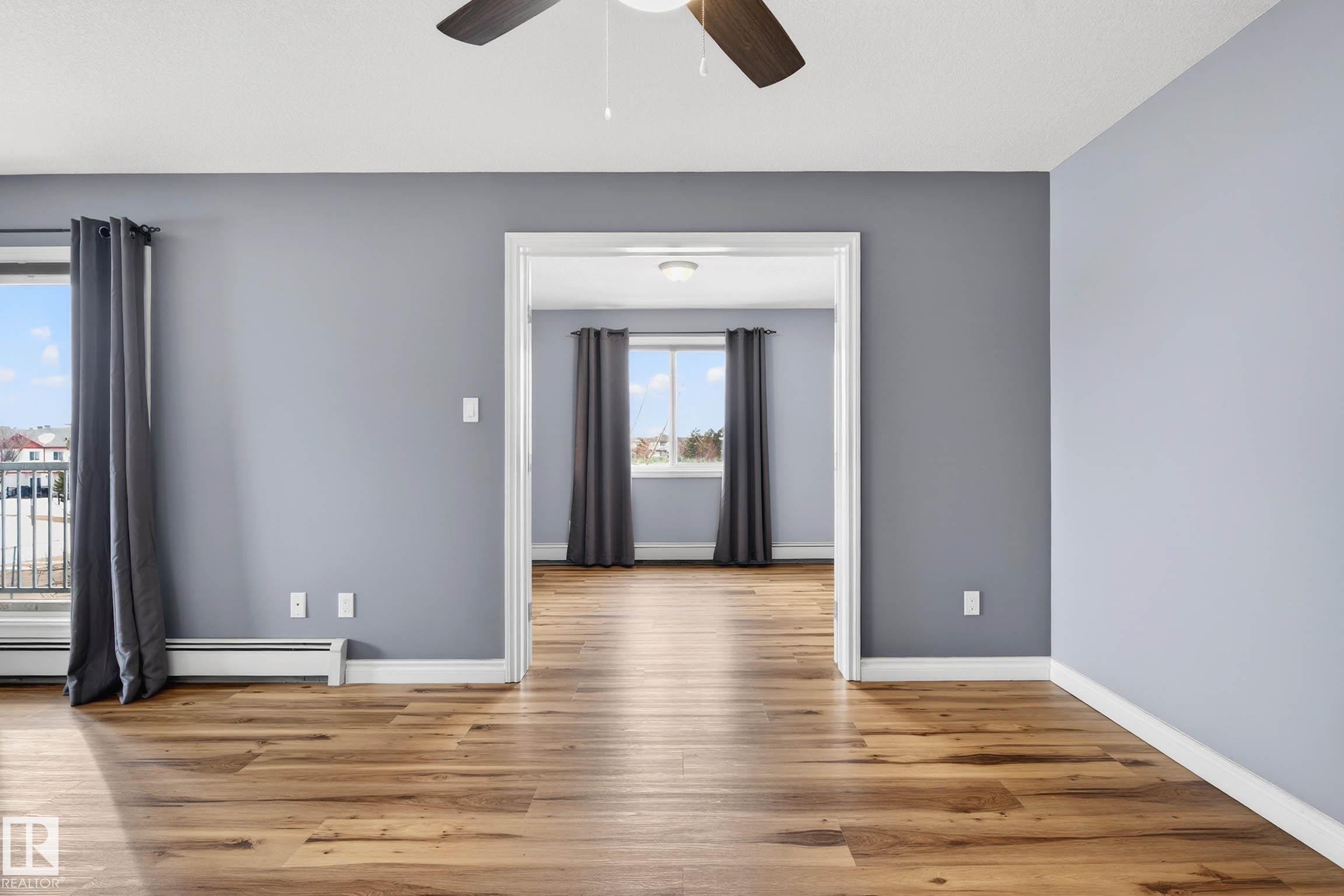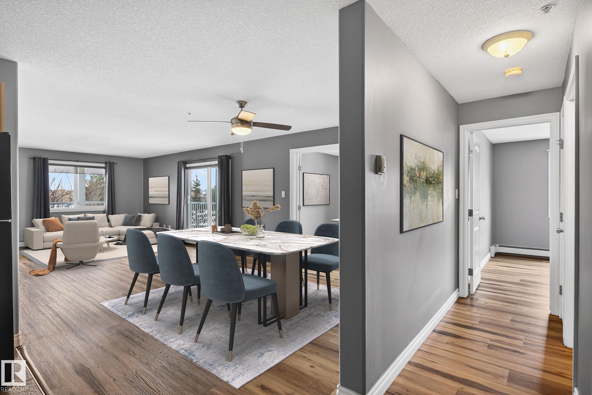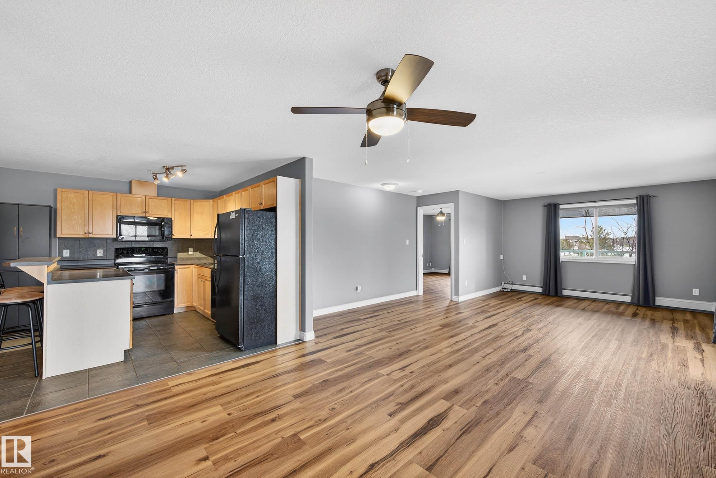 Spacious, bright & beautifully updated! This impressive 1232 sq ft condo offers 2 bedrooms, 2 bathrooms PLUS a den, providing a well designed layout & exceptional value. The den is perfect as an office, dining area or playroom. Enjoy the open concept living area filled with natural light & a sunny wrap around balcony, ideal for relaxing!. The kitchen features a moveable island, ample cabinetry & black appliances. Bedrooms are ideally positioned opposite from each other for maximum privacy. The large primary bedroom features a double closets & a 3pc ensuite. Updates: vinyl plank flooring (23), dishwasher (25), toilets (24), modern décor switches & tamper proof plugs. In suite laundry with HE front loading washer & storage add convenience. Includes underground heated parking, gym access & condo fees that cover heat & water. Walking distance to Freson Bros, restaurants & more. Includes: barstools, pantry, shelving & TV! A rare, generously sized unit you do not want to miss! Some photos virtually staged.
