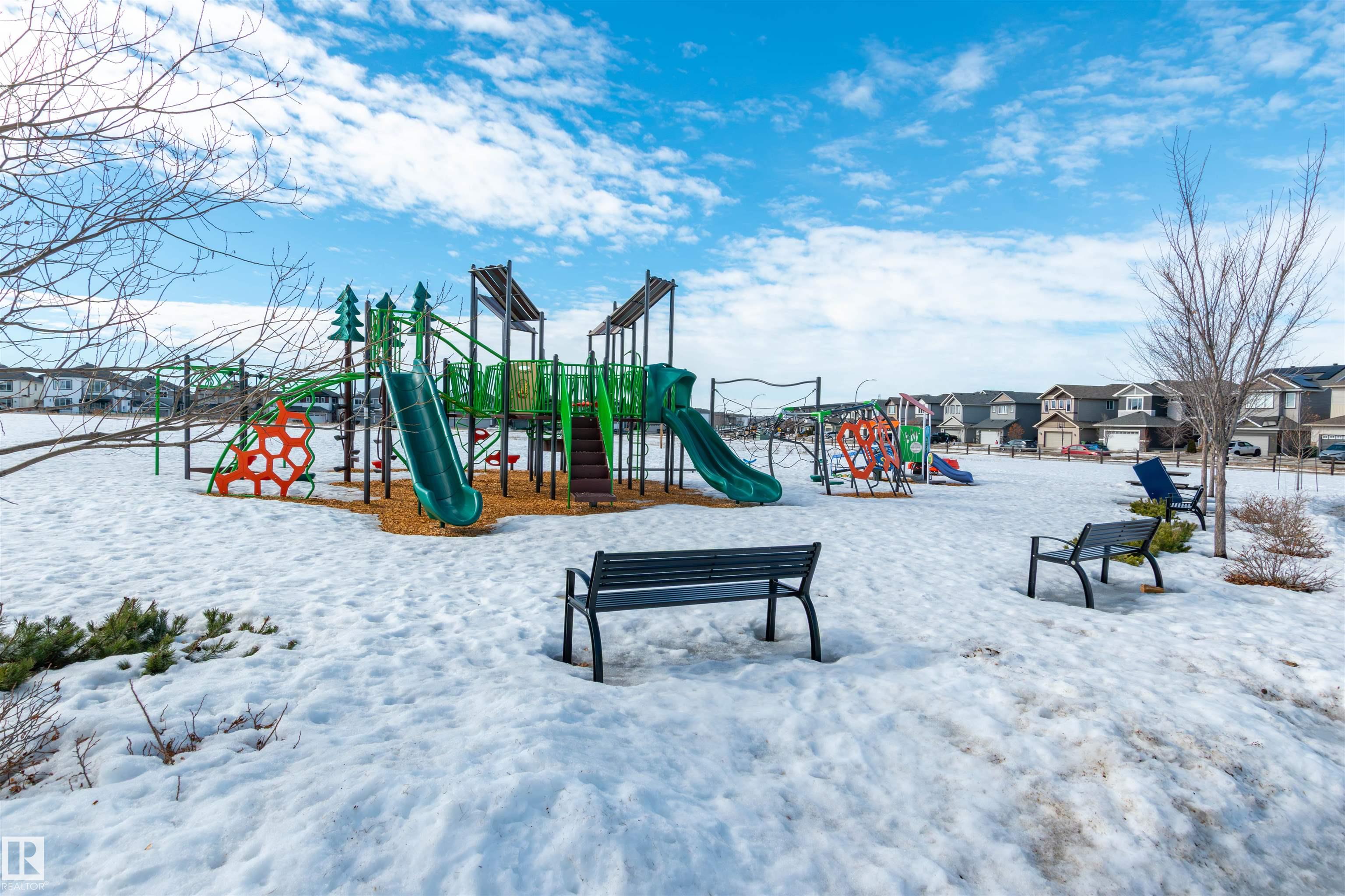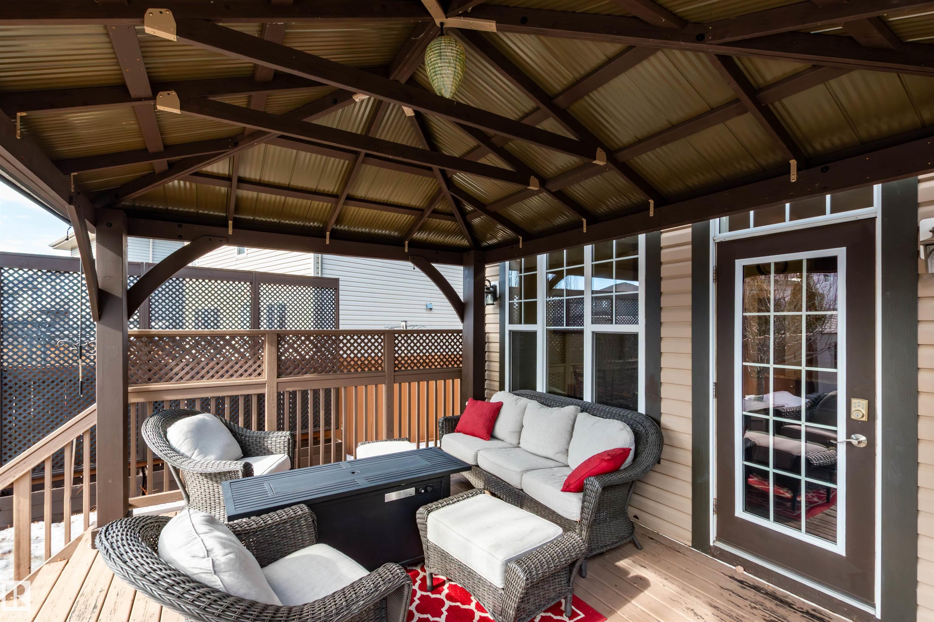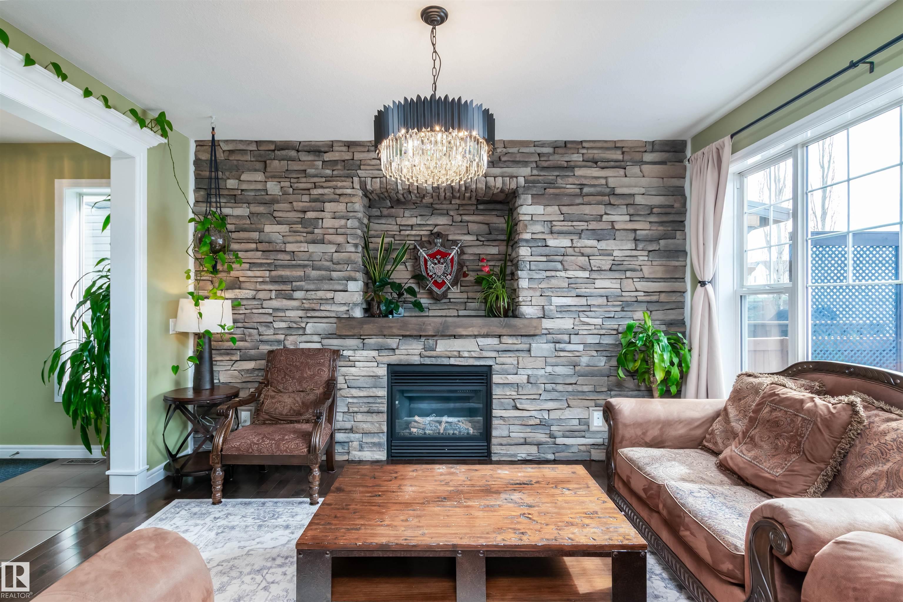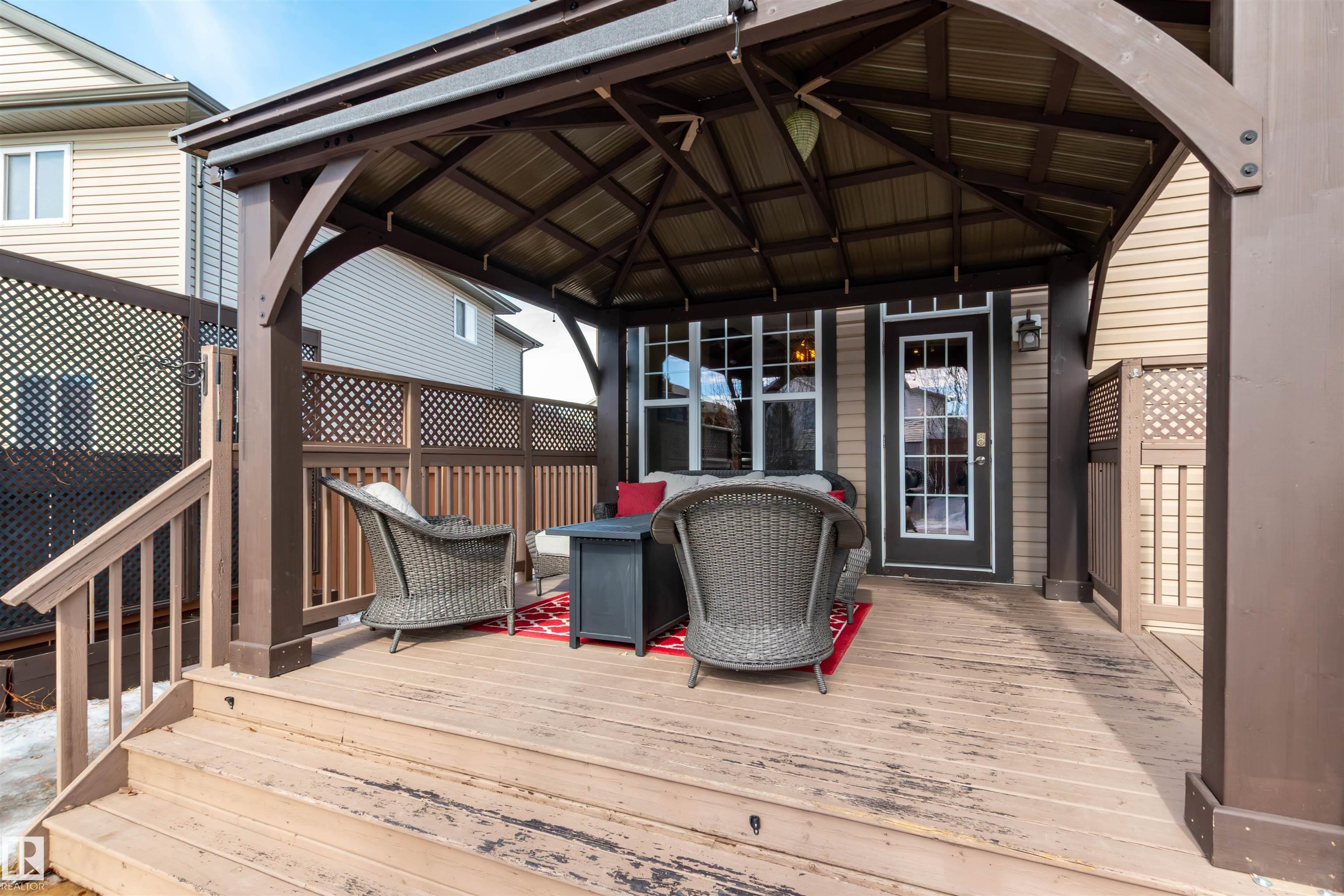 Did you say Oversized Triple Garage?? This immaculately appointed 4 bed, 3 1/2 bath 2 storey beauty, in the family friendly Fort Sask. comm. of Westpark, checks all the boxes. Once you get past the impressive and uber functional triple garage (heated and w/ 2 fl. drains and h/c water bibs), you are presented with a luxurious open concept main floor living, kitch. and eating space. The FULL WALL, floor to ceiling stone fireplace offers a unique living and entertainment area normally reserved for exclusive estate properties. So much natural light!! A well appointed kitchen with gas range, ceiling high cabinets, bar seating, and granite counters, looks directly out to an amazing outdoor gazebo covered deck w/ step in tub. The large primary bed. w/ luxury 4 pce ensuite (sep. tub and shower) sets the romantic mood. Spacious bonus room area for family entertainment. Fully finished basement w/ wet bar, and an additional bedr., full bath, and family room. Close to parks and walking trails!! Raise a family here!!