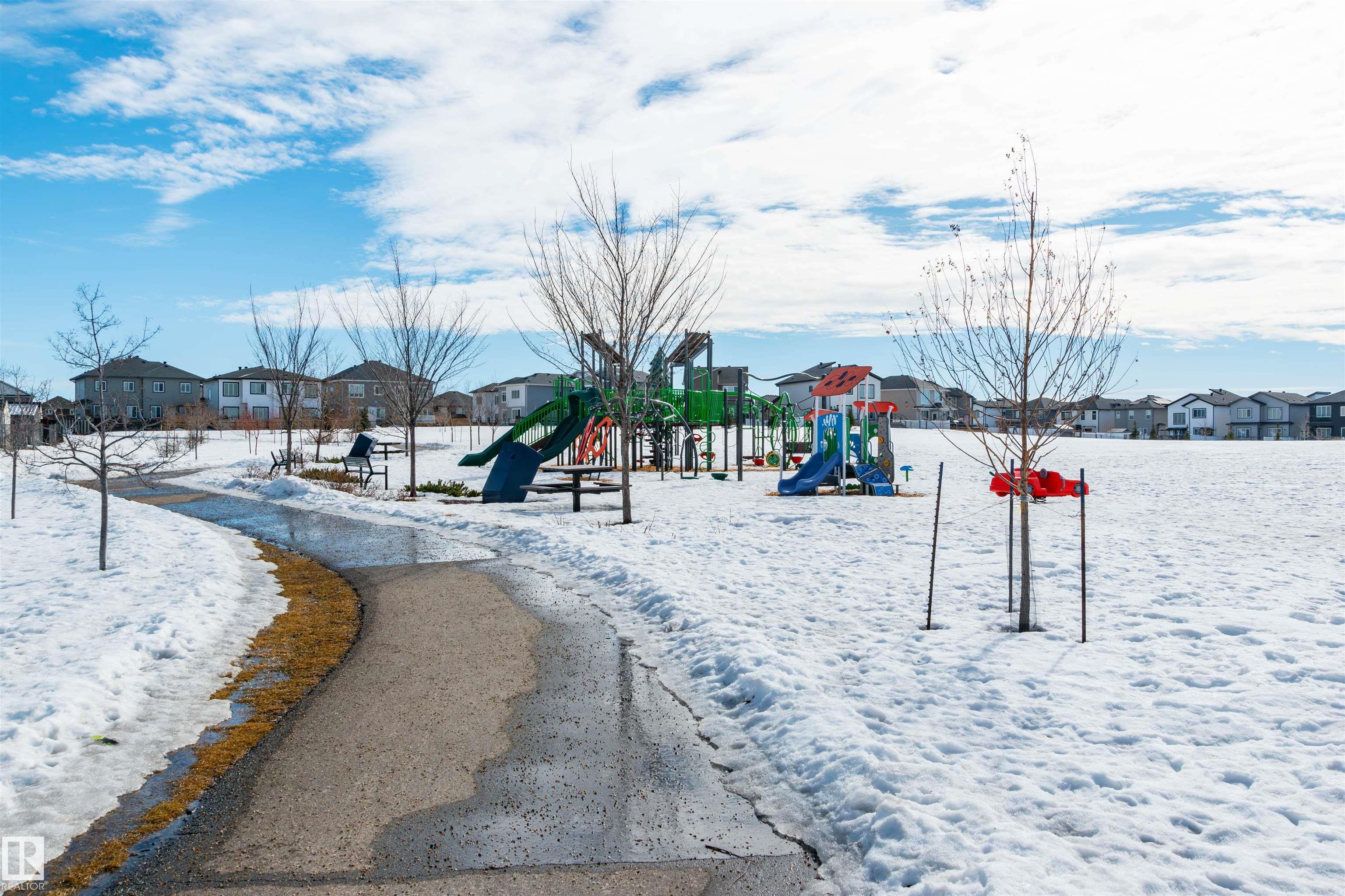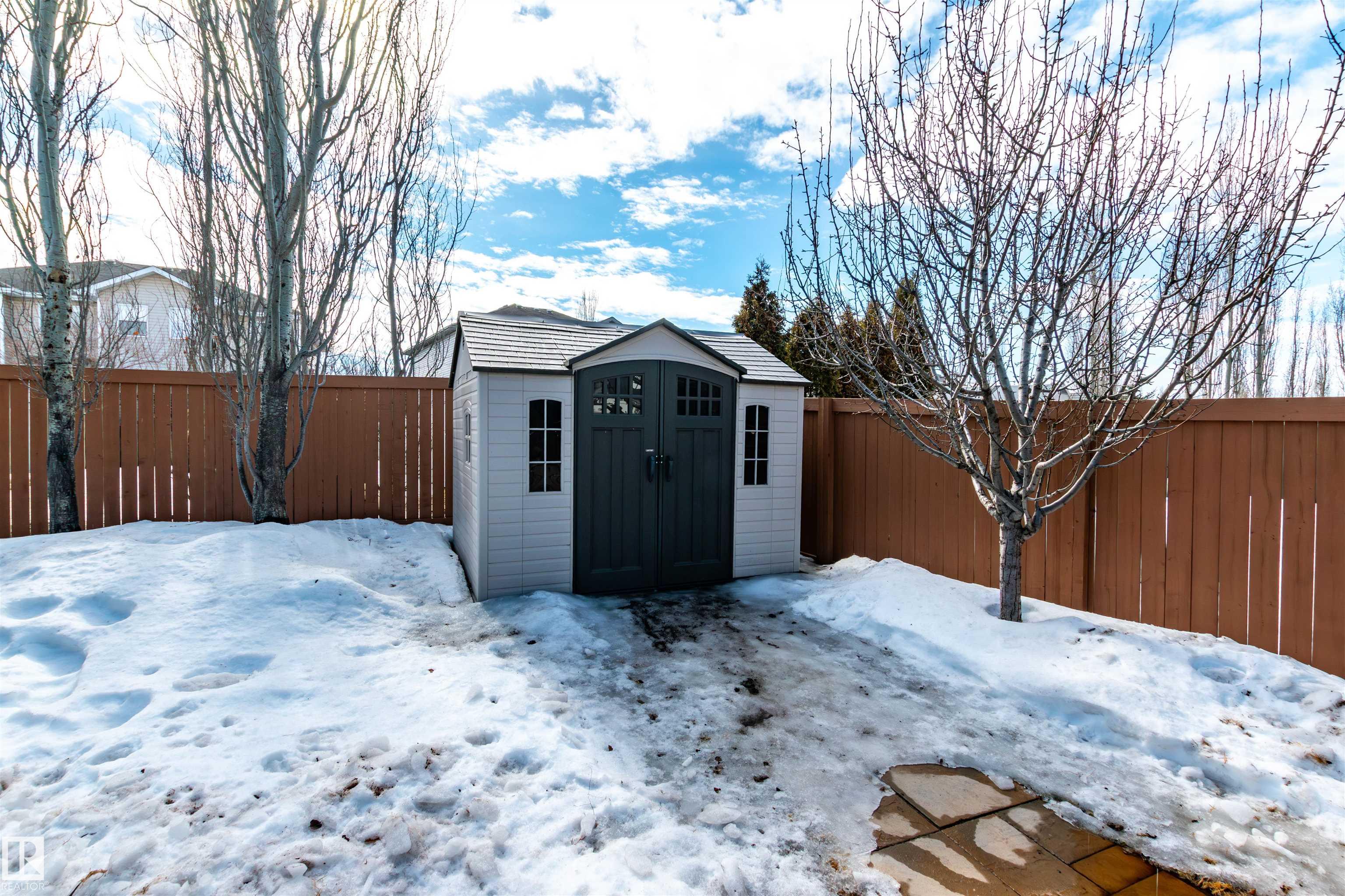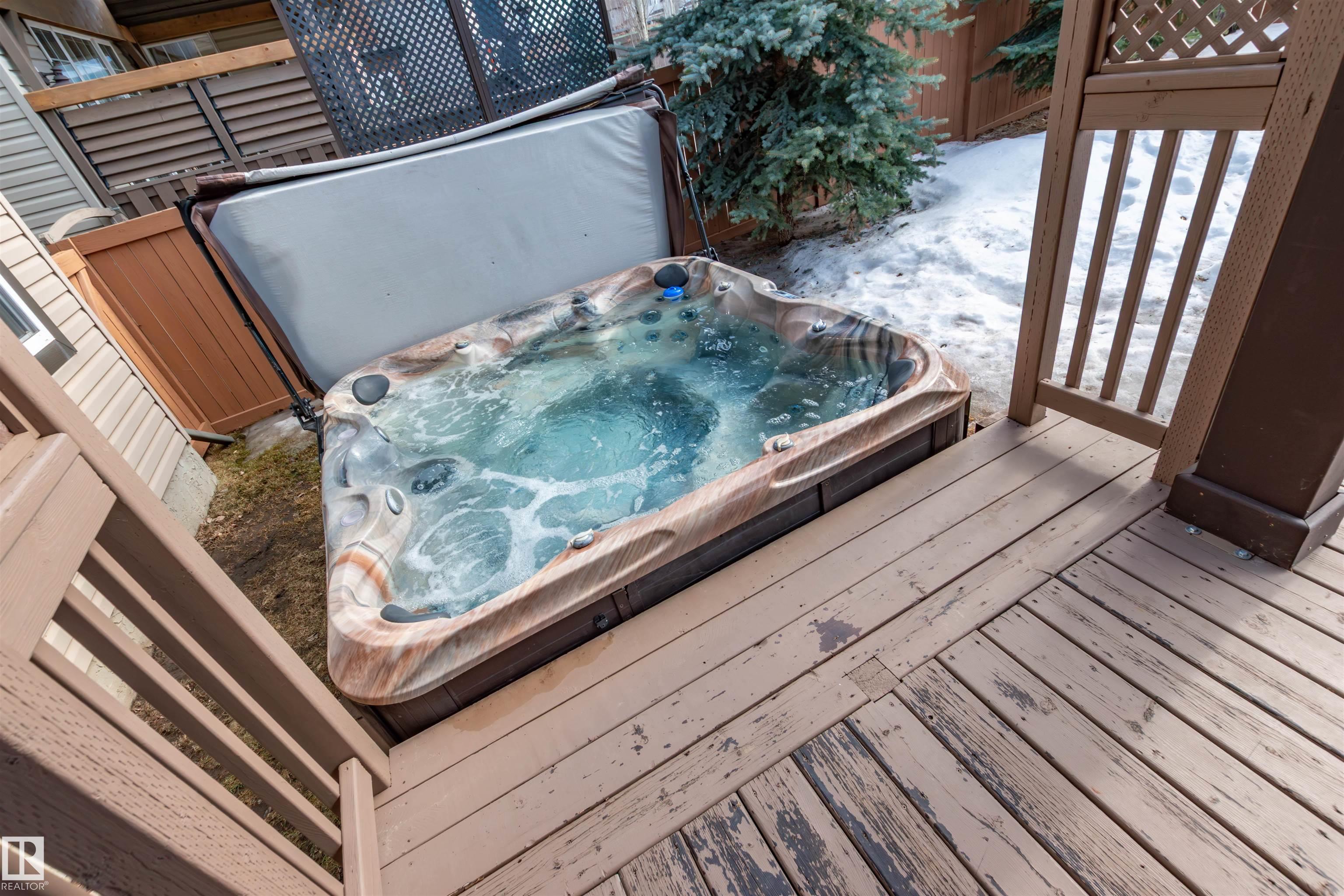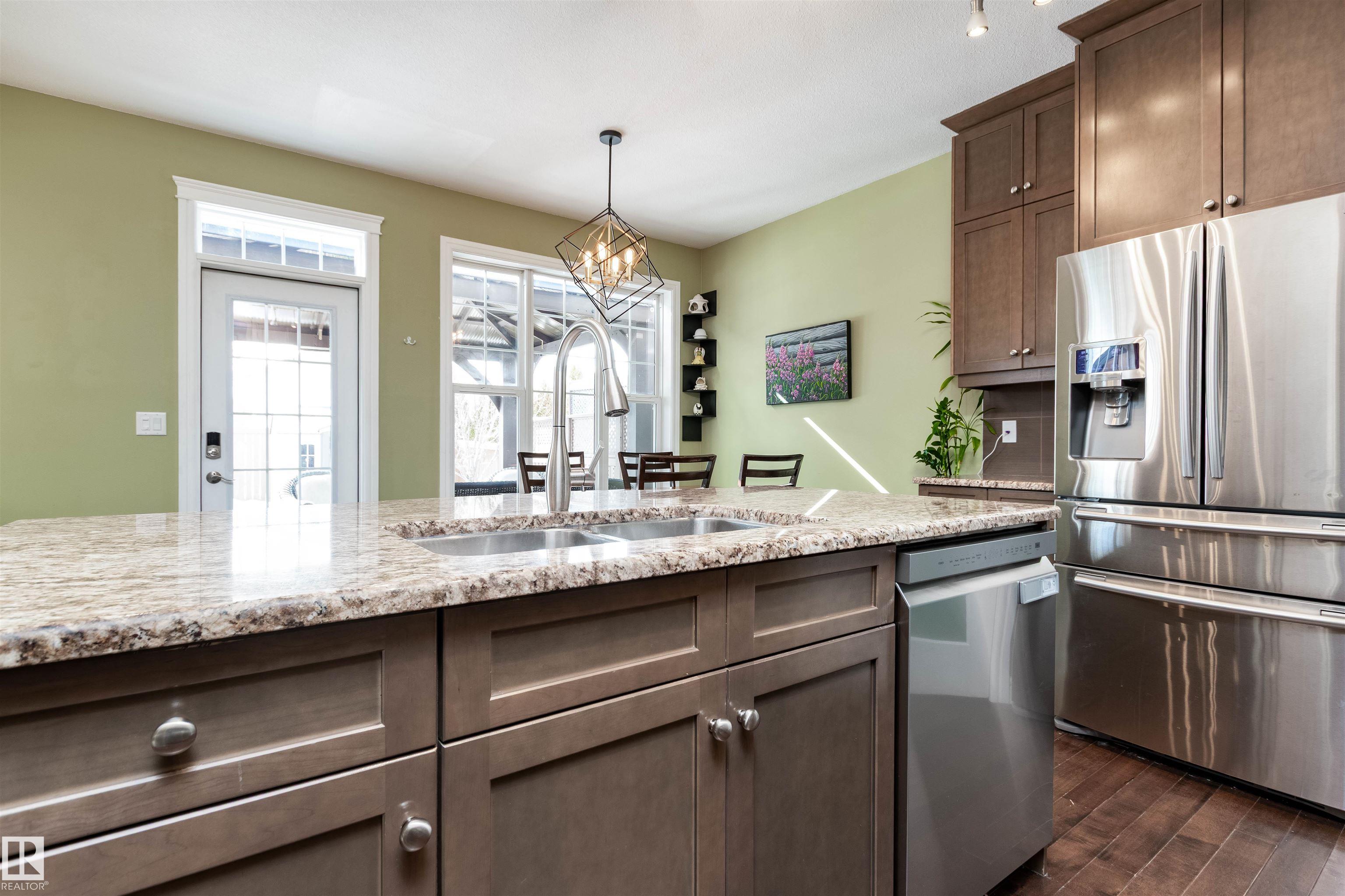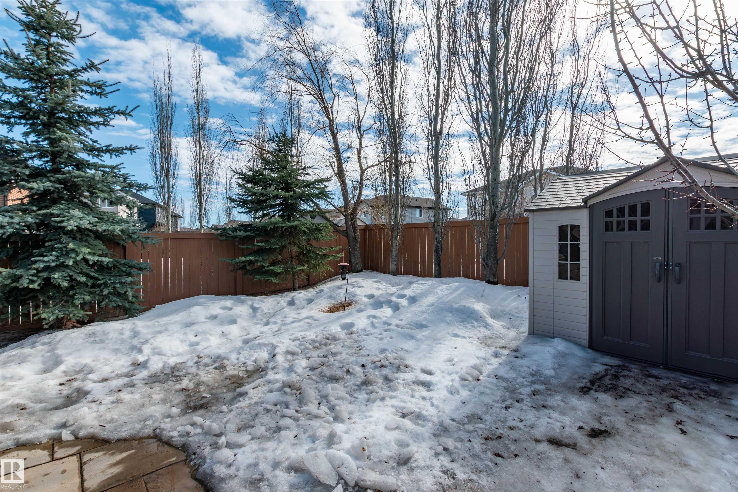 Did you say Oversized Triple Garage?? This immaculately appointed 4 bed, 3 1/2 bath 2 storey beauty, in the family friendly Fort Sask. comm. of Westpark, checks all the boxes. Once you get past the impressive and uber functional triple garage (heated and w/ 2 fl. drains and h/c water bibs), you are presented with a luxurious open concept main floor living, kitch. and eating space. The FULL WALL, floor to ceiling stone fireplace offers a unique living and entertainment area normally reserved for exclusive estate properties. So much natural light!! A well appointed kitchen with gas range, ceiling high cabinets, bar seating, and granite counters, looks directly out to an amazing outdoor gazebo covered deck w/ step in tub. The large primary bed. w/ luxury 4 pce ensuite (sep. tub and shower) sets the romantic mood. Spacious bonus room area for family entertainment. Fully finished basement w/ wet bar, and an additional bedr., full bath, and family room. Close to parks and walking trails!! Raise a family here!!