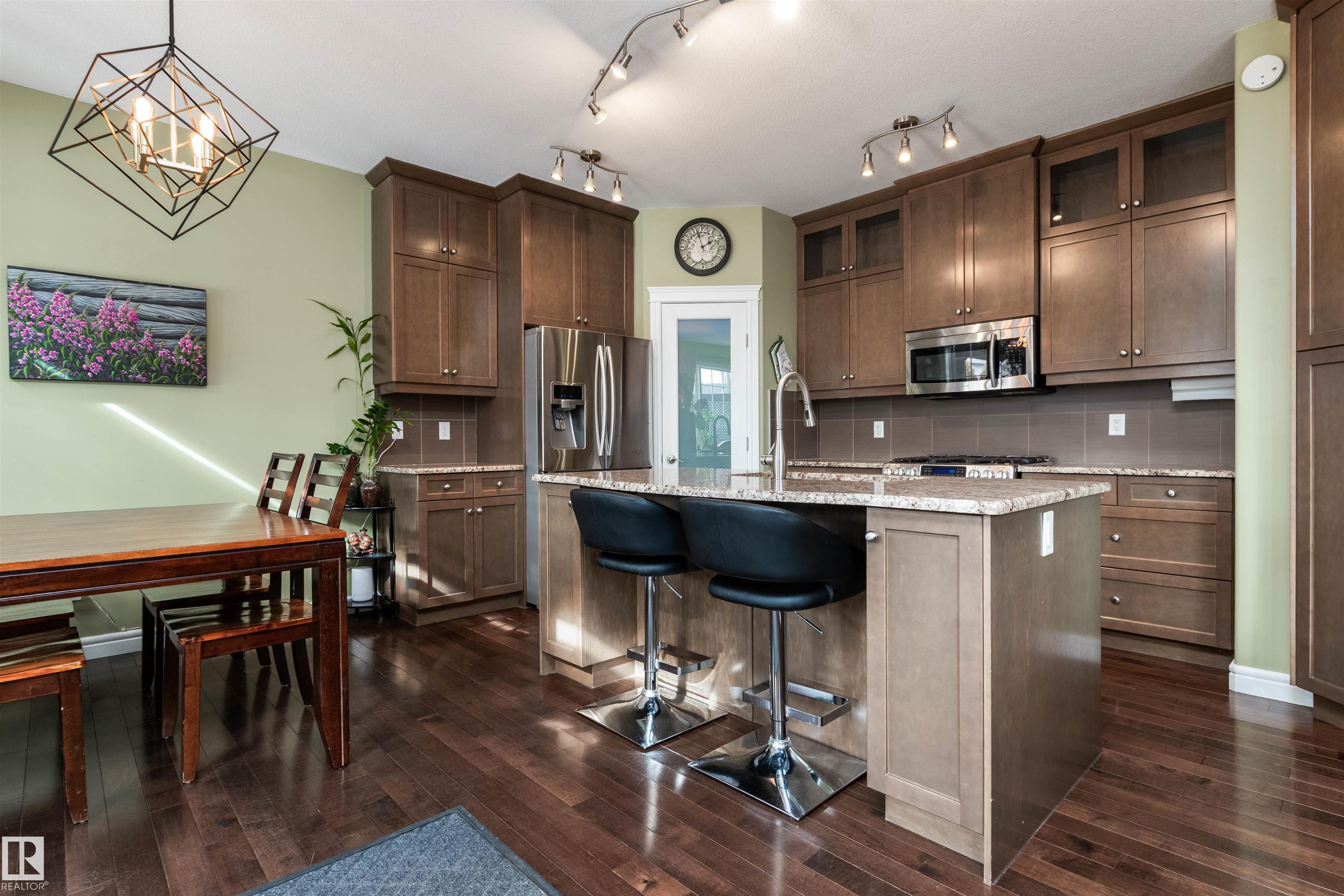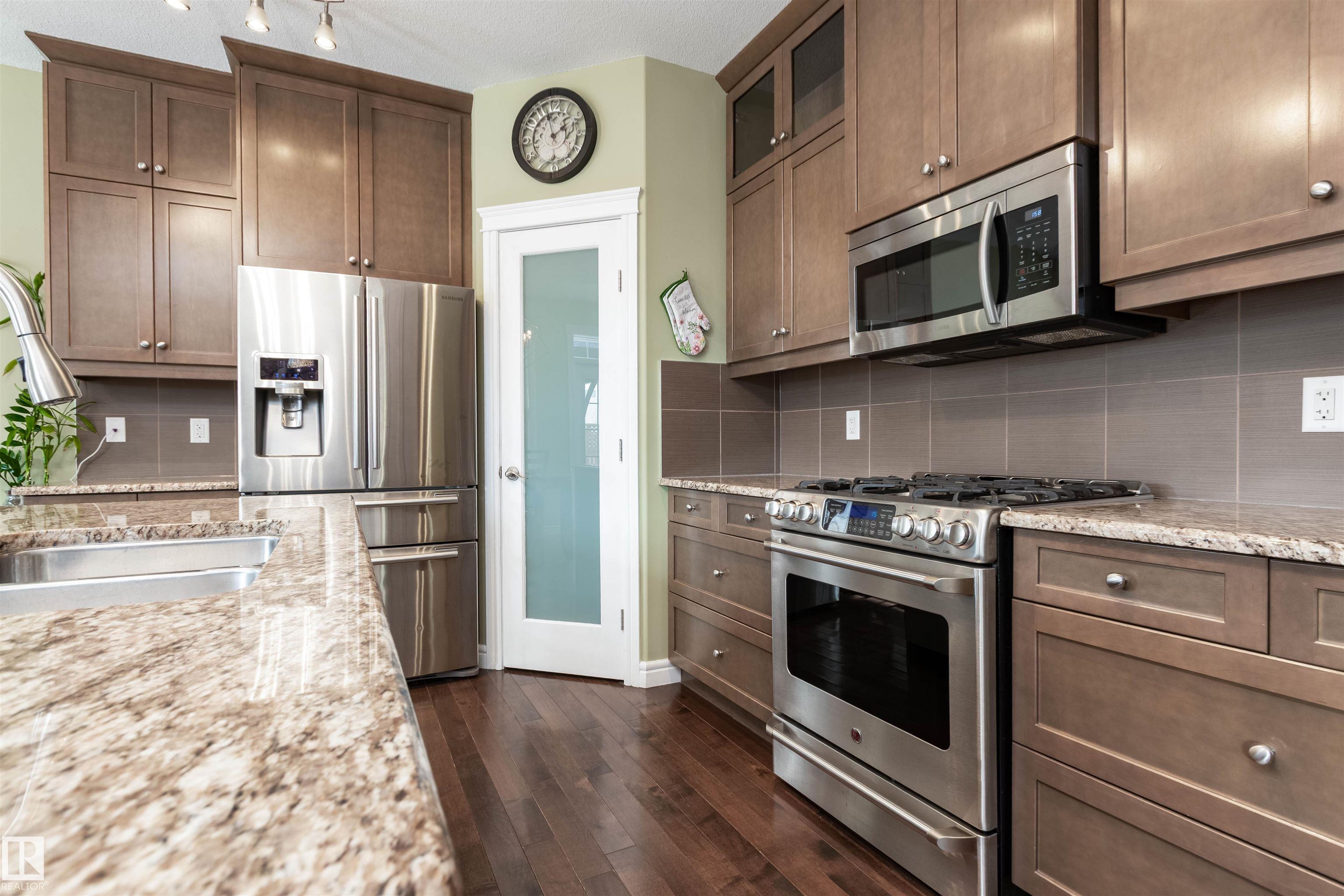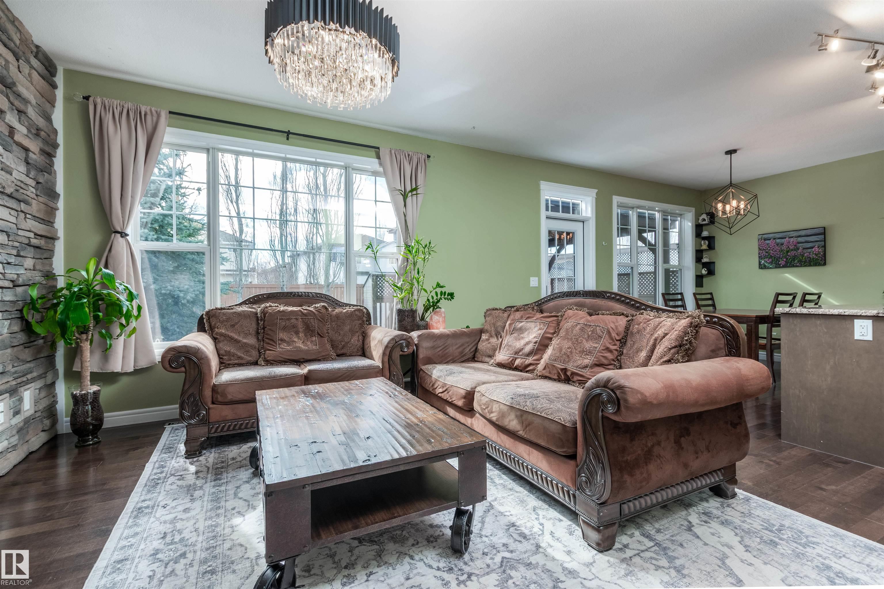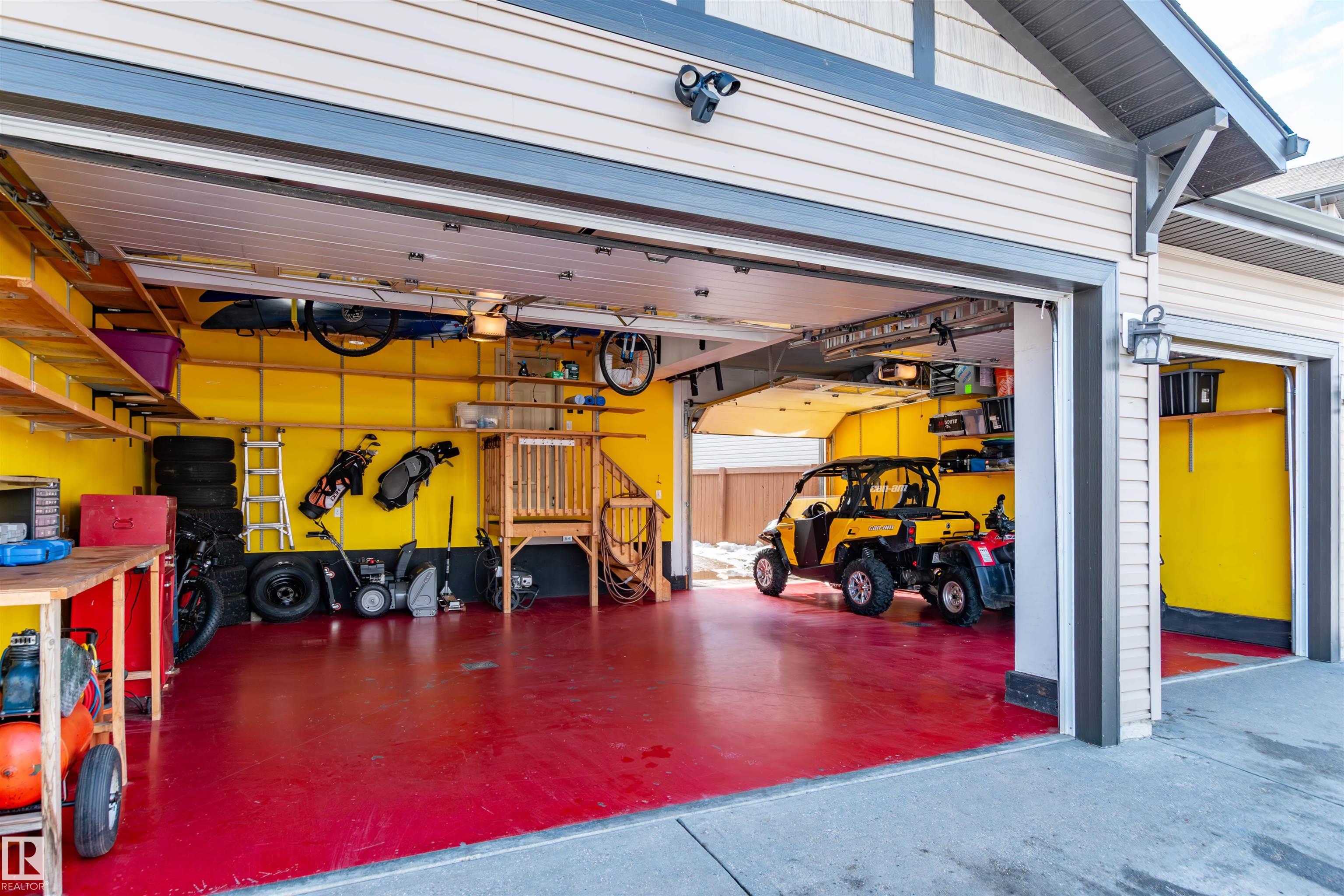 Did you say Oversized Triple Garage?? This immaculately appointed 4 bed, 3 1/2 bath 2 storey beauty, in the family friendly Fort Sask. comm. of Westpark, checks all the boxes. Once you get past the impressive and uber functional triple garage (heated and w/ 2 fl. drains and h/c water bibs), you are presented with a luxurious open concept main floor living, kitch. and eating space. The FULL WALL, floor to ceiling stone fireplace offers a unique living and entertainment area normally reserved for exclusive estate properties. So much natural light!! A well appointed kitchen with gas range, ceiling high cabinets, bar seating, and granite counters, looks directly out to an amazing outdoor gazebo covered deck w/ step in tub. The large primary bed. w/ luxury 4 pce ensuite (sep. tub and shower) sets the romantic mood. Spacious bonus room area for family entertainment. Fully finished basement w/ wet bar, and an additional bedr., full bath, and family room. Close to parks and walking trails!! Raise a family here!!