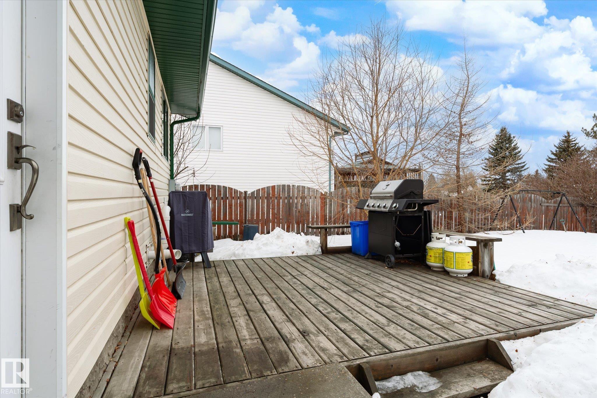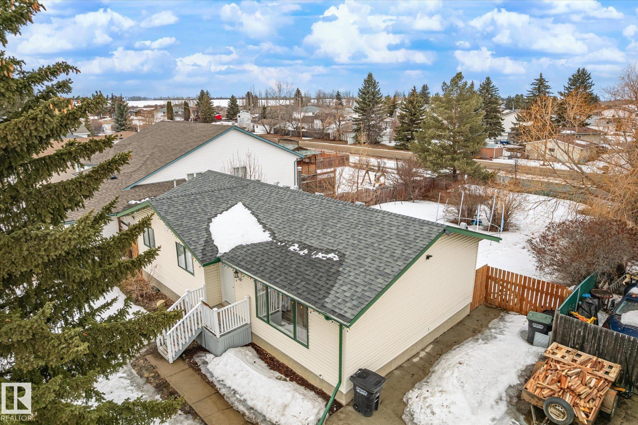 Welcome to this bright and inviting 4-bedroom, 3-bathroom home designed with family living in mind. This open-concept property offers a spacious and functional layout that balances comfort with everyday convenience. Natural light fills the home, creating a warm and welcoming atmosphere throughout. The primary bedroom features a private ensuite, providing a comfortable retreat at the end of the day. Step outside to a large back deck and yard, with plenty of space for kids to play or for hosting summer gatherings. With no back lane, you can enjoy added privacy and peace of mind. Situated on a semi-private street, this home offers a quiet setting while still being close to everything you need. Ideally located near schools and the local arena, this home supports an active lifestyle. Highway 28 is just minutes away, making commuting to the city or nearby military base easy.