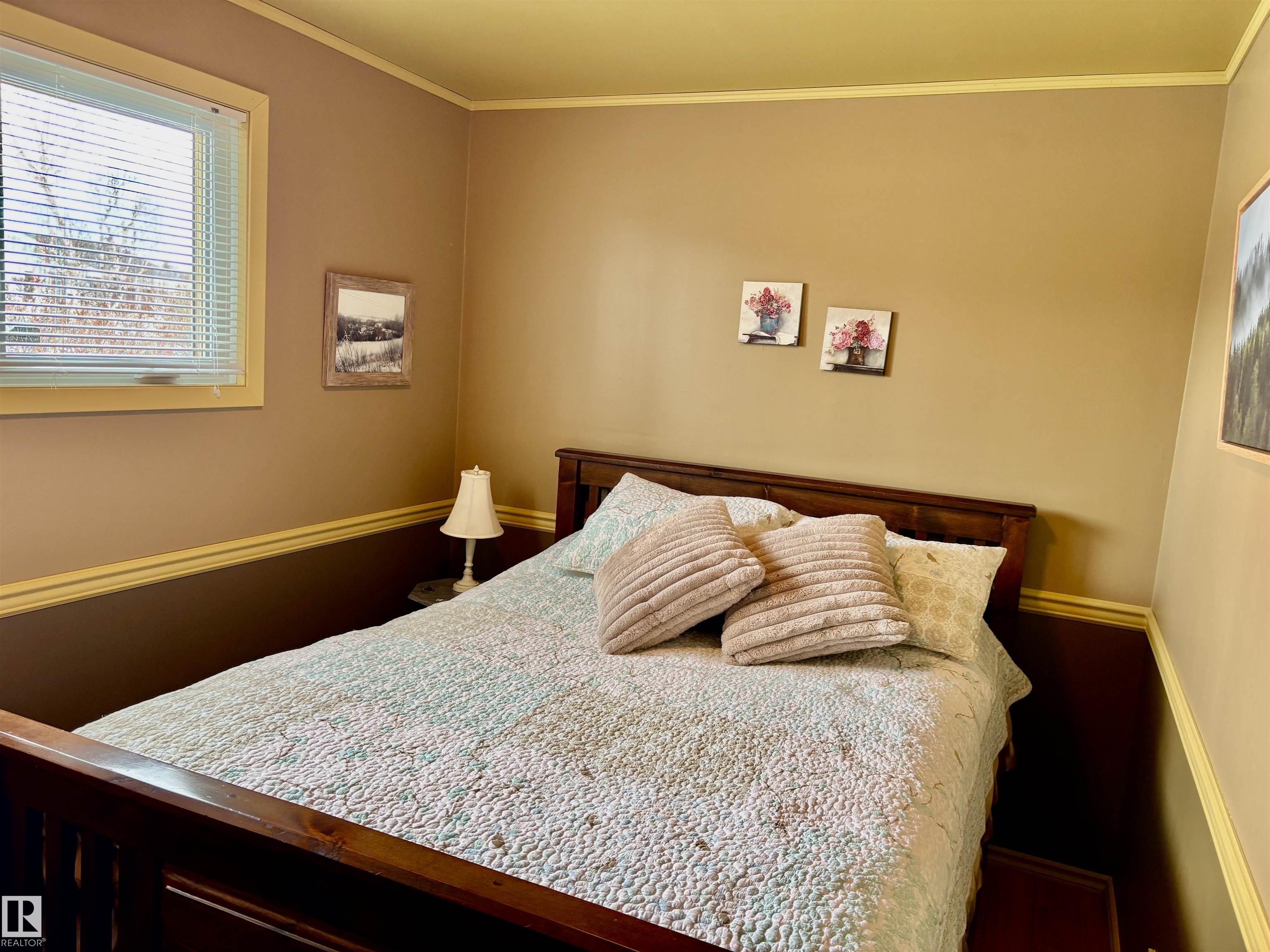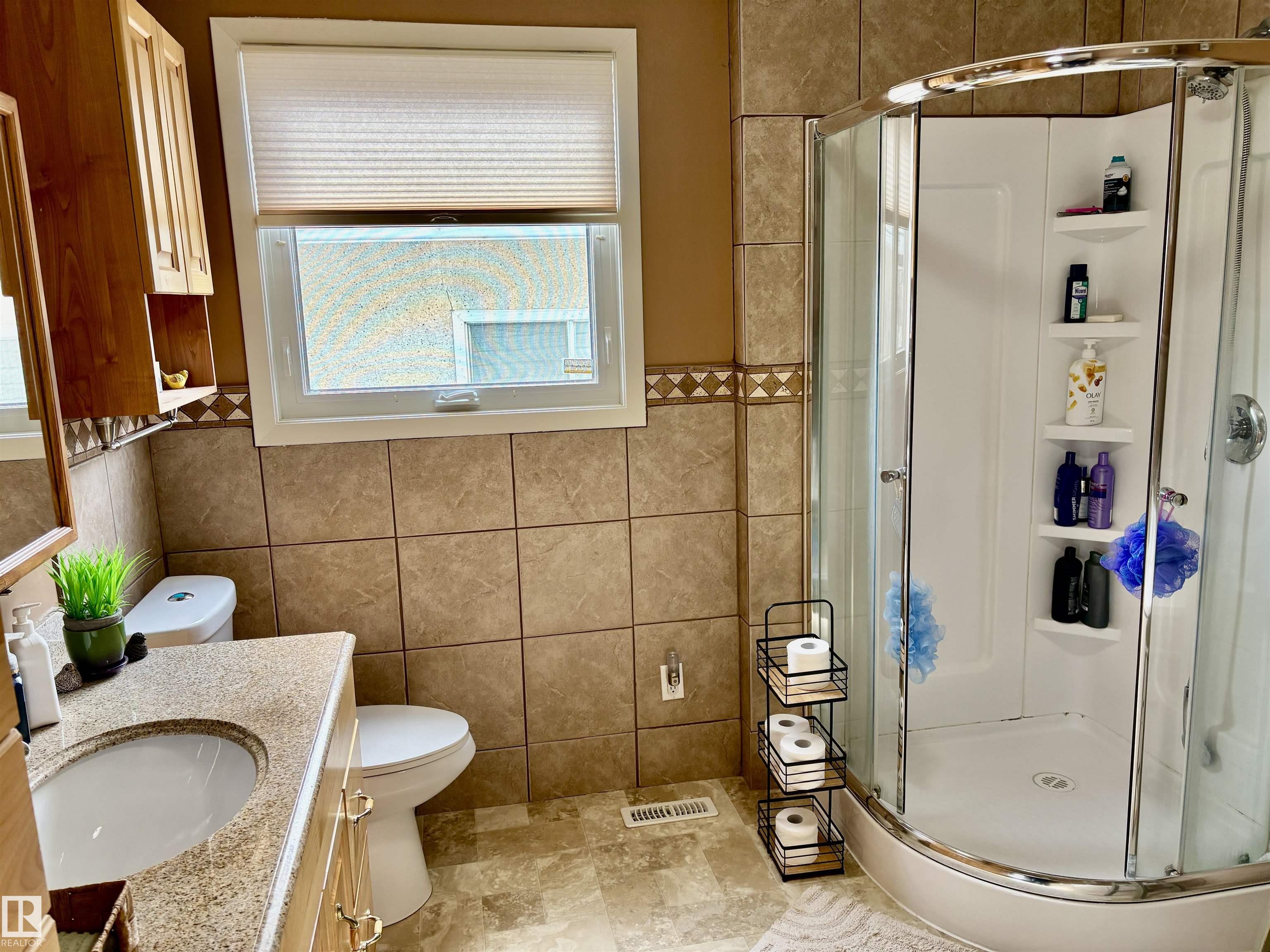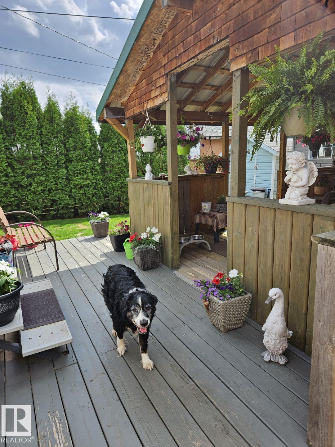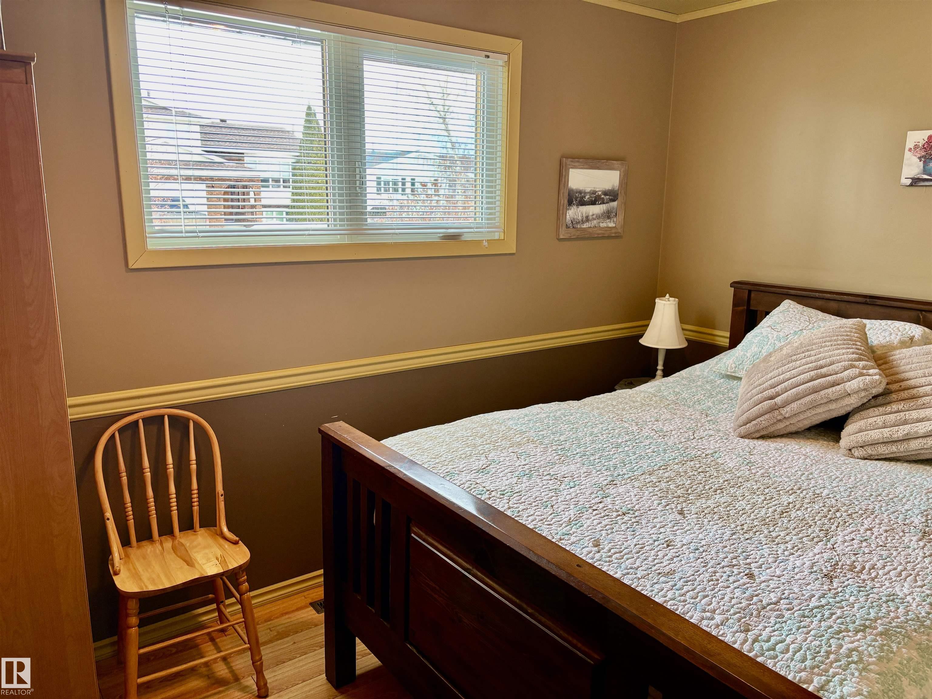 Calling all Seniors or 1st time home buyers... This one is a gem!! Main Floor laundry, 2 bedrooms on main floor with 2 bathrooms with a jetted tub, enormous kitchen with at spacious dining area over looking the deck and gazebo. The living room faces east and is a cozy area for your family. In the basement you will find a rec. room and office area and plenty of storage. Some of the upgrades include: new hot water on demand, newer windows, A/C, new fence, newer furnace, shingles (2025)eaves & soffits. Nothing to do but move in. There is a heated shed just off the back alley, and enough space for a huge motor home or build a garage if you need. Plenty of parking space right beside the home as well.