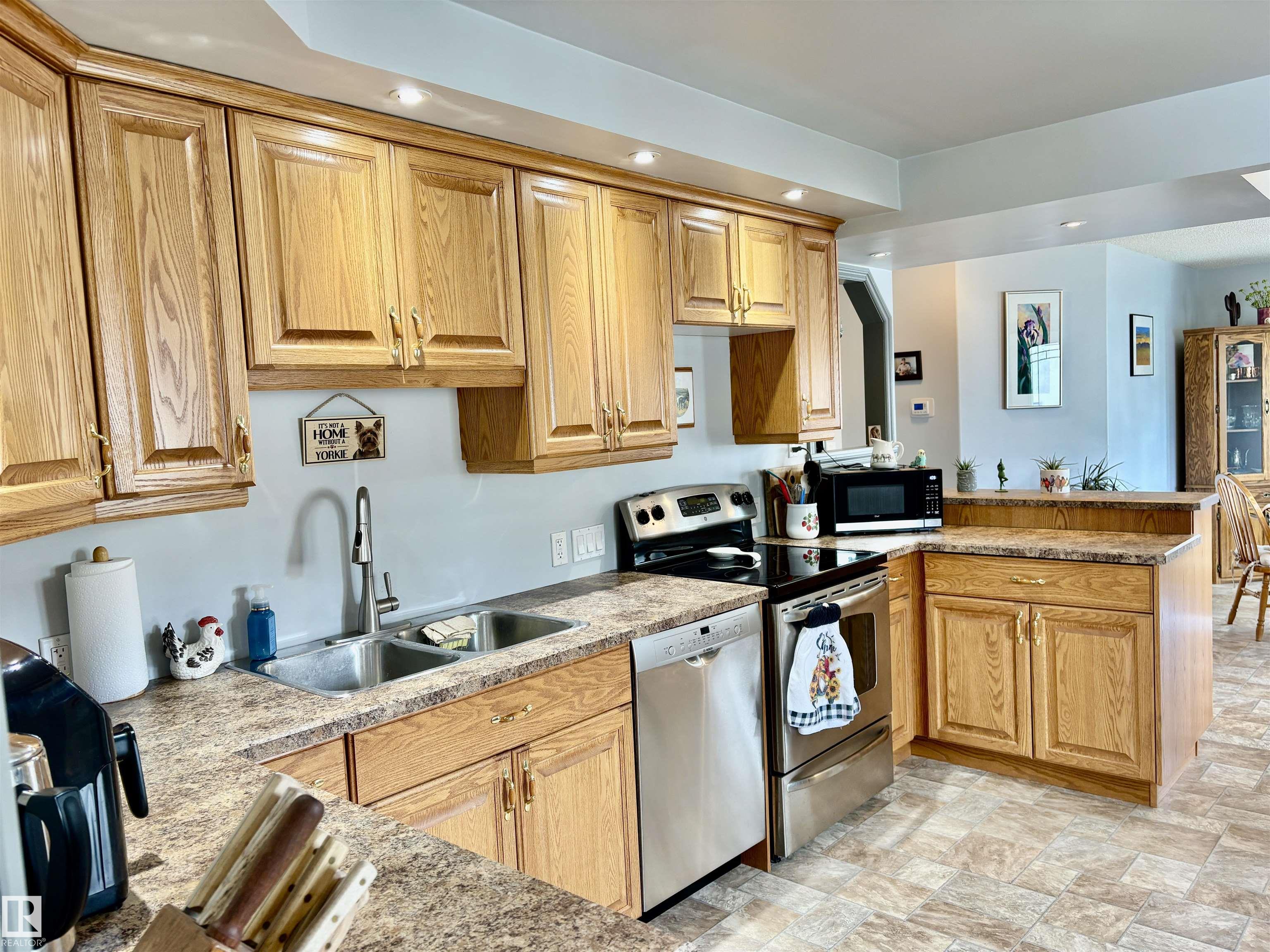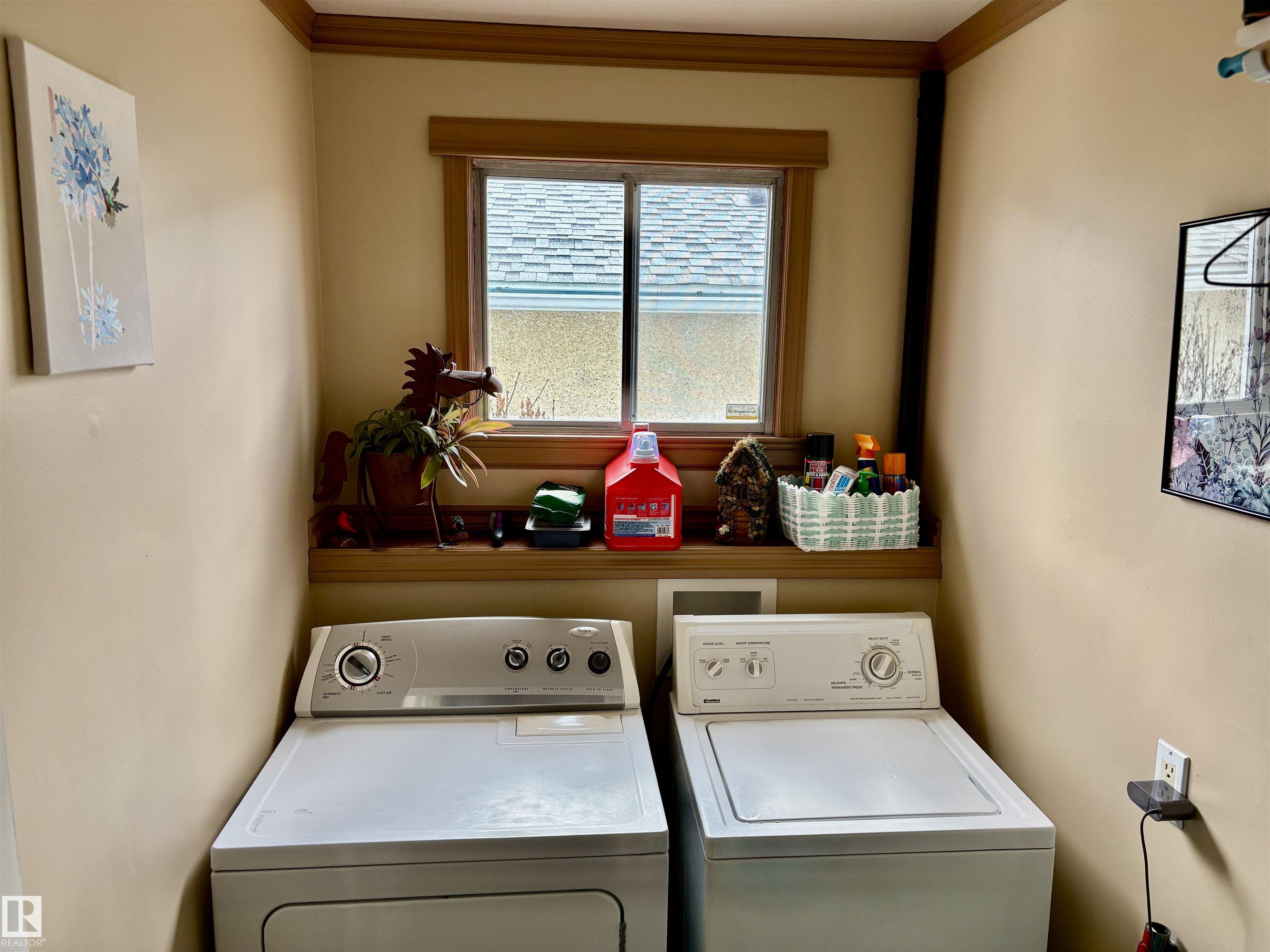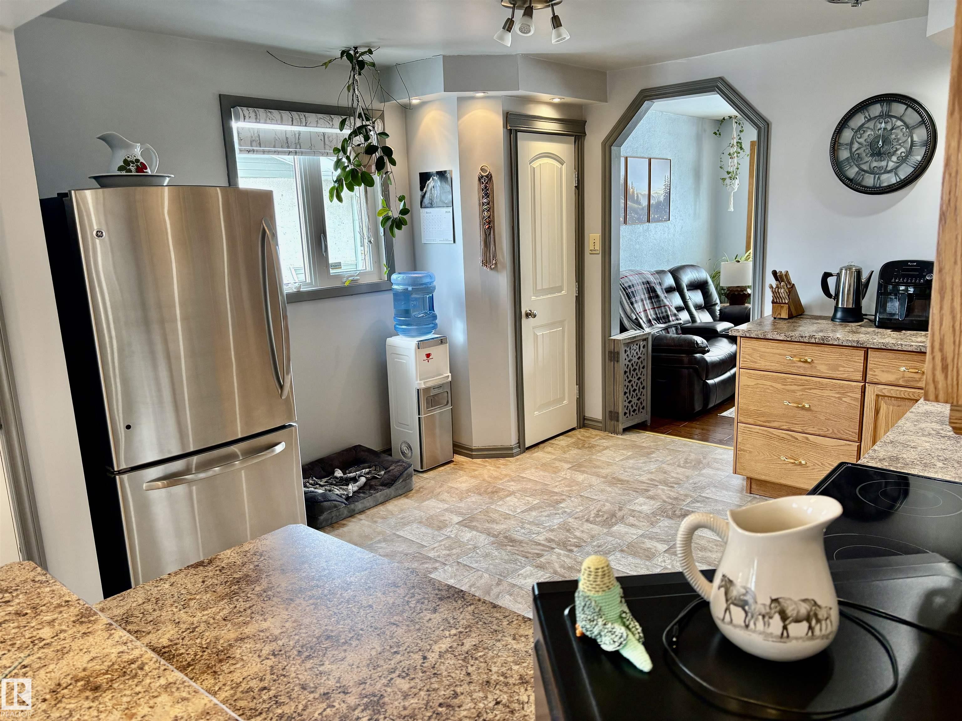 Calling all Seniors or 1st time home buyers... This one is a gem!! Main Floor laundry, 2 bedrooms on main floor with 2 bathrooms with a jetted tub, enormous kitchen with at spacious dining area over looking the deck and gazebo. The living room faces east and is a cozy area for your family. In the basement you will find a rec. room and office area and plenty of storage. Some of the upgrades include: new hot water on demand, newer windows, A/C, new fence, newer furnace, shingles (2025)eaves & soffits. Nothing to do but move in. There is a heated shed just off the back alley, and enough space for a huge motor home or build a garage if you need. Plenty of parking space right beside the home as well.