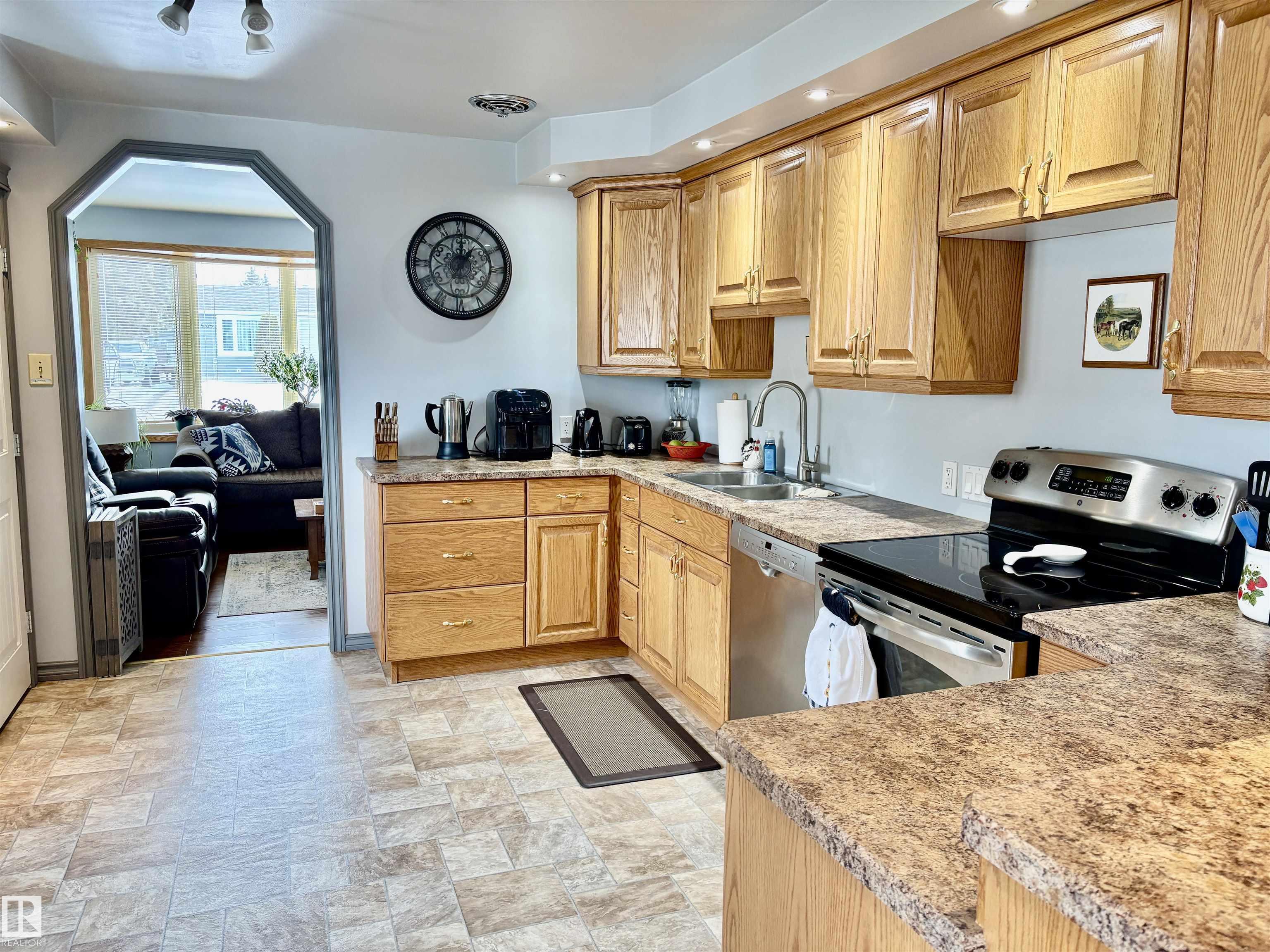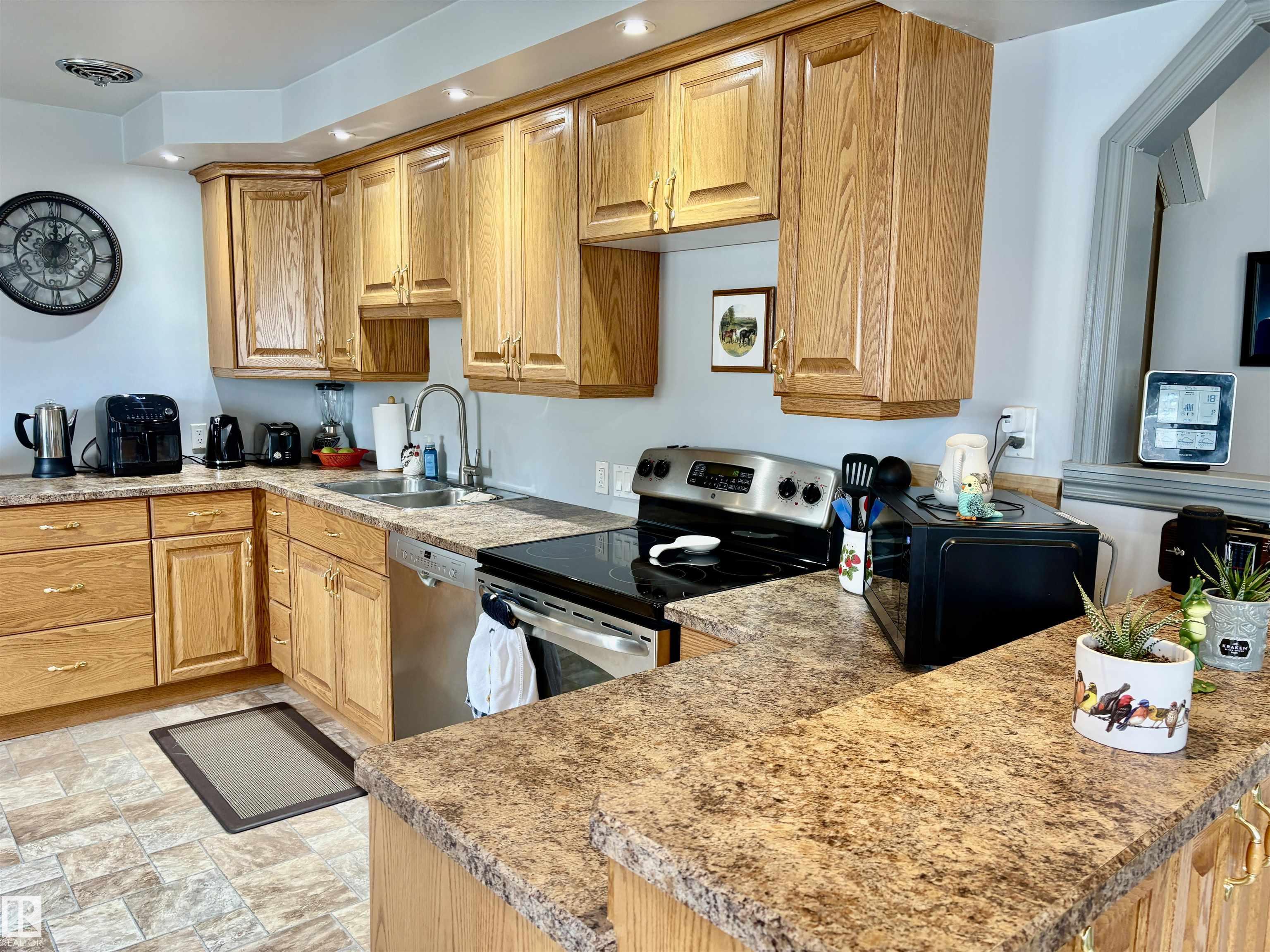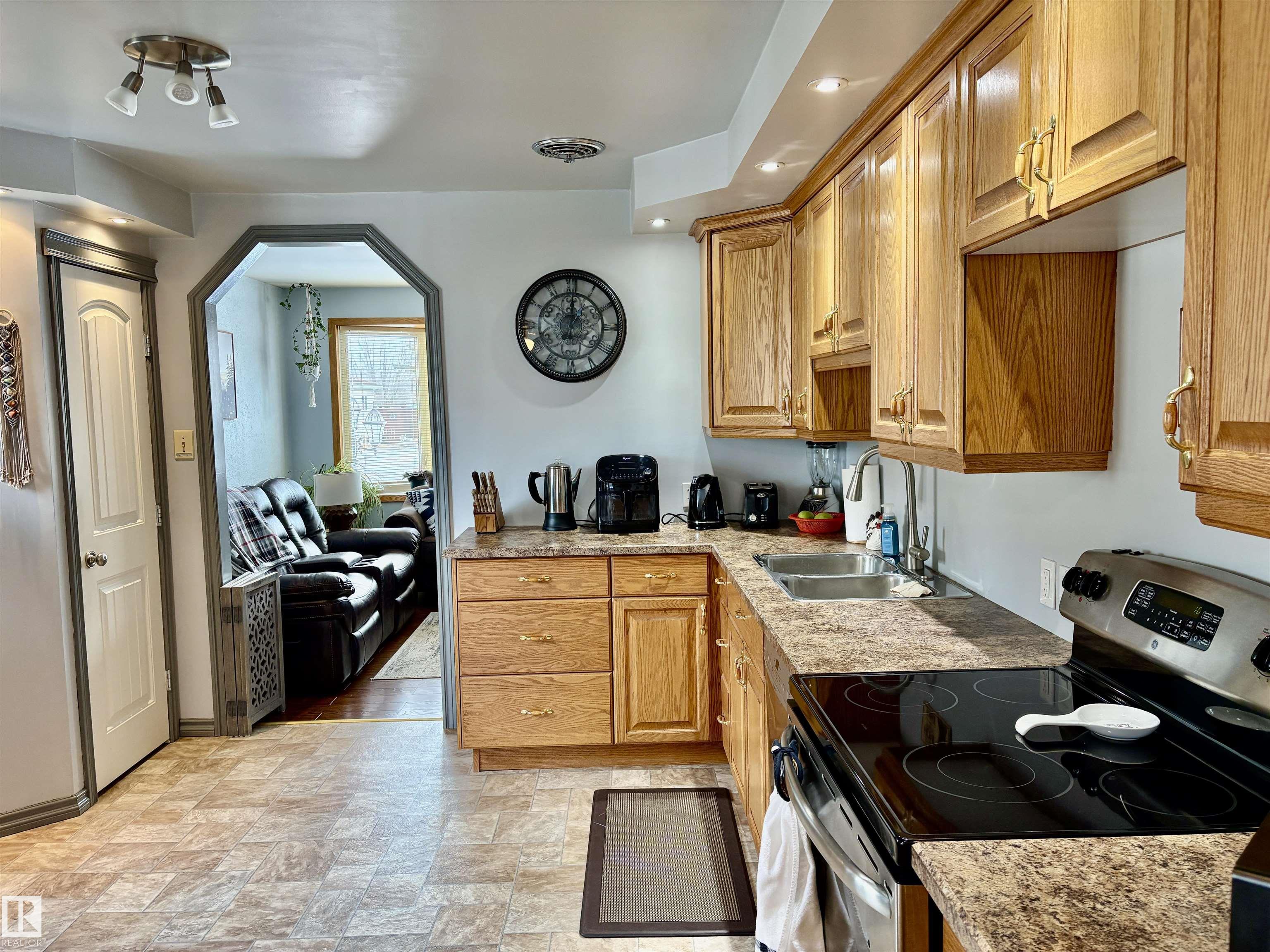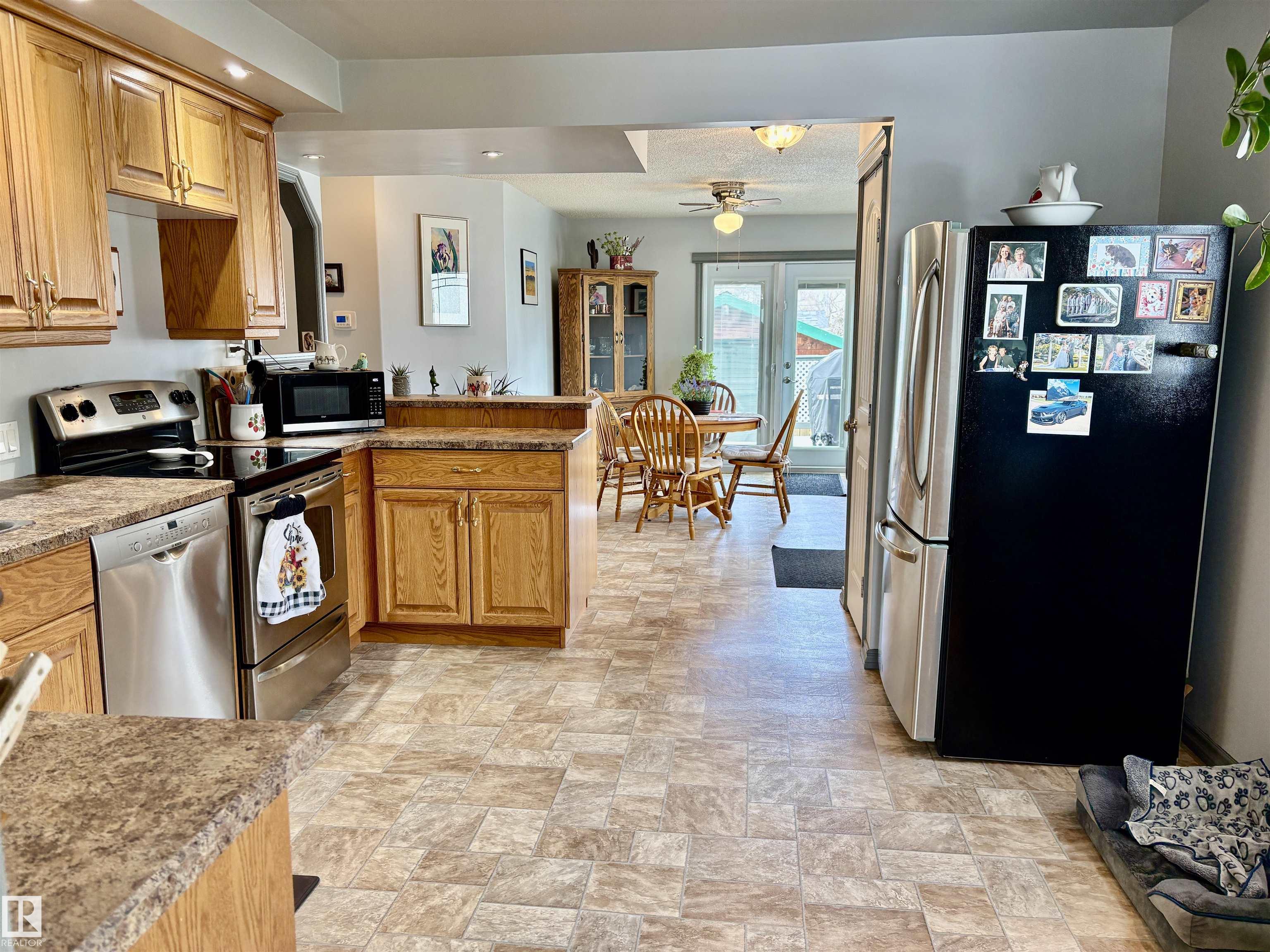 Calling all Seniors or 1st time home buyers... This one is a gem!! Main Floor laundry, 2 bedrooms on main floor with 2 bathrooms with a jetted tub, enormous kitchen with at spacious dining area over looking the deck and gazebo. The living room faces east and is a cozy area for your family. In the basement you will find a rec. room and office area and plenty of storage. Some of the upgrades include: new hot water on demand, newer windows, A/C, new fence, newer furnace, shingles (2025)eaves & soffits. Nothing to do but move in. There is a heated shed just off the back alley, and enough space for a huge motor home or build a garage if you need. Plenty of parking space right beside the home as well.