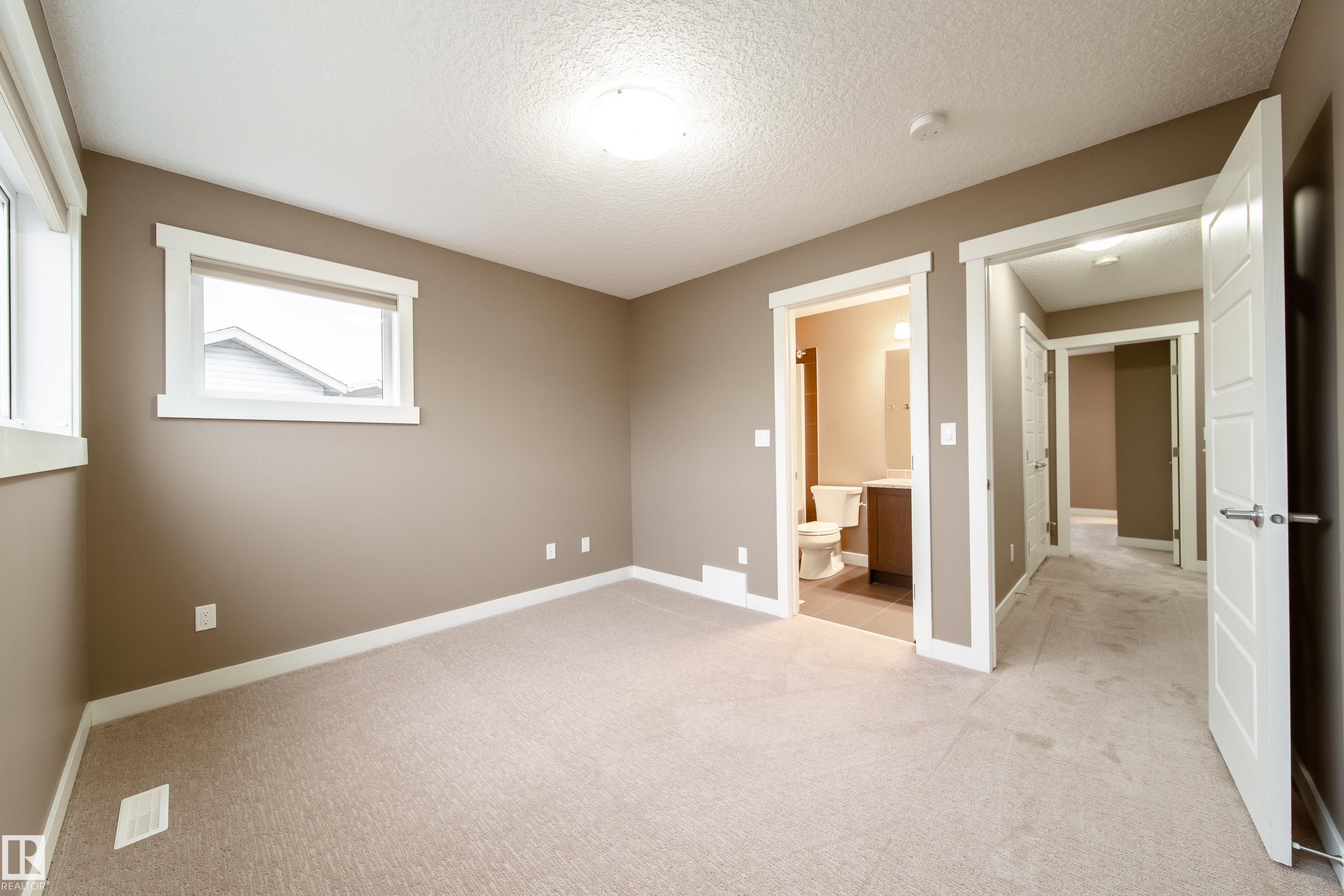 Perfect move in ready townhome in pristine condition. This 2 bed/3 bath END UNIT home is sure to impress! One of the best locations within the complex; in the center away from the busy roads and backing on to the courtyard. Freshly painted, with beautiful engineered hardwood floor on the main floor. Kitchen boasts dark cabinets, granite countertops (including an oversized eating area with room for stools) tiled backsplash and stainless steel appliances. BONUS half bath on main floor which many dont have. Upstairs features 2 large bedrooms, each with their own 4 pc ensuite and walk in closet. Laundry is also upstairs next to the bedrooms. Nice private deck out the back perfect for relaxing and enjoying the tranquility of the courtyard behind. OVERSIZED garage includes extra storage area in the furnace room as well as a little flex space for an extra work area. Plenty of visitor parking. Great location close to transit, highway 2 & 2A and the Edmonton International Airport. Immediate possession available.
