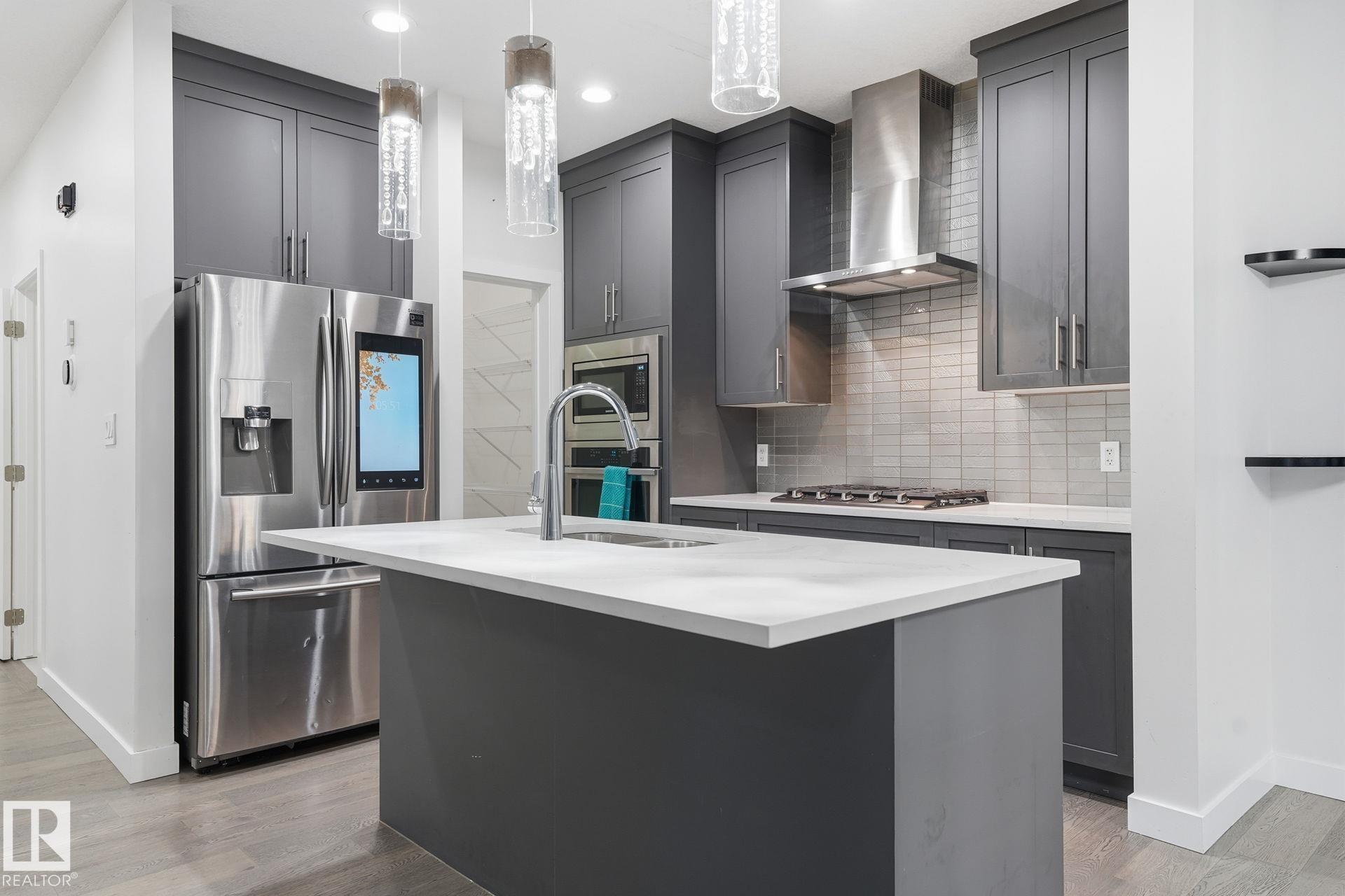 Welcome to this stunning 2-storey home in the desirable McConachie area, offering over 2,200 sq.ft. of well-designed living space. Featuring 4 spacious bedrooms, including two with private ensuites, this home is ideal for growing families. The primary suite boasts a walk-in closet with custom organizers. A grand, tiled foyer leads to an open-to-above layout filled with natural light. The modern kitchen is equipped with built-in appliances, a gas cooktop, and a functional island with overhang seating. The main floor also includes a den/office. Upstairs offers a generous bonus room and elegant spindle staircase. The fully finished basement has a separate entrance, additional bedroom, bath, and appliances?perfect for extended family. Double attached garage. Close to schools and Anthony Henday.