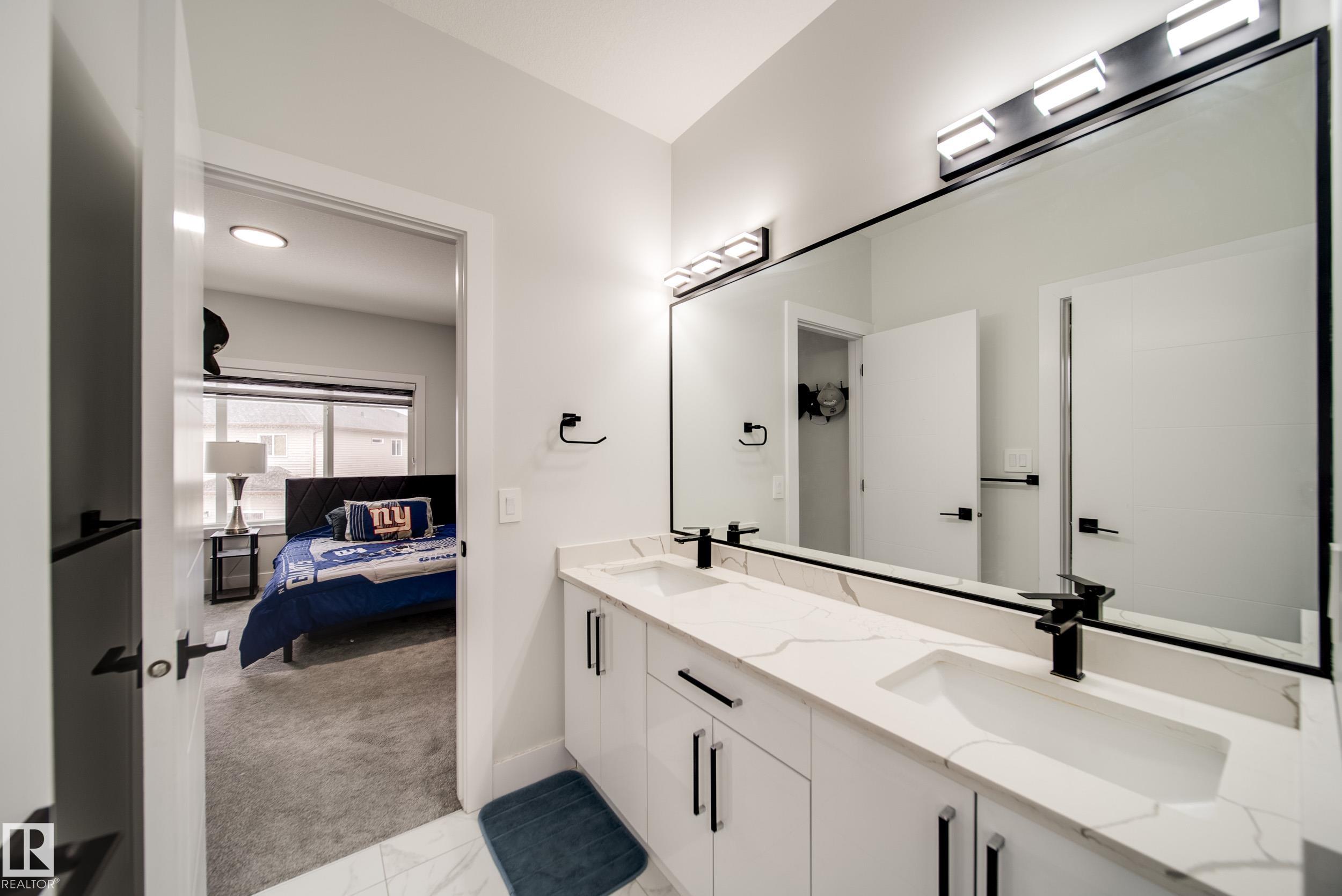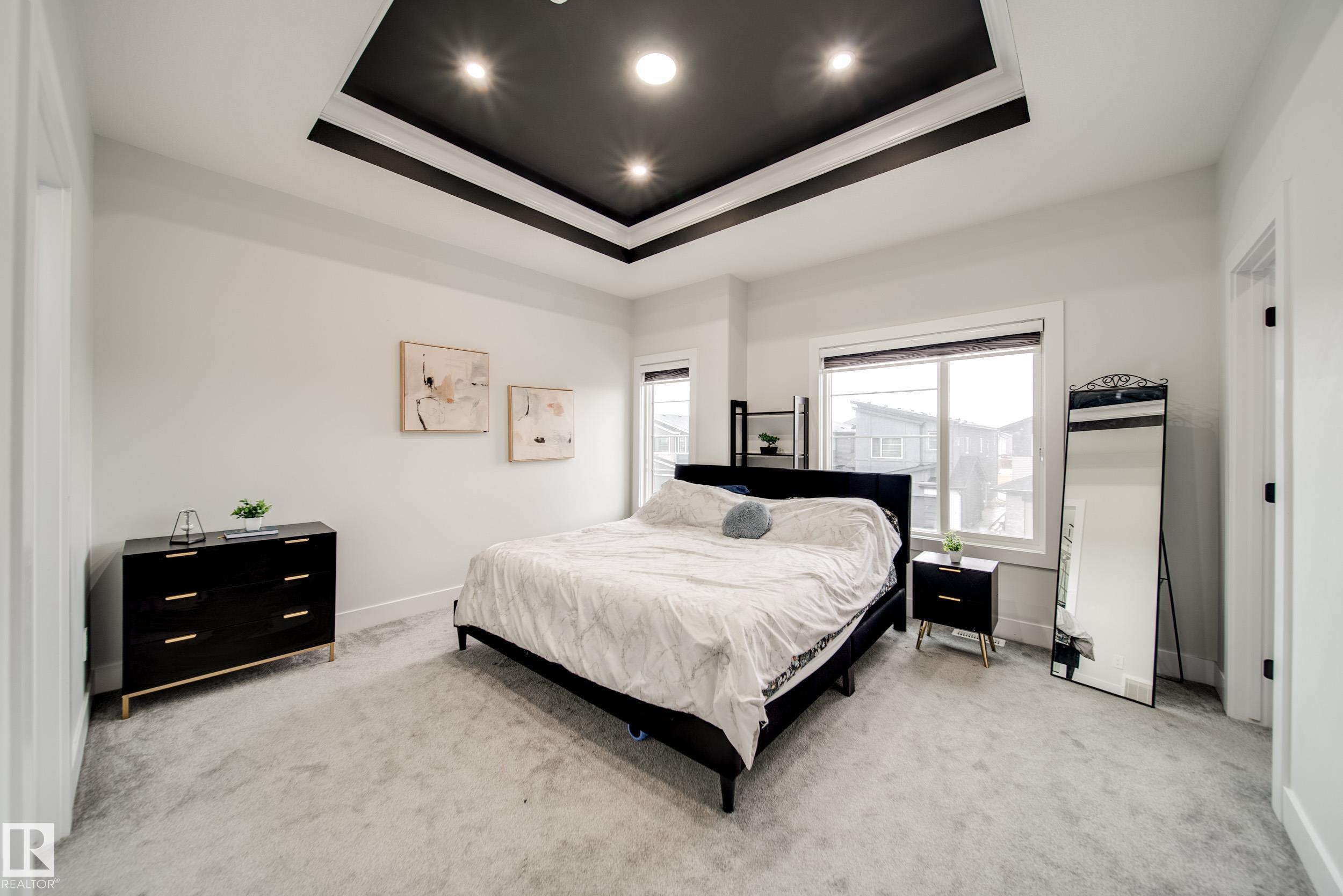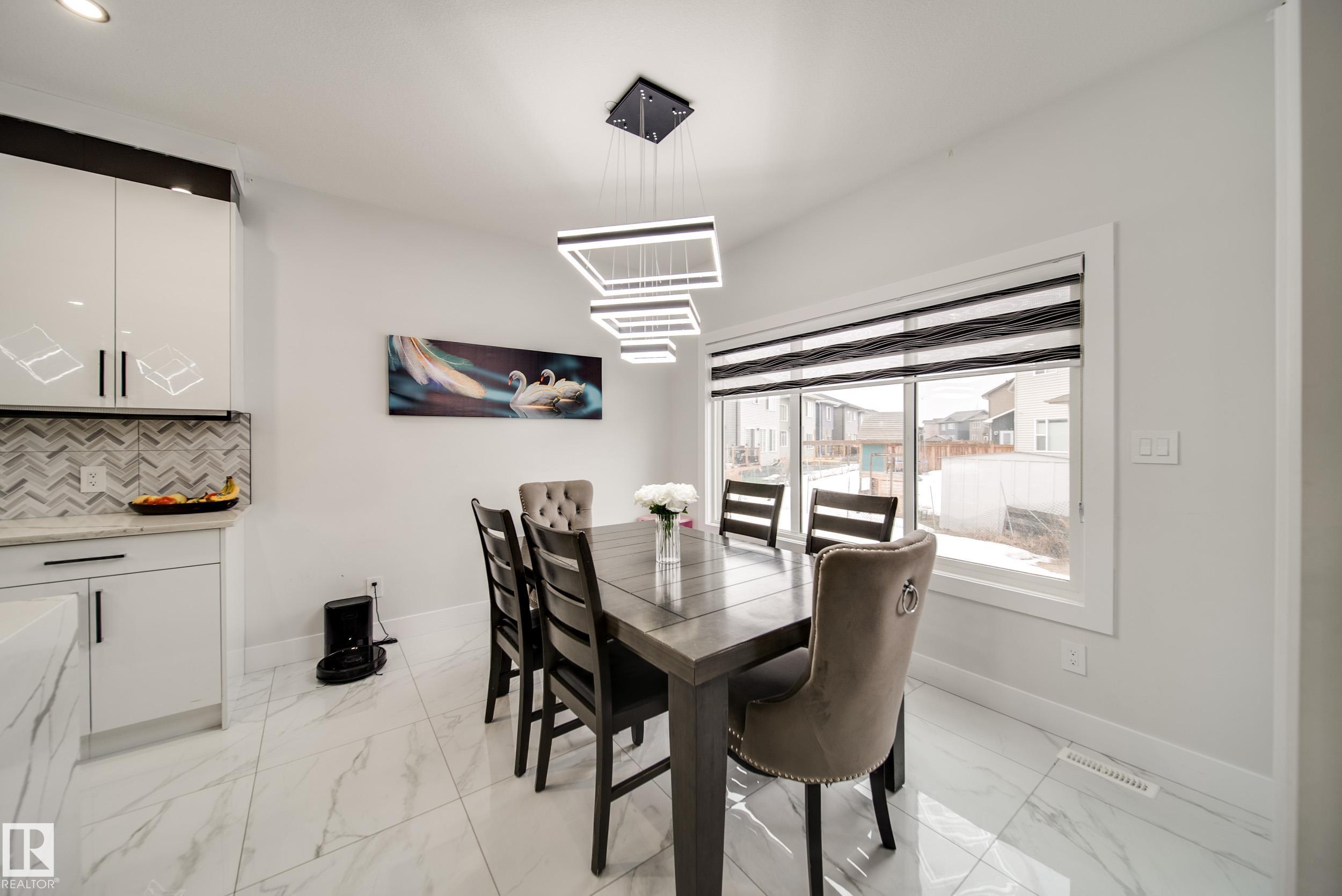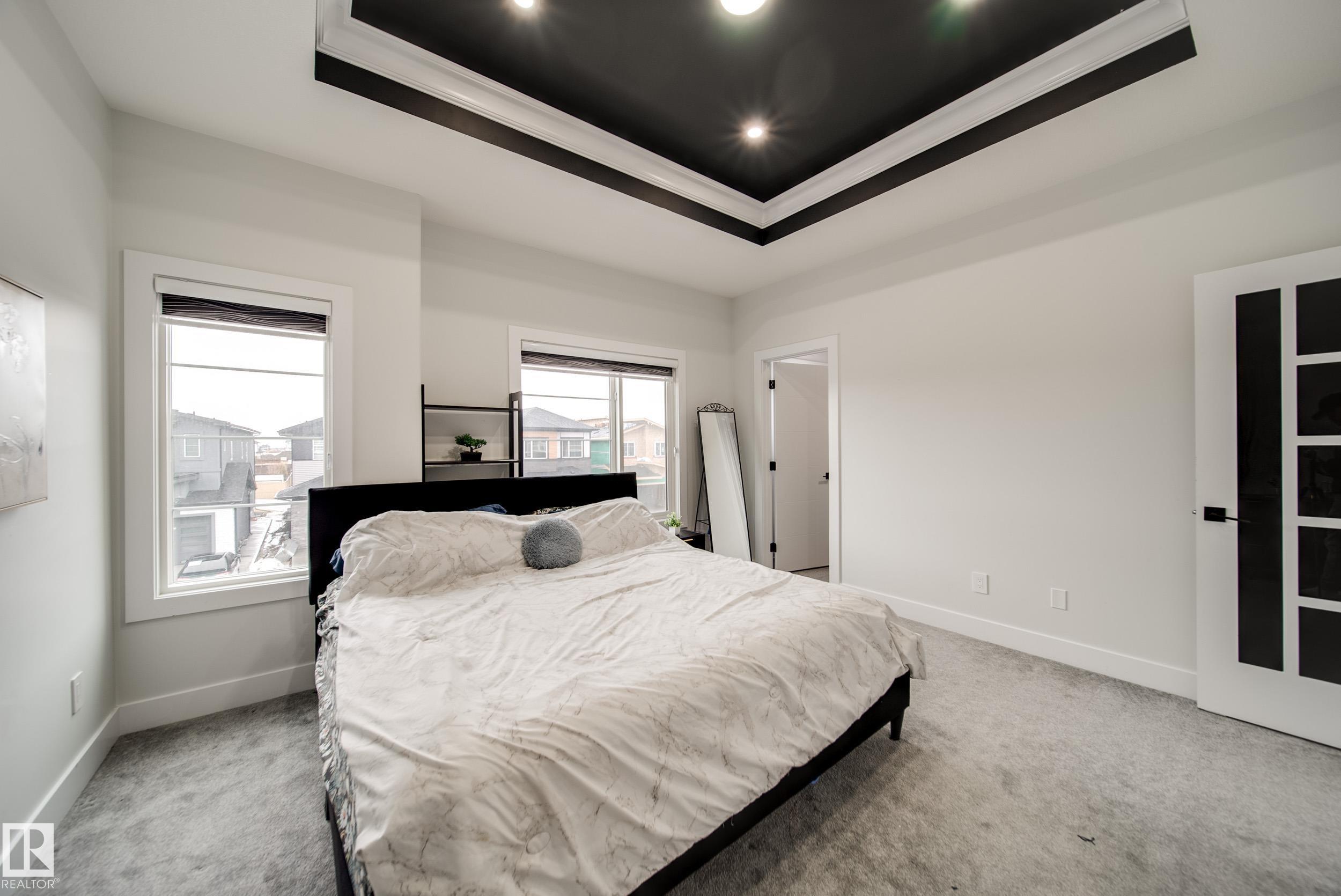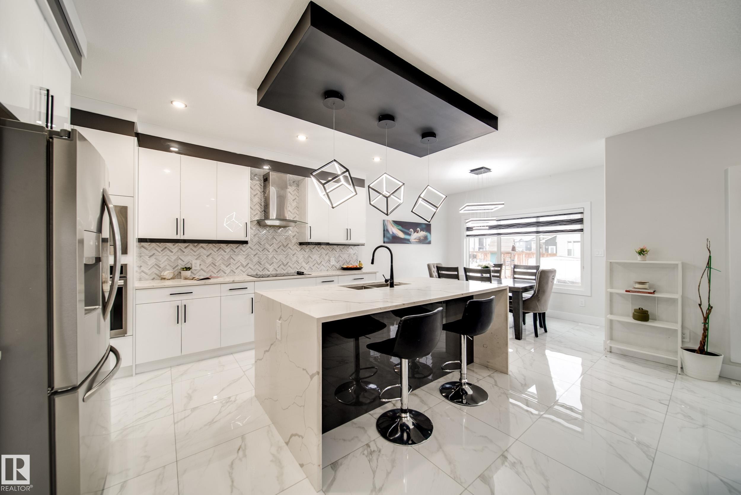 STUNNING custom built home in Schonsee offering 6 BEDS + 5 BATHS, designed for modern living & income potential! Featuring 9? ceilings on ALL levels & a grand open-to-above entry, this home makes an unforgettable first impression. The main floor boasts a bright living rm w/feature ceiling & tiled fireplace, spacious dining rm, main floor bdrm/den w/attached full bath, & a chef's dream kitchen w/QUARTZ counters, DOUBLE WATERFALL island, & SPICE KITCHEN w/a window & gas stove. Upstairs offers 4 generous bdrms incl. a LUXURIOUS primary retreat w/WIC, cove ceiling & spa-like ensuite w/jetted tub + tiled shower. One bdrm has its own private ensuite, while 2 share a Jack & Jill 5 pc bath. Spacious BONUS rm + laundry complete the level. SEPARATE ENTRANCE to a partly finished bsmt w/LEGAL SUITE permit adds incredible future value. Loaded w/upgrades: AC, garage heater, glass railing, tile baths, in-step lighting, SW facing rear deck + more! Prime location close to schools, shopping, parks & Henday. Call this home!