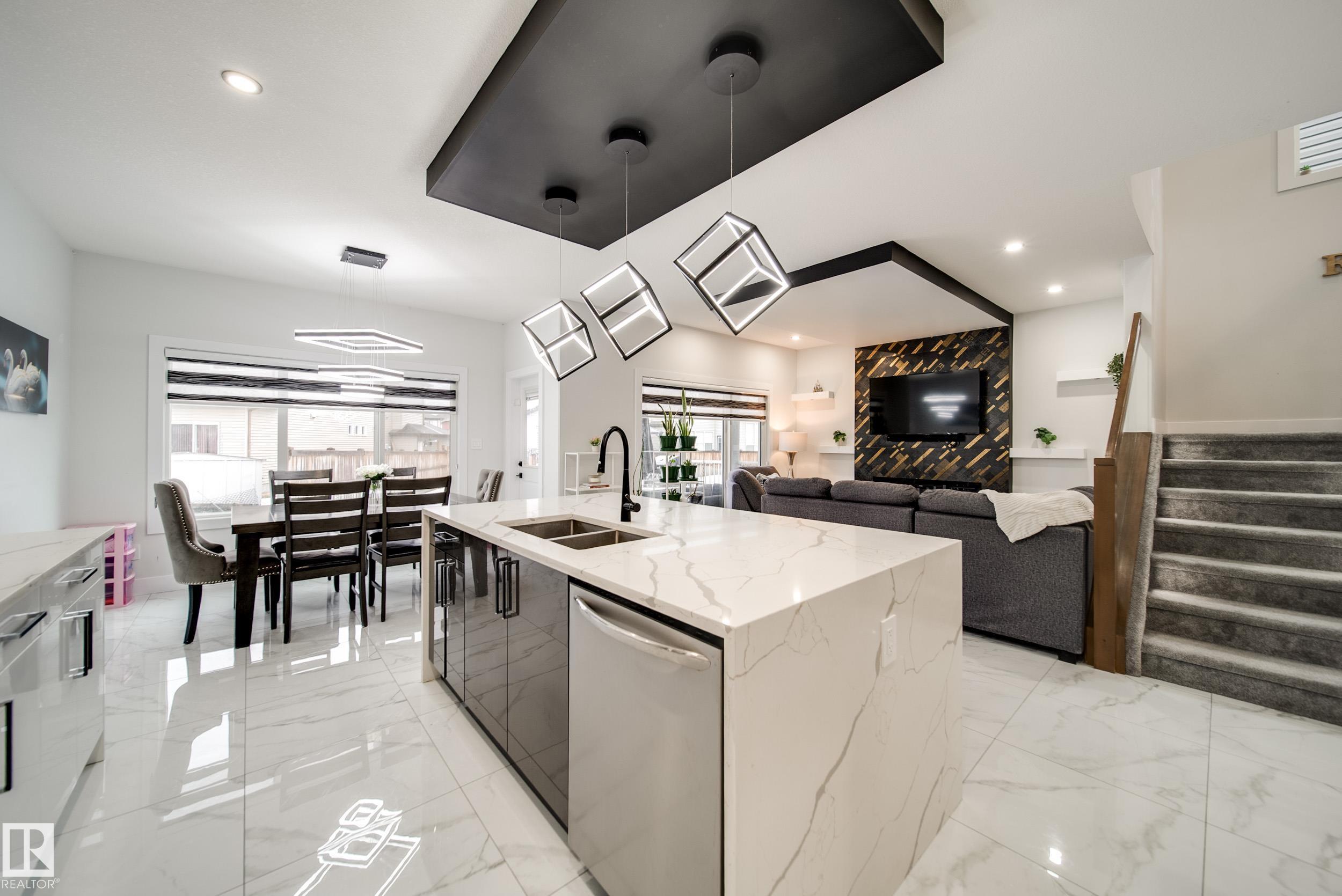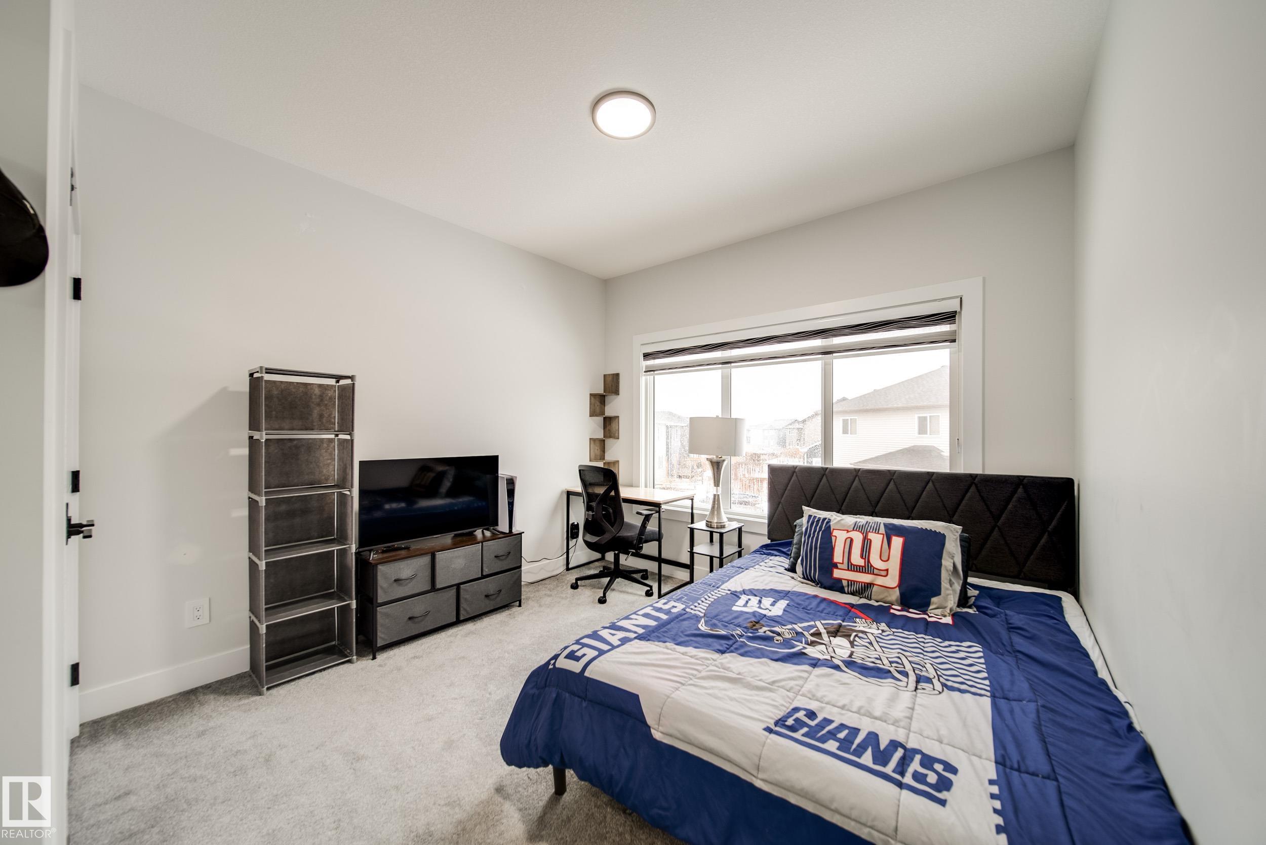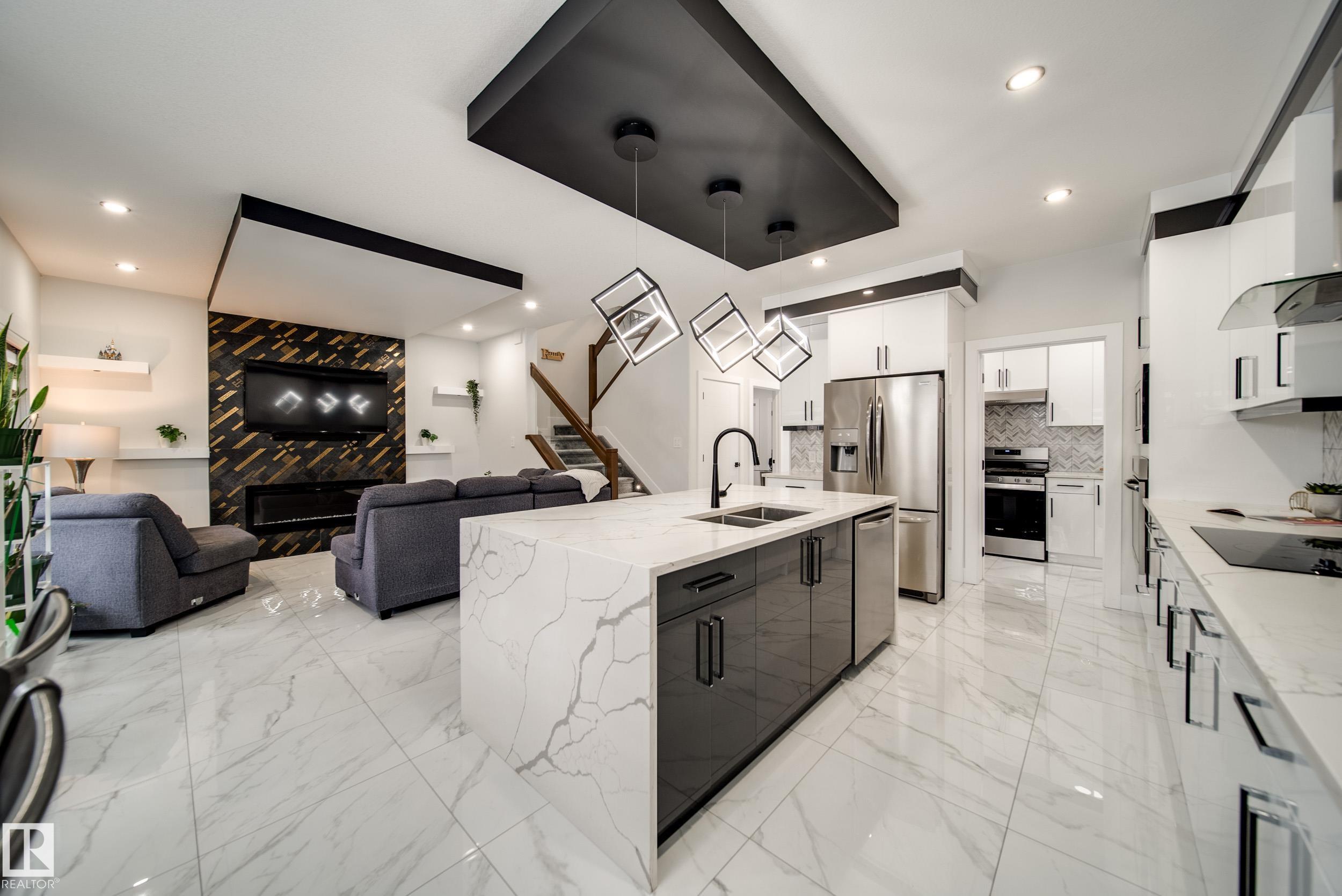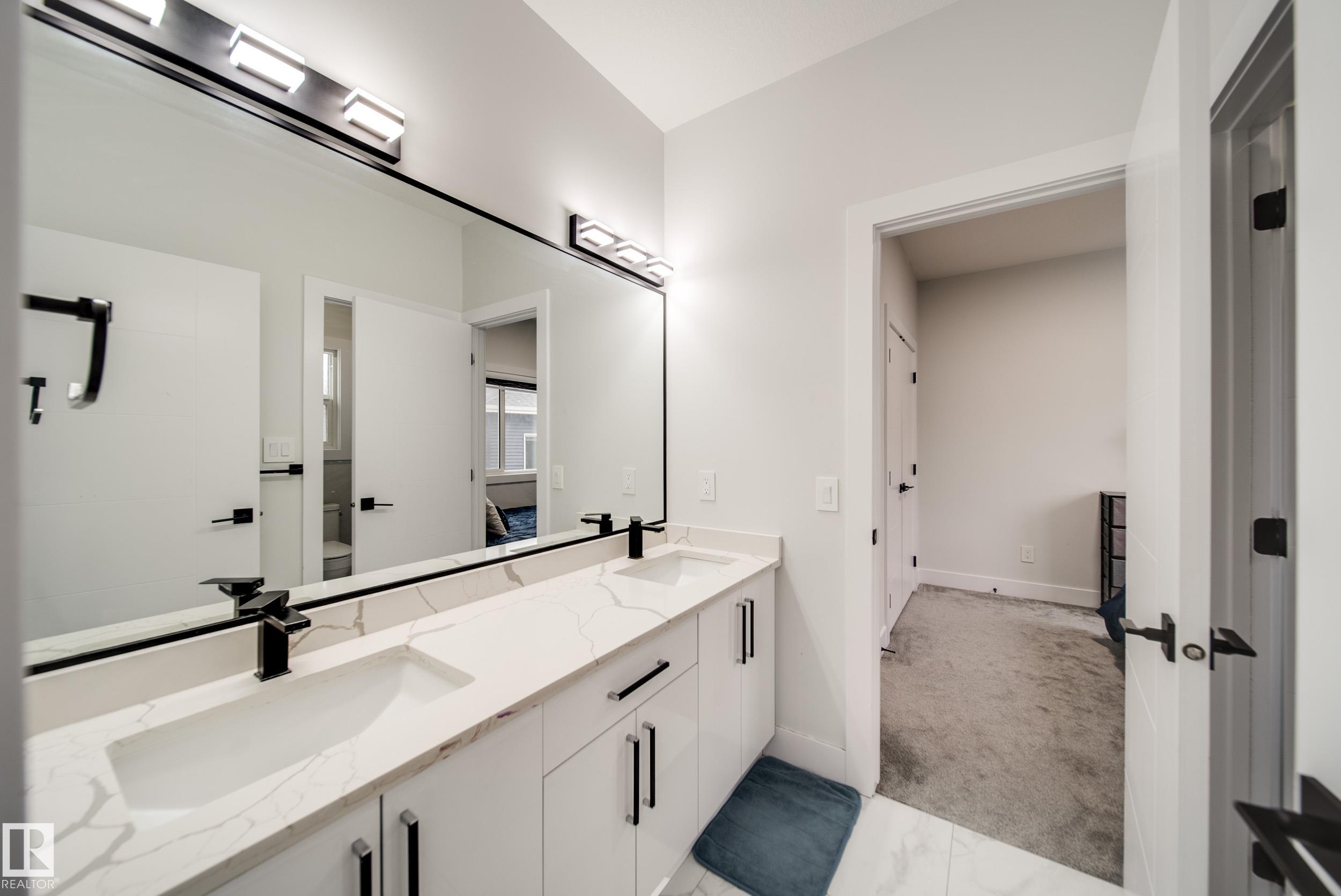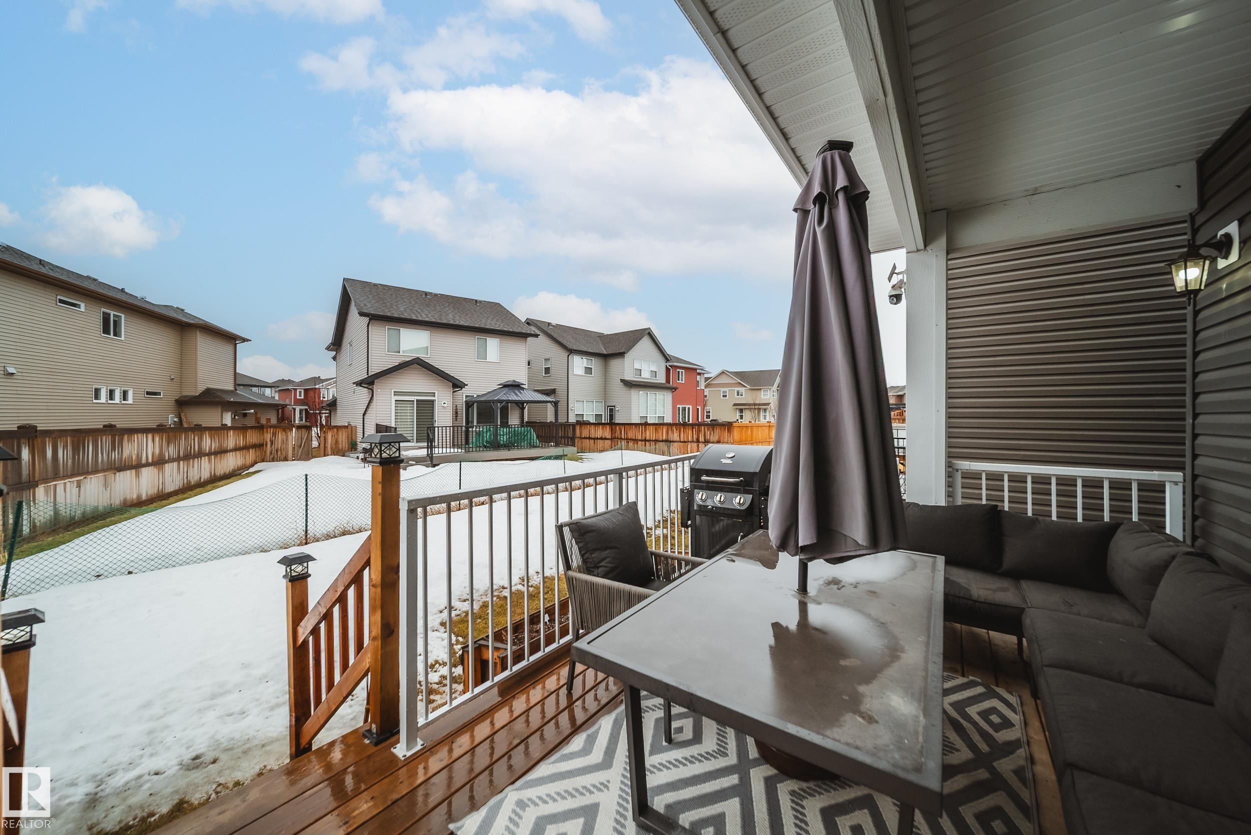 STUNNING custom built home in Schonsee offering 6 BEDS + 5 BATHS, designed for modern living & income potential! Featuring 9? ceilings on ALL levels & a grand open-to-above entry, this home makes an unforgettable first impression. The main floor boasts a bright living rm w/feature ceiling & tiled fireplace, spacious dining rm, main floor bdrm/den w/attached full bath, & a chef's dream kitchen w/QUARTZ counters, DOUBLE WATERFALL island, & SPICE KITCHEN w/a window & gas stove. Upstairs offers 4 generous bdrms incl. a LUXURIOUS primary retreat w/WIC, cove ceiling & spa-like ensuite w/jetted tub + tiled shower. One bdrm has its own private ensuite, while 2 share a Jack & Jill 5 pc bath. Spacious BONUS rm + laundry complete the level. SEPARATE ENTRANCE to a partly finished bsmt w/LEGAL SUITE permit adds incredible future value. Loaded w/upgrades: AC, garage heater, glass railing, tile baths, in-step lighting, SW facing rear deck + more! Prime location close to schools, shopping, parks & Henday. Call this home!