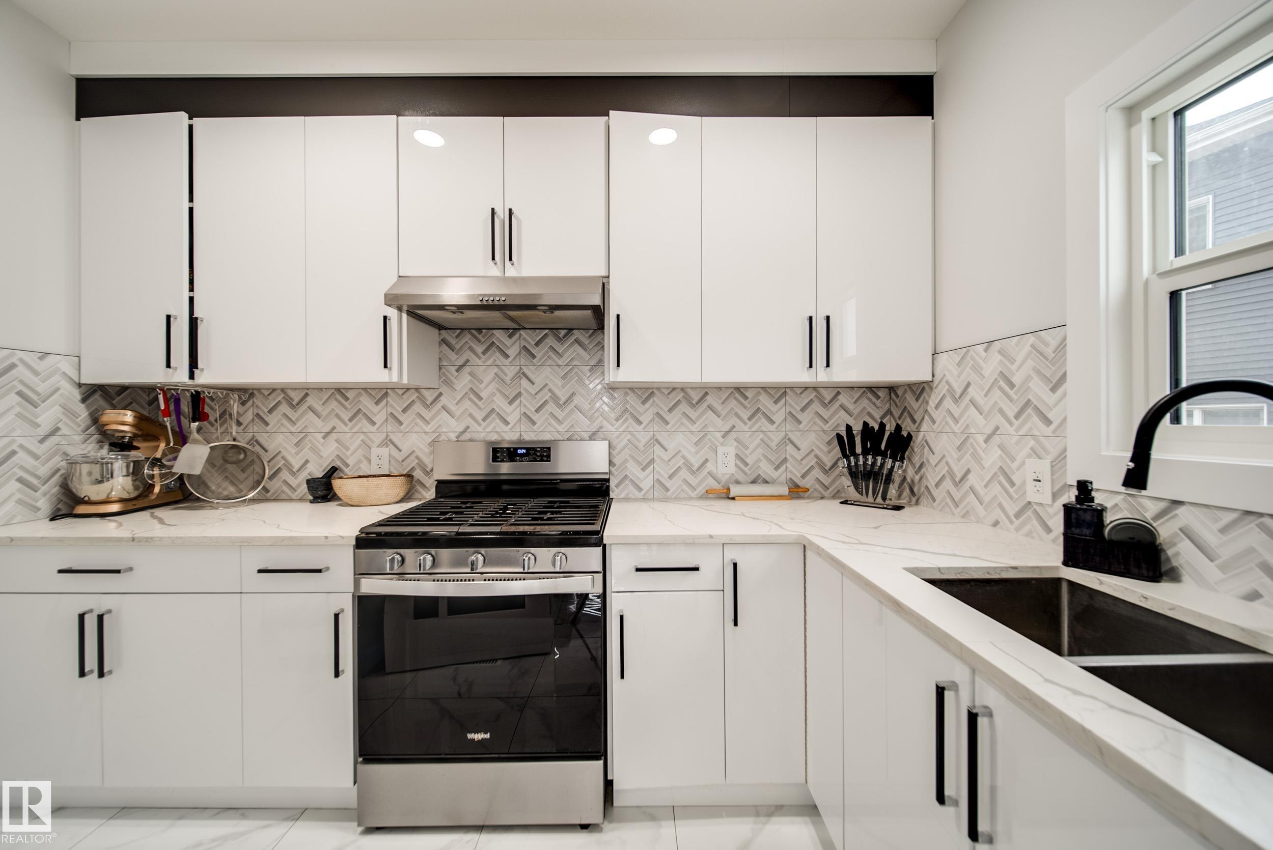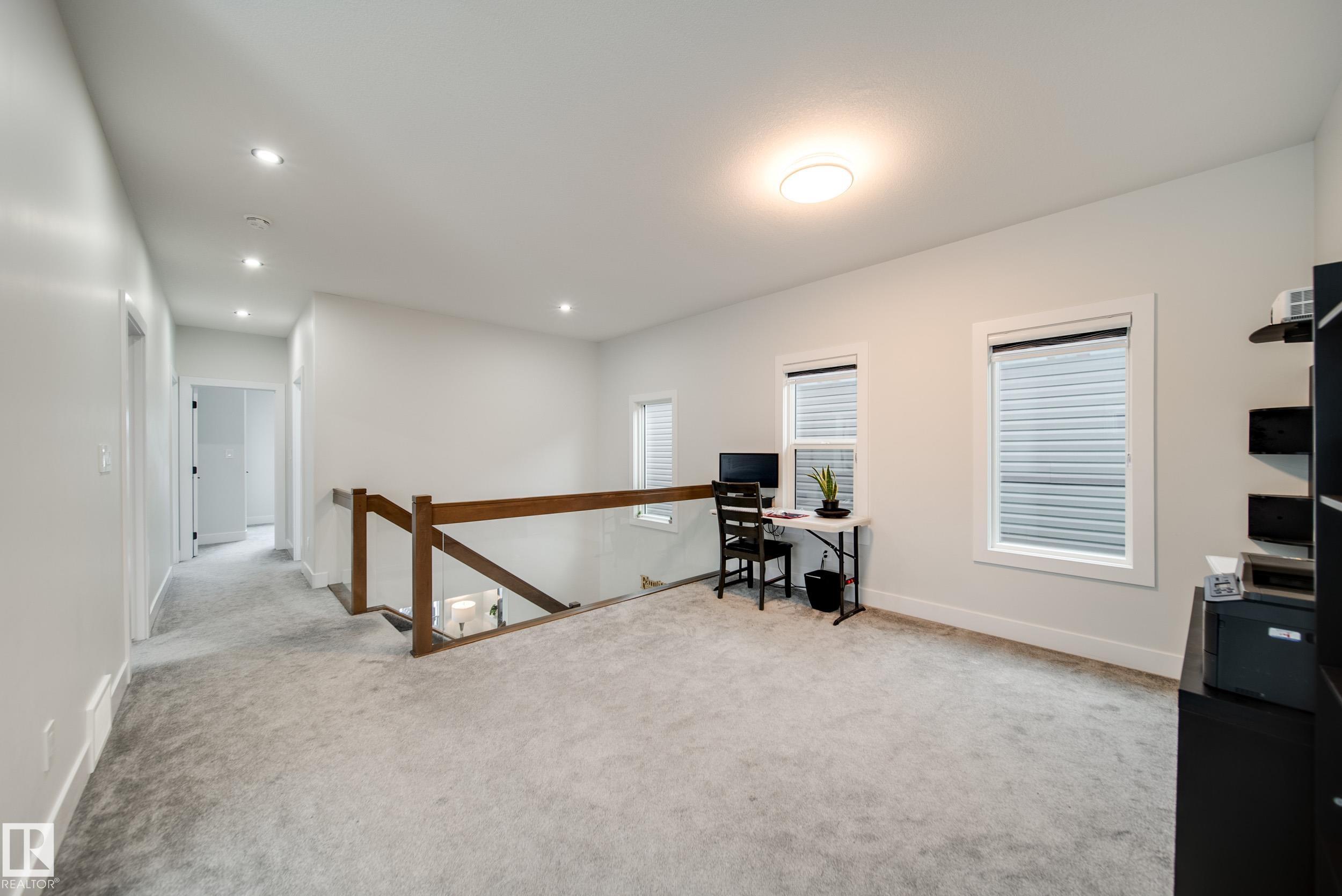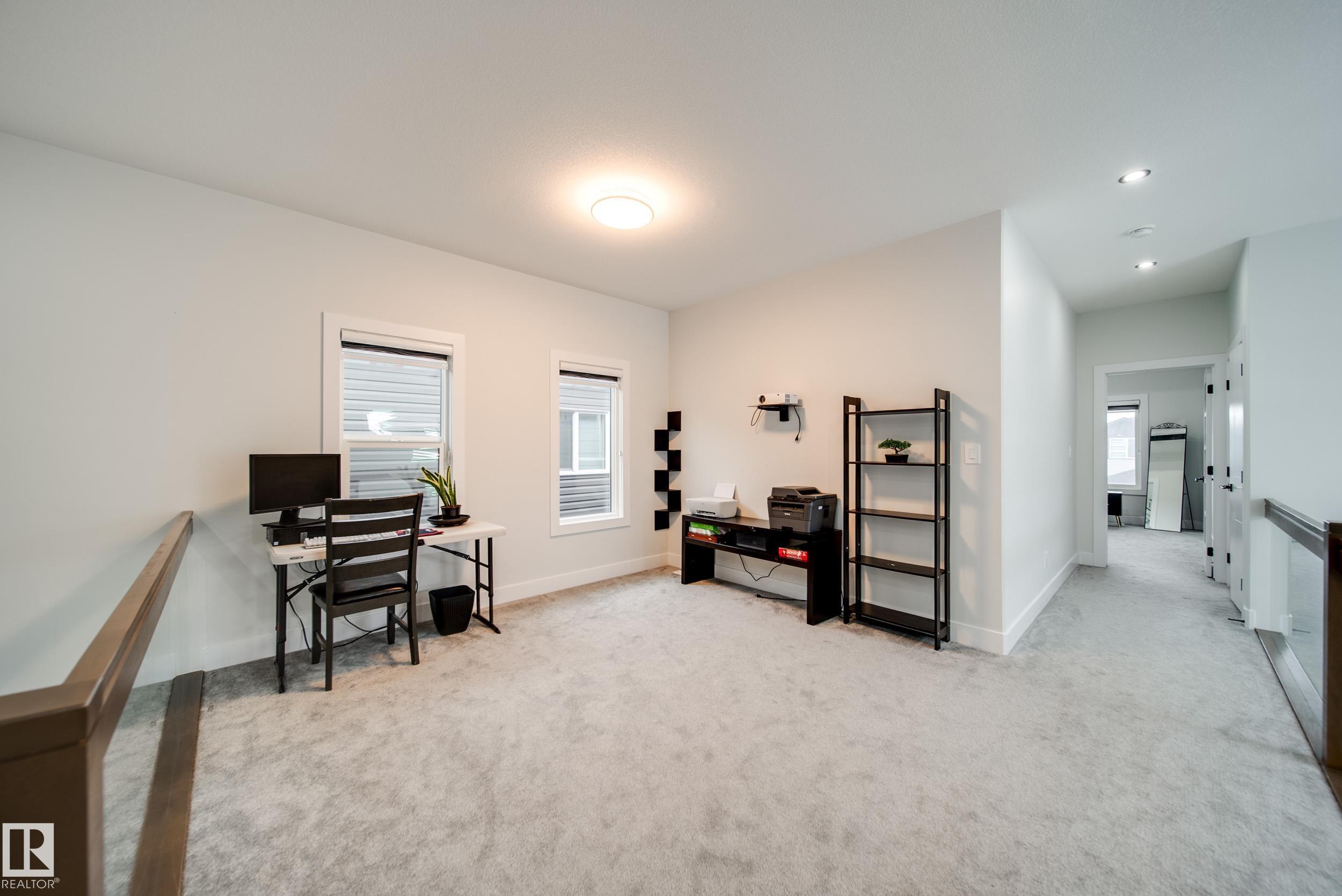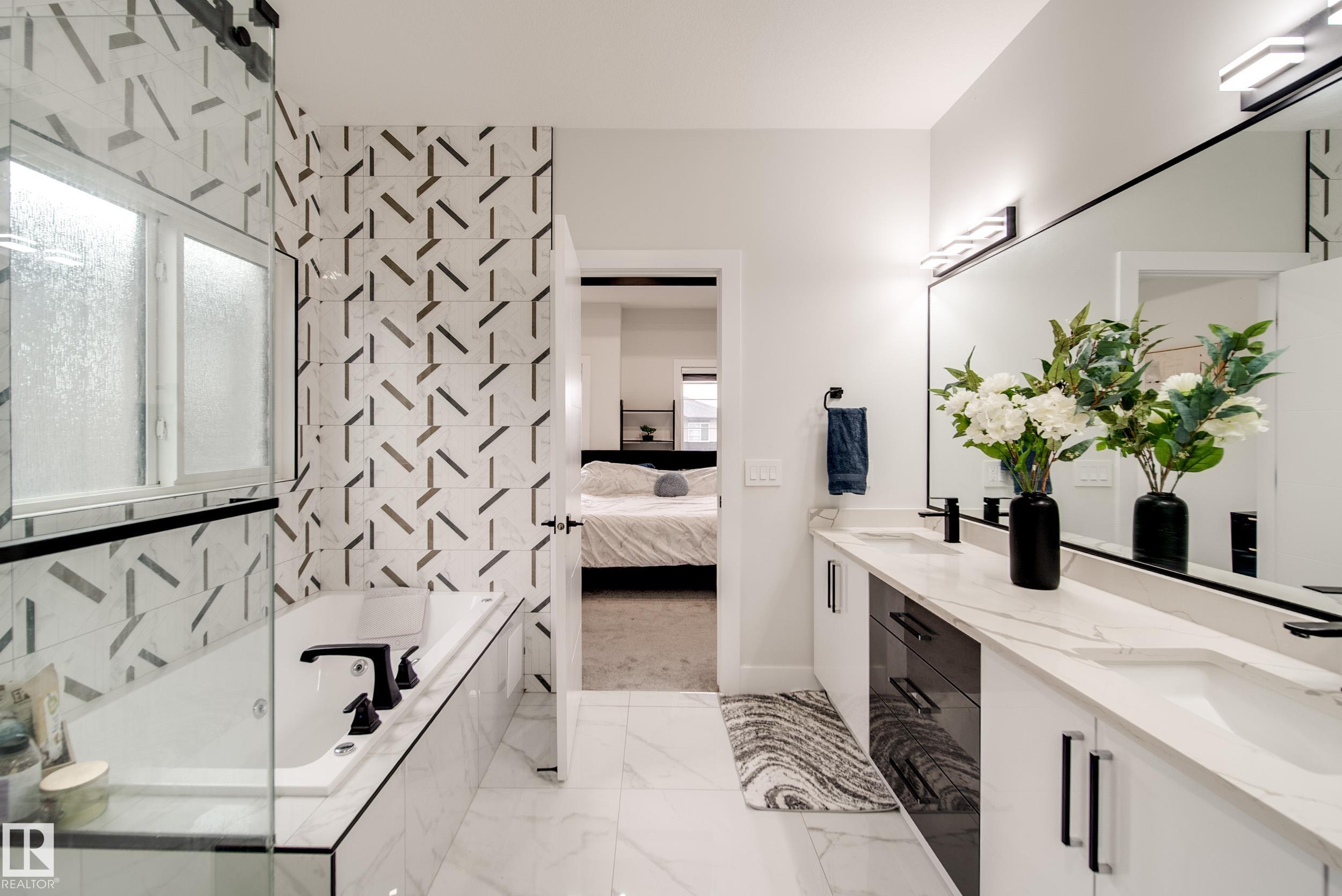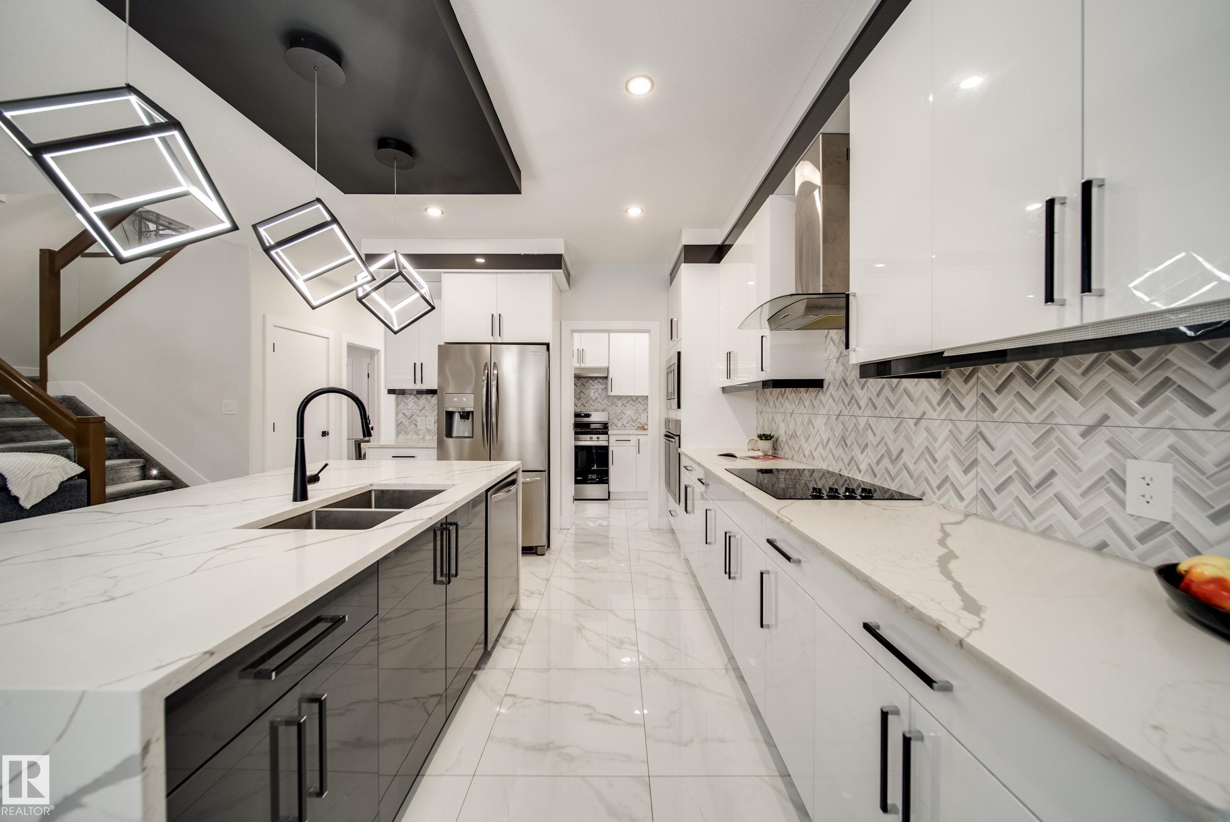 STUNNING custom built home in Schonsee offering 6 BEDS + 5 BATHS, designed for modern living & income potential! Featuring 9? ceilings on ALL levels & a grand open-to-above entry, this home makes an unforgettable first impression. The main floor boasts a bright living rm w/feature ceiling & tiled fireplace, spacious dining rm, main floor bdrm/den w/attached full bath, & a chef's dream kitchen w/QUARTZ counters, DOUBLE WATERFALL island, & SPICE KITCHEN w/a window & gas stove. Upstairs offers 4 generous bdrms incl. a LUXURIOUS primary retreat w/WIC, cove ceiling & spa-like ensuite w/jetted tub + tiled shower. One bdrm has its own private ensuite, while 2 share a Jack & Jill 5 pc bath. Spacious BONUS rm + laundry complete the level. SEPARATE ENTRANCE to a partly finished bsmt w/LEGAL SUITE permit adds incredible future value. Loaded w/upgrades: AC, garage heater, glass railing, tile baths, in-step lighting, SW facing rear deck + more! Prime location close to schools, shopping, parks & Henday. Call this home!