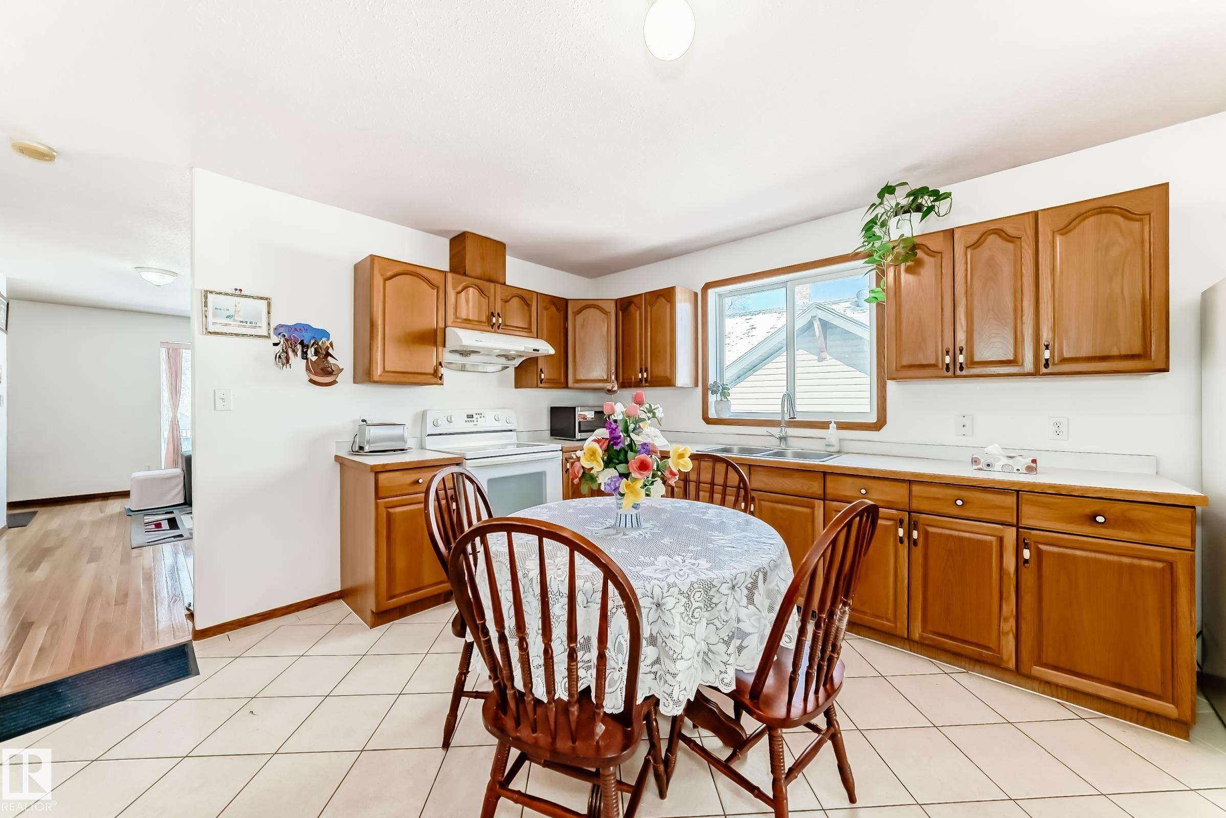 Located in the up-and-coming community of Eastwood, close to schools, transit and shopping, this well-maintained raised bi-level offers great value. Featuring a brand new roof (2025) and hot water tank (2025), this no-smoking, no-pet home is zoned RF3. The raised design enhances efficiency and natural light. Beautiful hardwood flooring complements the spacious living room with a large bay window. The open-concept kitchen offers custom honey oak cabinets, ceramic tile flooring and ample counter space. The primary bedroom includes an ensuite and large closet, with two additional bedrooms and a 4-piece bathroom completing the main level. A separate rear entrance provides potential for a future basement suite. The basement is partially finished with drywall and a bathroom already started. Solid wood beam construction between levels adds durability and sound insulation. A 22x22 oversized double garage completes this home.