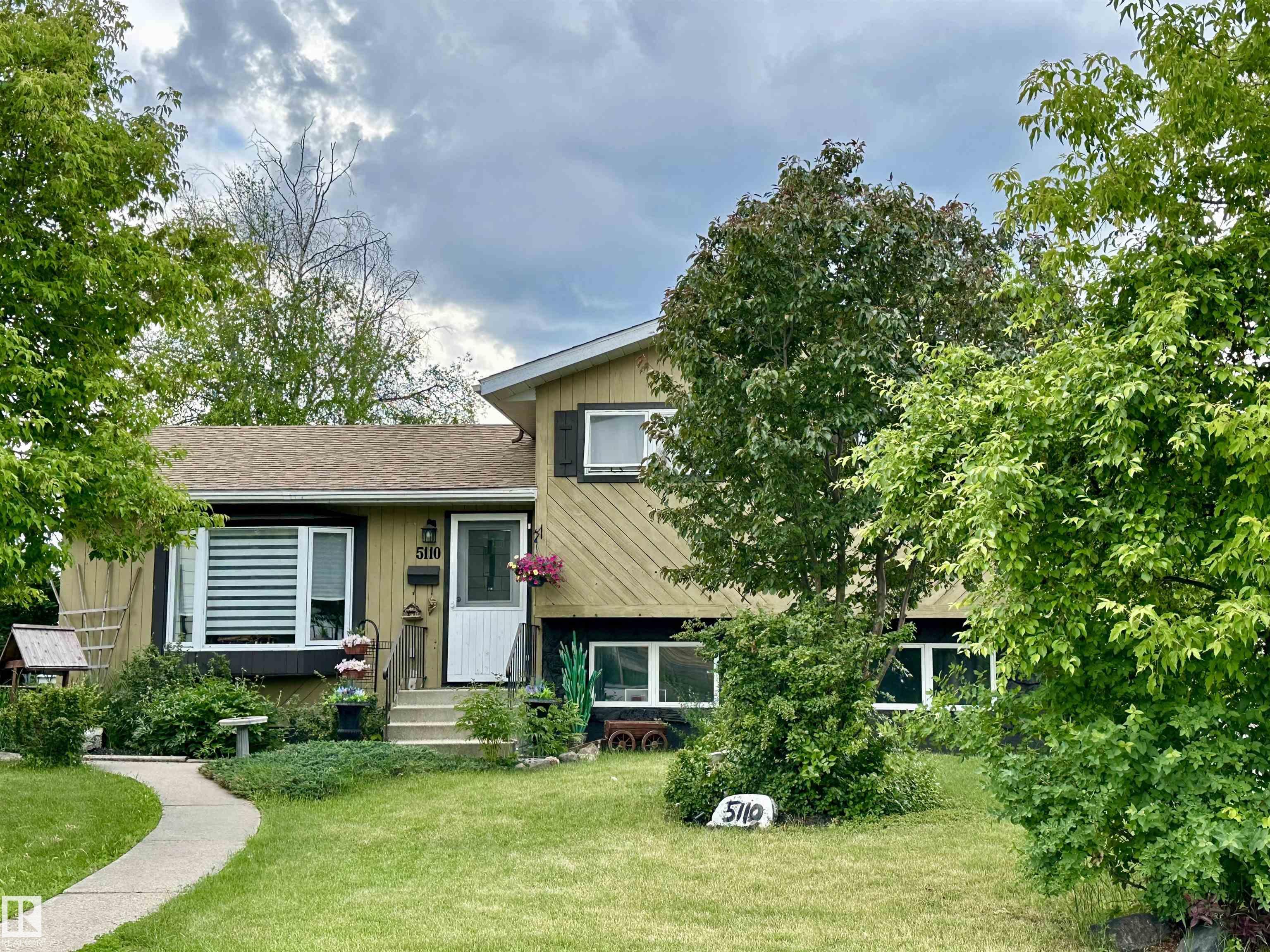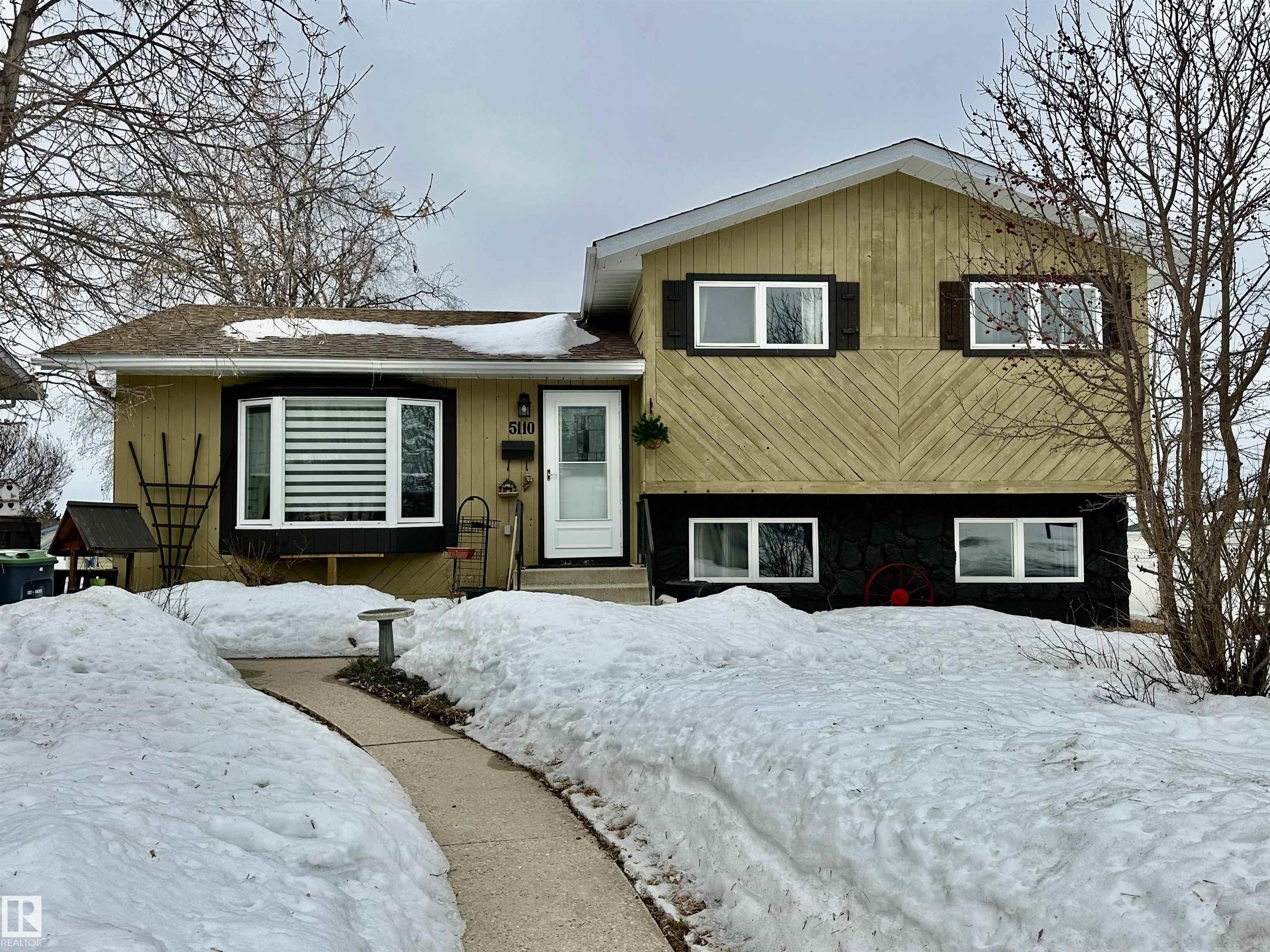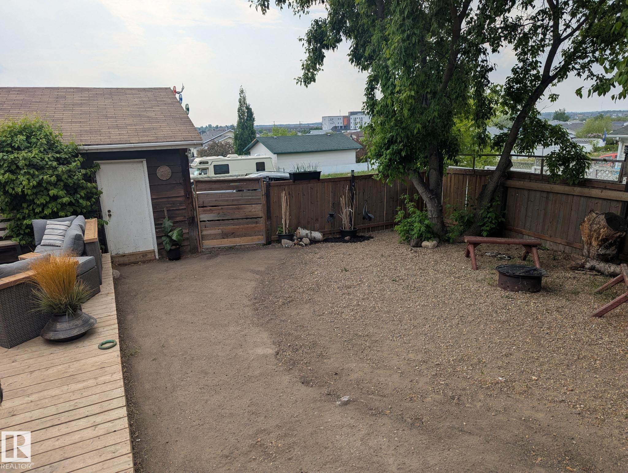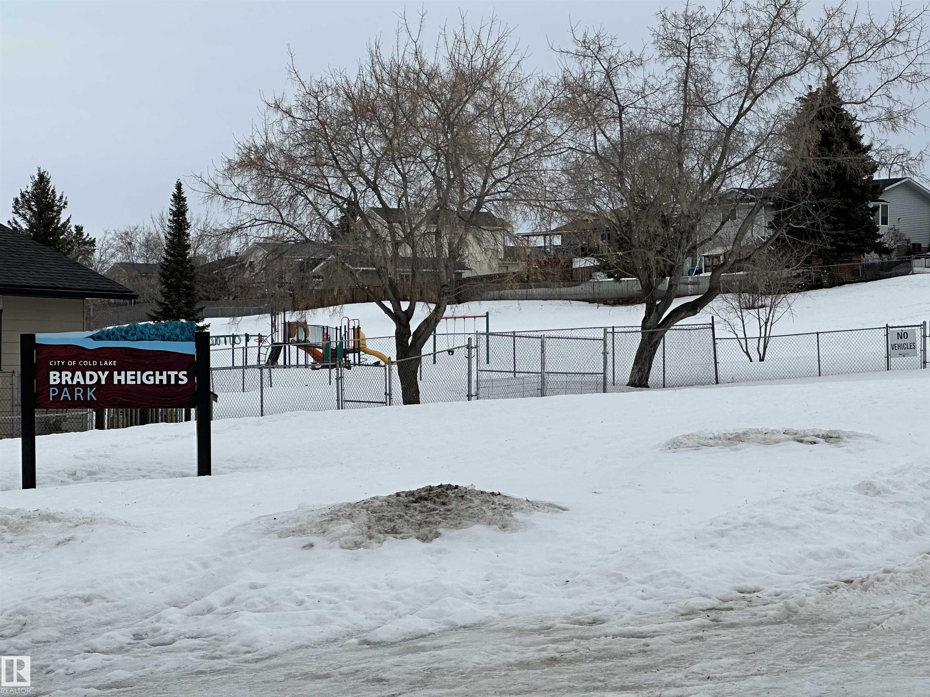 Affordable and adorable in Cold Lake! Floorplan offers easy flow throughout home with no long flights of stairs. Easy to maintain inside with newer flooring-no carpets. Beautiful bright kitchen and living room. Upstairs hosts main bedroom with spacious closet behind pretty glass doors, 4 pc main bath with large vanity and 2 secondary bedrooms. Family room is located down a few steps with tons of room for games or big screen TV for movie nights. Also on this level is laundry room and a SPA like 4 pc bath with jetted tub, corner shower and fireplace. Basement has additional bedroom, den/office area, mechanical room and storage room behind clever rolling door. The fully fenced very private backyard is an oasis with a sensational VIEW overlooking the city! Beautiful trees including cherry, lilacs invite the hummingbirds... Off the back lane is a double detached garage, across the street is Brady Heights Park for the kids and all the amenities of the city of Cold Lake is just a short drive or bus ride away.
