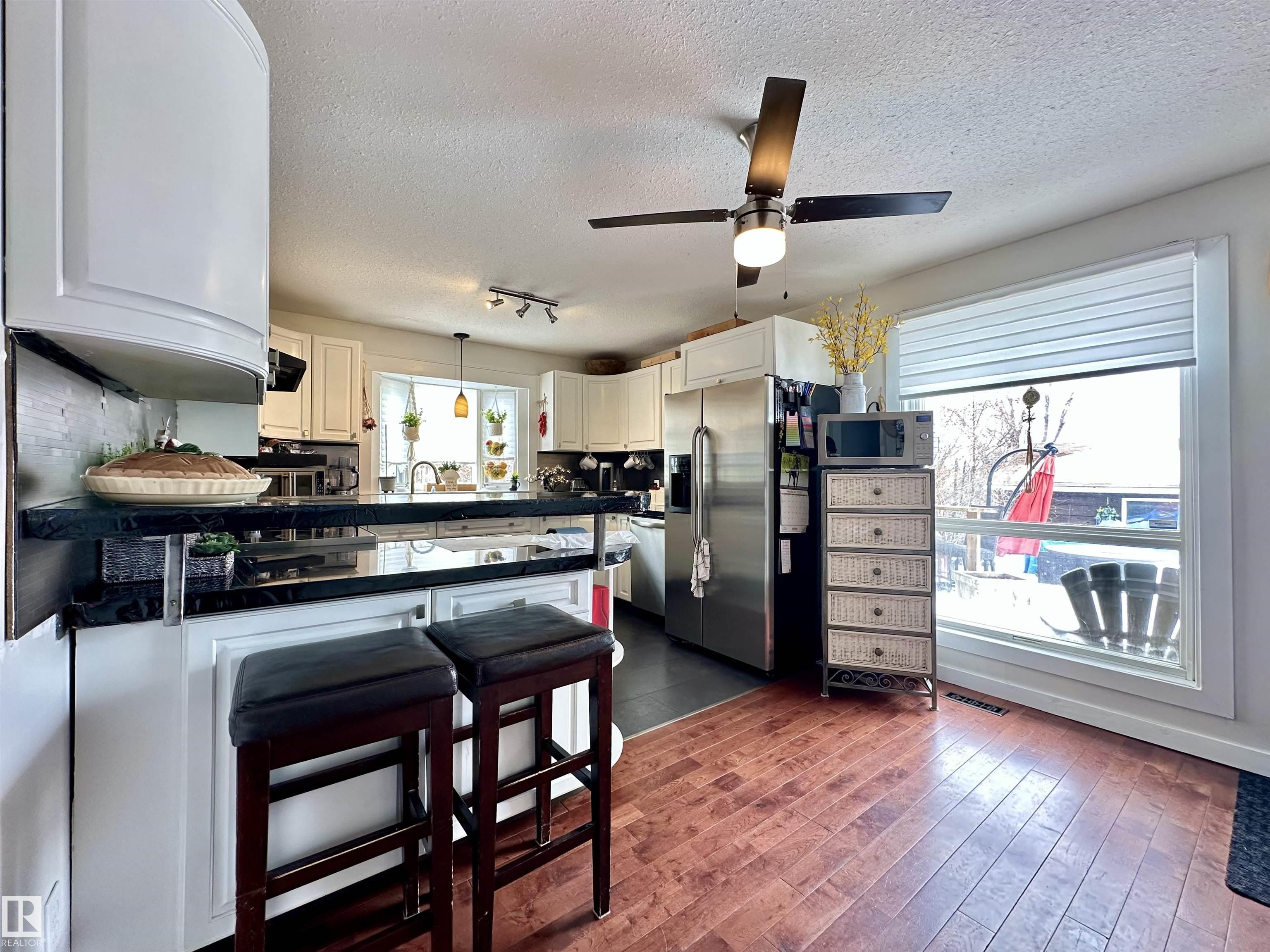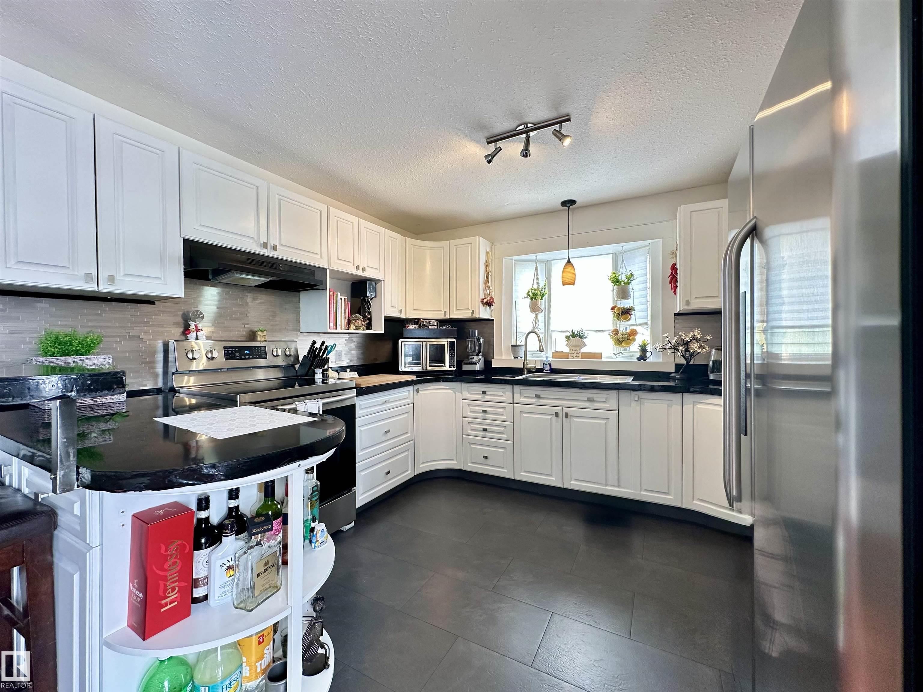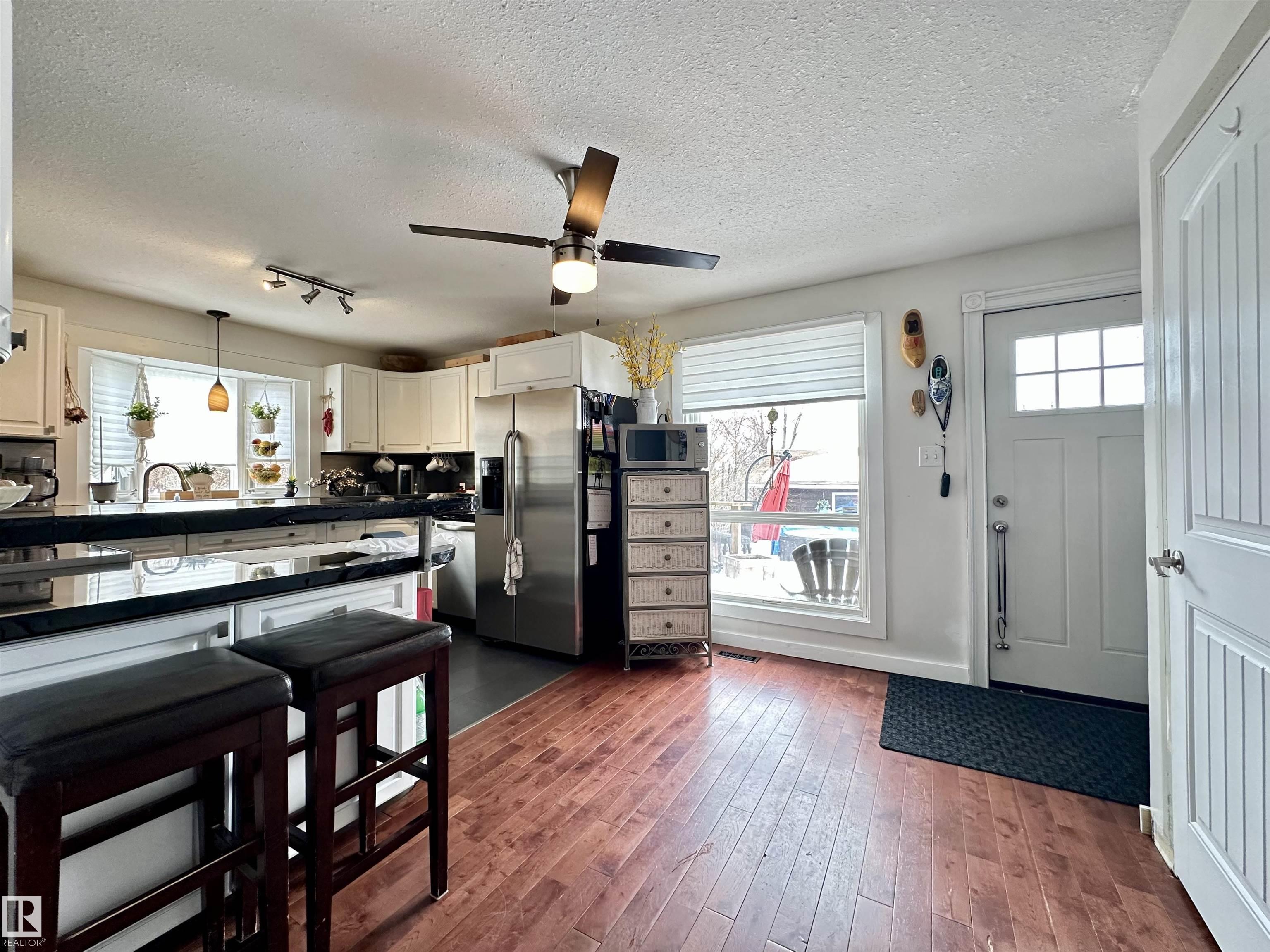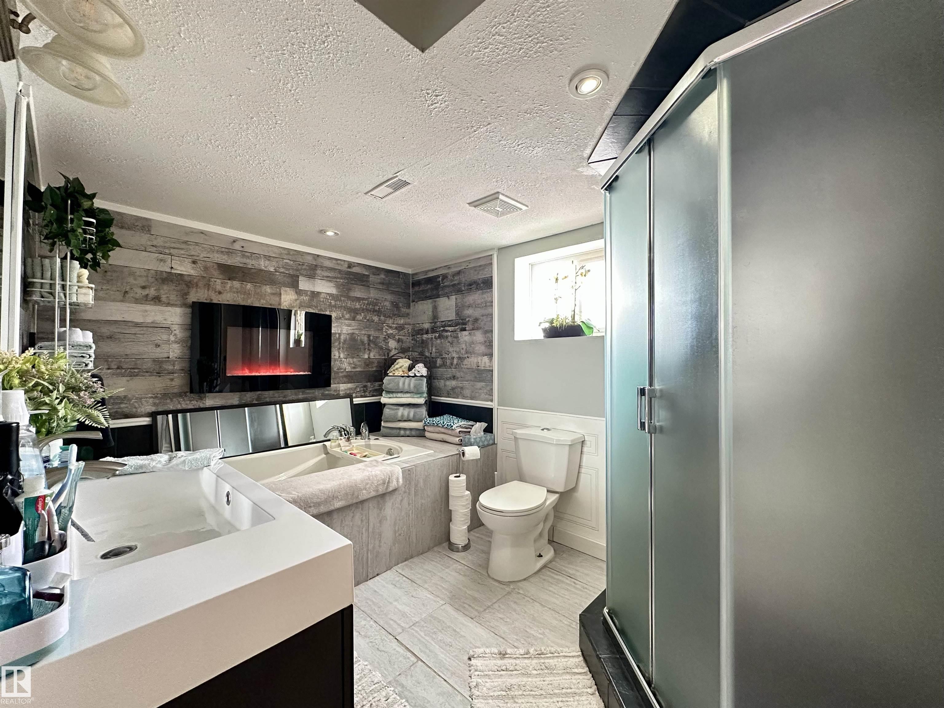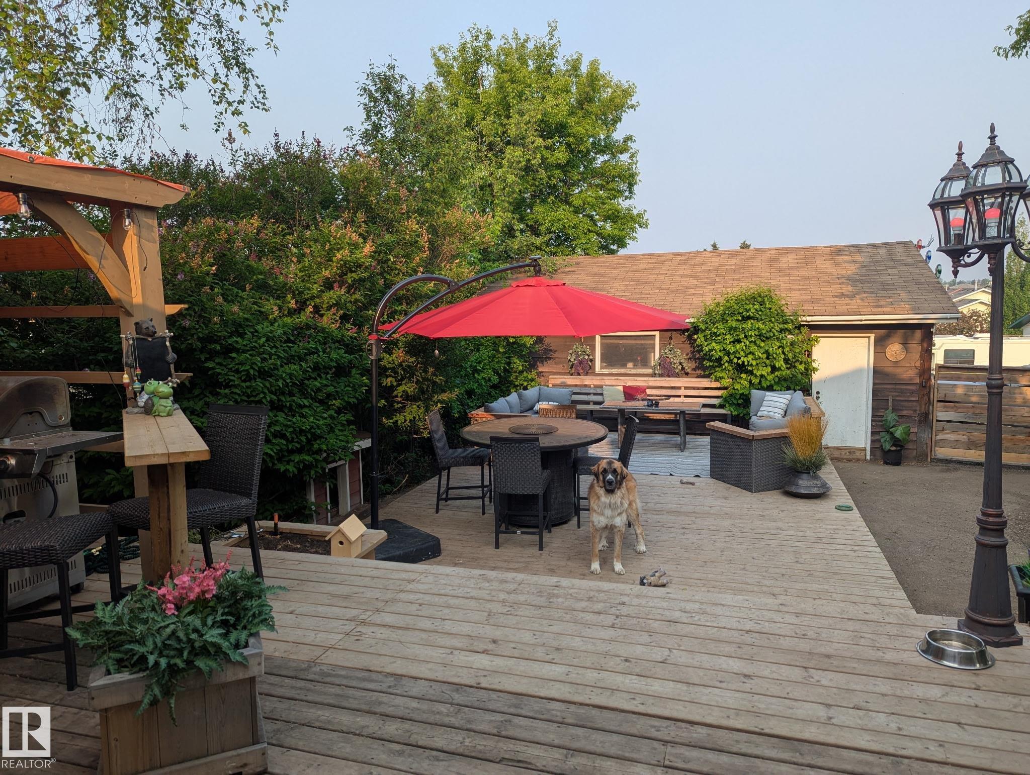 Affordable and adorable in Cold Lake! Floorplan offers easy flow throughout home with no long flights of stairs. Easy to maintain inside with newer flooring-no carpets. Beautiful bright kitchen and living room. Upstairs hosts main bedroom with spacious closet behind pretty glass doors, 4 pc main bath with large vanity and 2 secondary bedrooms. Family room is located down a few steps with tons of room for games or big screen TV for movie nights. Also on this level is laundry room and a SPA like 4 pc bath with jetted tub, corner shower and fireplace. Basement has additional bedroom, den/office area, mechanical room and storage room behind clever rolling door. The fully fenced very private backyard is an oasis with a sensational VIEW overlooking the city! Beautiful trees including cherry, lilacs invite the hummingbirds... Off the back lane is a double detached garage, across the street is Brady Heights Park for the kids and all the amenities of the city of Cold Lake is just a short drive or bus ride away.