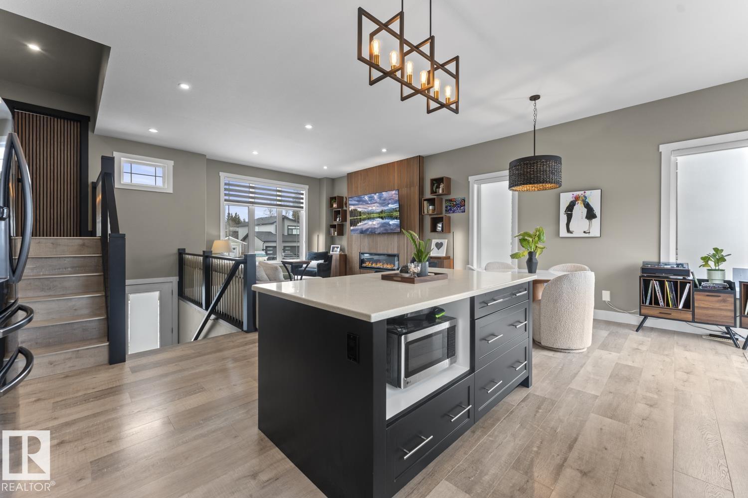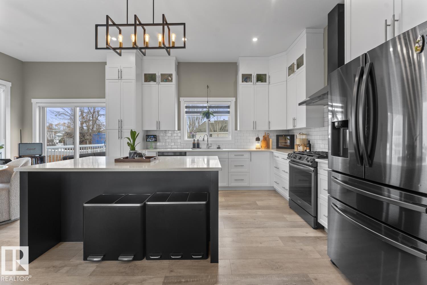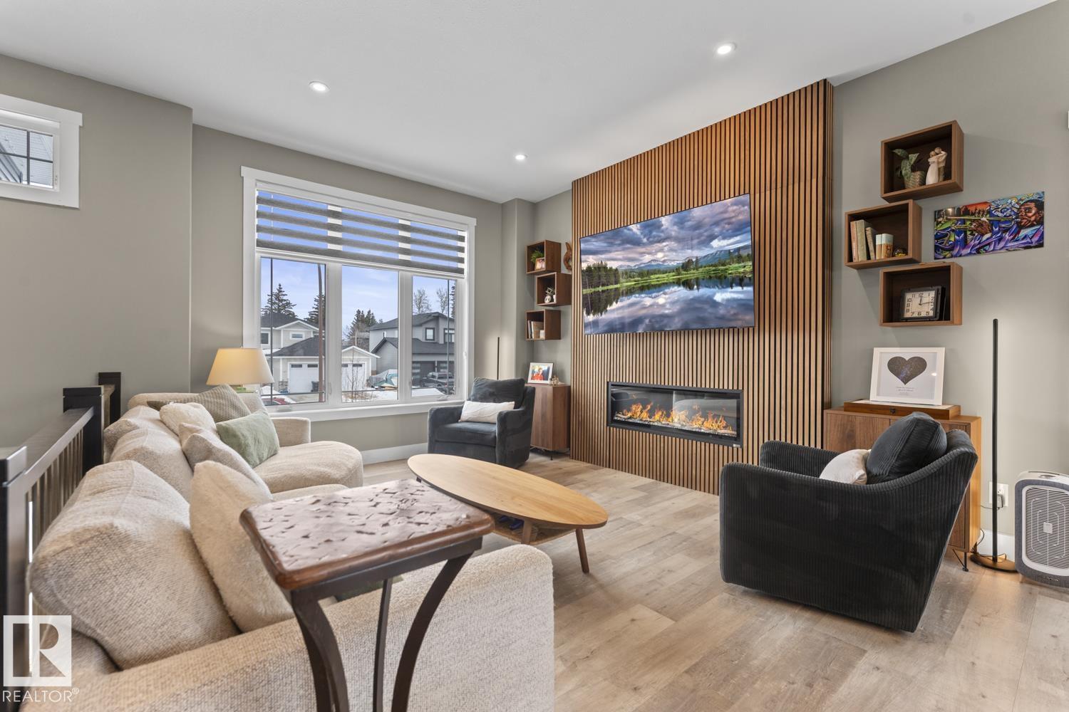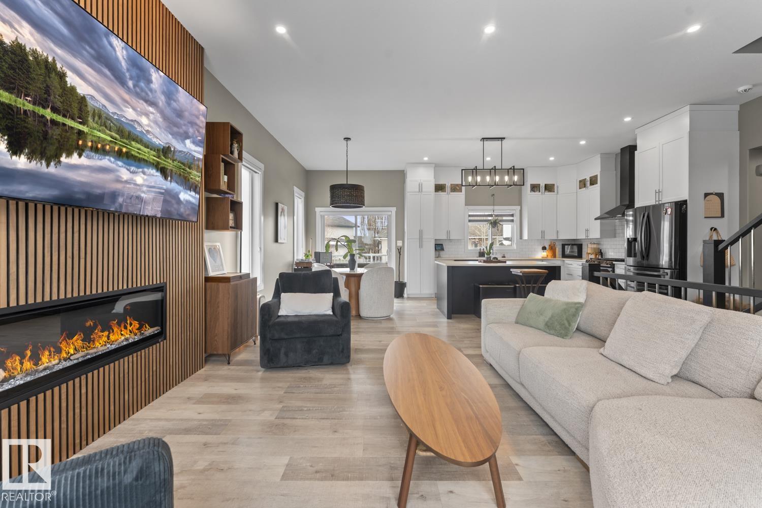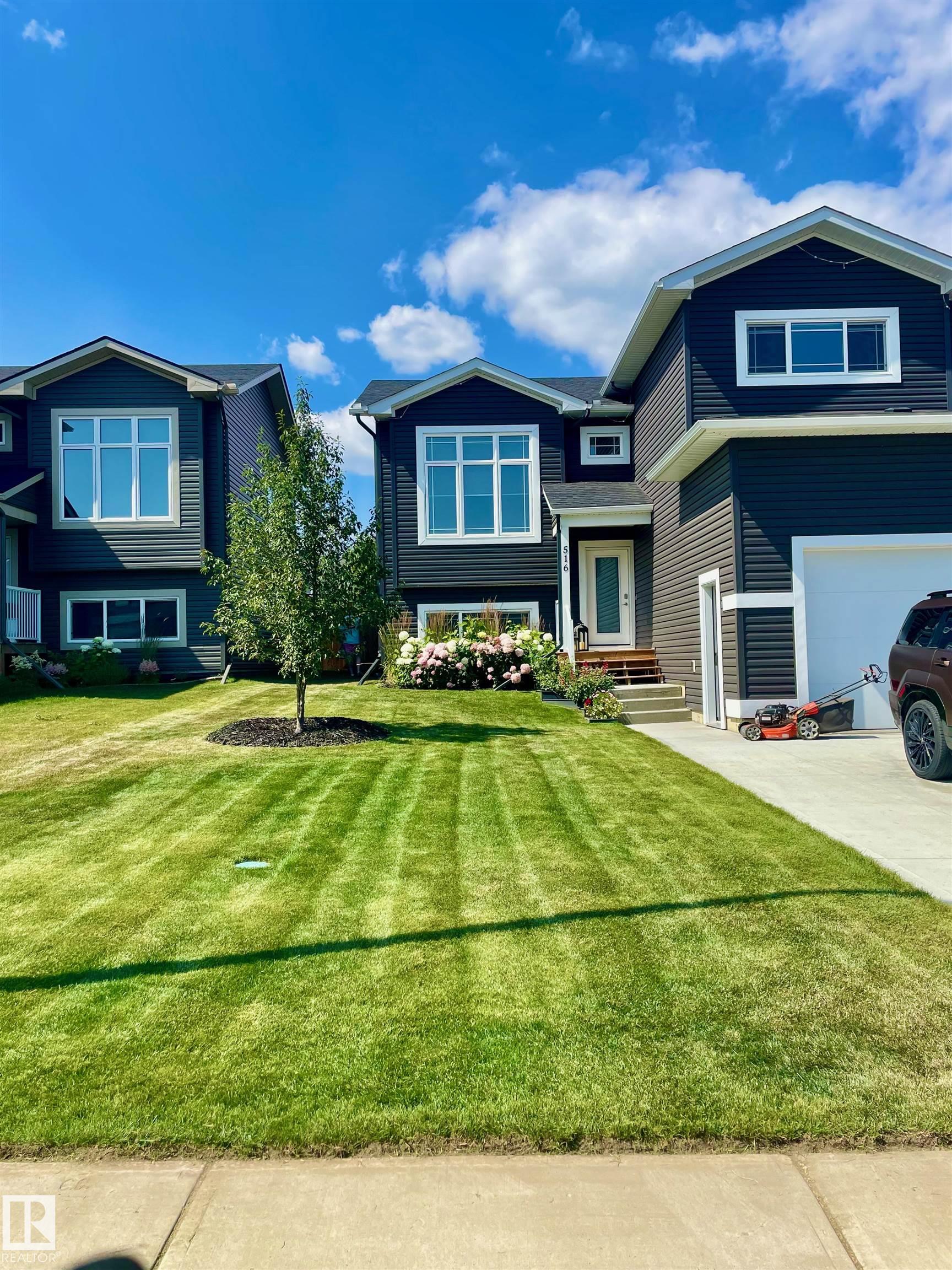 This modern 2021 bi-level in the sought out Nelson Heights neighbourhood has a fantastic location close to Kinosoo Beach & outdoor arena. Open concept with wood slat gas fireplace, spindle railings, custom window coverings, A/C and main floor laundry. 5 bedrooms, 3 bathrooms and a fully finished basement. Gourmet kitchen features a large centre island, quartz counters, SS appliances(gas stove) and chimney vent. Upper floor hosts the SPACIOUS primary bedroom with dual closets and a 4 piece ensuite with tiled shower and his/hers sinks .Lower level features a massive family room with heated floors. Upgrades to this home include NEW light fixtures, fireplace accent wall, custom window coverings, quartz counters throughout, no carpet, and central air. Outside you will find a nicely landscaped yard with trees, perennials & waterproof storage under the deck, fully fenced yard and back alley access. Attached heated double garage and oversized driveway. Basement will be painted before possession.