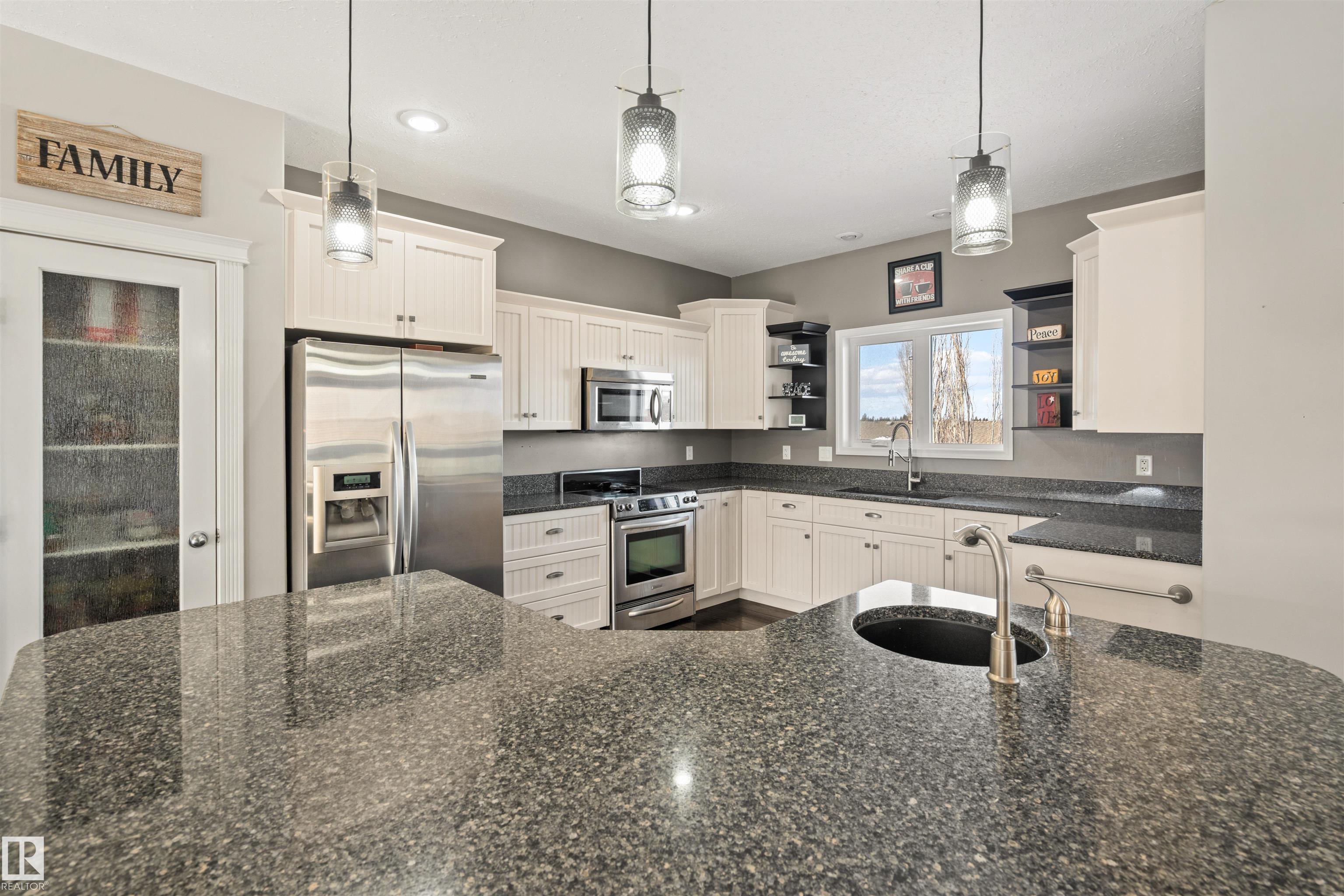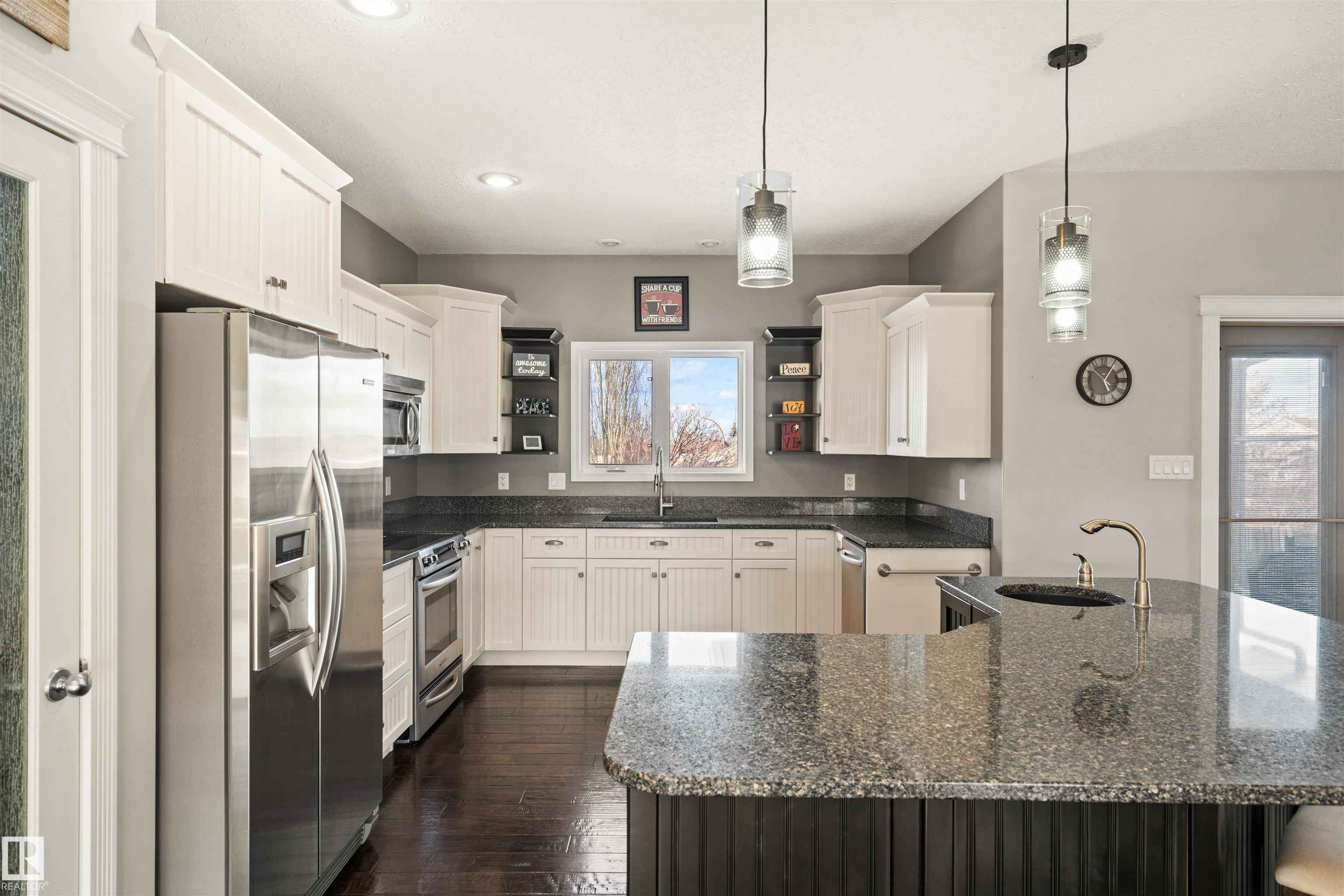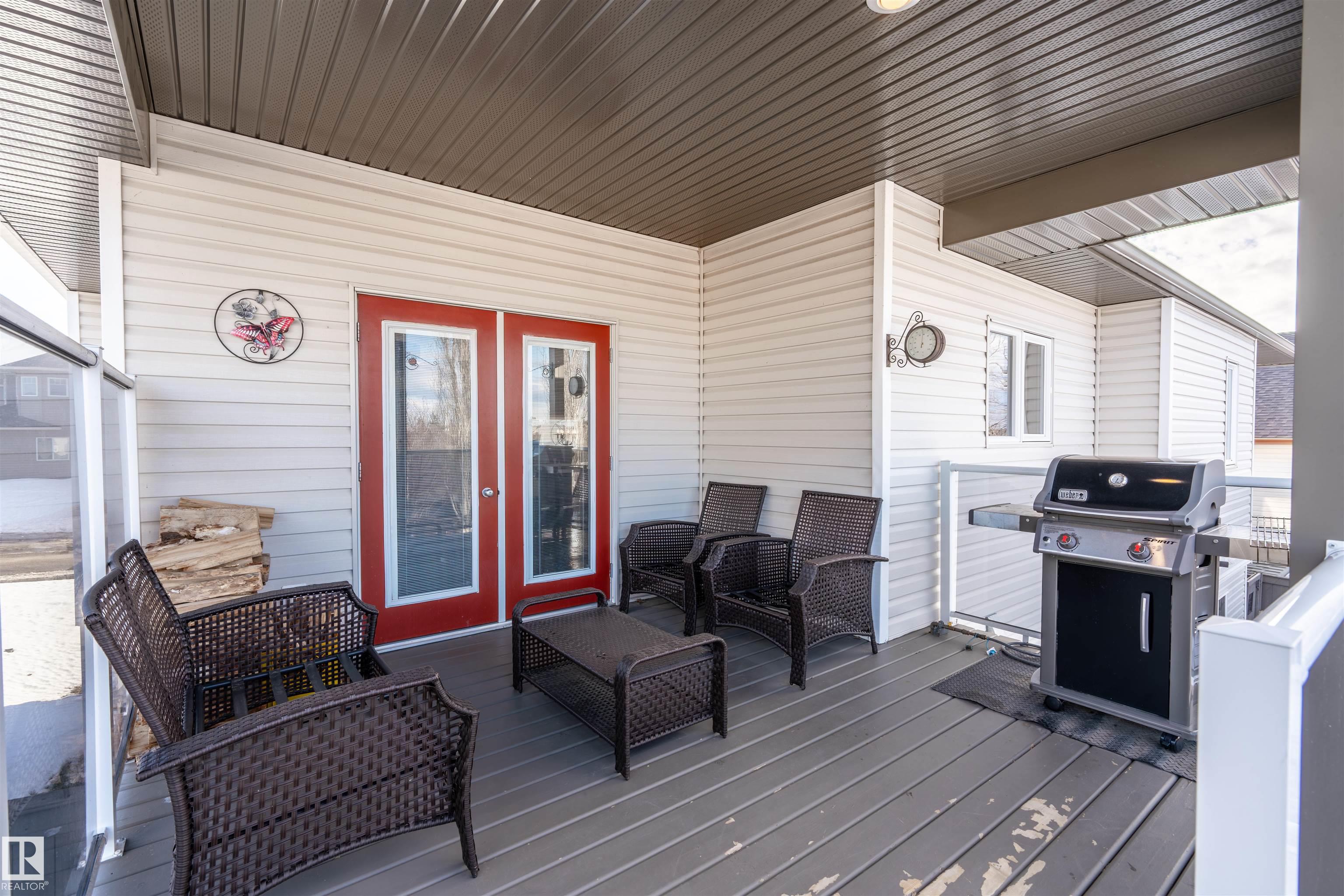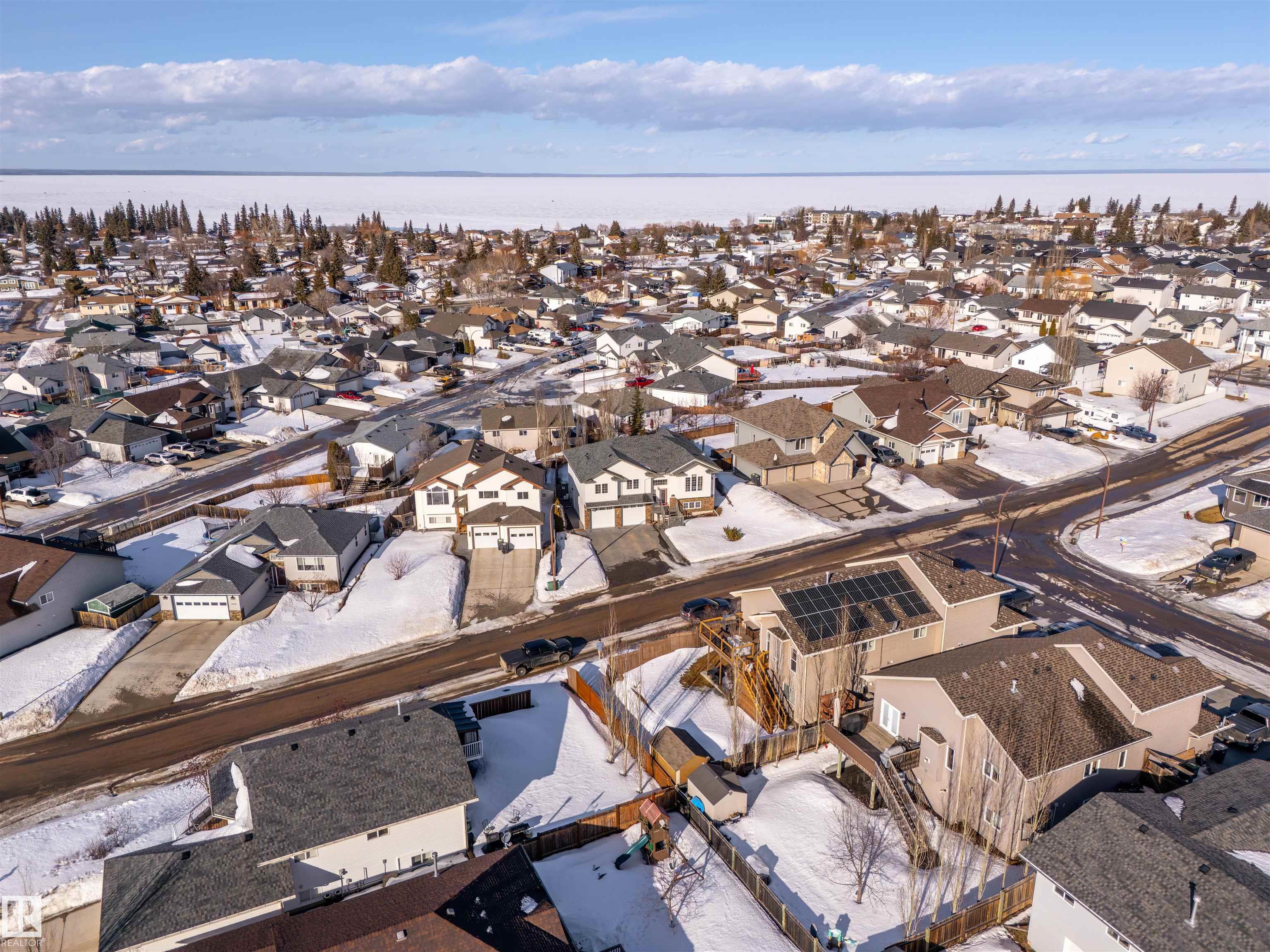 Executive bilevel in Nelson Heights with views of Cold Lake and the extensively manicured backyard. This home has many amazing features including Corian countertops, massive island with prep sink, stunning hardwood floors, huge main floor laundry room, 9 ft ceilings, covered deck, and walkout basement just to name a few. Open concept main floor features show stopping wood fireplace with stone accent wall and a massive kitchen with pantry and plenty of cabinet space. 3 bedrooms finish the main floor including primary with walk in closet and full ensuite complete with double sinks. Basement is warmed by slab heat and includes large family room with dry bar, 4th bedroom, additional bathroom and access to both the fenced and beautifully landscaped yard & the finished attached oversized heated double car garage with epoxy floor & room for everything and more. Outside is a stamped concrete lower patio, tons of flower beds and trees, a stone fire pit area. Added upgrades are on demand HW, & wiring for hot tub.