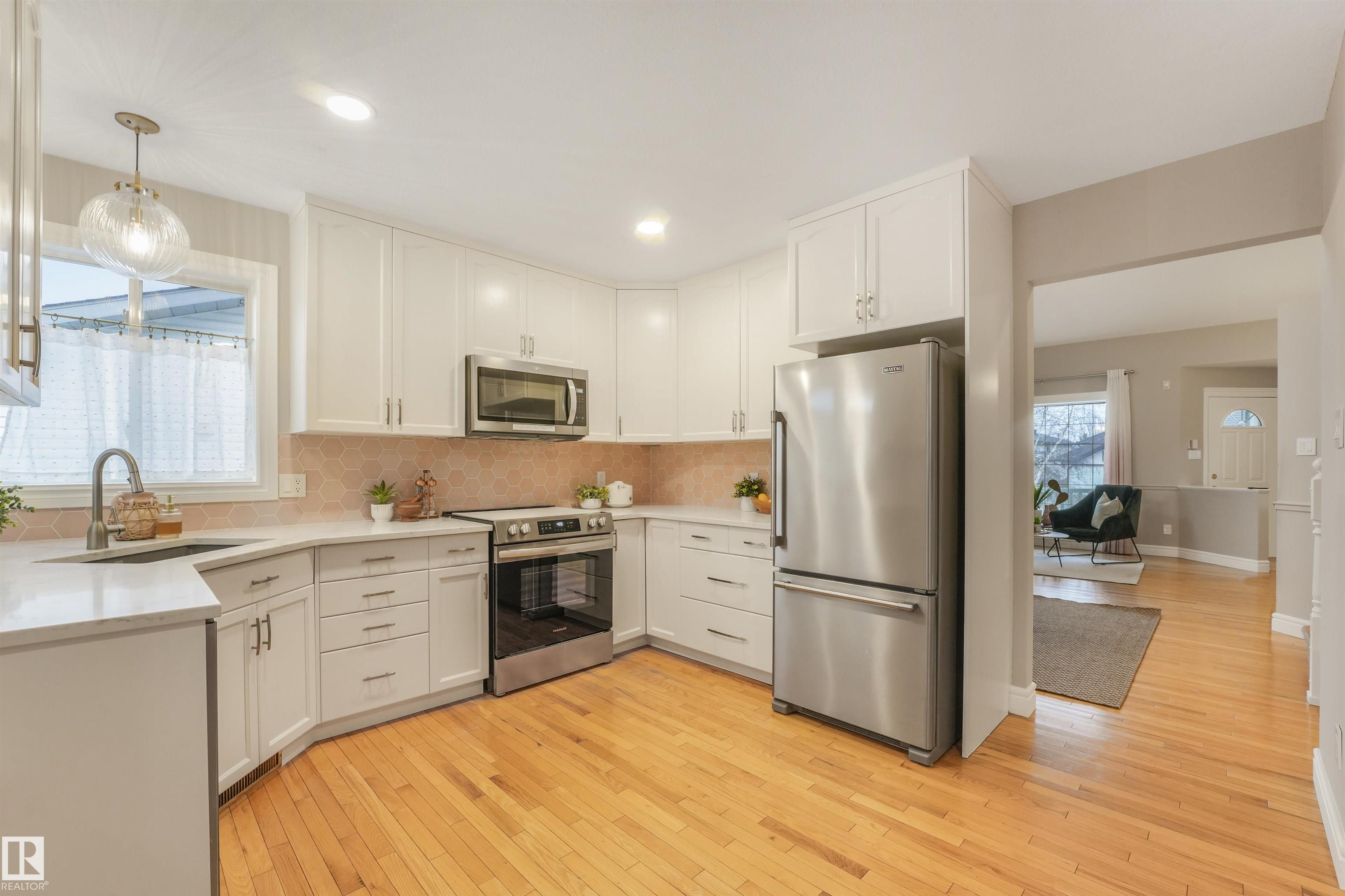 Lovely 4-level split situated in a sought-after Twin Brooks cul-de-sac, steps to Whitemud Creek Ravine! The main floor presents an inviting living and dining room w/ vaulted ceilings, and a updated kitchen w/ stainless steel appliances. The upper level boasts a primary bedroom w/3-pc ensuite and walk-in-closet, 2 additional bedrooms, plus a 4-pc bath. The functional lower level offers a family room w/ gas fireplace, a 4th bedroom/office, and laundry room w/ access to the double attached garage. The basement features a utility area & ample storage space. Outside, relish the fenced backyard featuring a covered deck, along w/ a generous front driveway that fits up to 4 vehicles. Rest easy knowing that major upgrades have already been completed, including a driveway lift, fresh landscaping, and newly painted porch & deck. Key updates, such as a new HWT, furnace, and A/C are under warranty. Additionally, this home is equipped w/ smart technology, including a Sensi thermostat and a Ring doorbell. A must see!