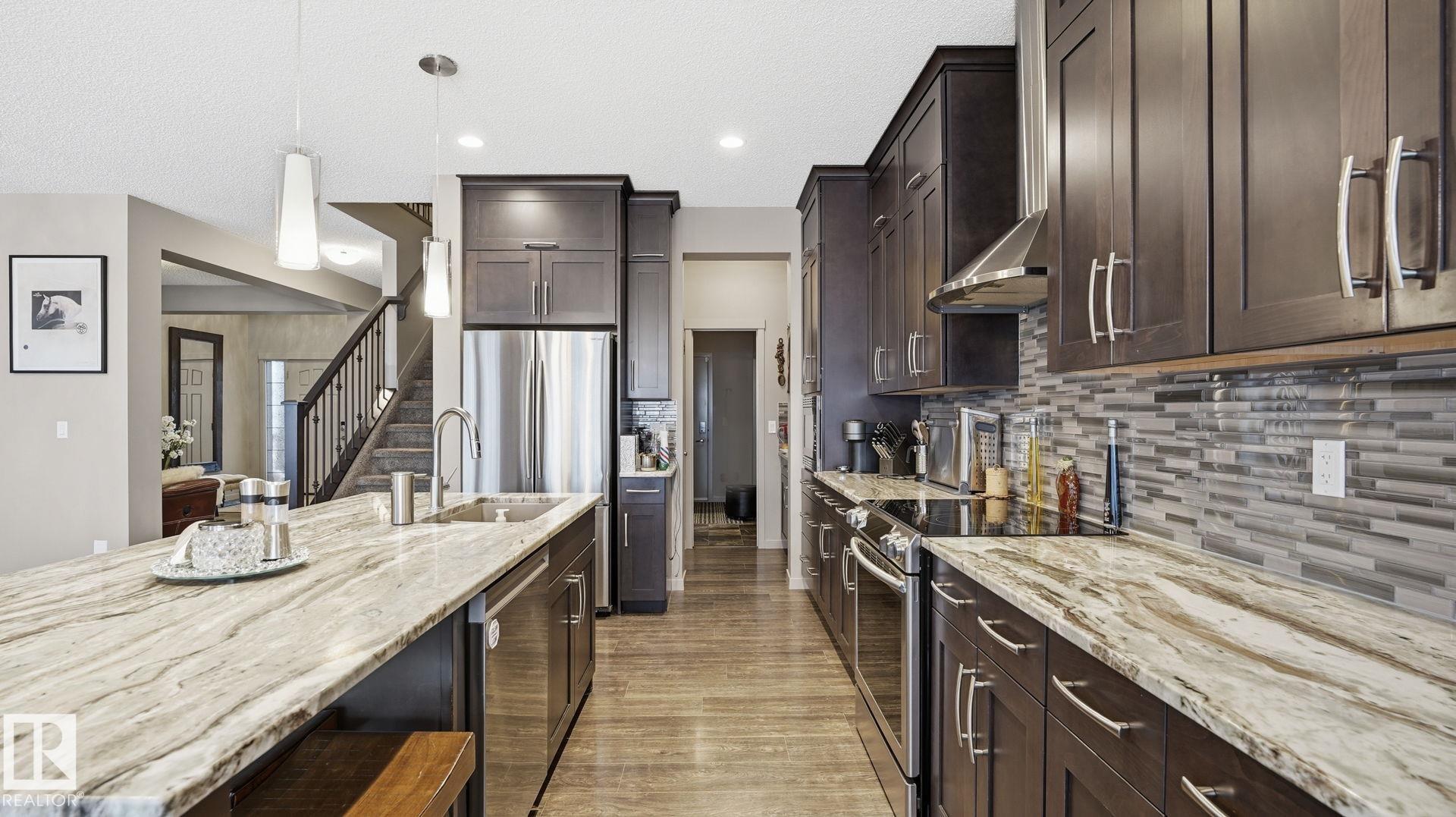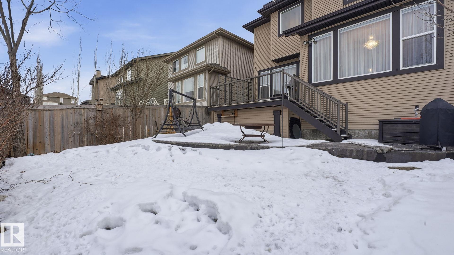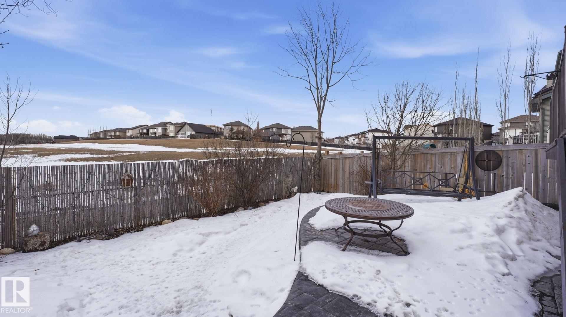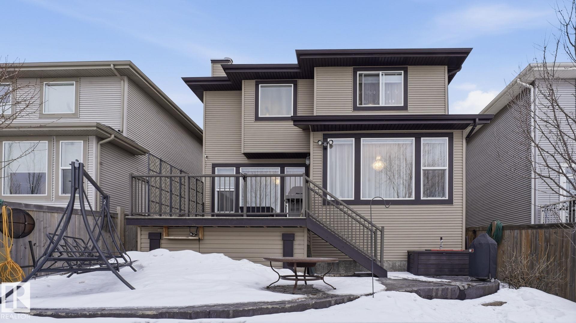 Discover this desirable two-storey home in Hawks Ridge, BACKING ONTO GREEN SPACE AND A FUTURE K?6 SCHOOL SITE. a peaceful suburban community surrounded by NATURE AND LOCATED NEAR BIG LAKE, GLENDALE GOLF CLUB, and a provincial park with SCENIC WALKING TRAILS AND GREEN SPACES. Offering approximately 2482 sq ft of thoughtfully designed living space, the open-concept main floor features elegant CRYSTAL LIGHT FIXTURES, a custom-designed kitchen with stainless steel appliances, GRANITE TOP, oversized freezer, and a cozy WOOD fireplace & CUSTOM MANTEL. Upstairs, you?ll find FOUR spacious bedrooms including a stunning primary suite complete with a luxurious 5-piece ensuite, DOUBLE VANITY & Custom WALK-IN SHOWER. The home also includes and attached double garage & A/C, while the basement provides excellent potential for future development or additional storage. This property combines privacy, comfort, and style.