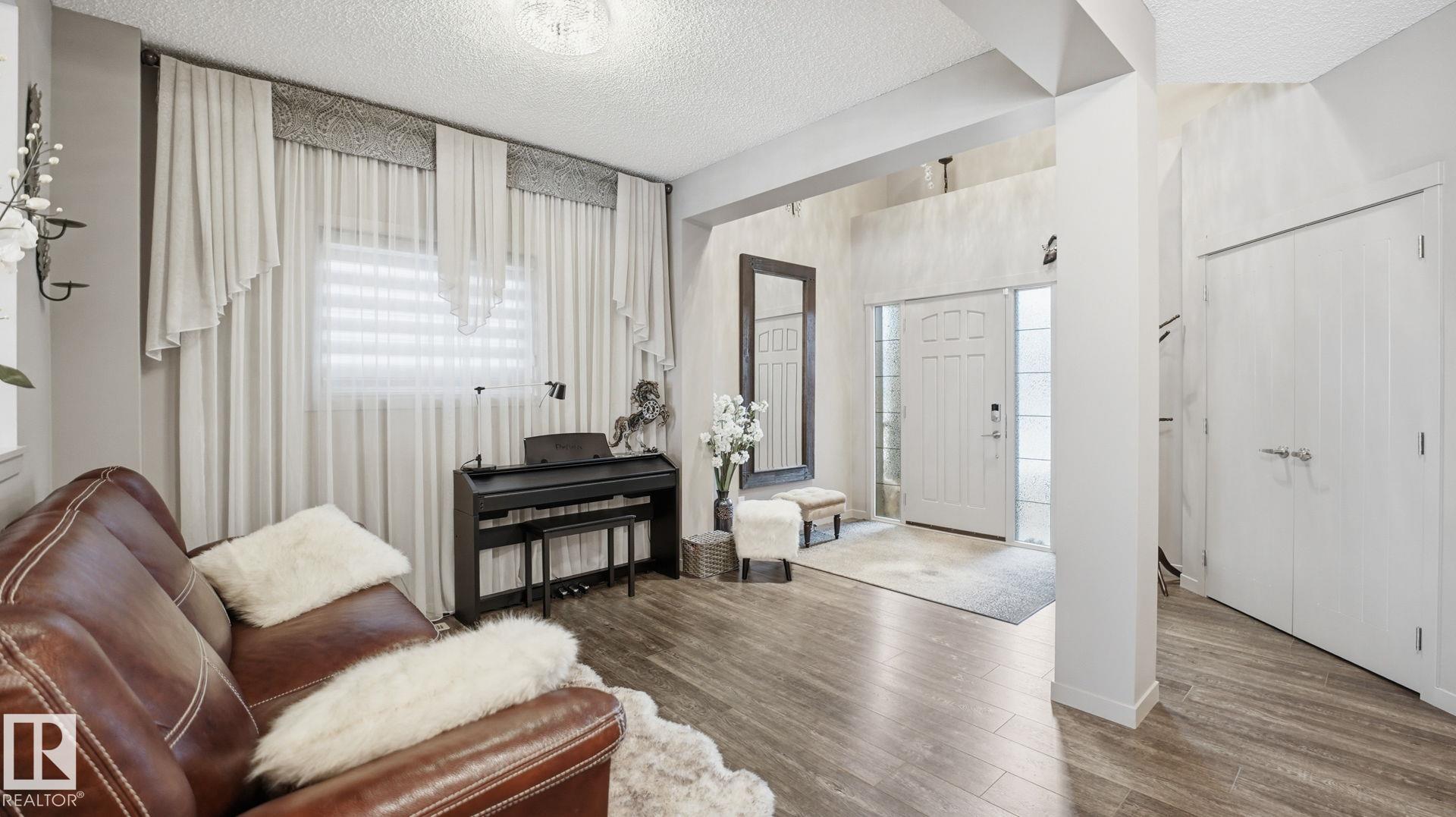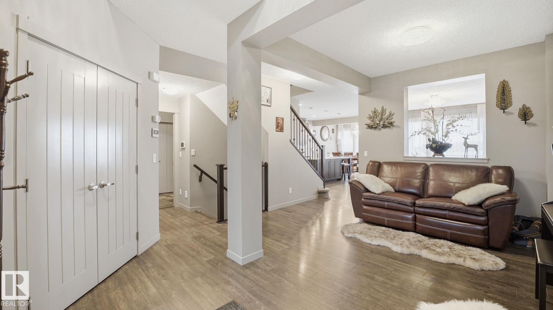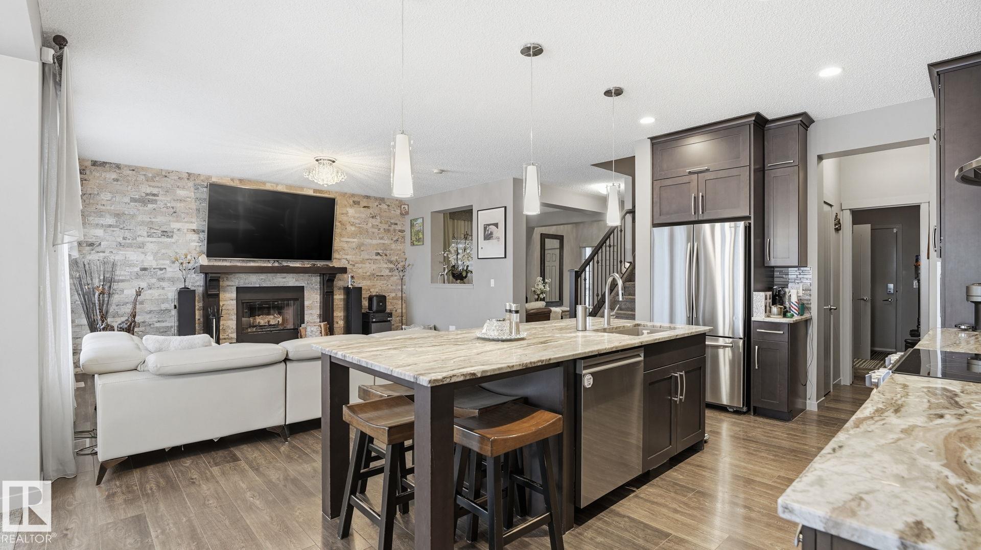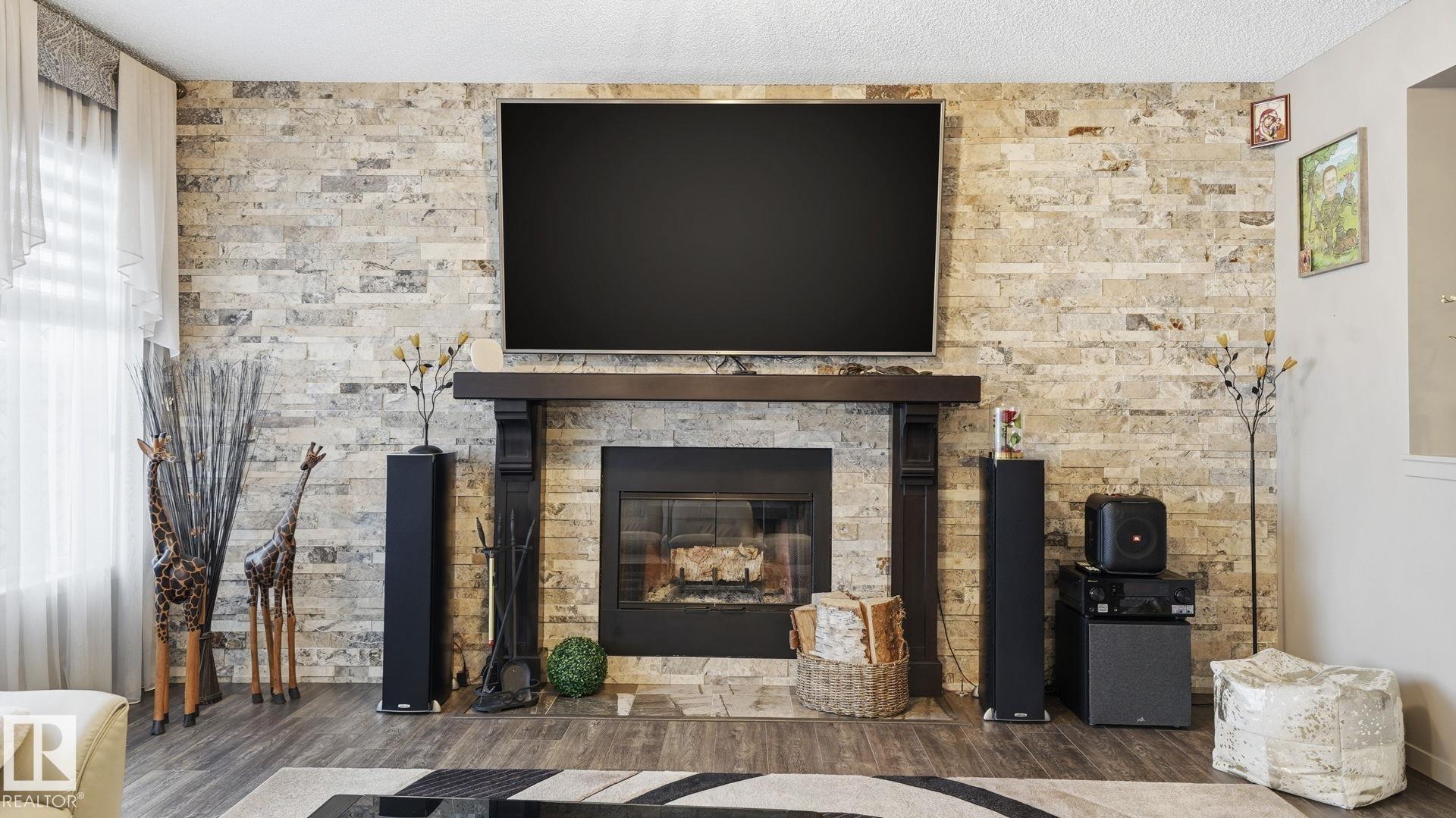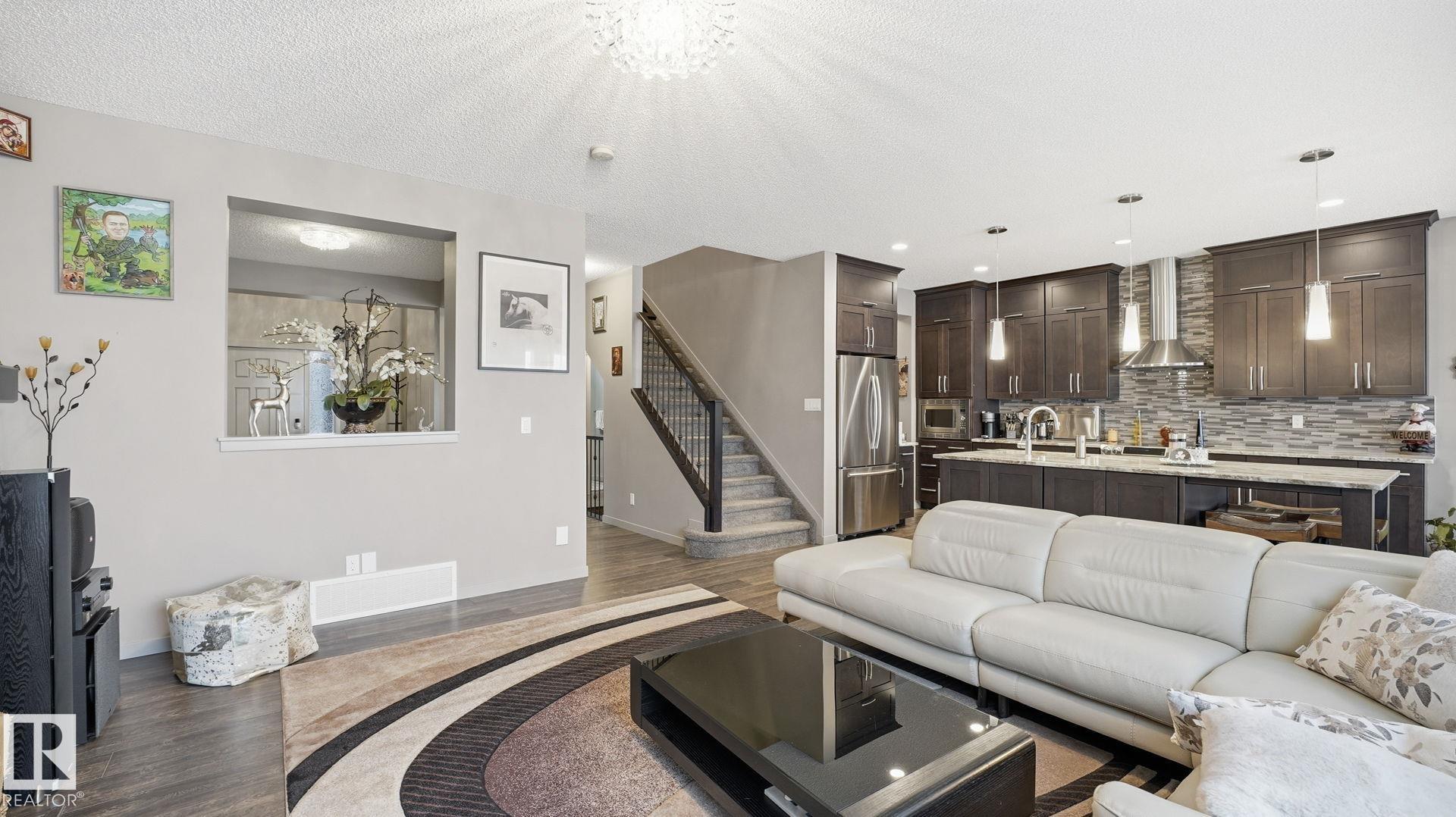 Discover this desirable two-storey home in Hawks Ridge, BACKING ONTO GREEN SPACE AND A FUTURE K?6 SCHOOL SITE. a peaceful suburban community surrounded by NATURE AND LOCATED NEAR BIG LAKE, GLENDALE GOLF CLUB, and a provincial park with SCENIC WALKING TRAILS AND GREEN SPACES. Offering approximately 2482 sq ft of thoughtfully designed living space, the open-concept main floor features elegant CRYSTAL LIGHT FIXTURES, a custom-designed kitchen with stainless steel appliances, GRANITE TOP, oversized freezer, and a cozy WOOD fireplace & CUSTOM MANTEL. Upstairs, you?ll find FOUR spacious bedrooms including a stunning primary suite complete with a luxurious 5-piece ensuite, DOUBLE VANITY & Custom WALK-IN SHOWER. The home also includes and attached double garage & A/C, while the basement provides excellent potential for future development or additional storage. This property combines privacy, comfort, and style.