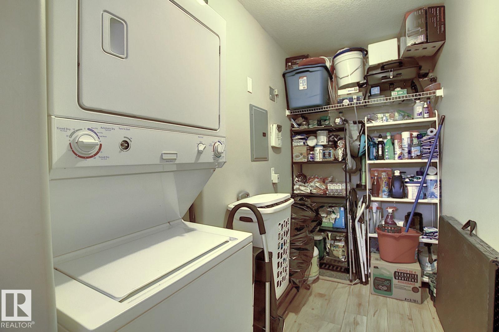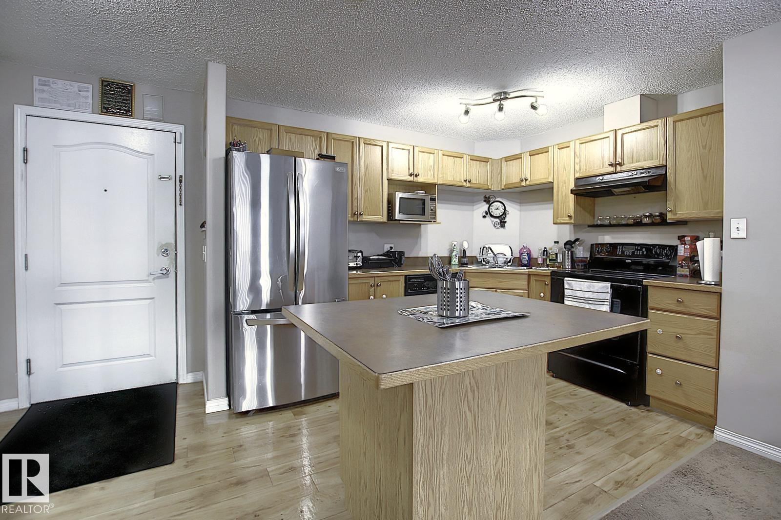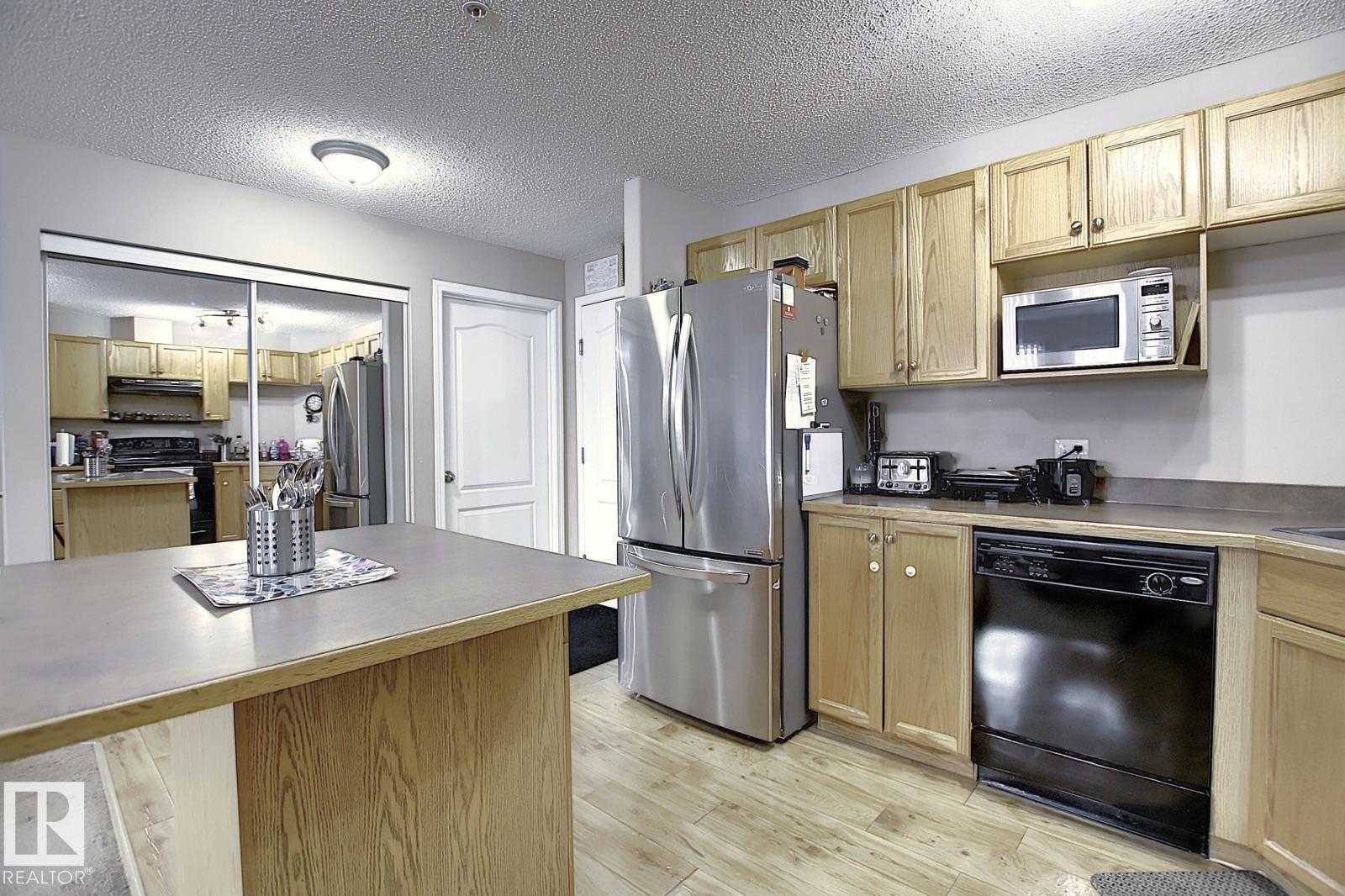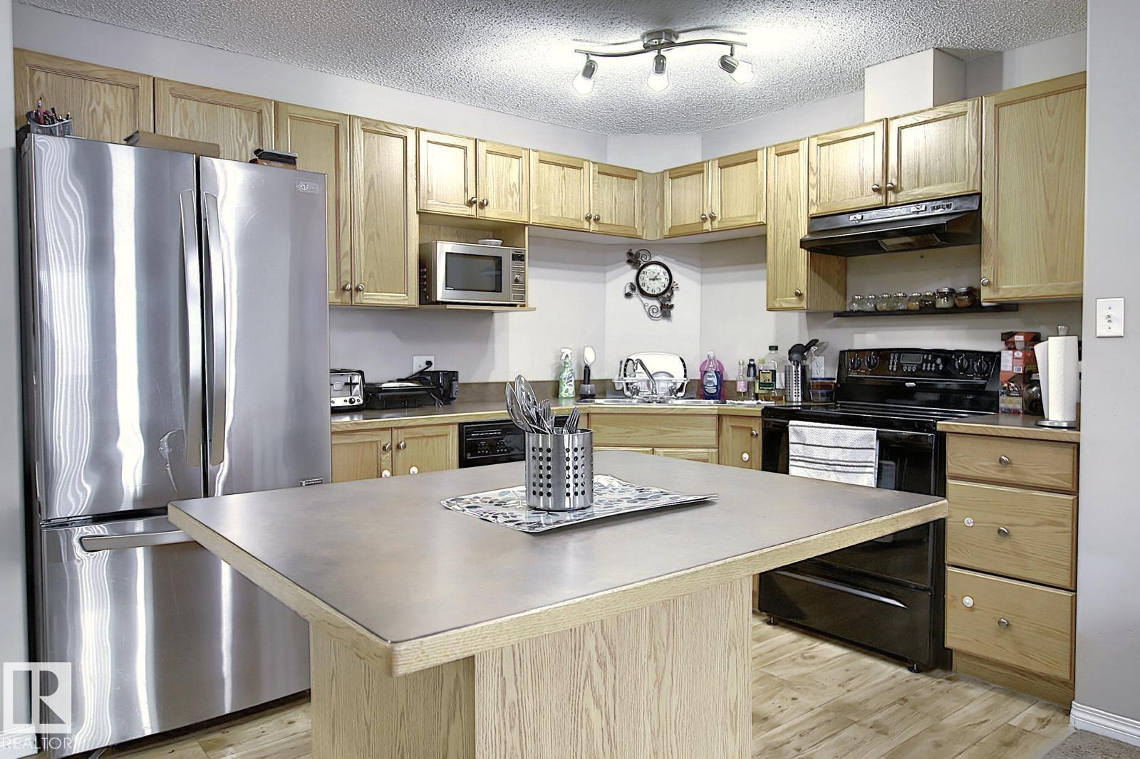 Welcome to Park Place Hampton. This well-kept 2 bedroom, 2 bathroom condo offers a functional layout with comfortable living space. The kitchen features upgraded oak cabinets, plenty of counter space, black appliances, and a large island that?s great for everyday use or casual dining. The primary bedroom includes a walk-in closet and a full ensuite, while the second bedroom is set on the opposite side, making it ideal for guests or a home office. You?ll also find in-suite laundry, extra storage, and a titled above-ground parking stall. Conveniently located within walking distance to schools and just minutes from Anthony Henday, Whitemud Drive, and West Edmonton Mall, with easy access to all amenities.