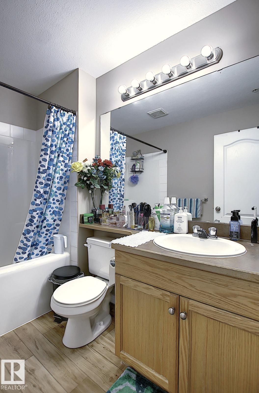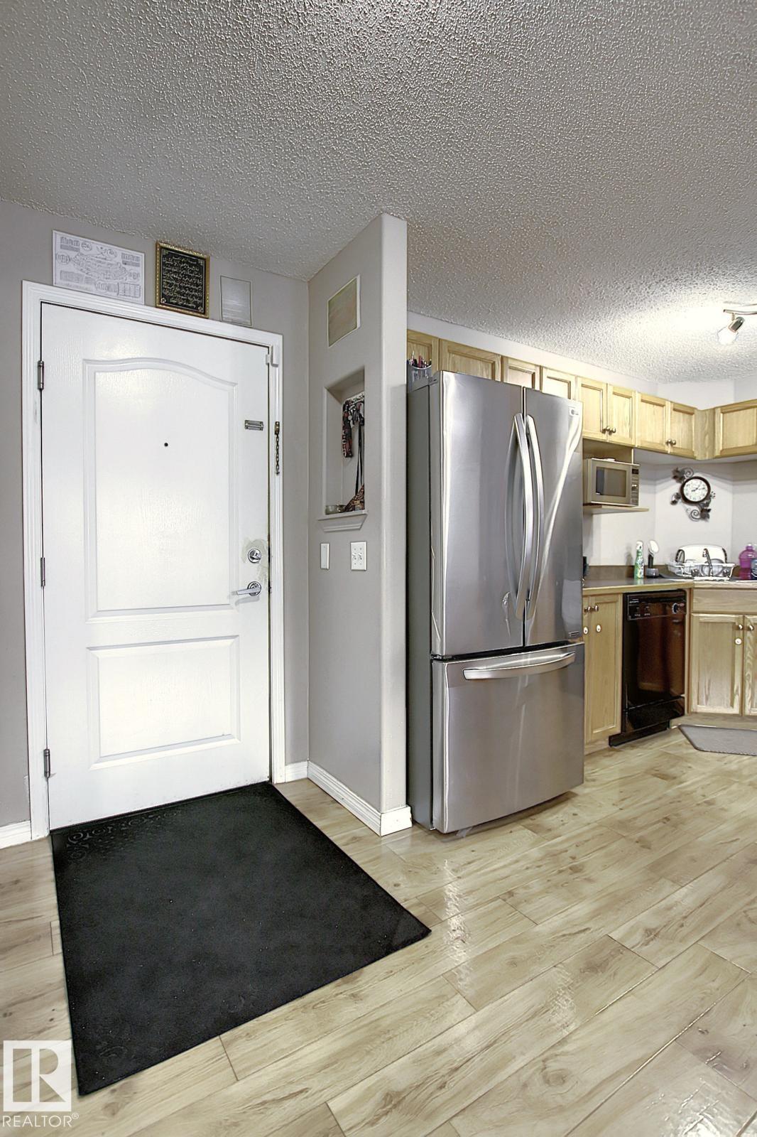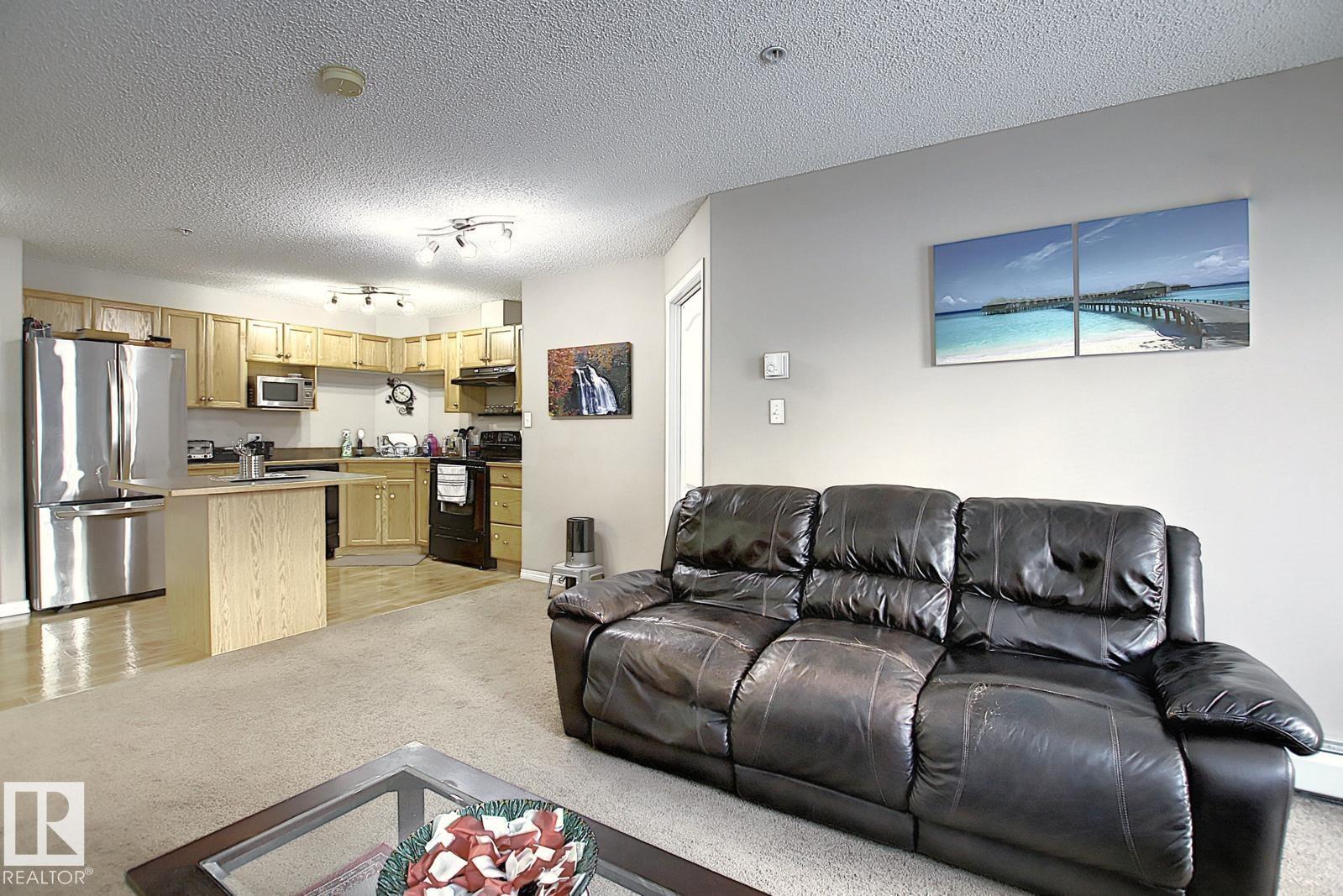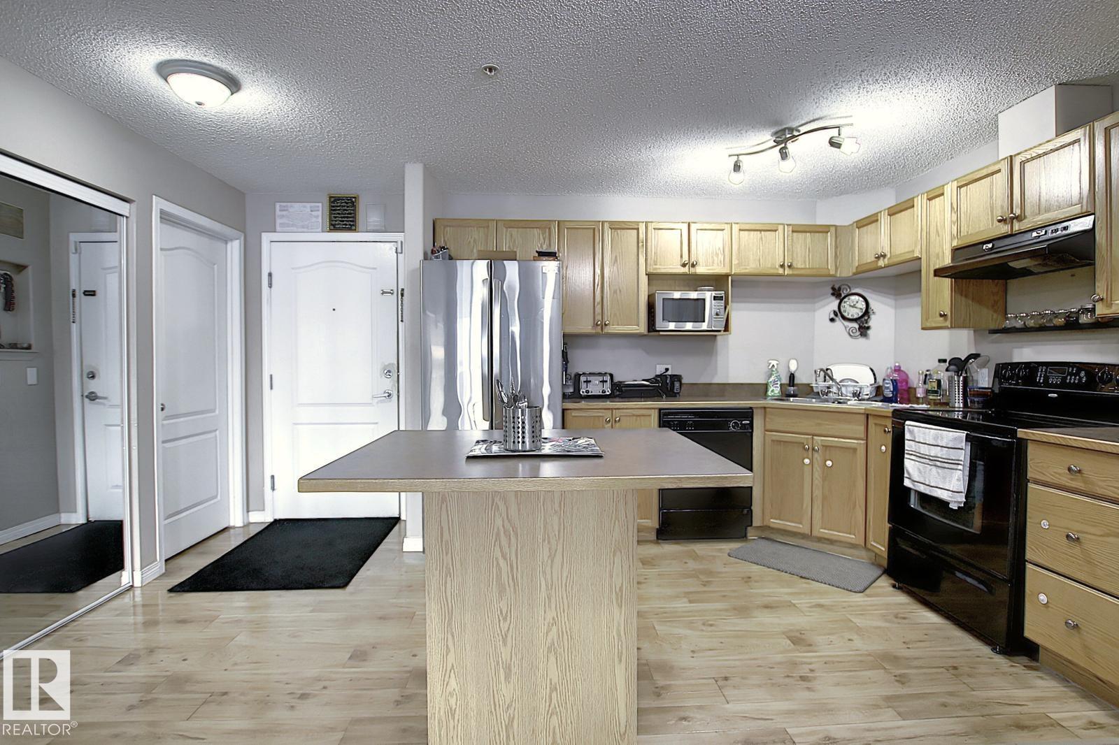 Welcome to Park Place Hampton. This well-kept 2 bedroom, 2 bathroom condo offers a functional layout with comfortable living space. The kitchen features upgraded oak cabinets, plenty of counter space, black appliances, and a large island that?s great for everyday use or casual dining. The primary bedroom includes a walk-in closet and a full ensuite, while the second bedroom is set on the opposite side, making it ideal for guests or a home office. You?ll also find in-suite laundry, extra storage, and a titled above-ground parking stall. Conveniently located within walking distance to schools and just minutes from Anthony Henday, Whitemud Drive, and West Edmonton Mall, with easy access to all amenities.
