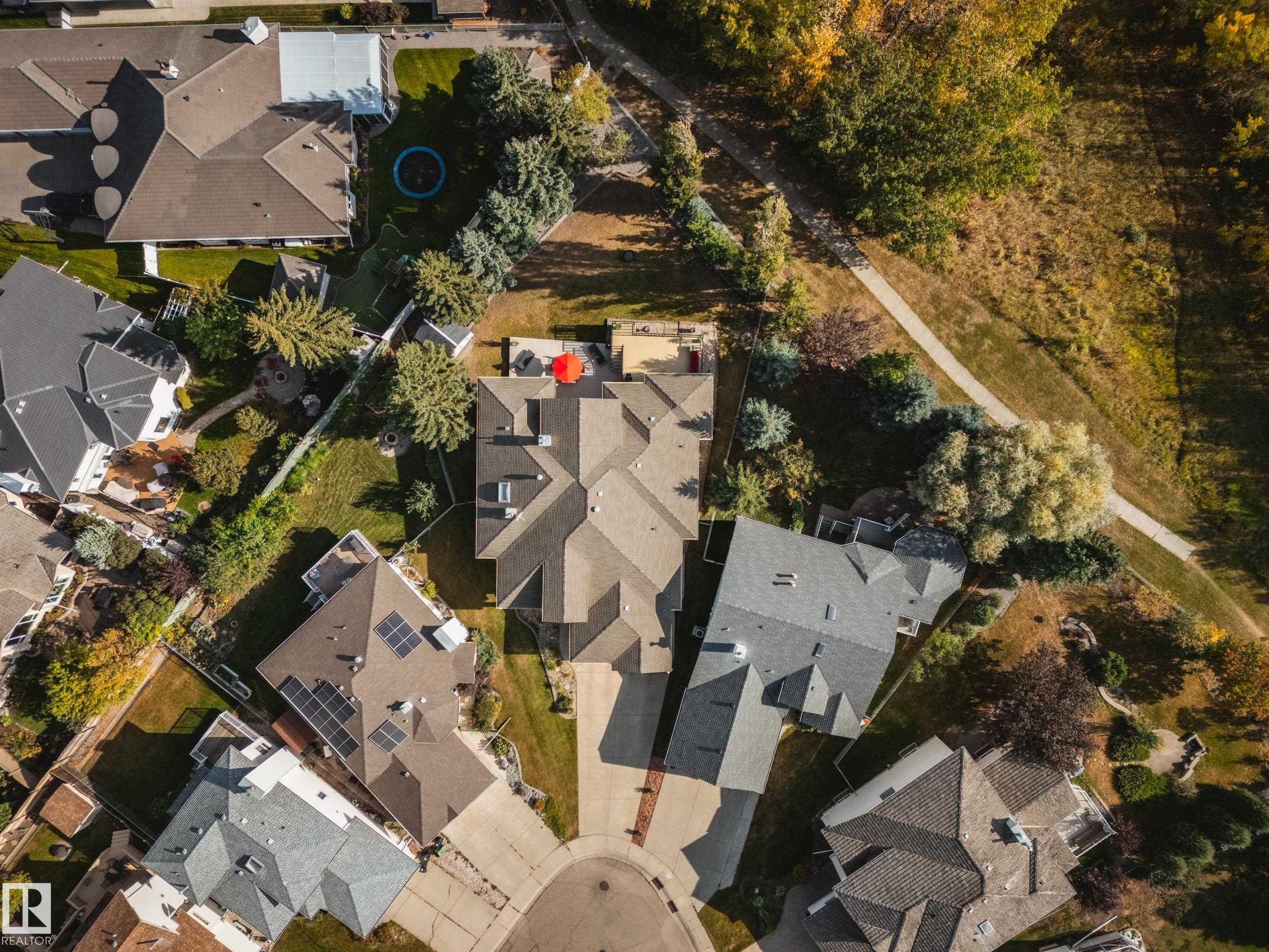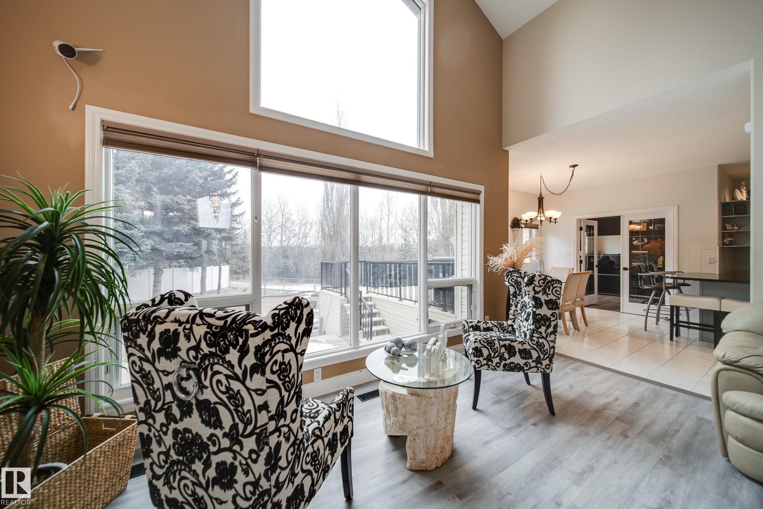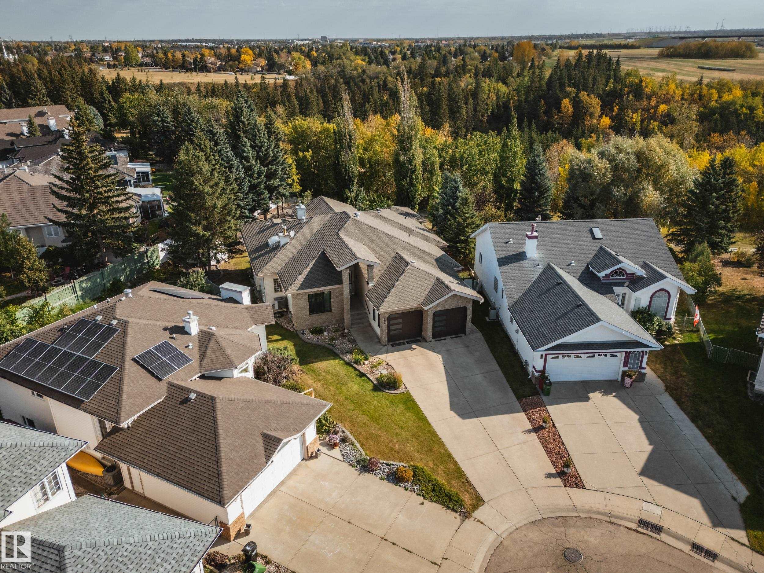 Absolutely stunning 2373 sqft bungalow backing directly onto Blackmud Creek Ravine?this is the one you?ve been waiting for. Located in a quiet cul-de-sac in desirable Twin Brooks, this rare pie-shaped lot offers a beautifully landscaped, oversized backyard with direct access to scenic walking and biking trails. Inside, the home offers 2 beds up plus den, 2 more beds down plus flex room, is bright and spacious with 9? ceilings throughout and vaulted ceilings in the foyer and great room. The formal dining area with pillars is perfect for entertaining, while the expansive kitchen features solid oak cabinetry and abundant counter space. The fully developed basement is exceptional, offering 9? ceilings, large windows, two furnaces, & incredible flexibility. Complete with a wet bar, full-size fridge, dishwasher, built-in sound wiring, three bedrooms, massive storage, and cold room. With central A/C and an unbeatable ravine location, this is a rare opportunity in one of Edmonton?s most sought-after communities.
