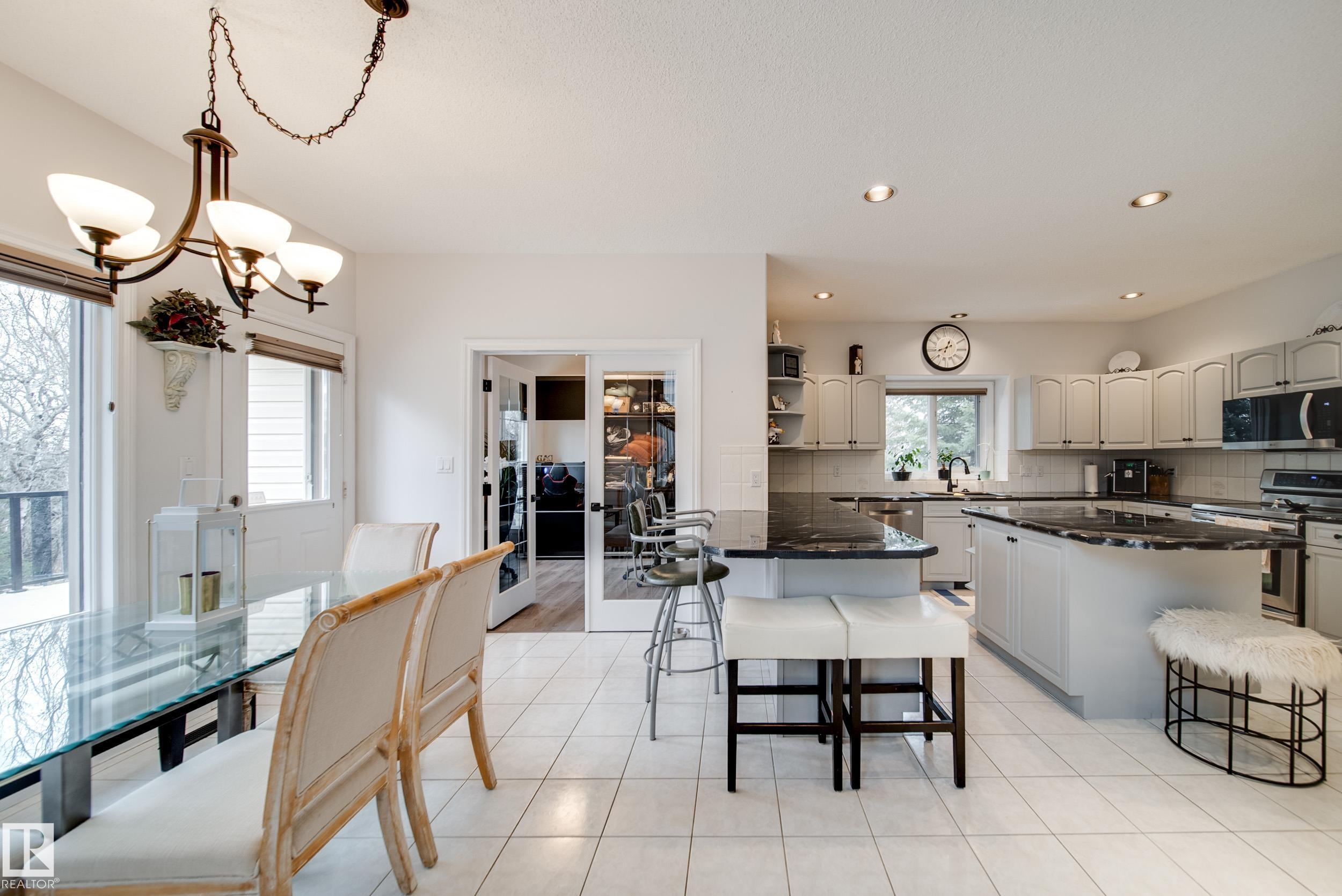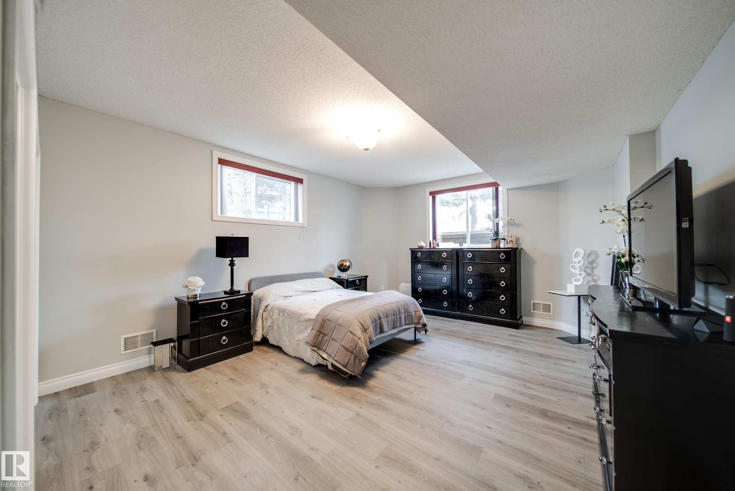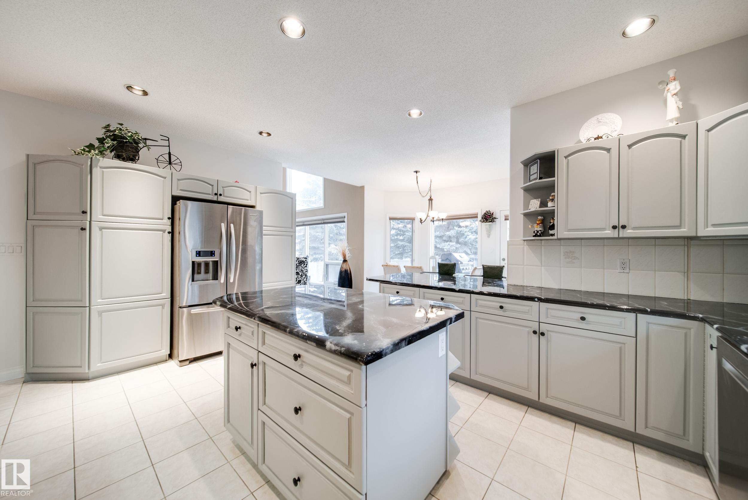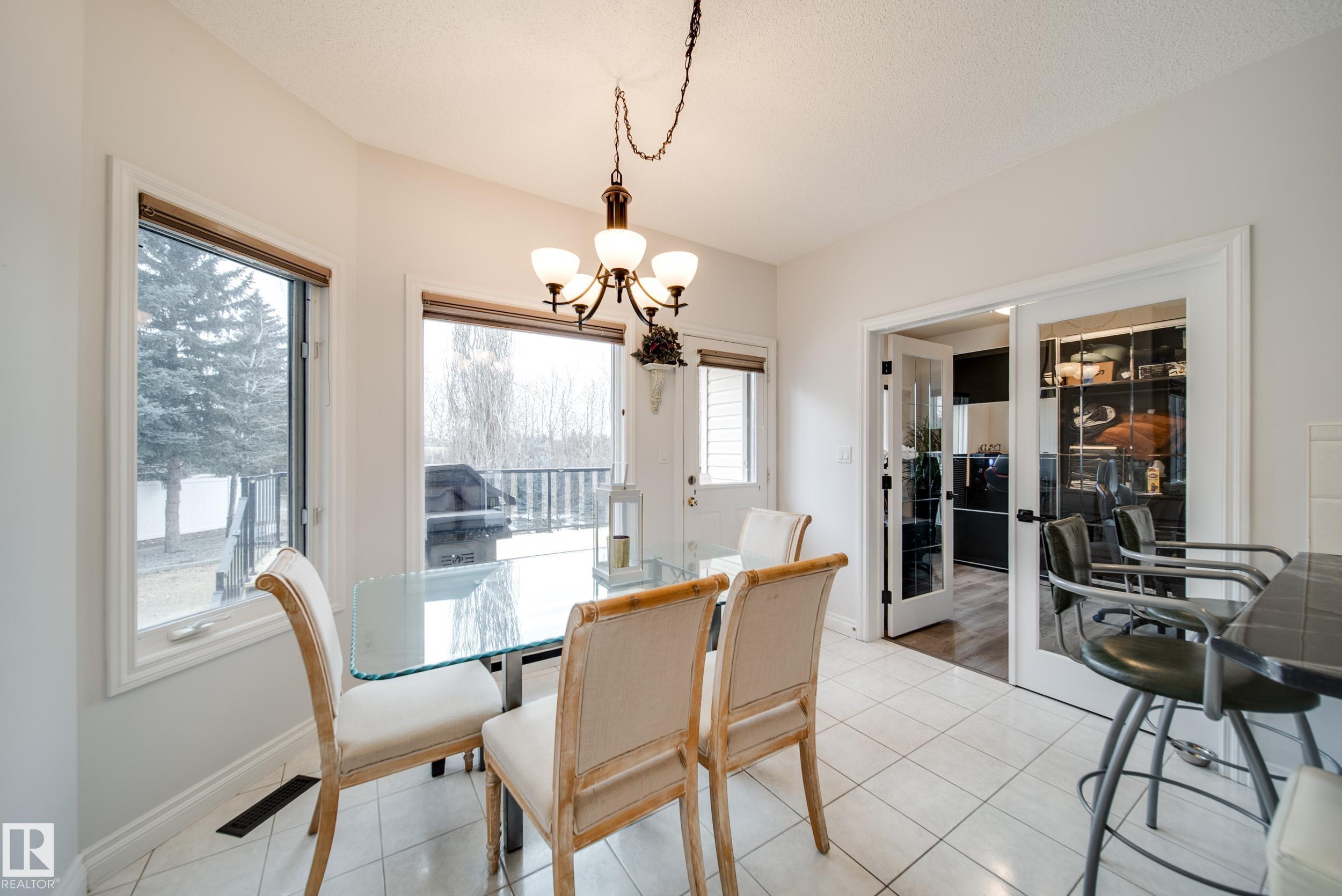 Absolutely stunning 2373 sqft bungalow backing directly onto Blackmud Creek Ravine?this is the one you?ve been waiting for. Located in a quiet cul-de-sac in desirable Twin Brooks, this rare pie-shaped lot offers a beautifully landscaped, oversized backyard with direct access to scenic walking and biking trails. Inside, the home offers 2 beds up plus den, 2 more beds down plus flex room, is bright and spacious with 9? ceilings throughout and vaulted ceilings in the foyer and great room. The formal dining area with pillars is perfect for entertaining, while the expansive kitchen features solid oak cabinetry and abundant counter space. The fully developed basement is exceptional, offering 9? ceilings, large windows, two furnaces, & incredible flexibility. Complete with a wet bar, full-size fridge, dishwasher, built-in sound wiring, three bedrooms, massive storage, and cold room. With central A/C and an unbeatable ravine location, this is a rare opportunity in one of Edmonton?s most sought-after communities.