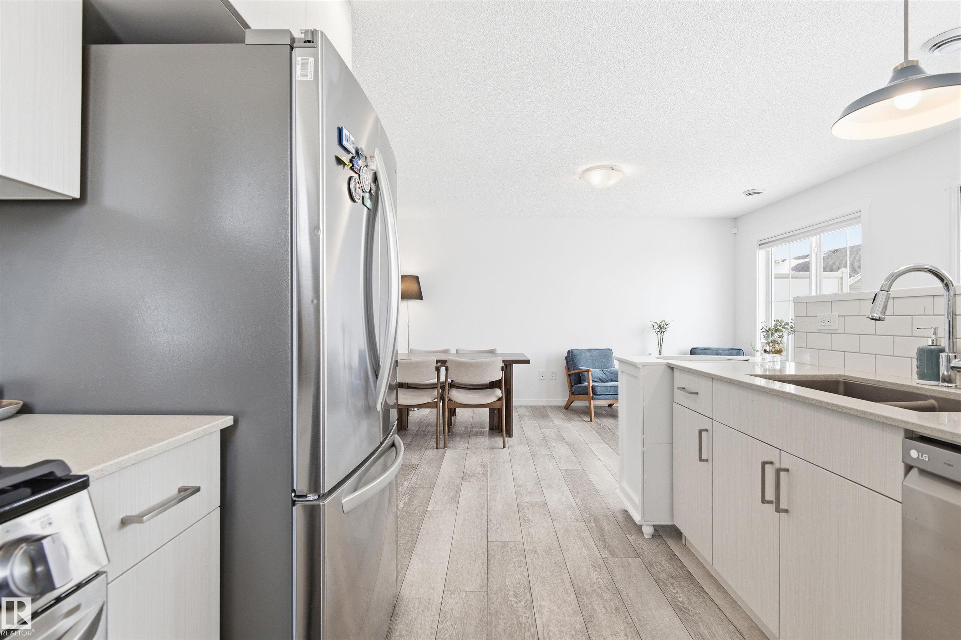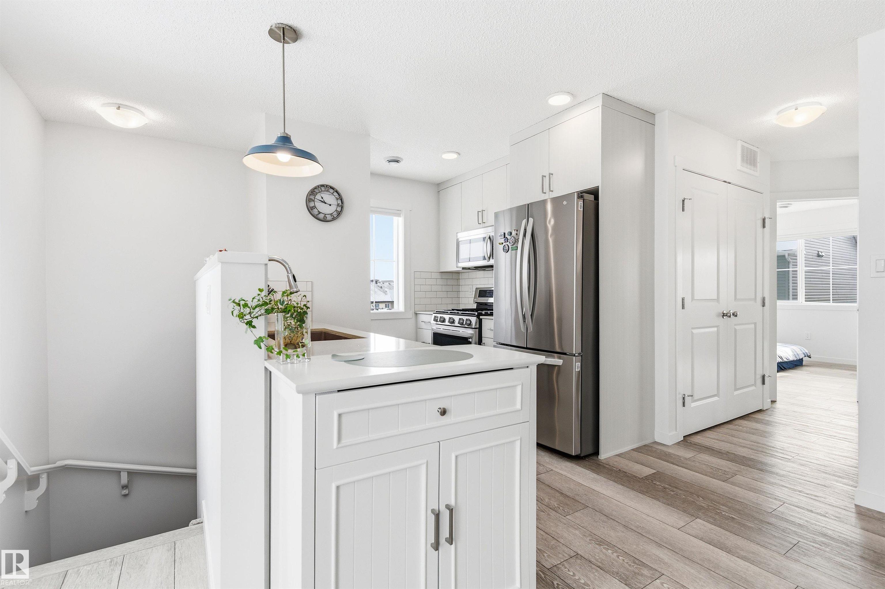 Welcome to this bright and well-maintained top-floor corner townhome, offering exceptional privacy and an open, airy feel! This home features NO carpet throughout the entire living space, finished with durable vinyl plank flooring for a clean, modern look. Enjoy the convenience of a full single-level layout, with no stairs needed to access the kitchen, living, and dining areas. The corner location provides extra windows and abundant natural light throughout. The stylish kitchen includes quartz countertops and a generously sized pantry for ample storage, flowing seamlessly into the dining and living spaces?perfect for everyday living and convenience. The bathroom is upgraded with a sleek sliding glass shower door. Main floor entry offers a spacious foyer with dedicated shoe storage and a large separate storage area. Additional highlights include low condo fees. Conveniently located close to parks, schools, recreation centre, shopping, and public transportation.