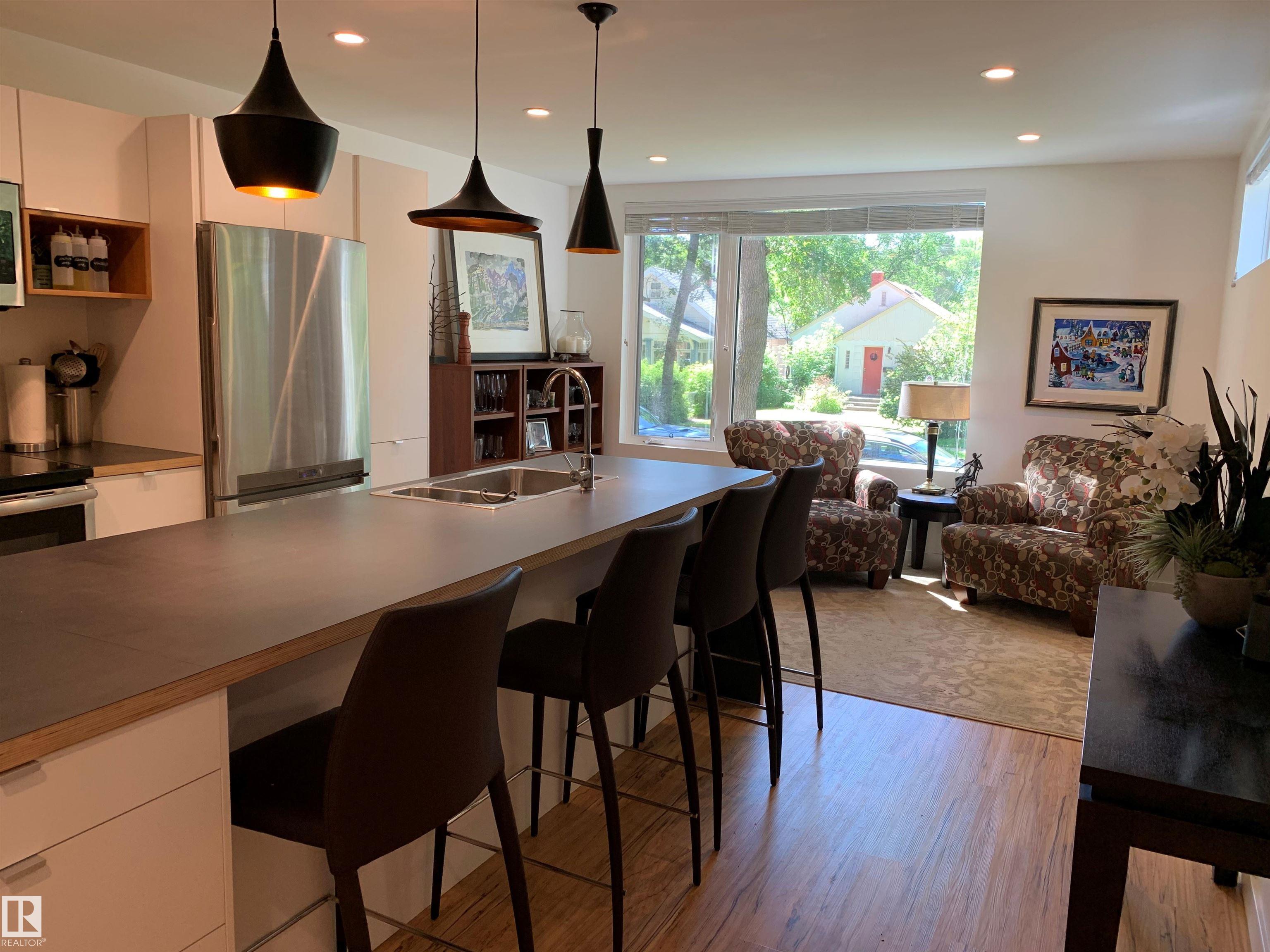 CUSTOM-BUILT SCANDINAVIAN-INSPIRED LUXURY IN GARNEAU WITH SUITED BASEMENT (up & down duplex)! This home delivers exceptional quality with clean lines, expansive triple-pane windows & wide-plank Copenhagen hardwood. Bright, refined living throughout with thoughtful architectural design & efficient layout. Main residence features in-floor heating in all 3 baths, wood-burning fireplace, rooftop patio, BBQ balcony & outdoor patio with built-in kitchen. Full security system with cameras, alarm & 3-point locking doors. Built on ICF foundation with high-efficiency furnace, large hot water tank & 200-amp service. Fully developed suited basement with separate living space, mirroring the same modern aesthetic with 4 bedrooms, 2 baths, in-suite laundry & quartz kitchen. Double detached garage + extra parking pad. Prime Garneau location steps to Whyte Ave, U of A, hospitals, River Valley, LRT access, parks, cafes & quick access downtown. A dream lifestyle location! Sophisticated living at its finest!
