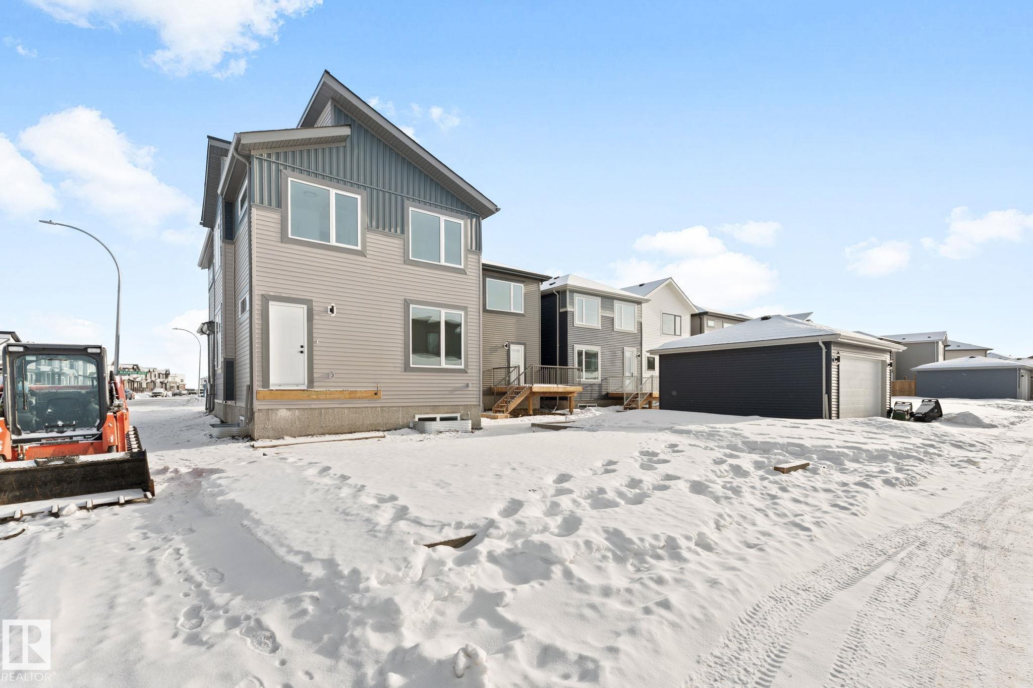Welcome to this beautifully crafted Valencia Homes property in Fort Saskatchewan, situated on a PREMIUM CORNER LOT close to schools, parks, and everyday amenities. Offering over 1,800+ sq ft of thoughtfully designed living space, the open-concept main floor features 9 FT CEILINGS, a spacious living room, and an UPGRADED KITCHEN with BLACK HARDWARE and a GAS LINE FOR A GAS STOVE. A MAIN FLOOR BEDROOM and FULL BATHROOM provide flexibility for guests, a home office, or multigenerational living. The mudroom includes UPGRADED BUILT-IN CABINETRY and MDF SHELVING THROUGHOUT. Enjoy the UPGRADED WINDOW PACKAGE that fills the home with natural light. Upstairs features three spacious bedrooms, two full bathrooms, and a large BONUS ROOM. Enter through DOUBLE DOORS into the MASSIVE PRIMARY SUITE. Additional upgrades include UPGRADED TILE SHOWERS, UPGRADED RAILINGS, HRV SYSTEM, and SIDE ENTRANCE