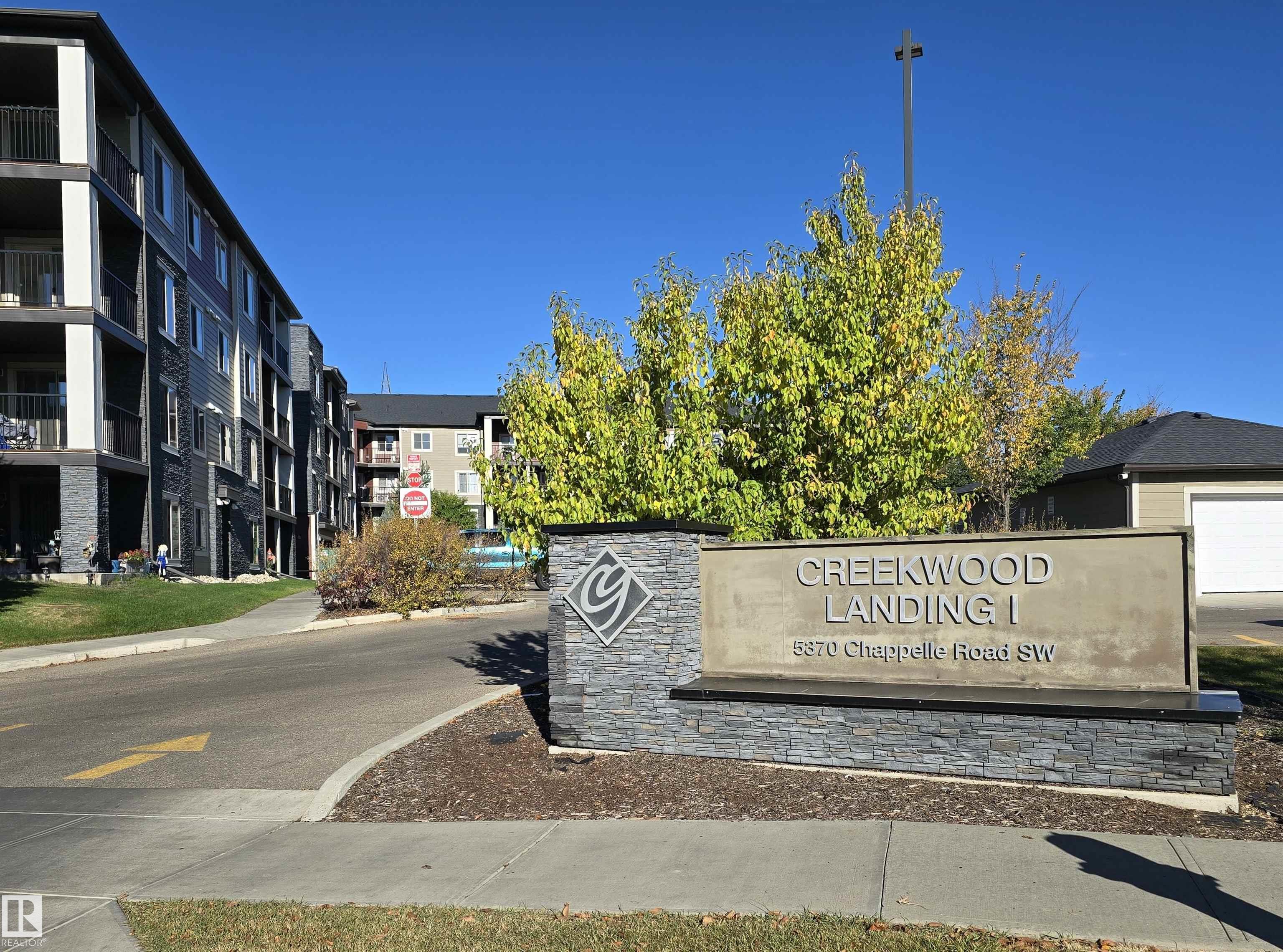Welcome to Creekwood Landing II in the vibrant community of Chappelle! This bright and well-designed 2-bedroom, 2-bathroom condo offers functional living space with a modern open-concept layout. The kitchen features stainless steel appliances, espresso cabinetry, a full tile backsplash, and a spacious peninsula with breakfast bar seating. The living and dining areas flow seamlessly together, opening onto a private covered balcony?perfect for morning coffee or evening relaxation. The generous primary suite includes a walk-through closet and 3-piece ensuite, while the second bedroom and full 4-piece bath provide excellent flexibility for guests, roommates, or a home office. In-suite laundry adds everyday convenience. Bonus: This unit includes TWO titled parking stalls 1 underground and 1 surface ?a rare find that offers year-round comfort and extra storage potential. Located in a well-managed, pet-friendly building surrounded by parks, walking trails, schools, and shops. Easy access to the Anthony Henday,